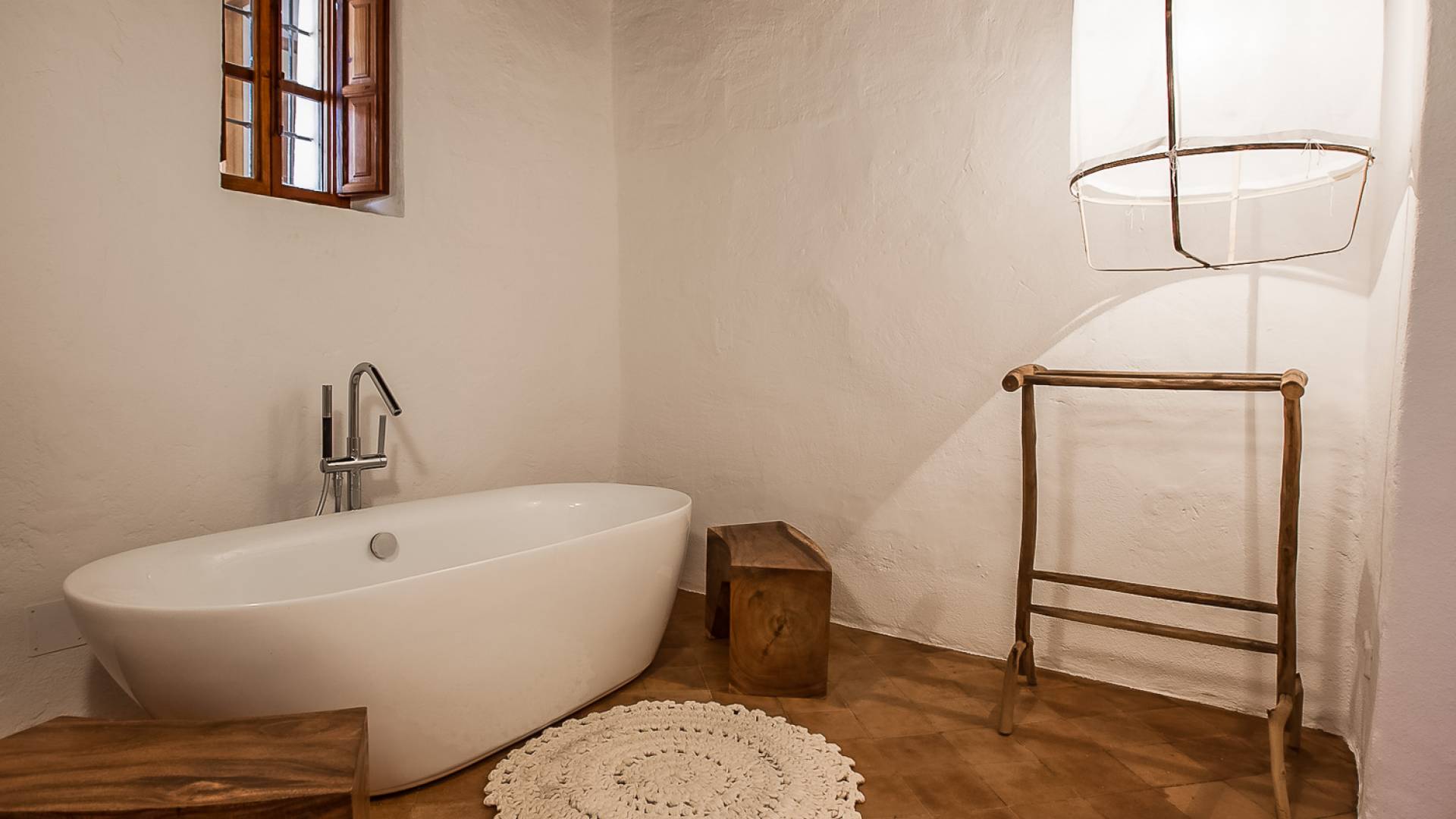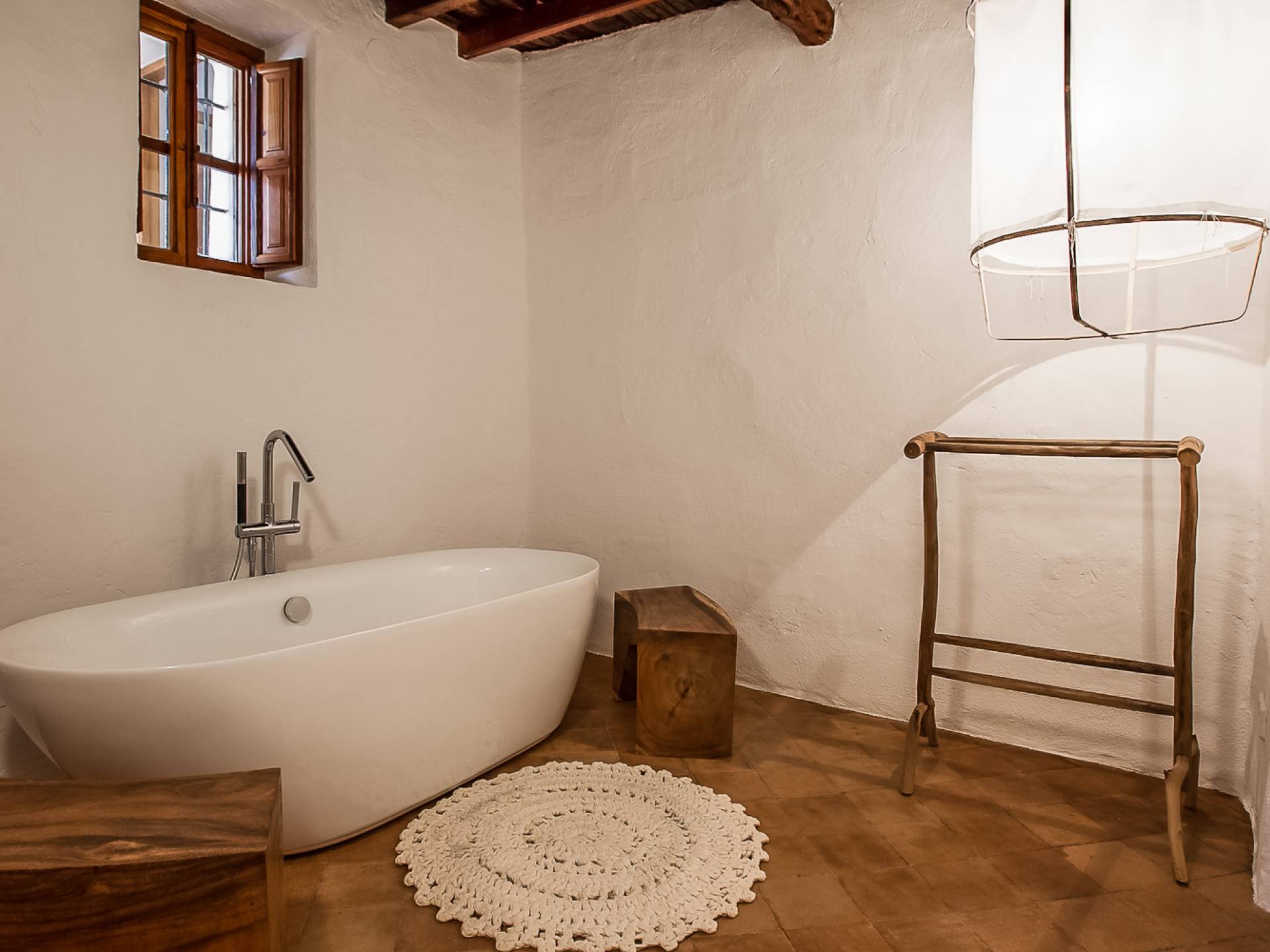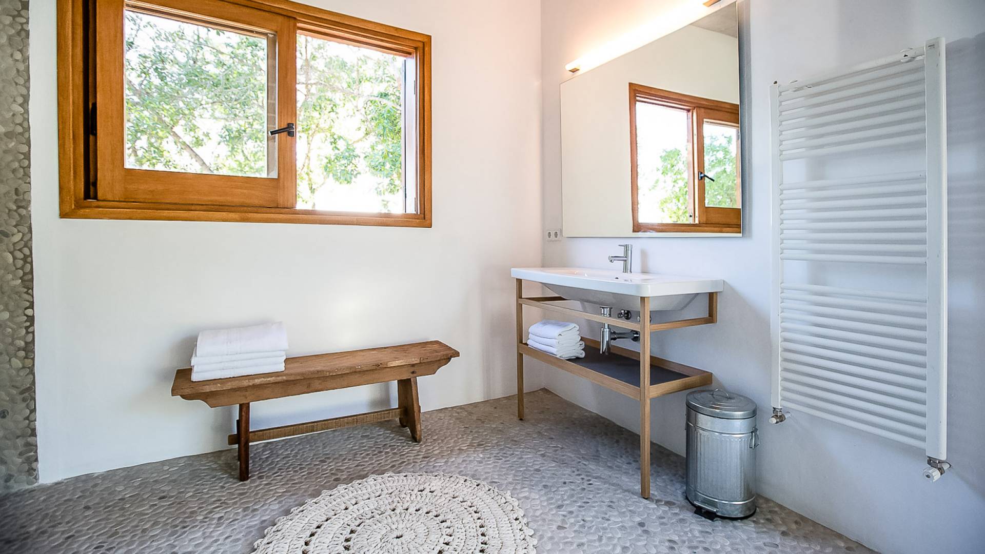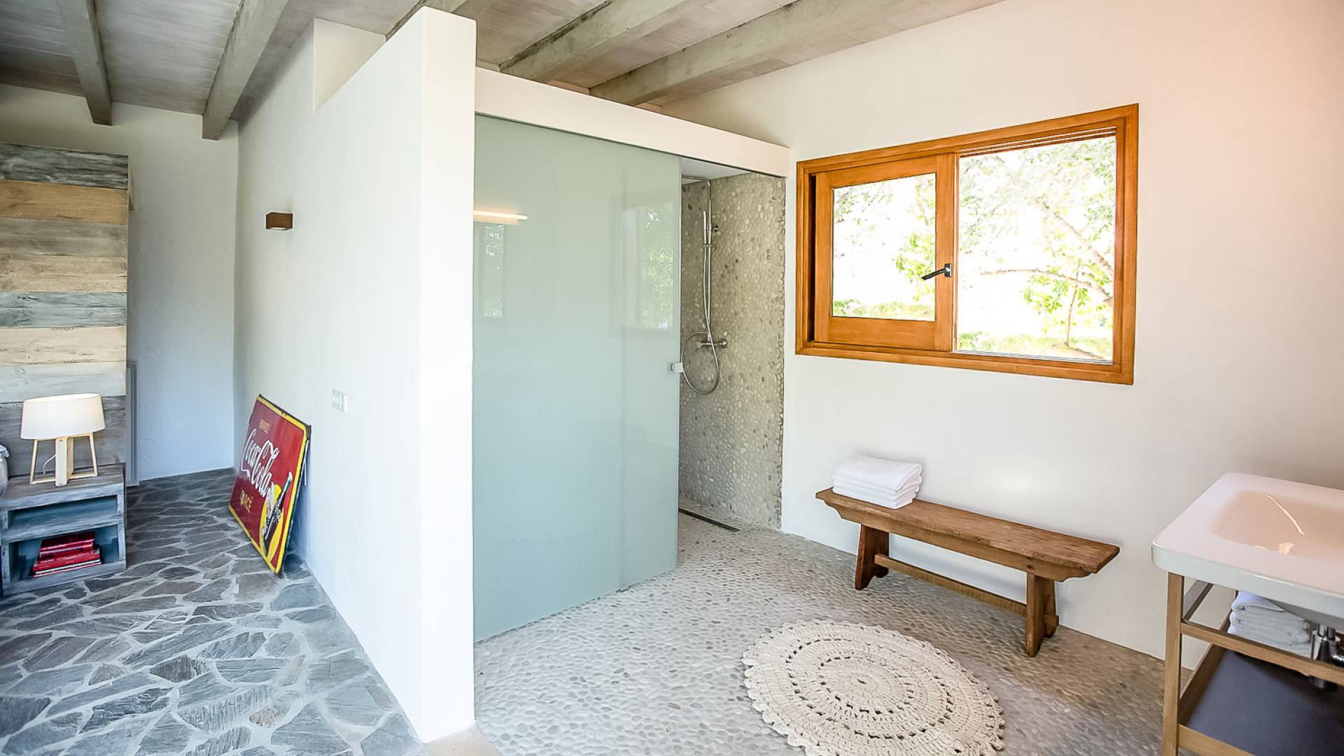 Can Paola Villa Ibiza mix the traditional Finca style with all modern comforts and finishes. The living areas are mainly open plan and there are several relaxing / lounging areas with large comfortable sofas - with the Finca style there are lots of nooks and crannies to relax in and catch up on your holiday hobbies. The dining area comfortably seats 10 people and an archway leads into a spacious, fully equipped modern kitchen.