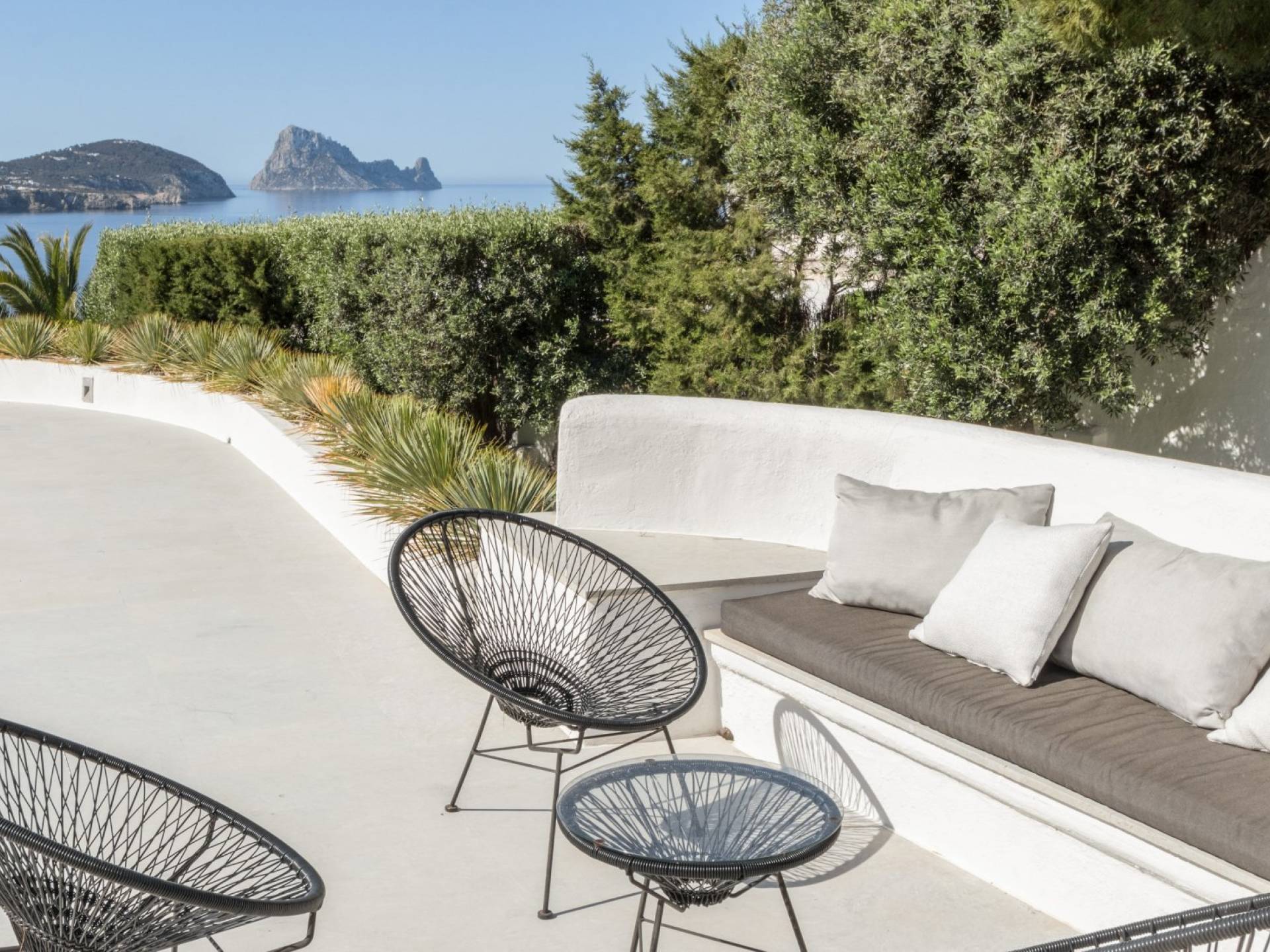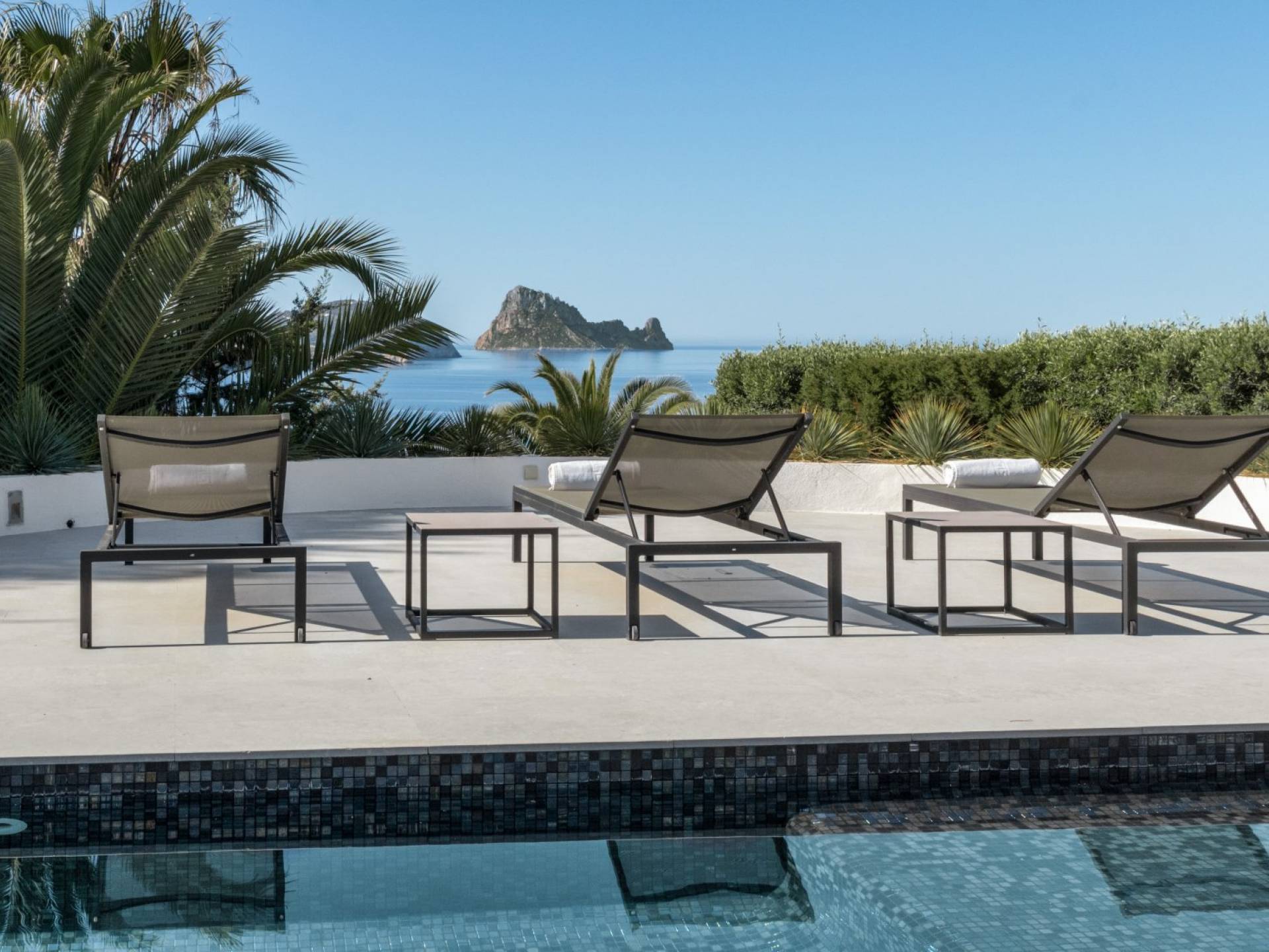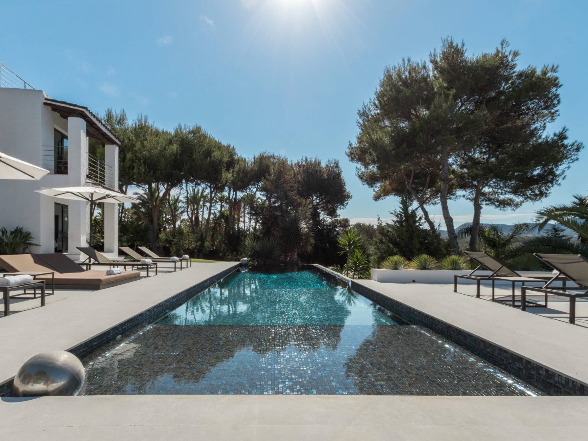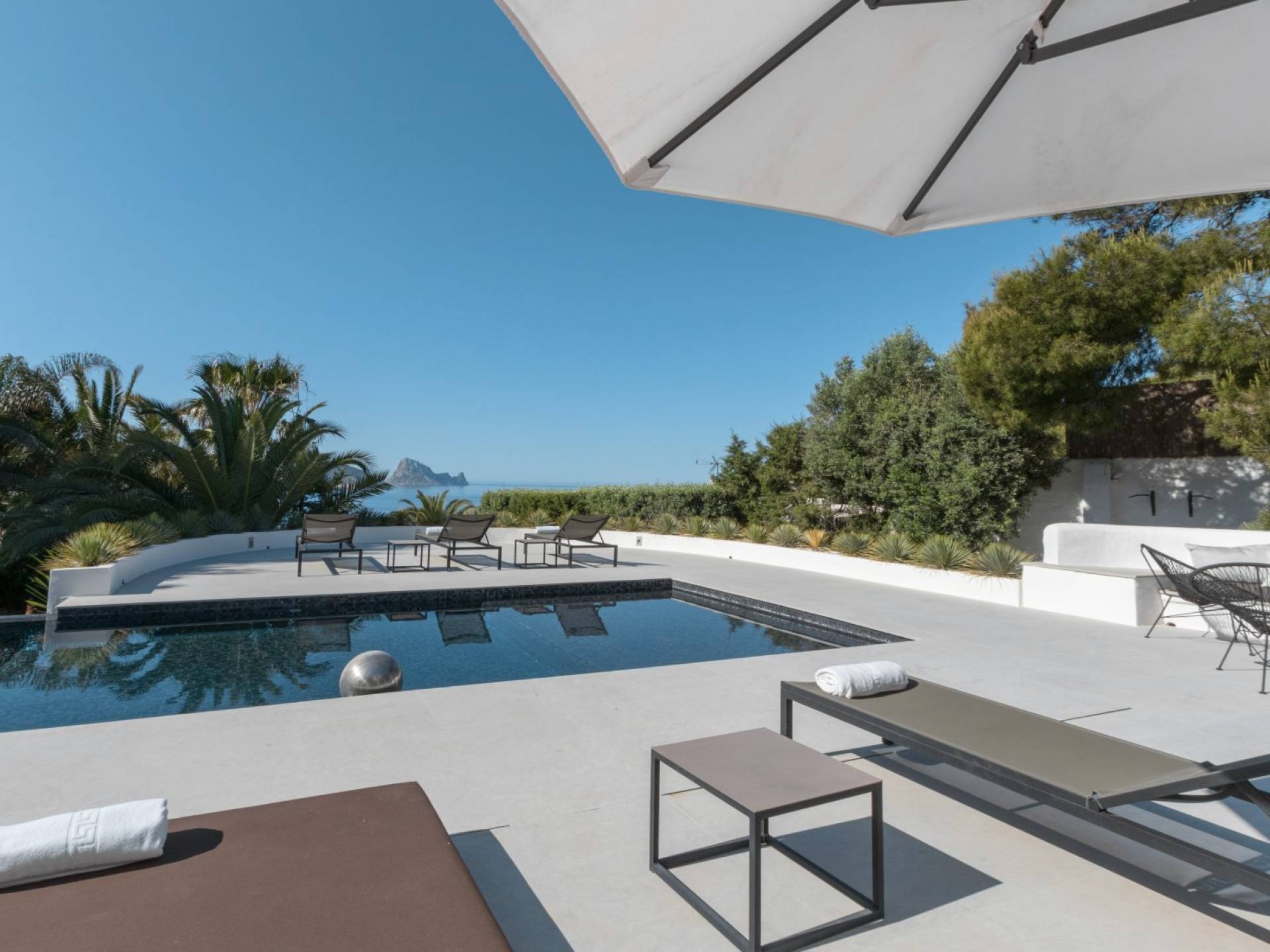 Es Vedra Style Villa Ibiza is an exclusive and secluded property situated on a hilltop only 250 meters away from the sea with a spectacular view to the open sea and amazing views of the mystical island of Es Vedra. The property is located in a quiet neighborhood adjacent to the beaches of Cala Conta and near to the village of San Jose. Some of Ibiza's best-secluded beaches are just a few minutes' walks or drive along the spectacular coast. Es Vedra Style is an ideal rental villa for families. With its hilltop location, the 3300 sqm plot has an almost flat, safe, beautiful green garden, surrounded by a high natural fence. Children can easily be supervised around the entire plot and the pool area.