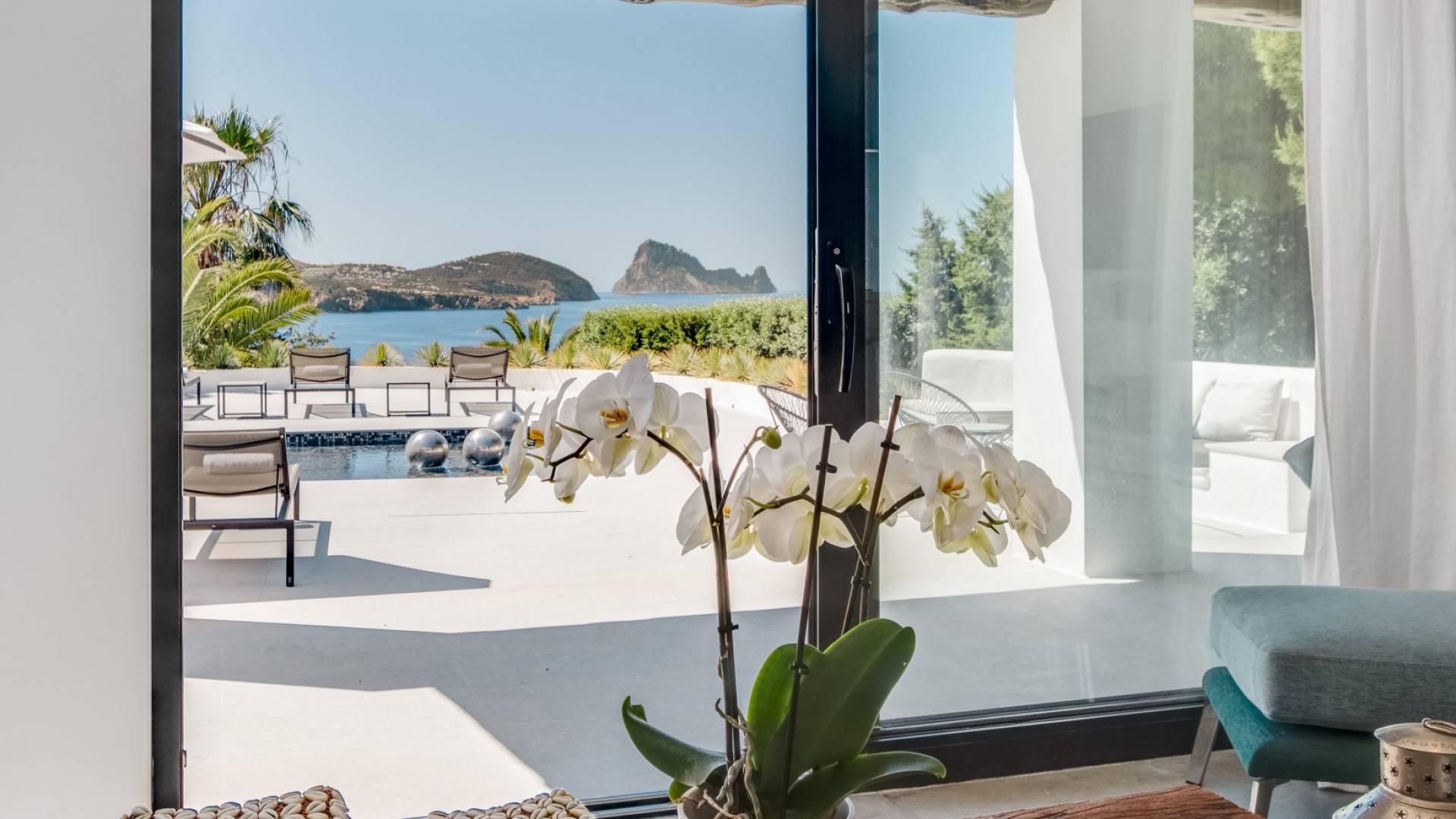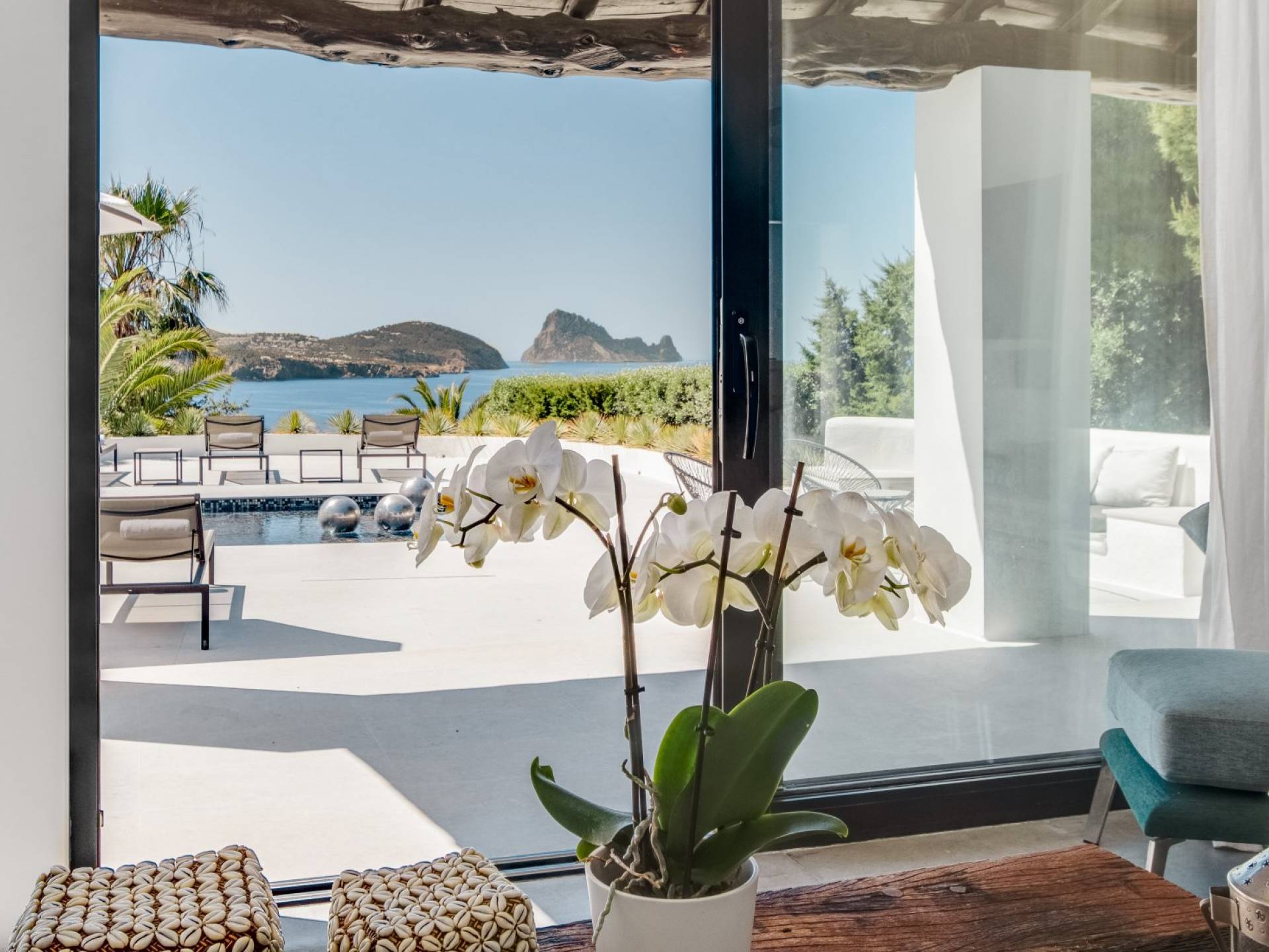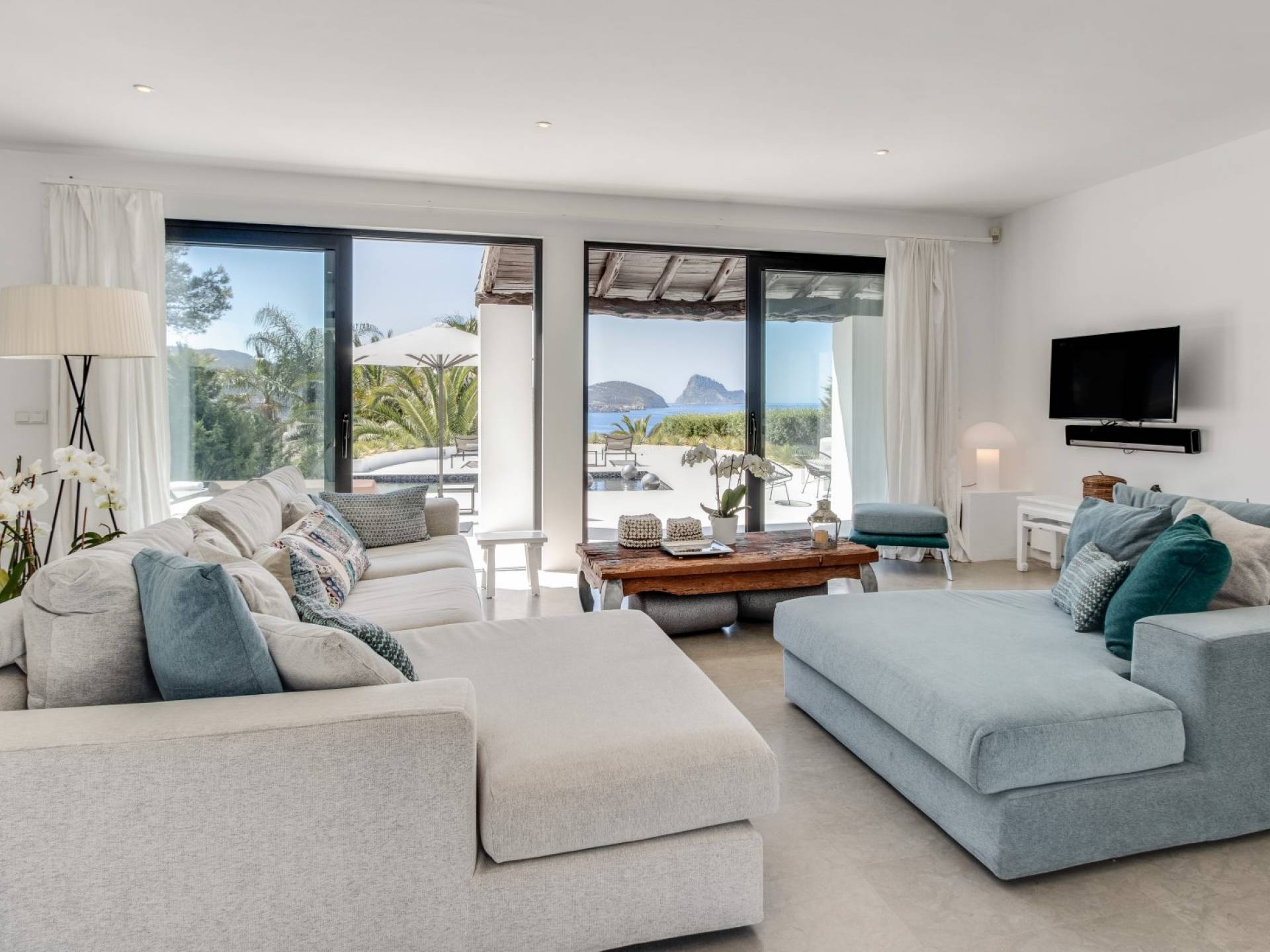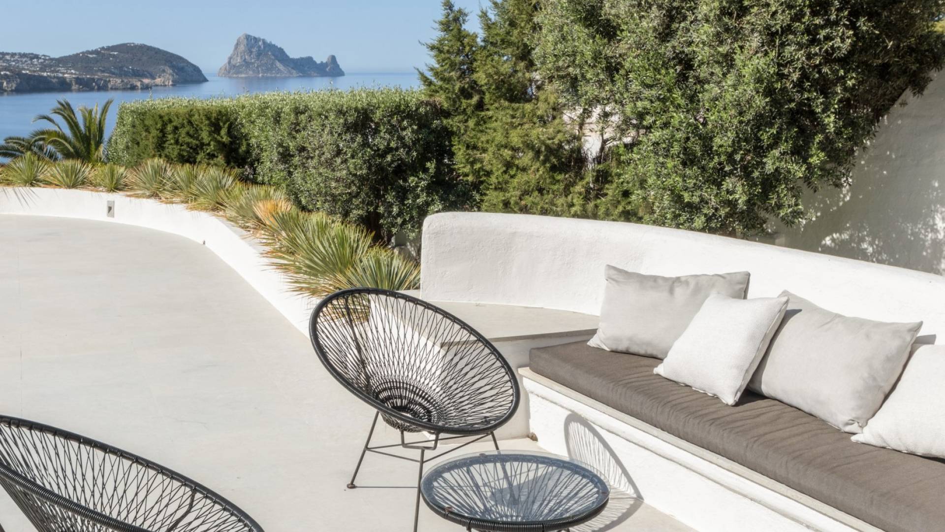 Es Vedra Style Villa Ibiza is an exclusive and secluded property situated on a hilltop only 250 meters away from the sea with a spectacular view to the open sea and amazing views of the mystical island of Es Vedra. The property is located in a quiet neighborhood adjacent to the beaches of Cala Conta and near to the village of San Jose. Some of Ibiza's best-secluded beaches are just a few minutes' walks or drive along the spectacular coast. Es Vedra Style is an ideal rental villa for families. With its hilltop location, the 3300 sqm plot has an almost flat, safe, beautiful green garden, surrounded by a high natural fence. Children can easily be supervised around the entire plot and the pool area.