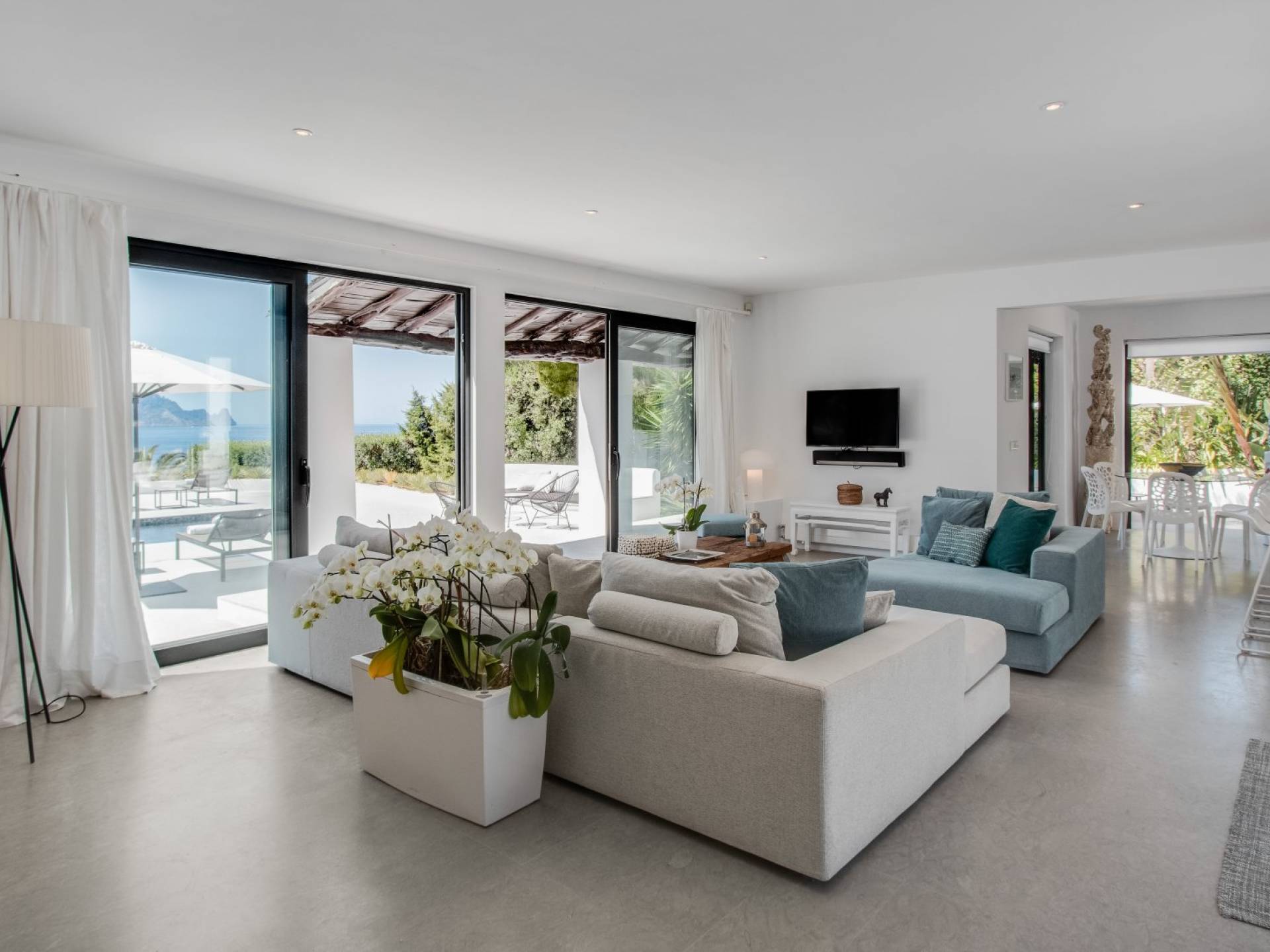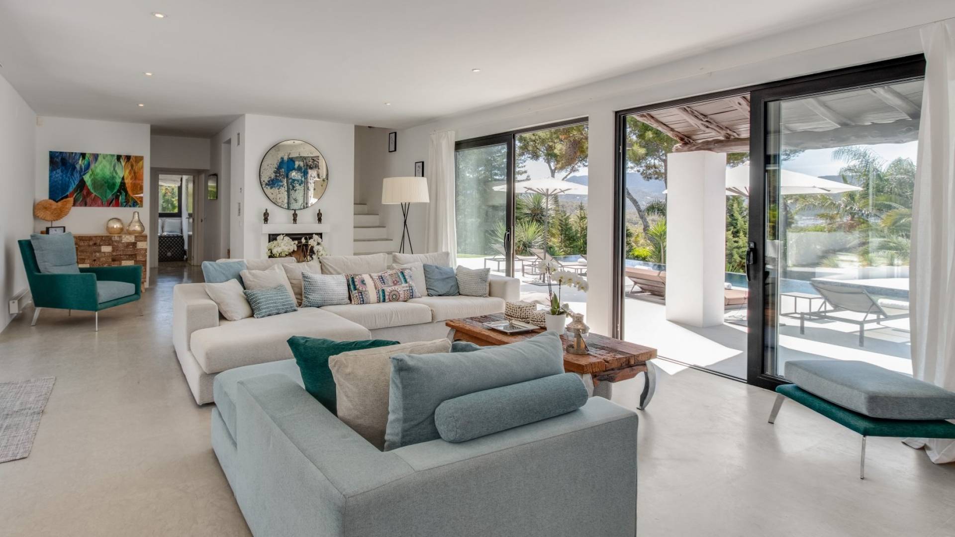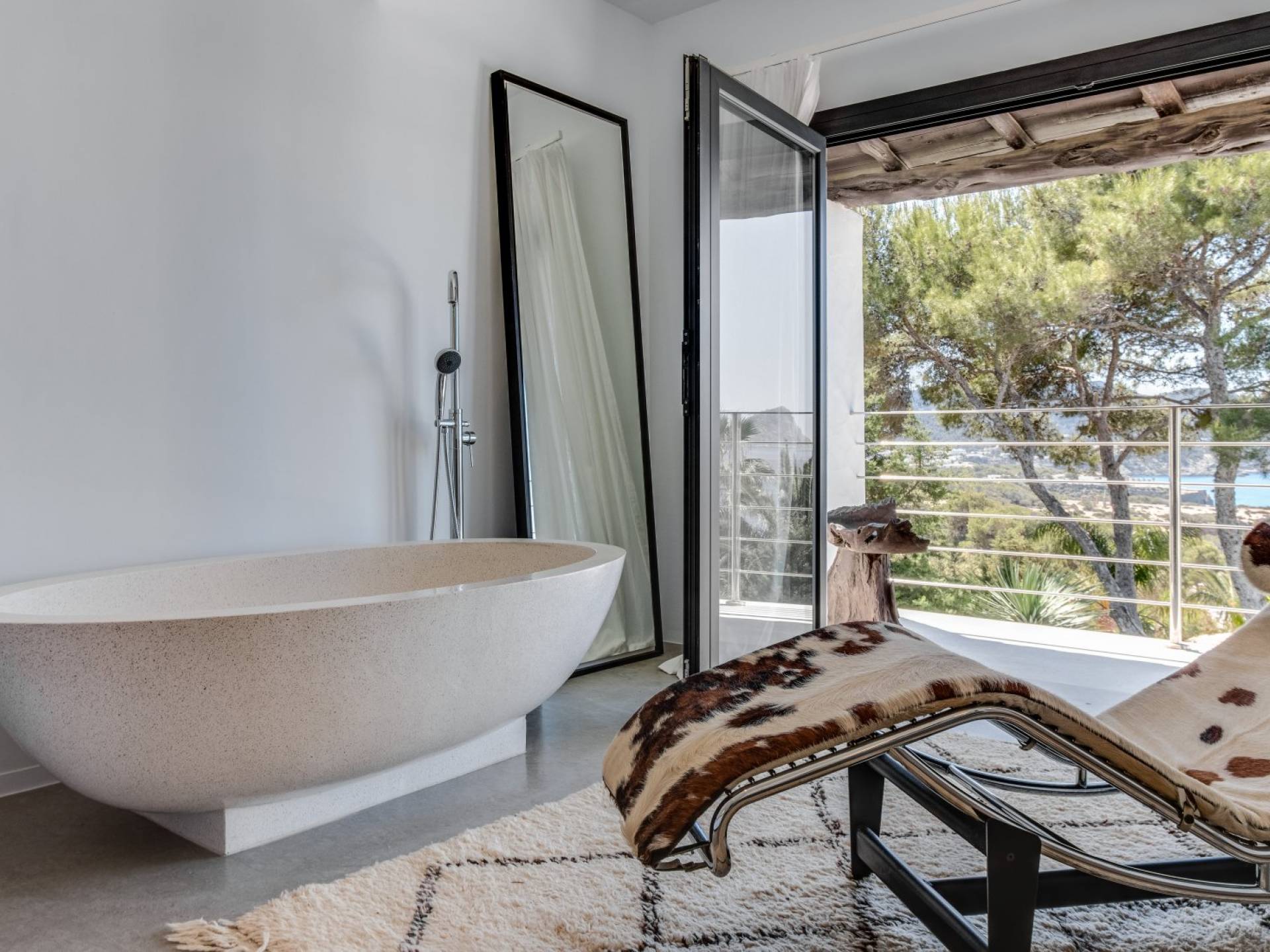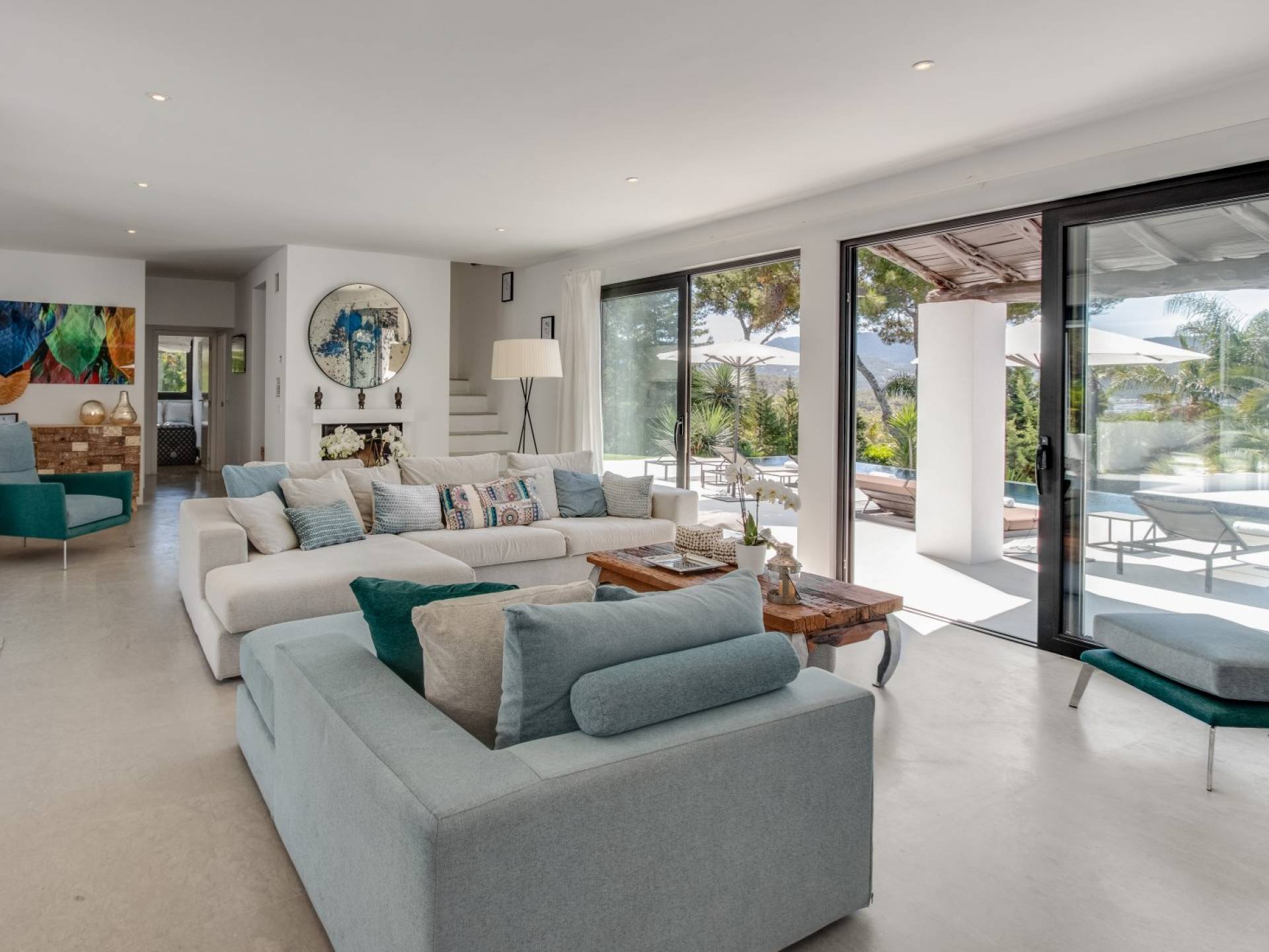 Es Vedra Style Villa Ibiza is an exclusive and secluded property situated on a hilltop only 250 meters away from the sea with a spectacular view to the open sea and amazing views of the mystical island of Es Vedra. The property is located in a quiet neighborhood adjacent to the beaches of Cala Conta and near to the village of San Jose. Some of Ibiza's best-secluded beaches are just a few minutes' walks or drive along the spectacular coast. Es Vedra Style is an ideal rental villa for families. With its hilltop location, the 3300 sqm plot has an almost flat, safe, beautiful green garden, surrounded by a high natural fence. Children can easily be supervised around the entire plot and the pool area.
