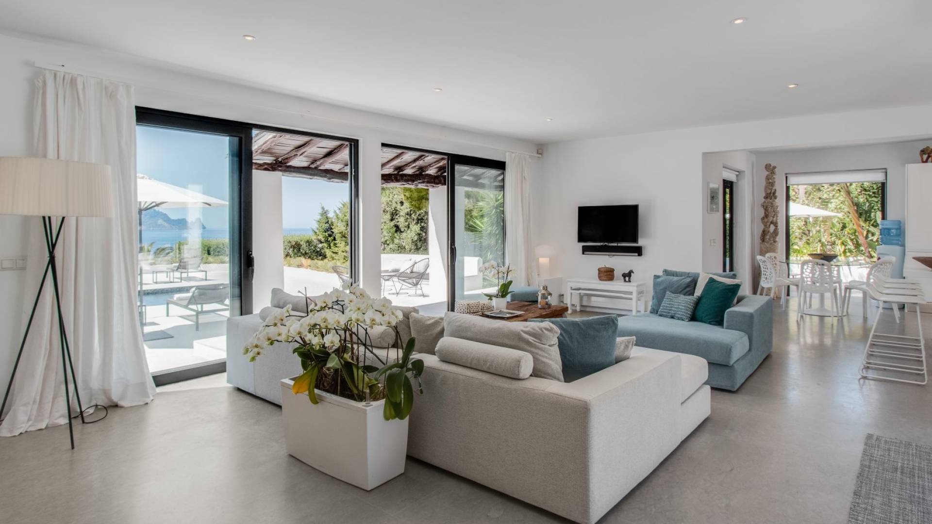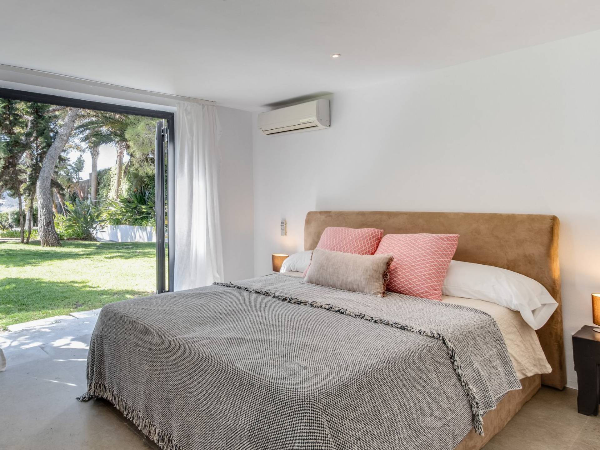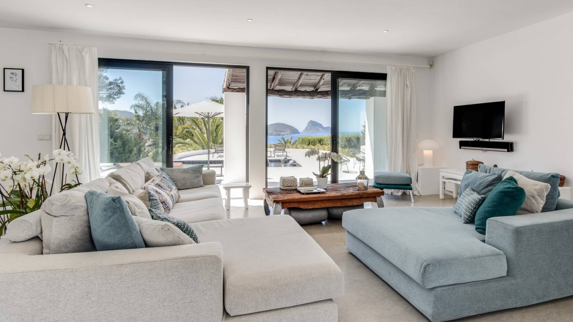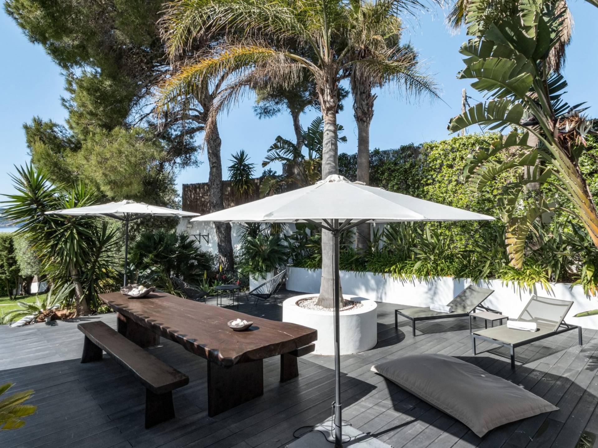 Es Vedra Style Villa Ibiza is an exclusive and secluded property situated on a hilltop only 250 meters away from the sea with a spectacular view to the open sea and amazing views of the mystical island of Es Vedra. The property is located in a quiet neighborhood adjacent to the beaches of Cala Conta and near to the village of San Jose. Some of Ibiza's best-secluded beaches are just a few minutes' walks or drive along the spectacular coast. Es Vedra Style is an ideal rental villa for families. With its hilltop location, the 3300 sqm plot has an almost flat, safe, beautiful green garden, surrounded by a high natural fence. Children can easily be supervised around the entire plot and the pool area.