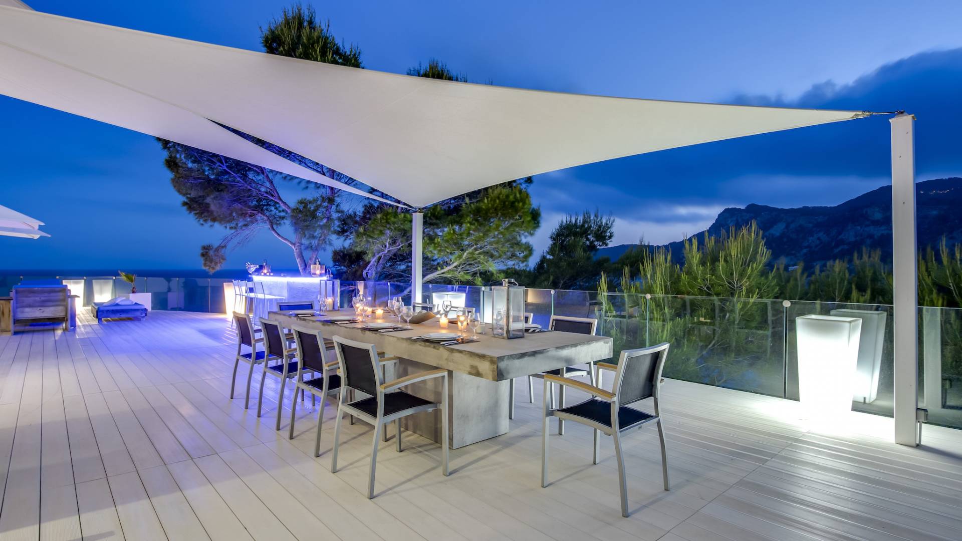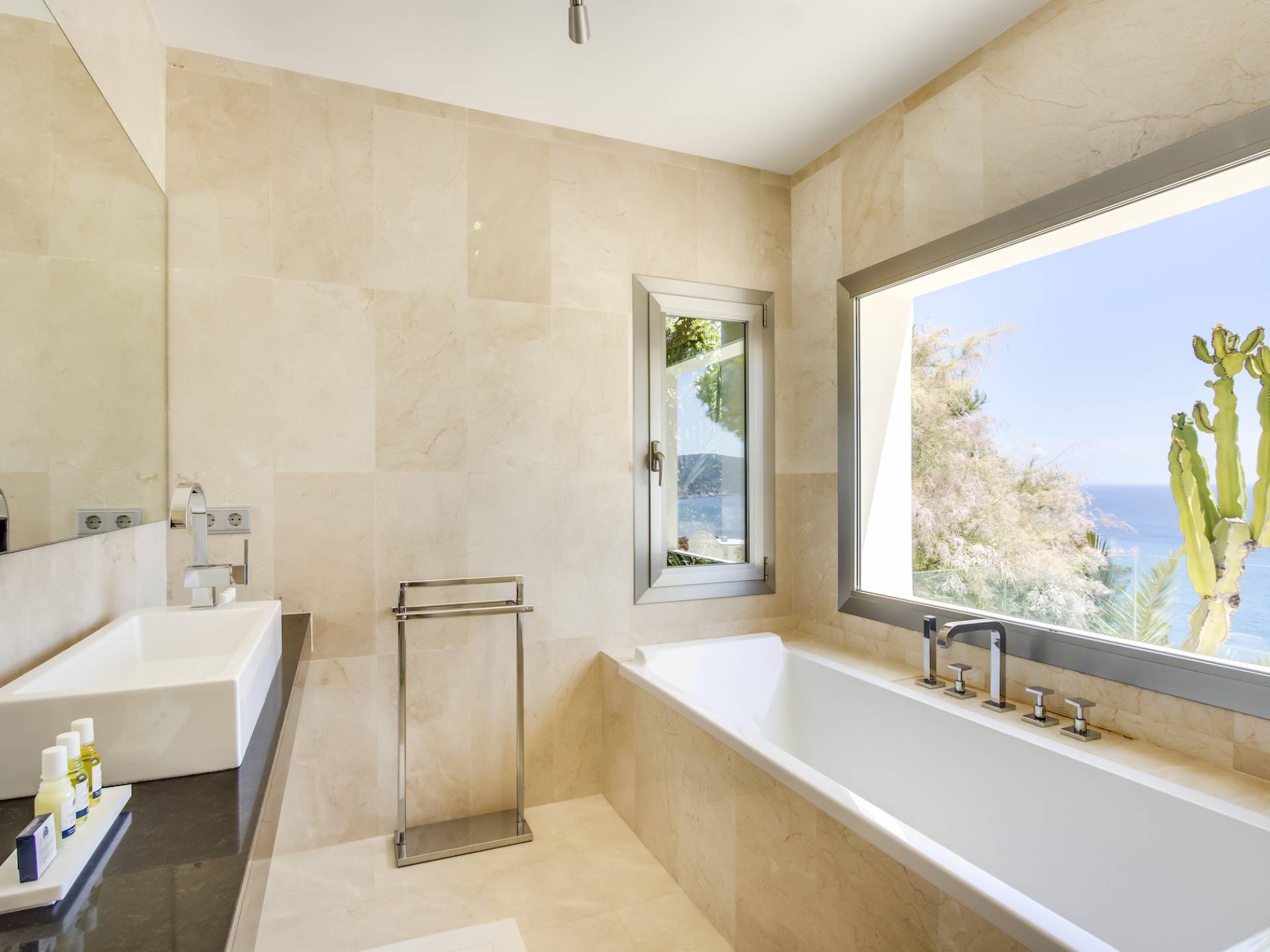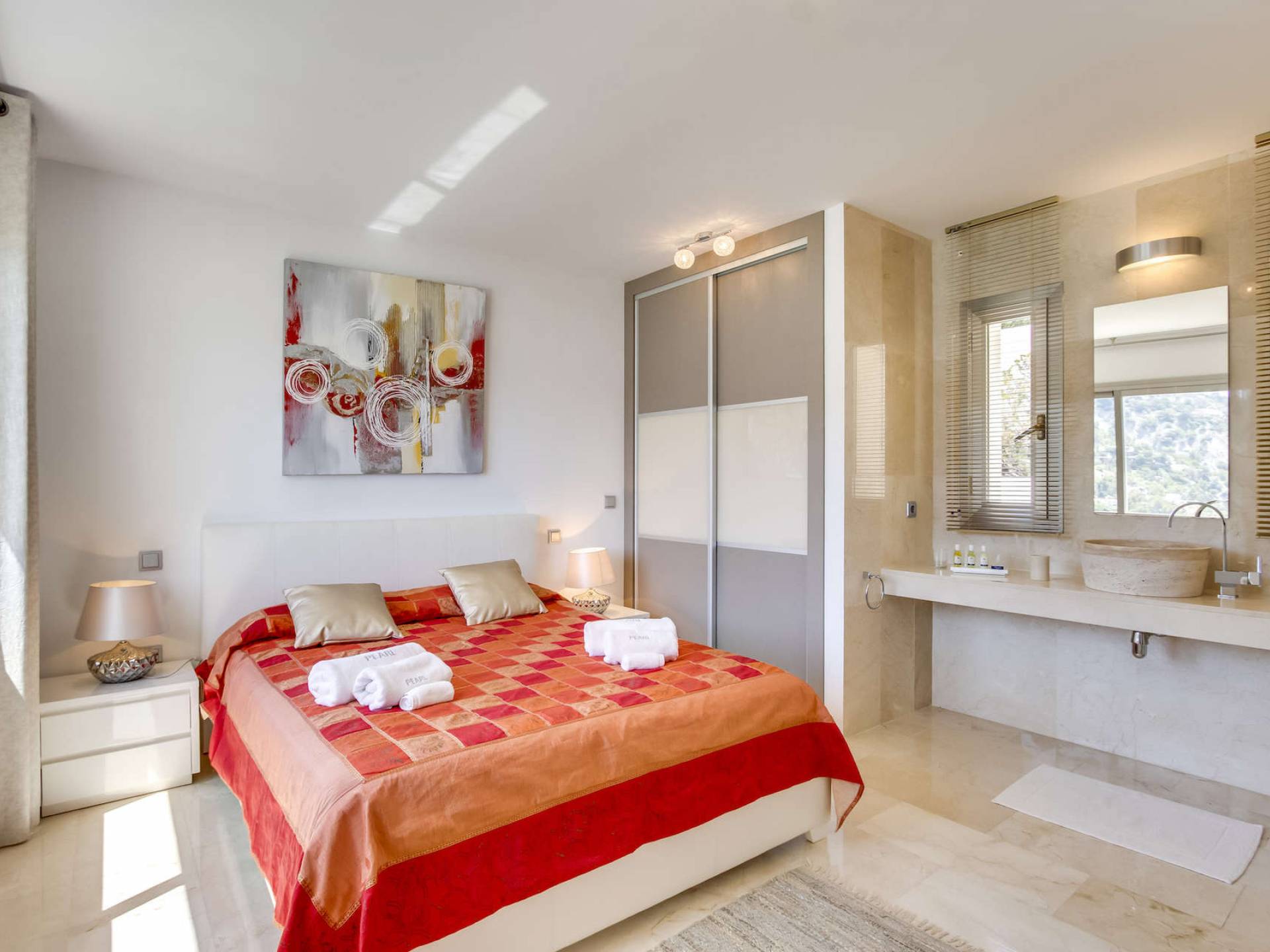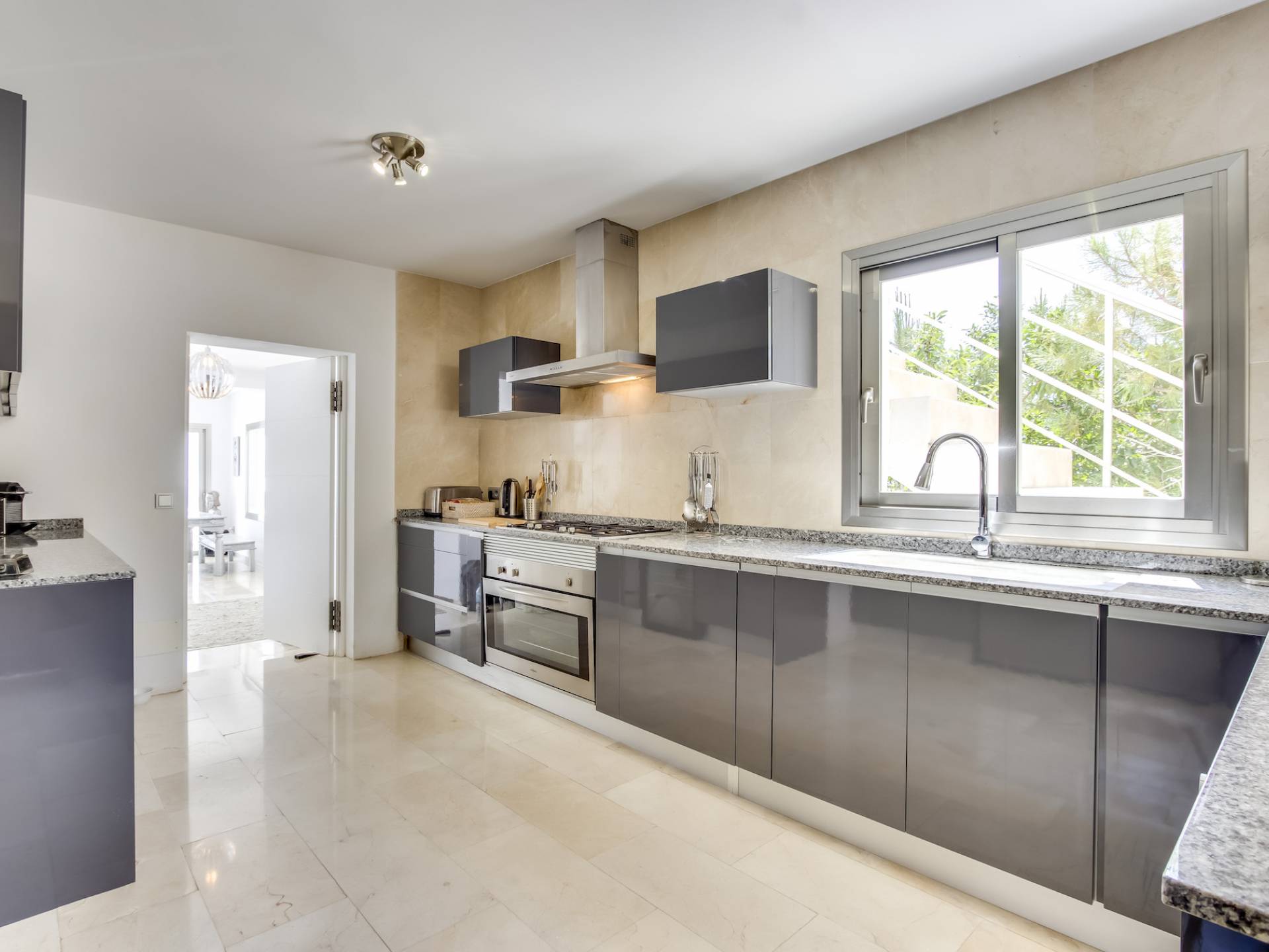 The living areas boast several lounge and dining areas and a very modern fully equipped kitchen. All rooms have been furnished with no expense spared and elegantly decorated. There are TVs in every room as well as air conditioning, and there is access to WiFi in all rooms and on the terraces. For added security, the property has an alarm and video surveillance system.