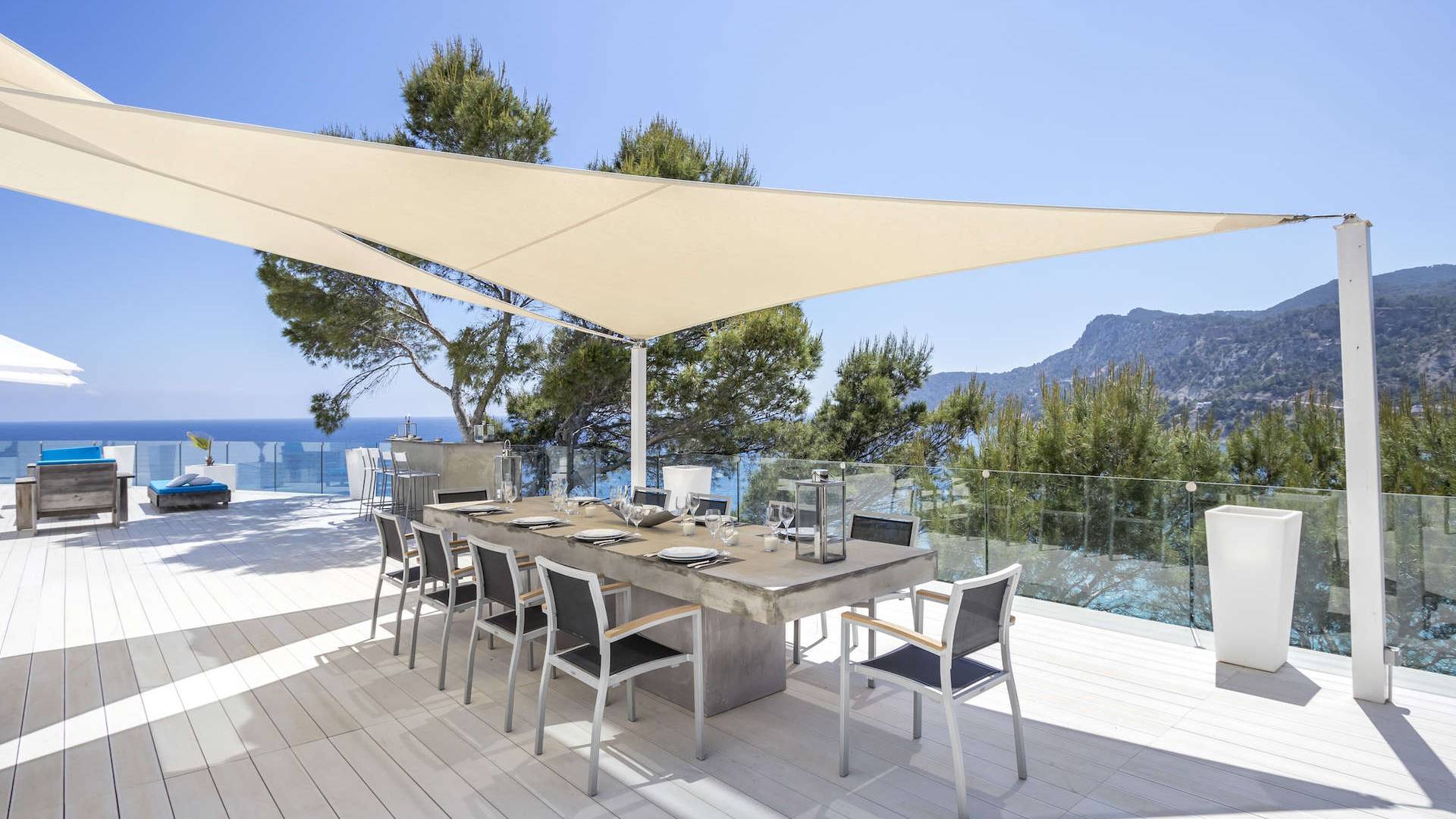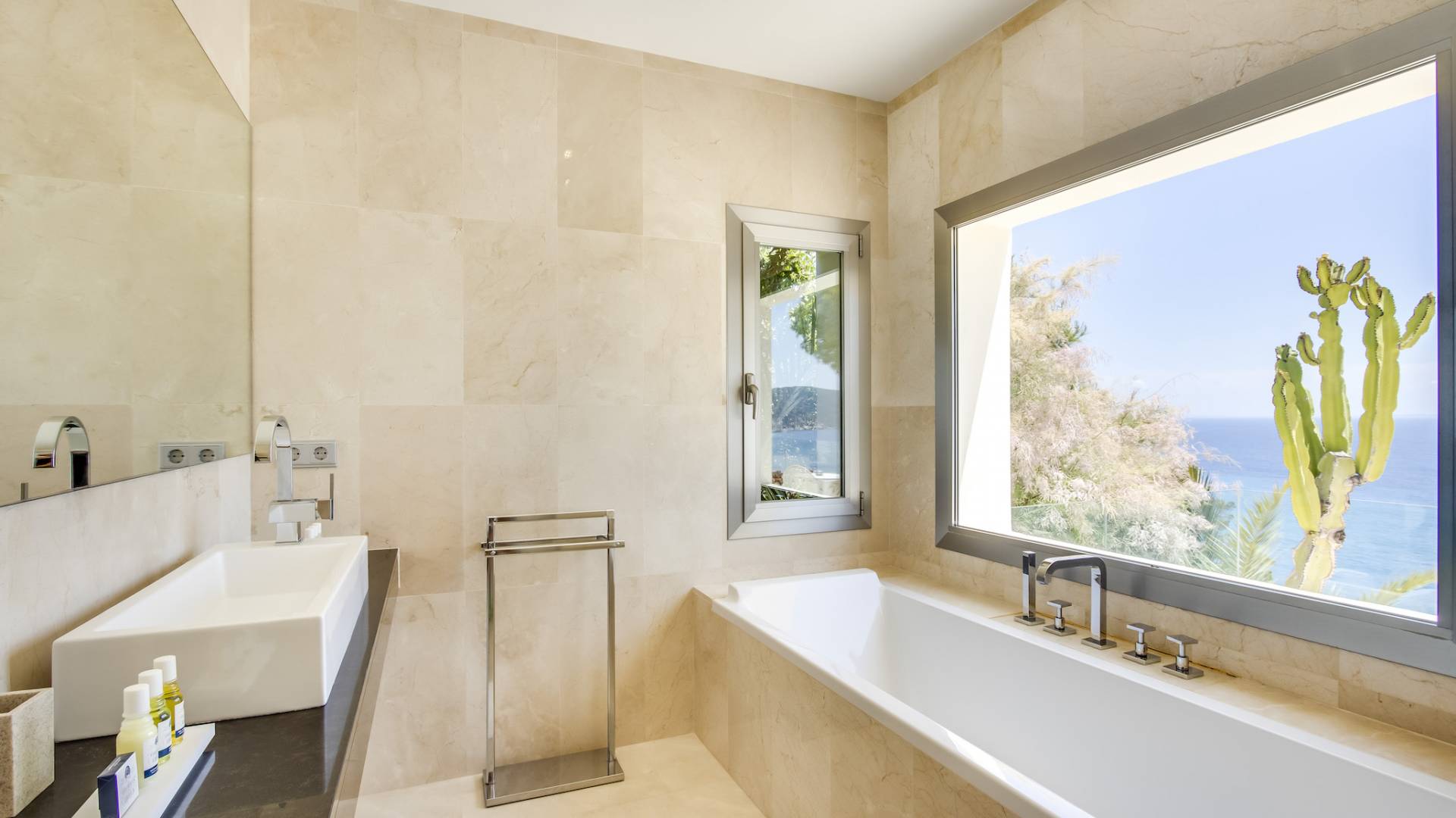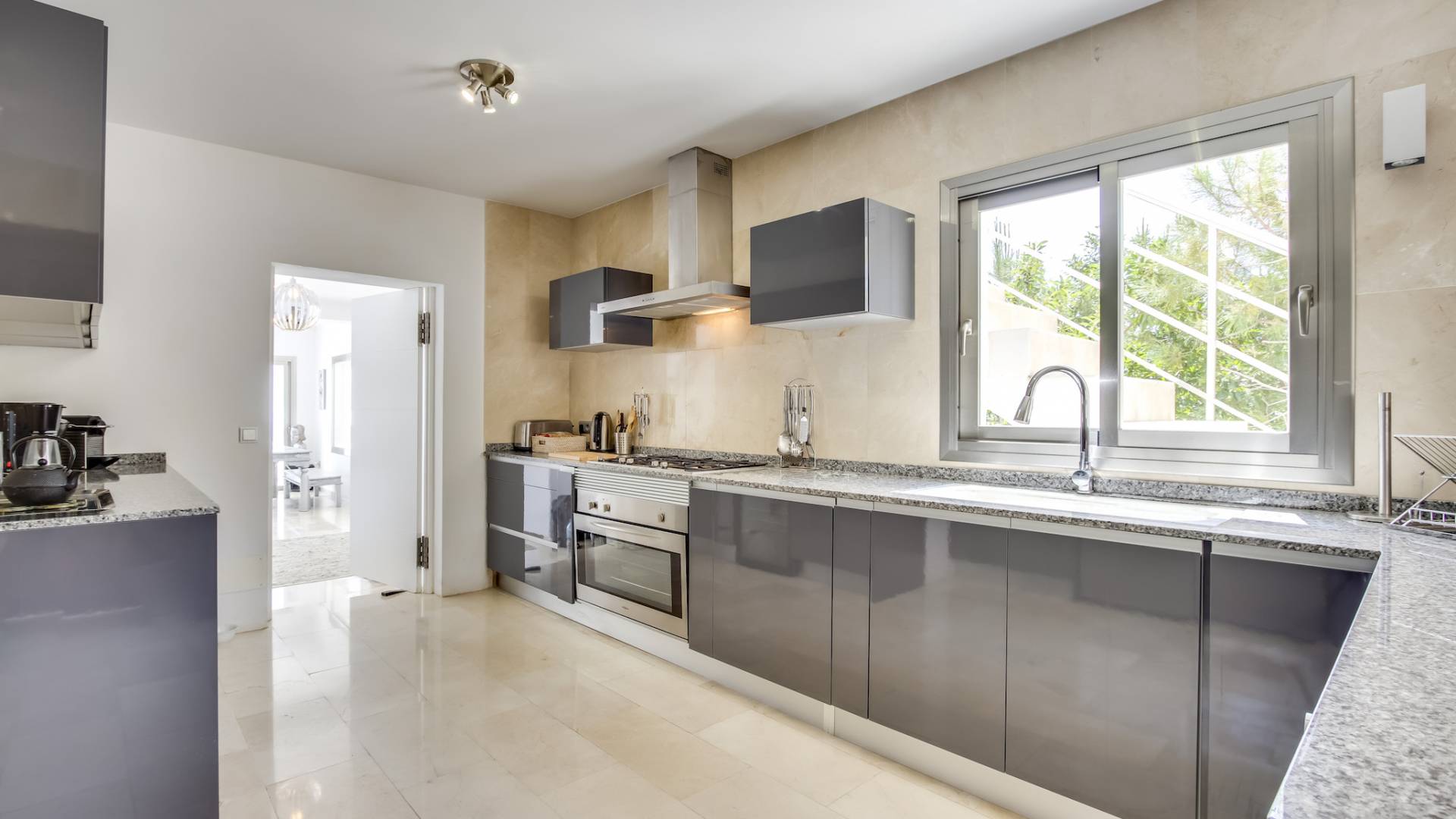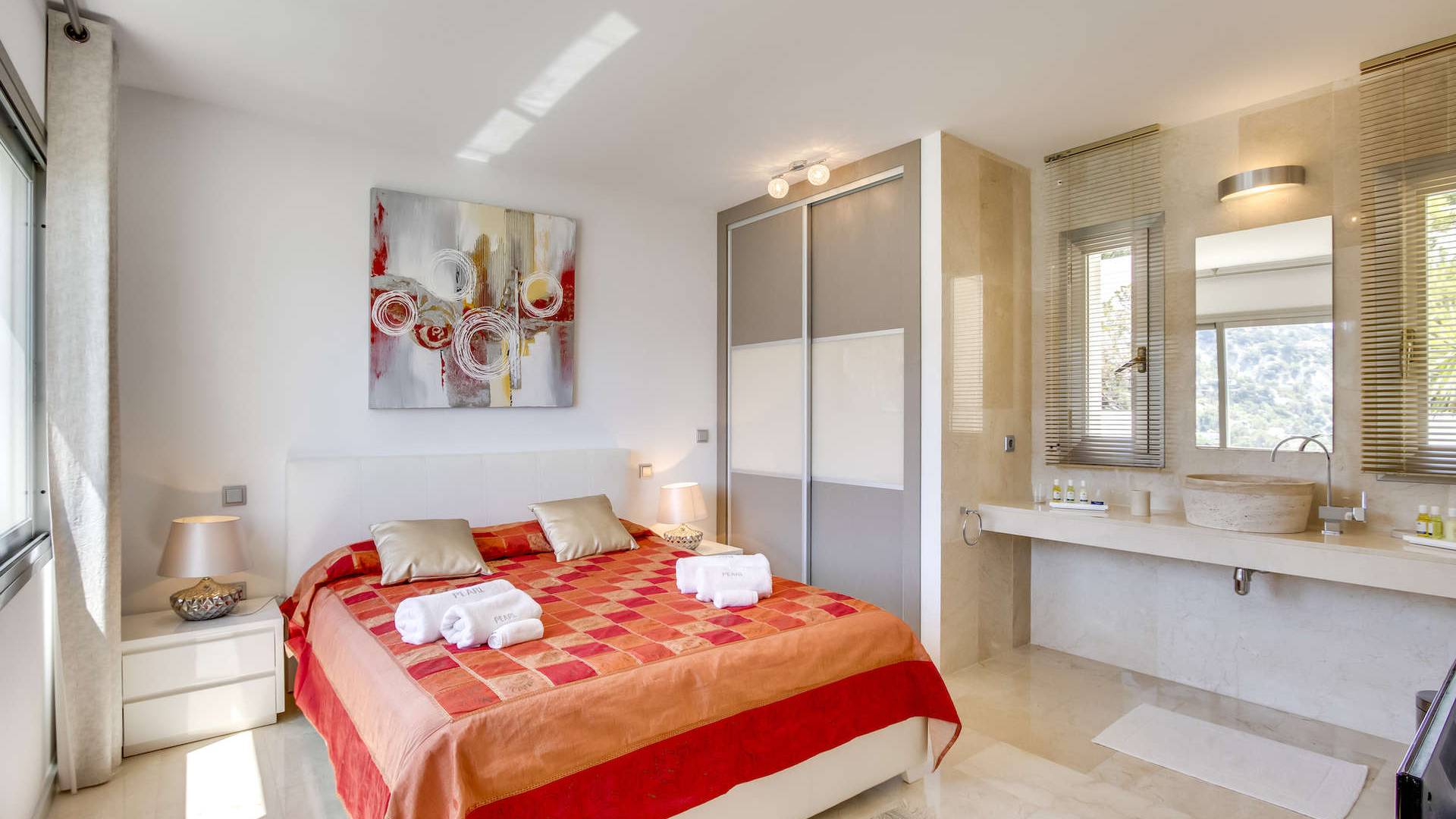 The living areas boast several lounge and dining areas and a very modern fully equipped kitchen. All rooms have been furnished with no expense spared and elegantly decorated. There are TVs in every room as well as air conditioning, and there is access to WiFi in all rooms and on the terraces. For added security, the property has an alarm and video surveillance system.