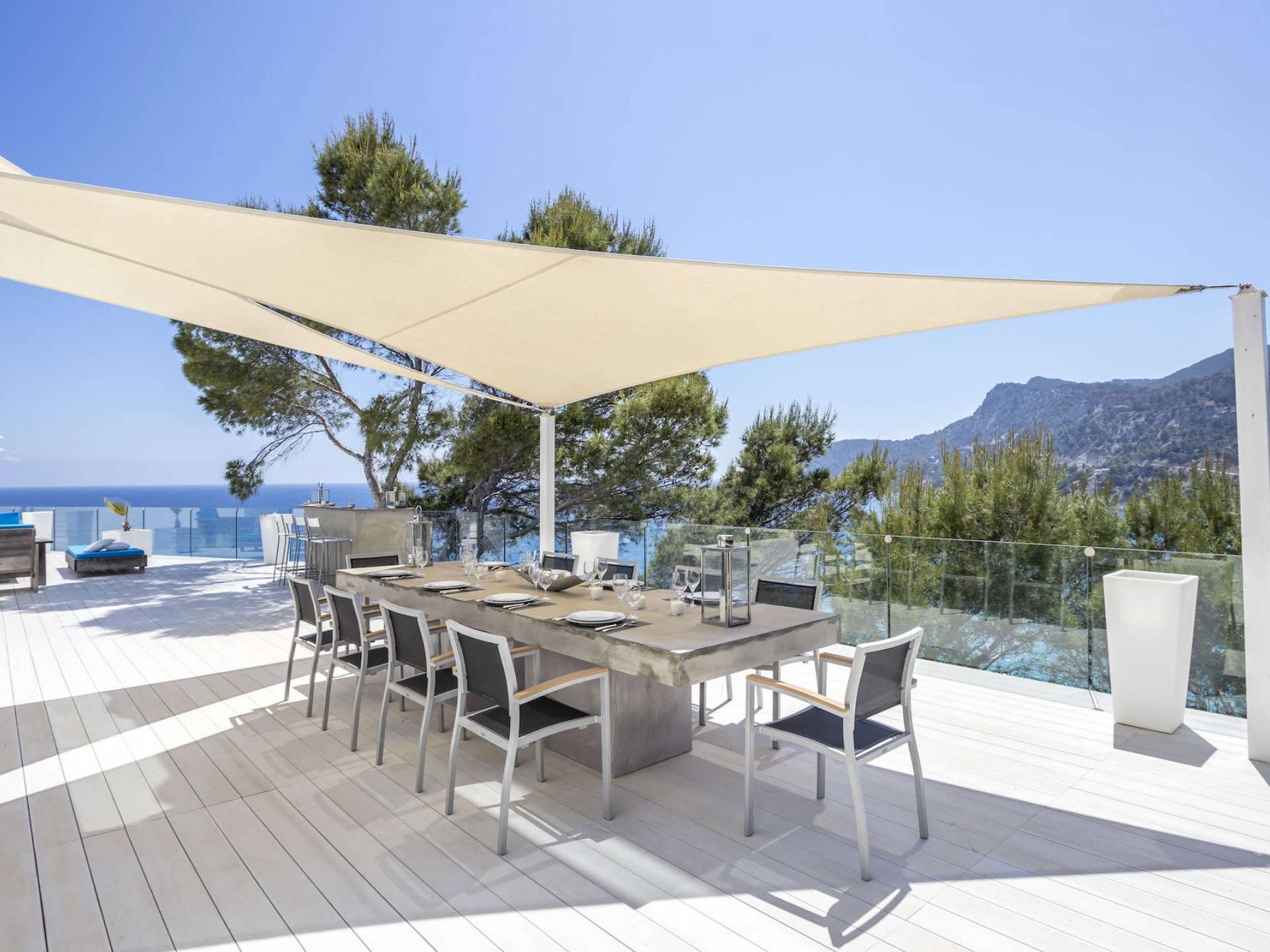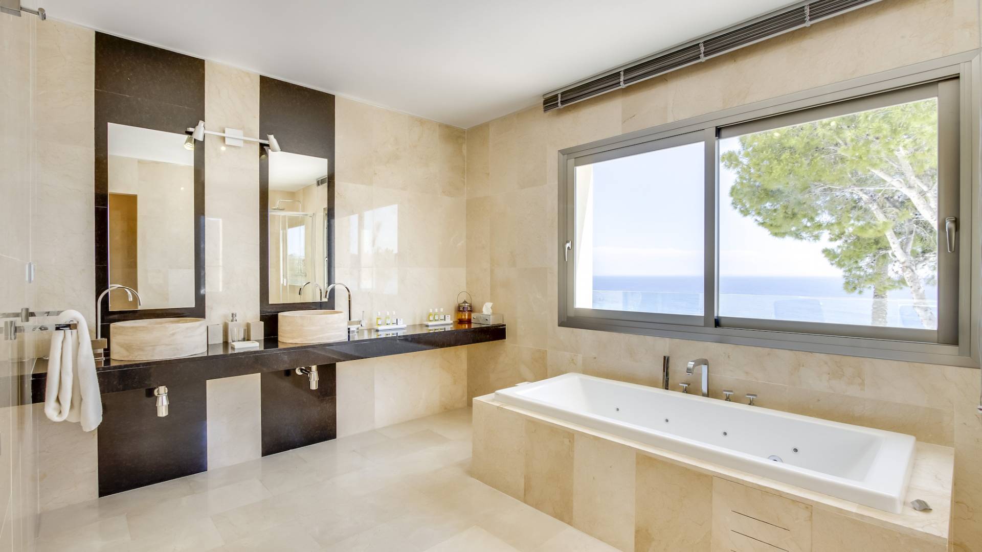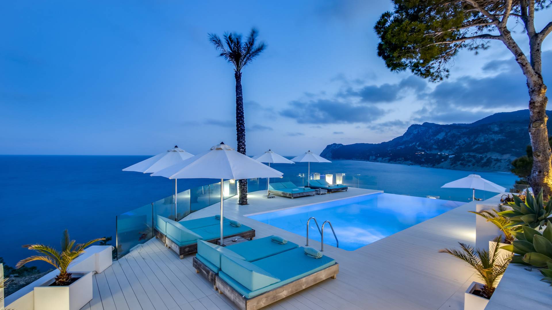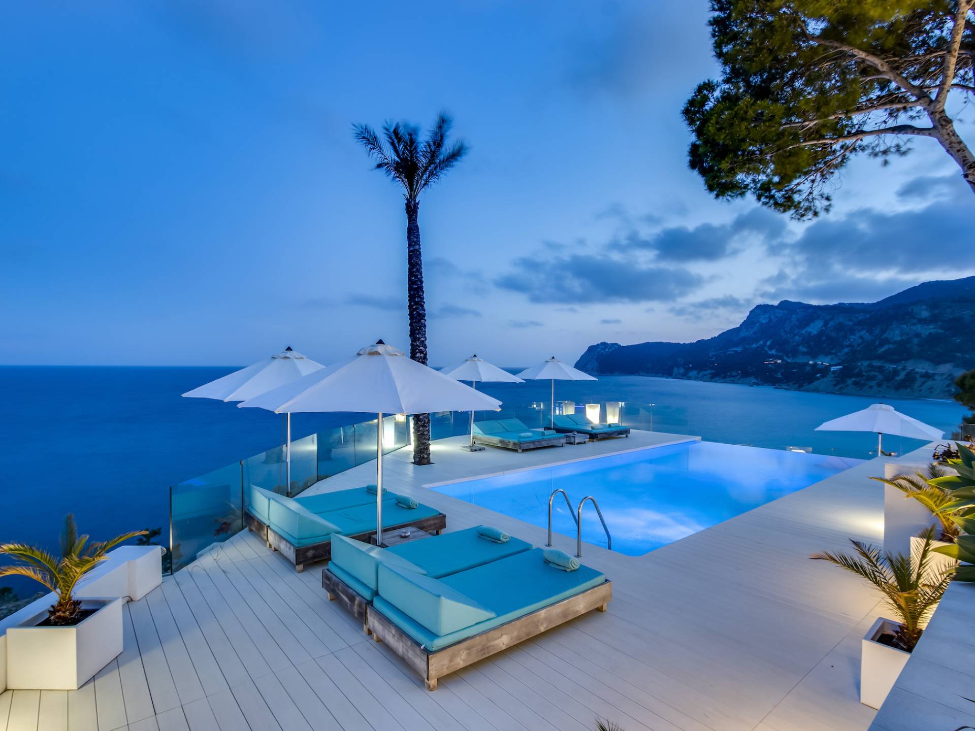 It has several large terraces, also with breathtaking views. Due to its excellent location, this luxury villa is extremely private, it also features a fantastic outdoor area with an infinity pool surrounded by single and double sun loungers, parking for 4 cars, several terraces, and chill-out areas, and outdoor dining areas.