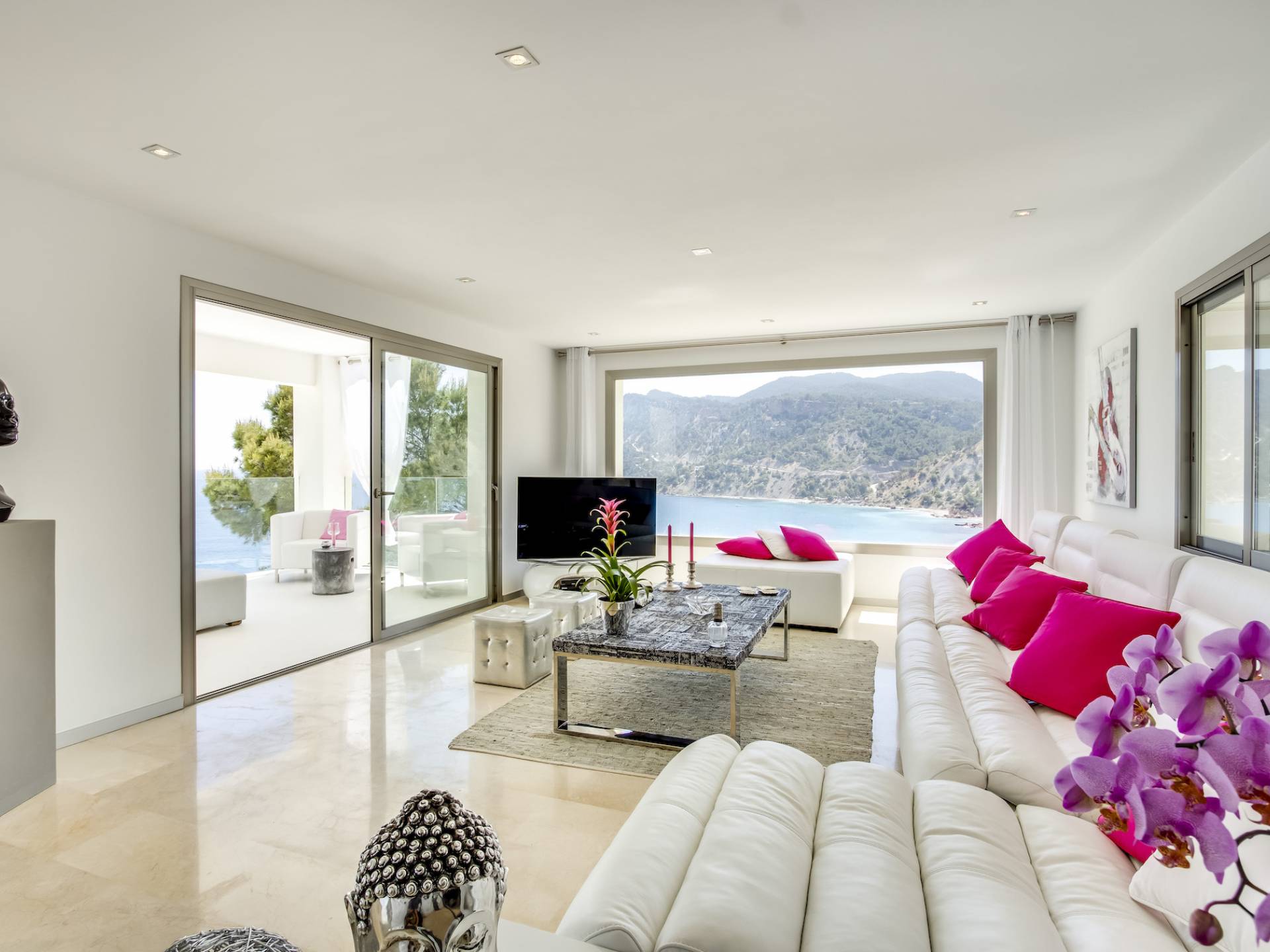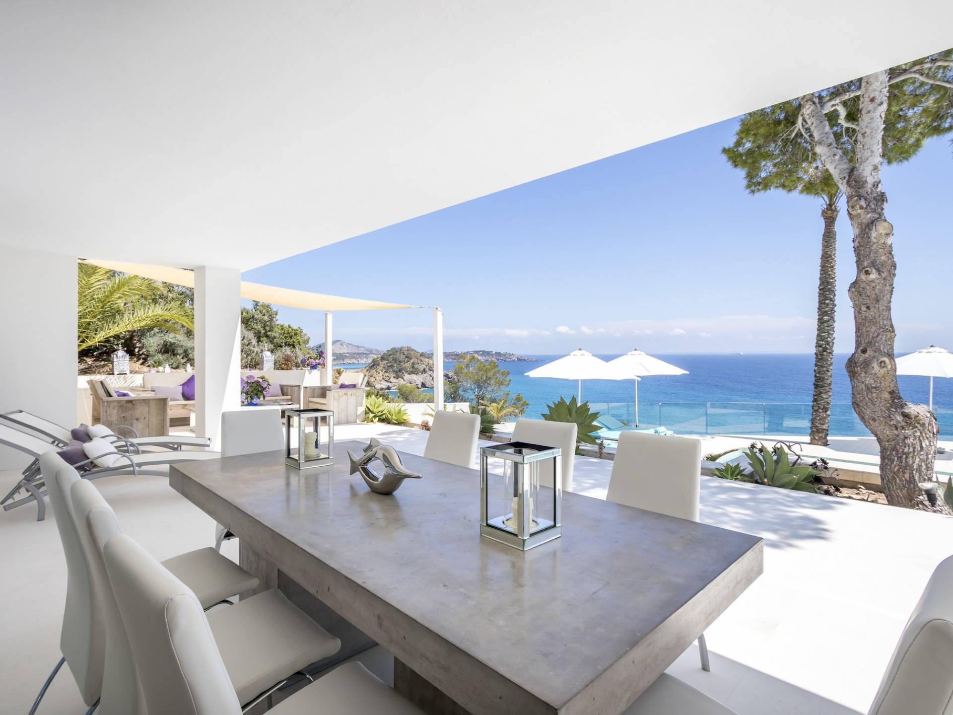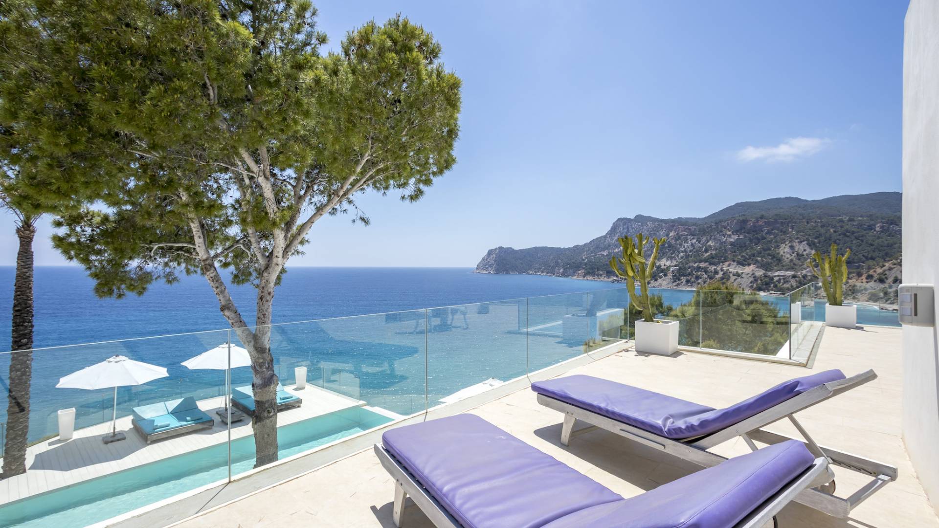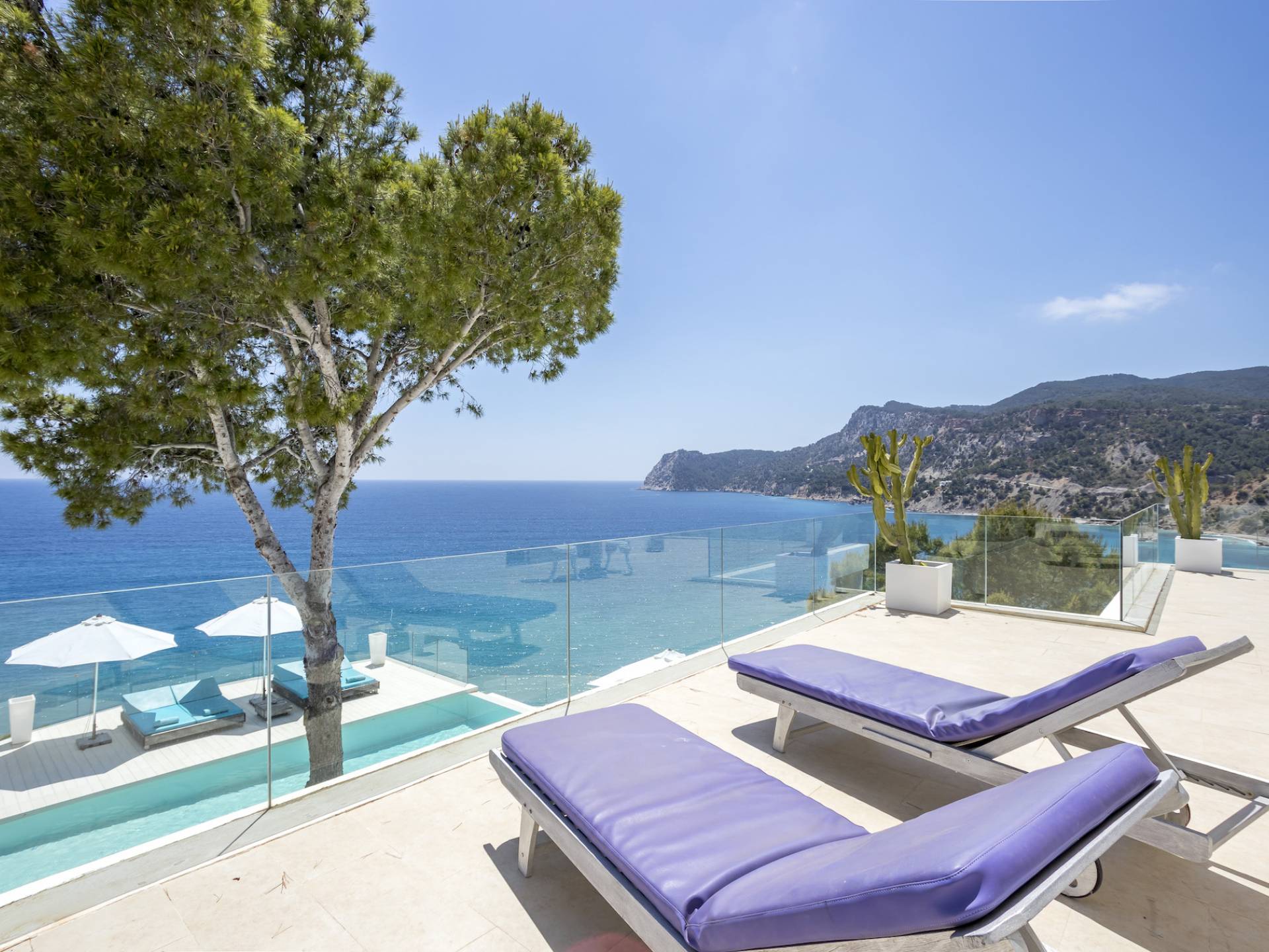Iconic first line Ibiza La Villa Es Cubells with sea access located in the golden mile with incredible sea views. This stunning, beautifully renovated villa located in Es Cubells is considered to be one of the island's top villas, it has amazing sea views and direct access to the sea. Situated a few minutes from Es Cubells village, 10 minutes from San José, and 25 minutes from Ibiza Town, this spectacular property is distributed over several levels and boasts amazing sea views from all the bedrooms.