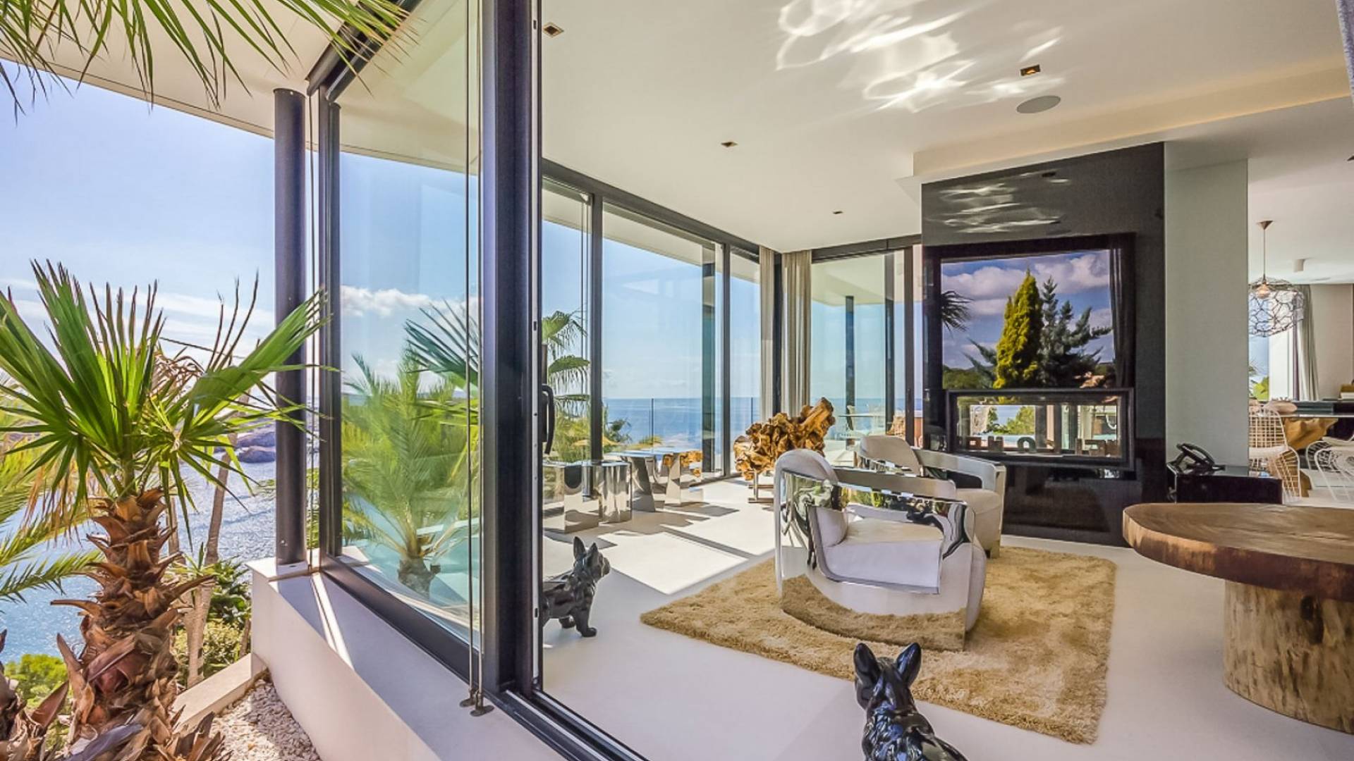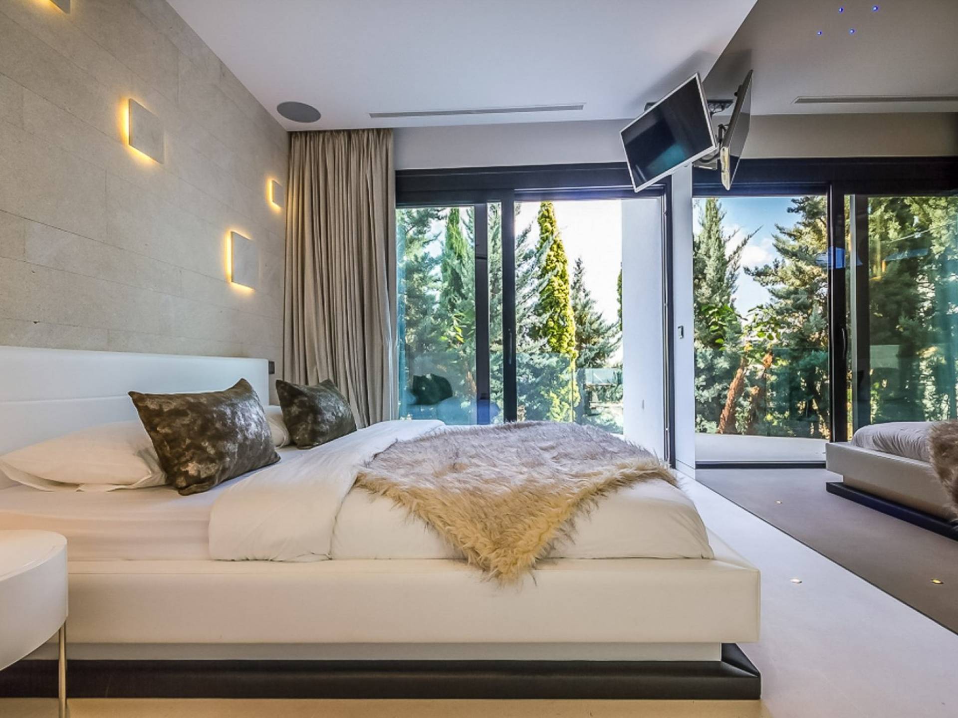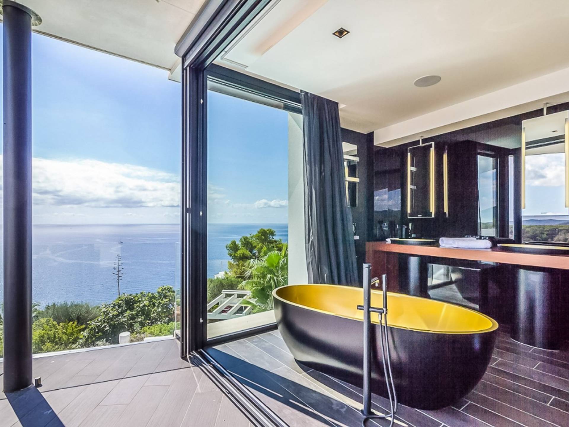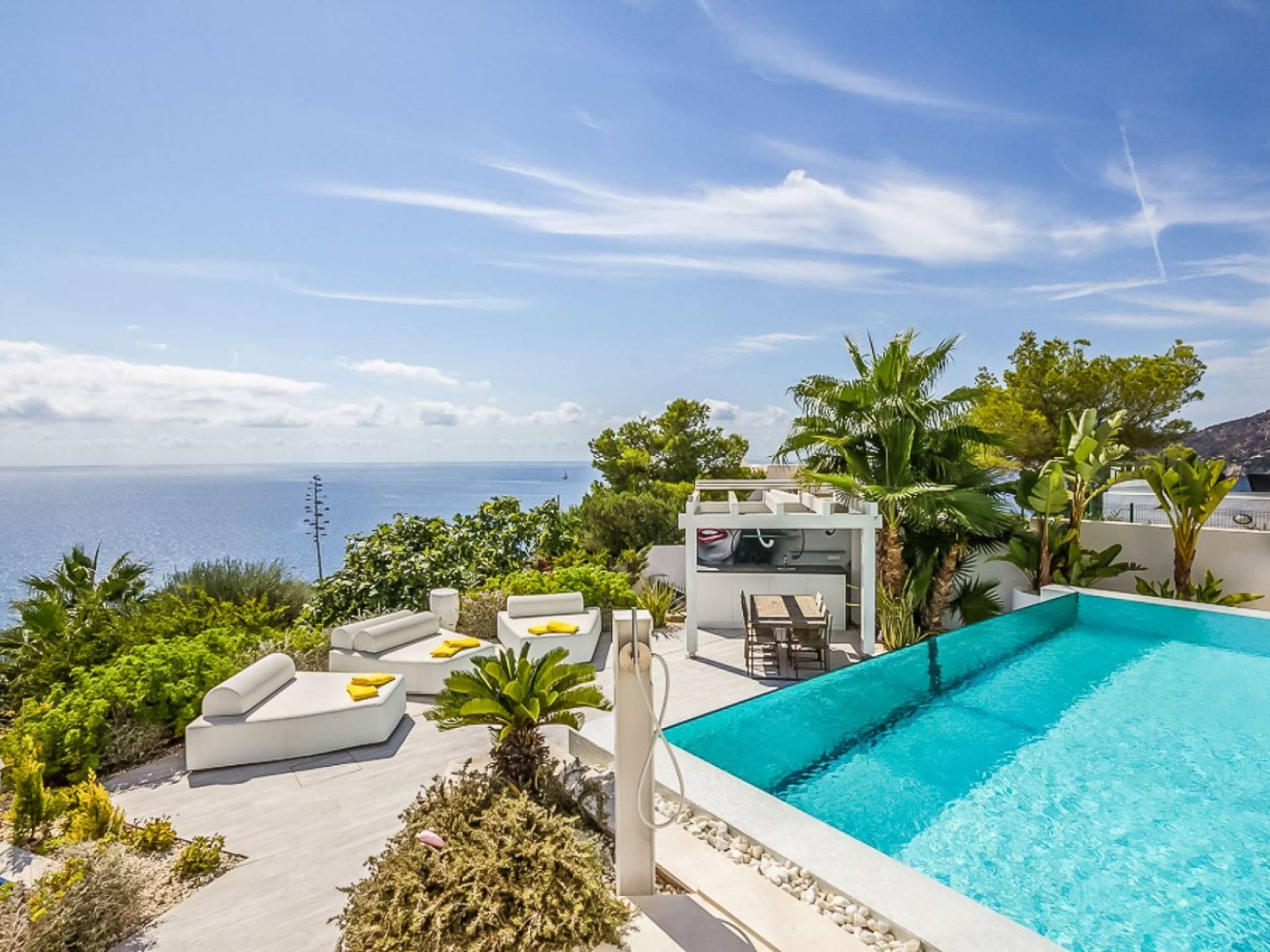 The terraced gardens around Villa Buena feature outside spaces that have been designed to make the most of the glorious sea views. Step outside onto the terrace to find a shaded dining table, seating ten. Alongside, the heated infinity pool slips away to a glass wall overlooking a further sun terrace with an al-fresco bar. The bar area offers another dining area, seating six, a Sonos sound system, and a barbeque. Relax on one of the giant loungers for a great view of the pool and the house or, in the other direction, the sparkling Mediterranean Sea.