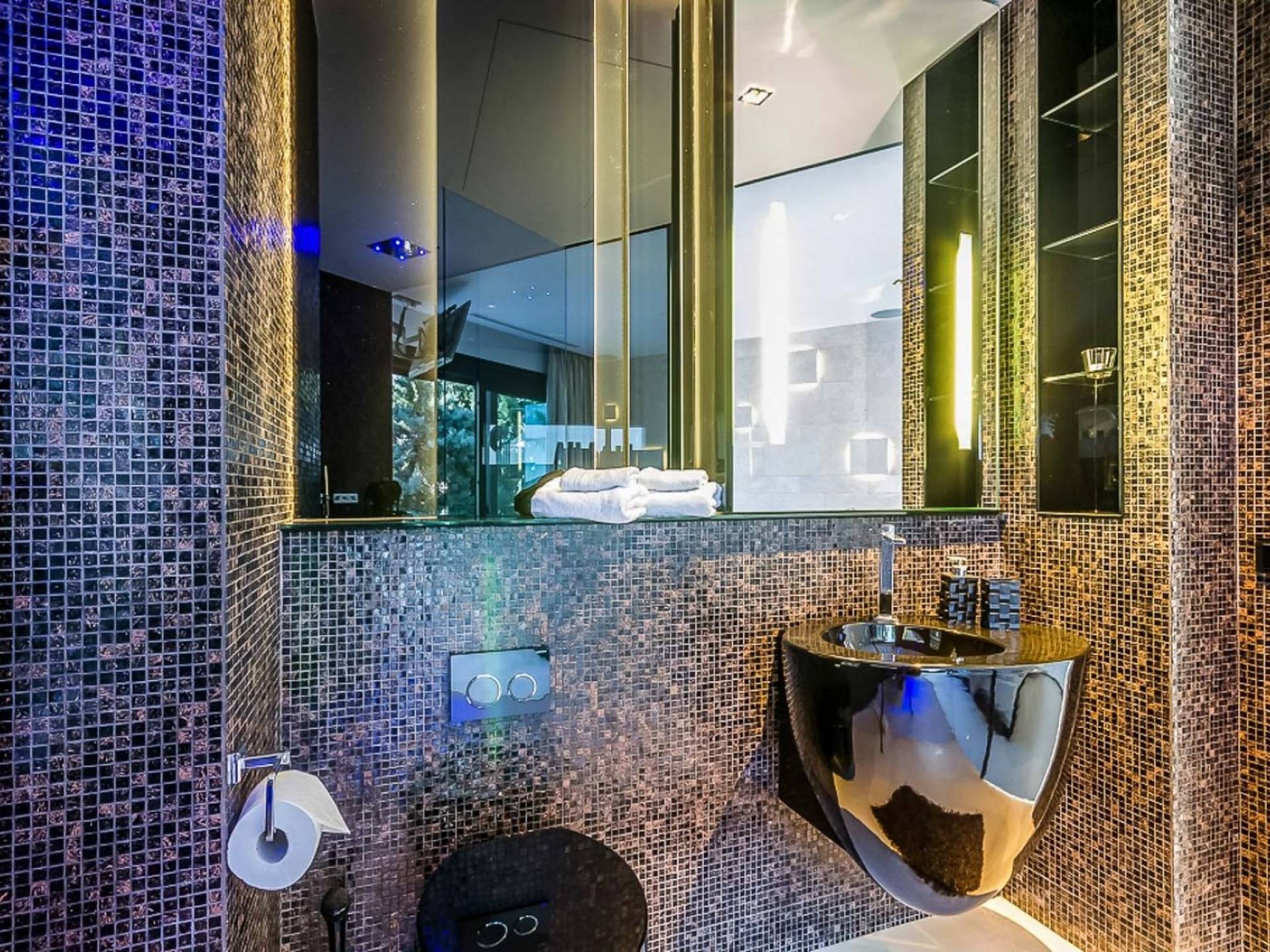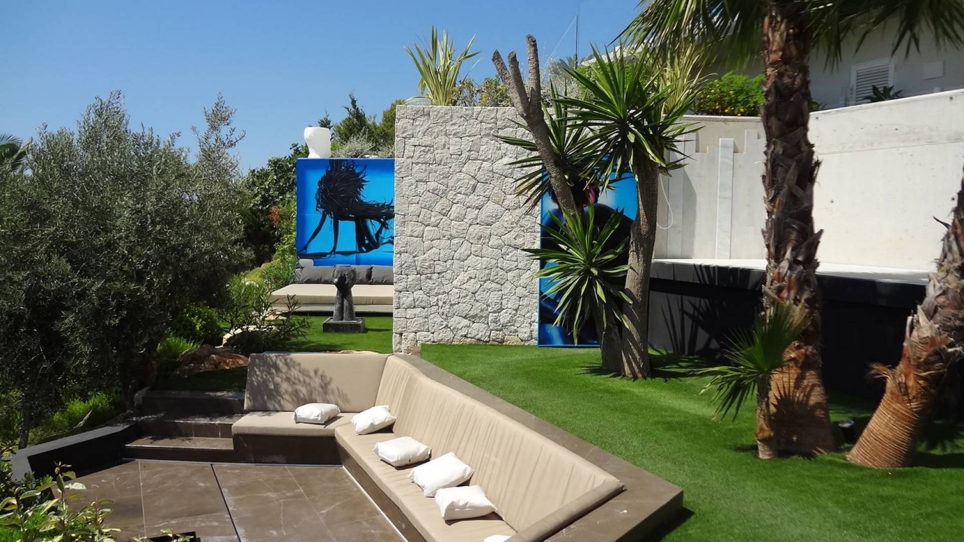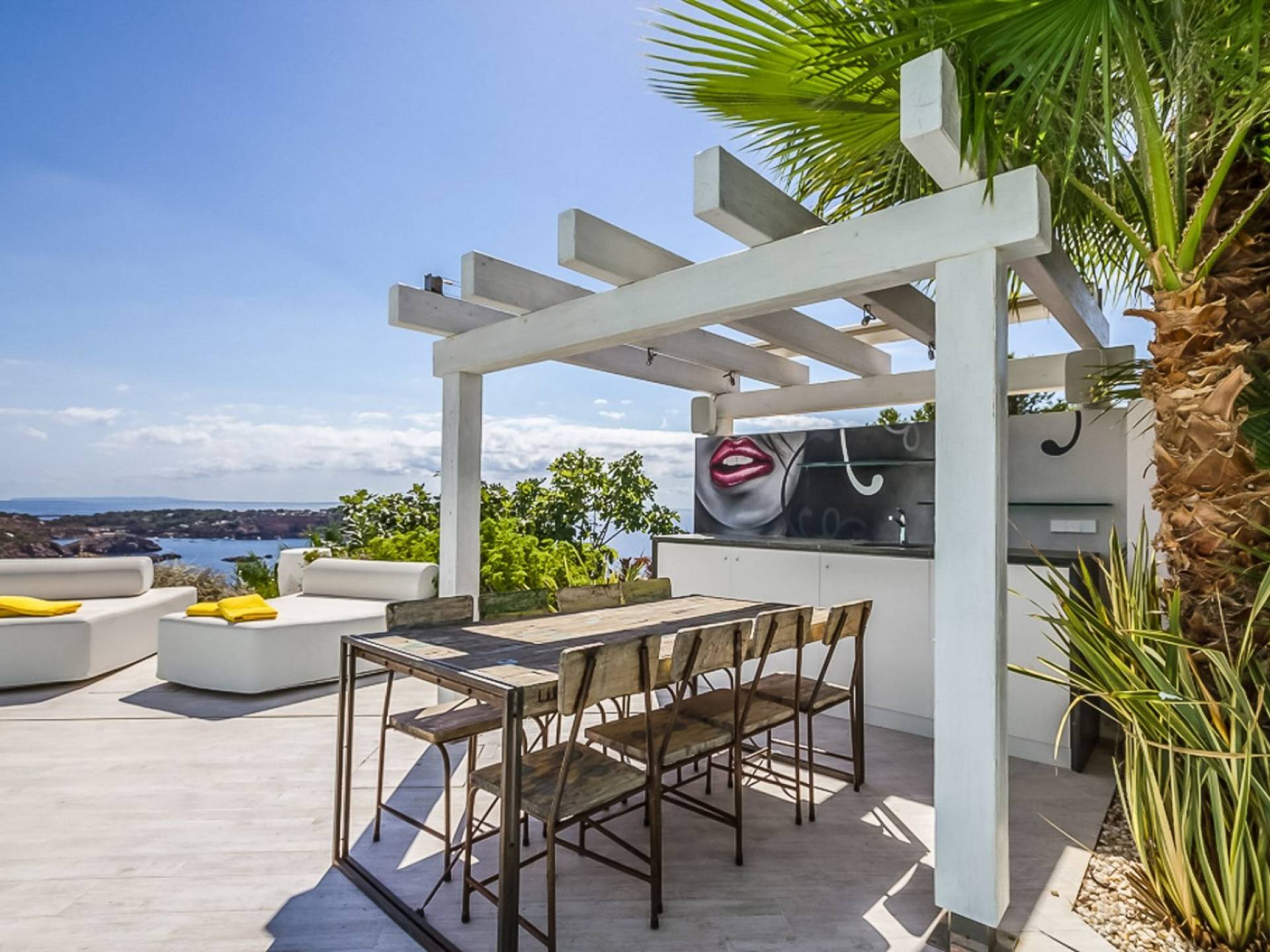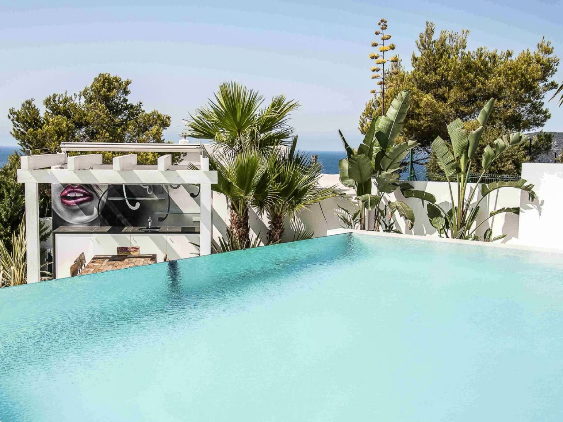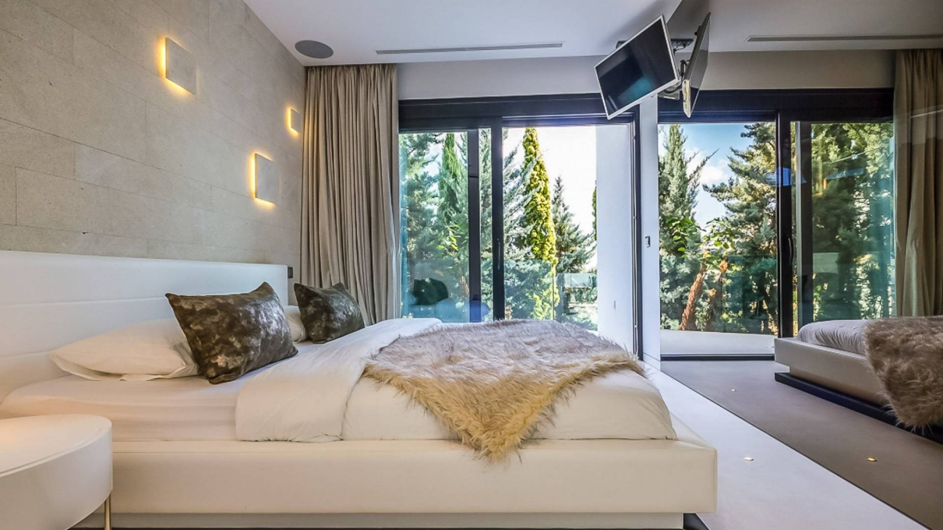 The terraced gardens around Villa Buena feature outside spaces that have been designed to make the most of the glorious sea views. Step outside onto the terrace to find a shaded dining table, seating ten. Alongside, the heated infinity pool slips away to a glass wall overlooking a further sun terrace with an al-fresco bar. The bar area offers another dining area, seating six, a Sonos sound system, and a barbeque. Relax on one of the giant loungers for a great view of the pool and the house or, in the other direction, the sparkling Mediterranean Sea.