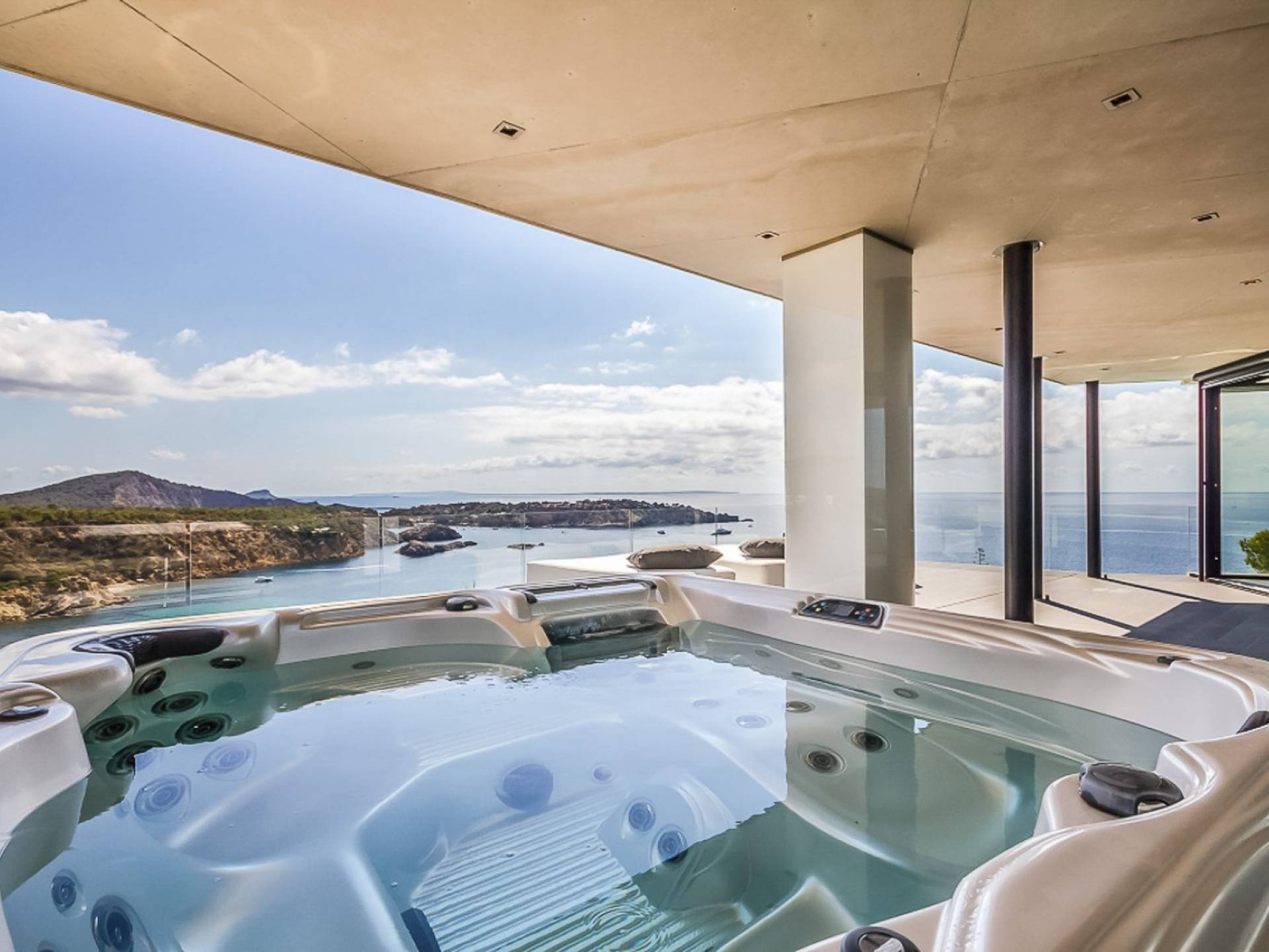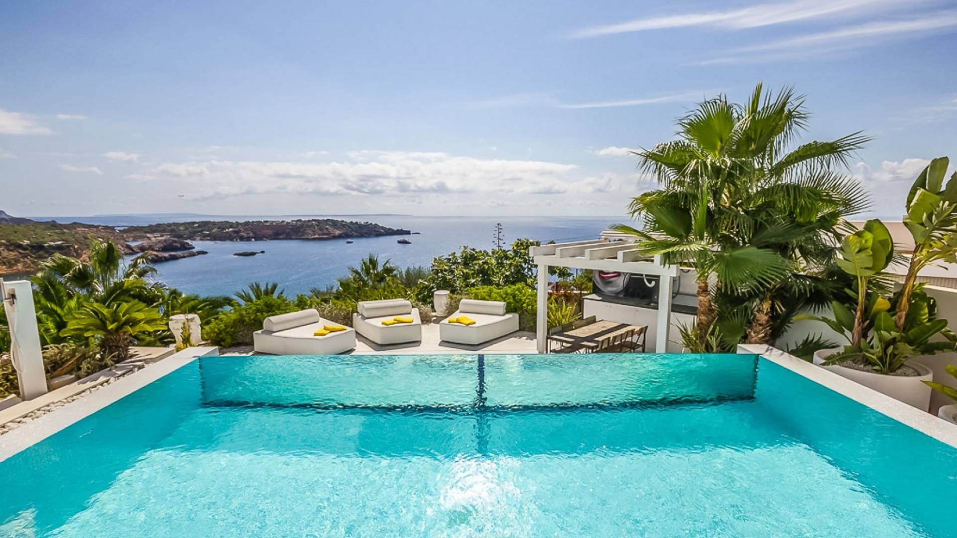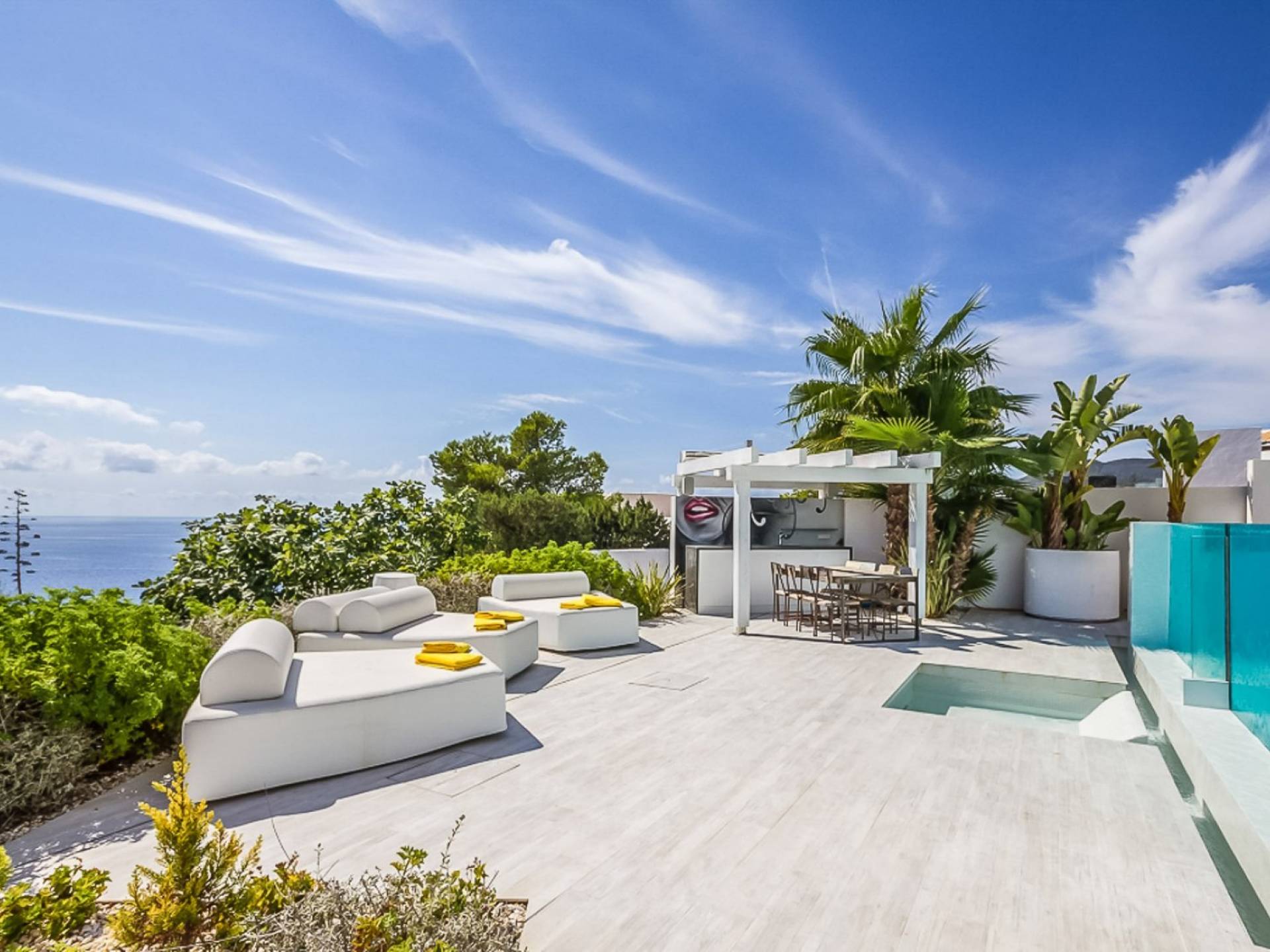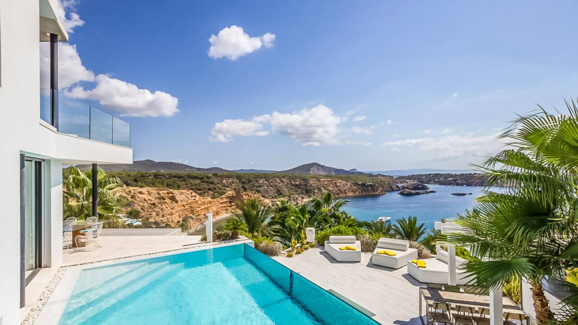 Villa Buena Ibiza is a luxury villa rental with 3 bedrooms and a private pool. This striking modern home occupies a commanding position above the beautiful bay of Es Torrent, affording wonderful views across the sparkling waters of the bay and the craggy cliffs and coves of Ibiza’s south coast.