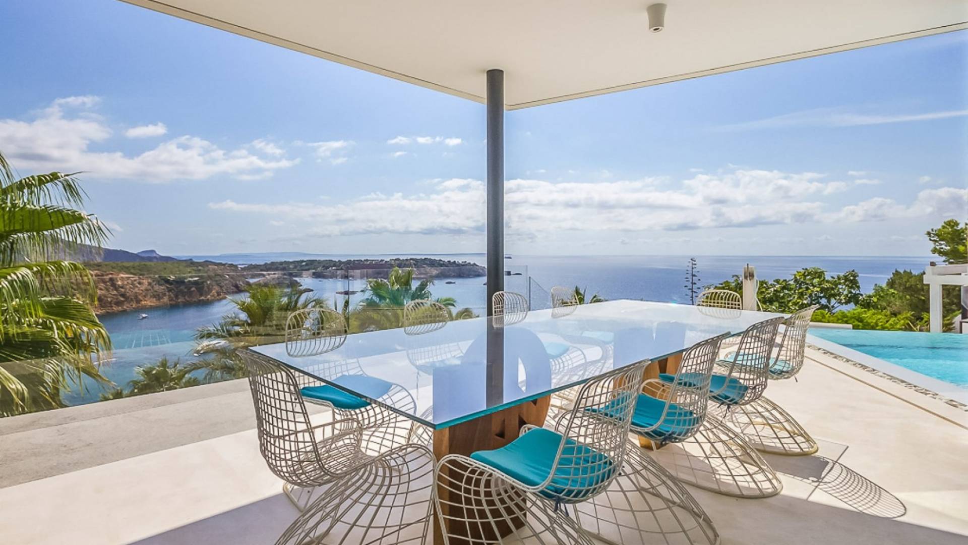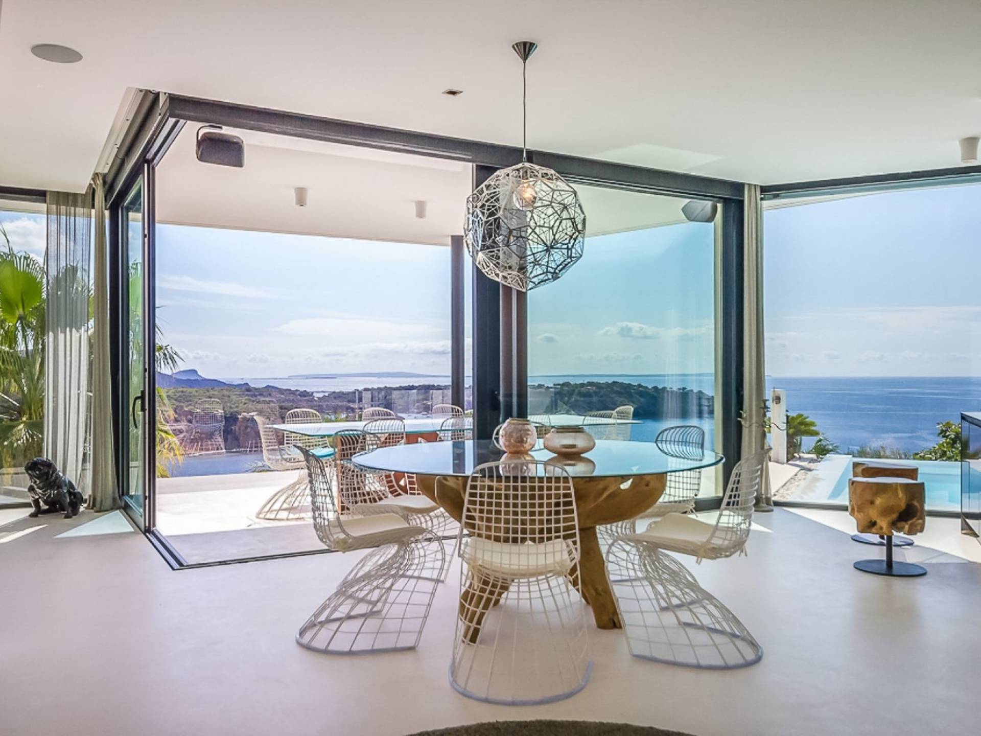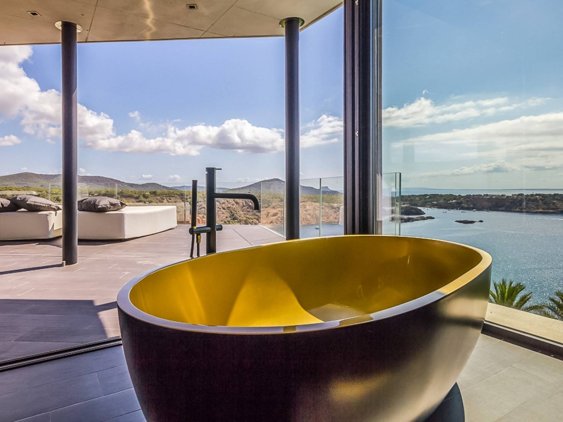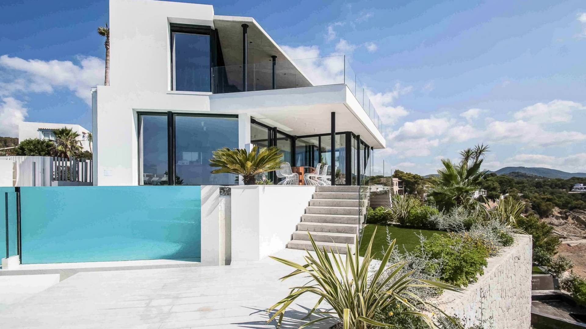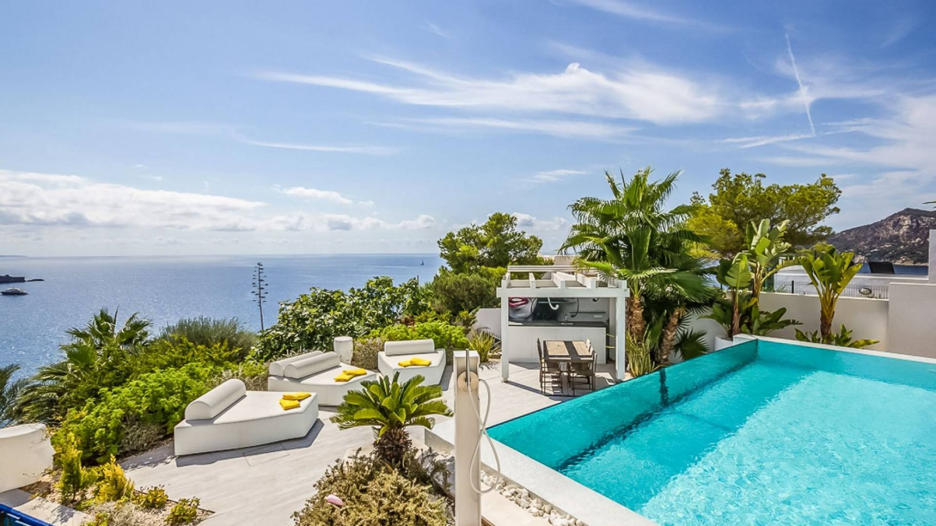 Villa Buena Ibiza is a luxury villa rental with 3 bedrooms and a private pool. This striking modern home occupies a commanding position above the beautiful bay of Es Torrent, affording wonderful views across the sparkling waters of the bay and the craggy cliffs and coves of Ibiza’s south coast.