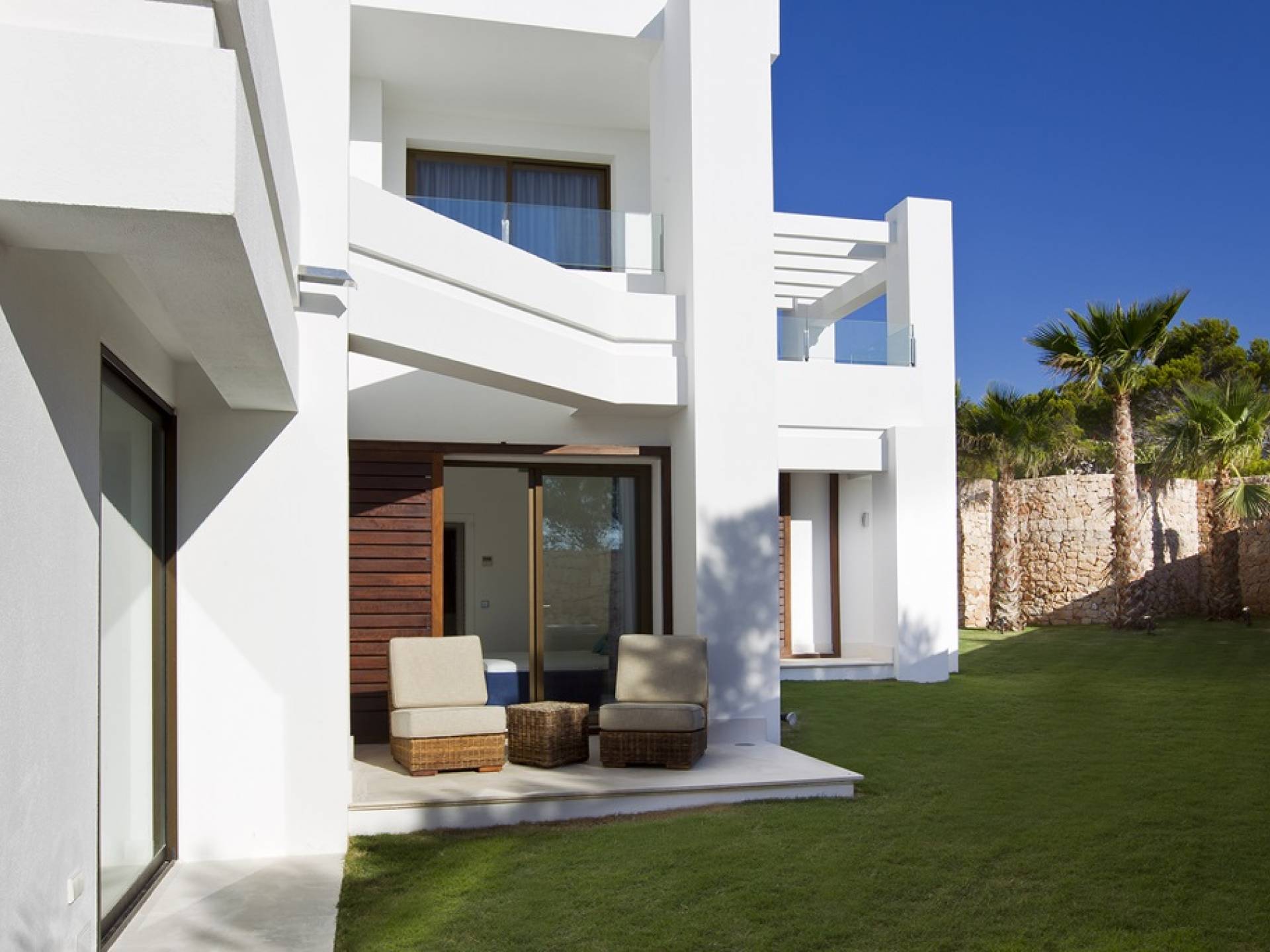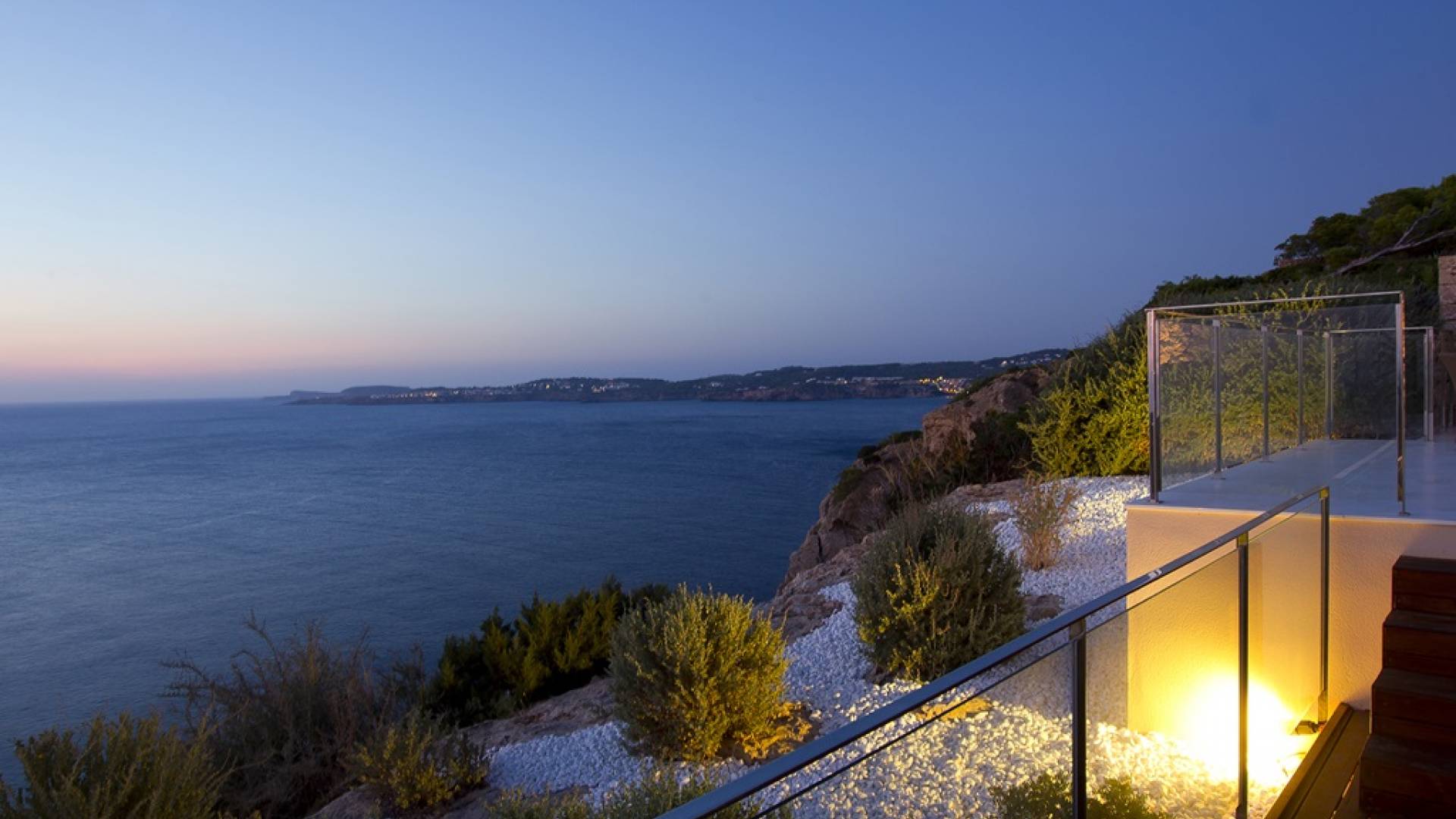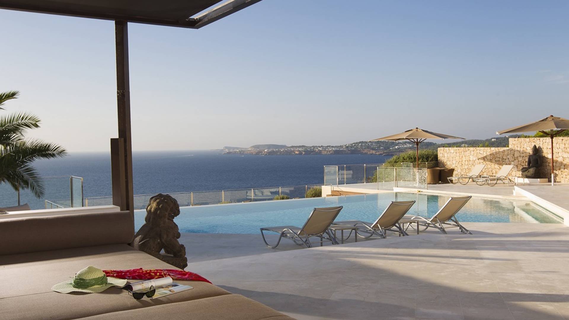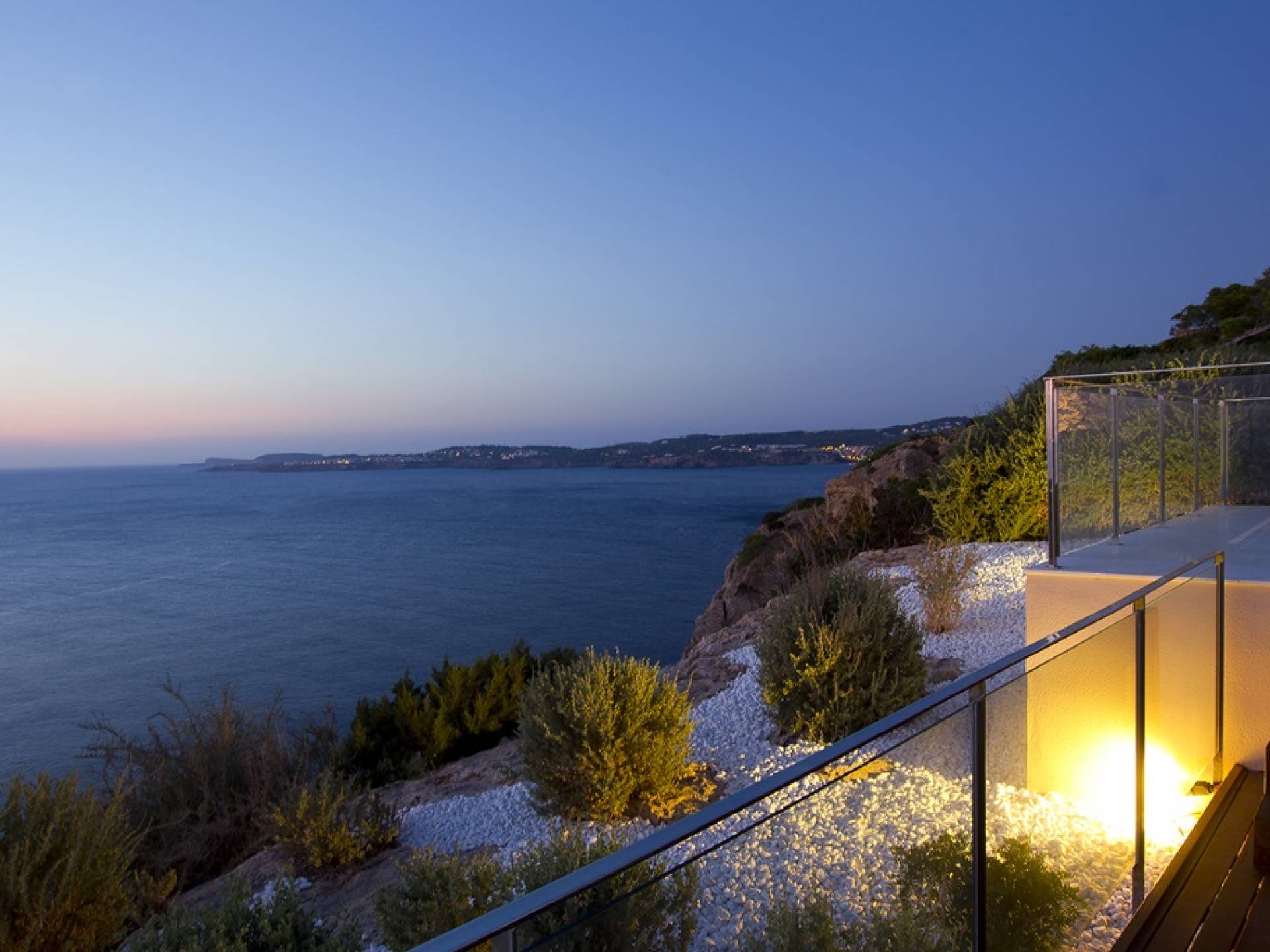 Frontline modern Villa Mares Ibiza with exceptional finishing and breathtaking sunset and sea views. Villa Mares is located on the tip of Cala Vadella, in the exclusive Calo d'en Real complex, it is about 10 minutes drive from San Jose and Cala Jondal and approximately 20 minutes drive to Ibiza Town.