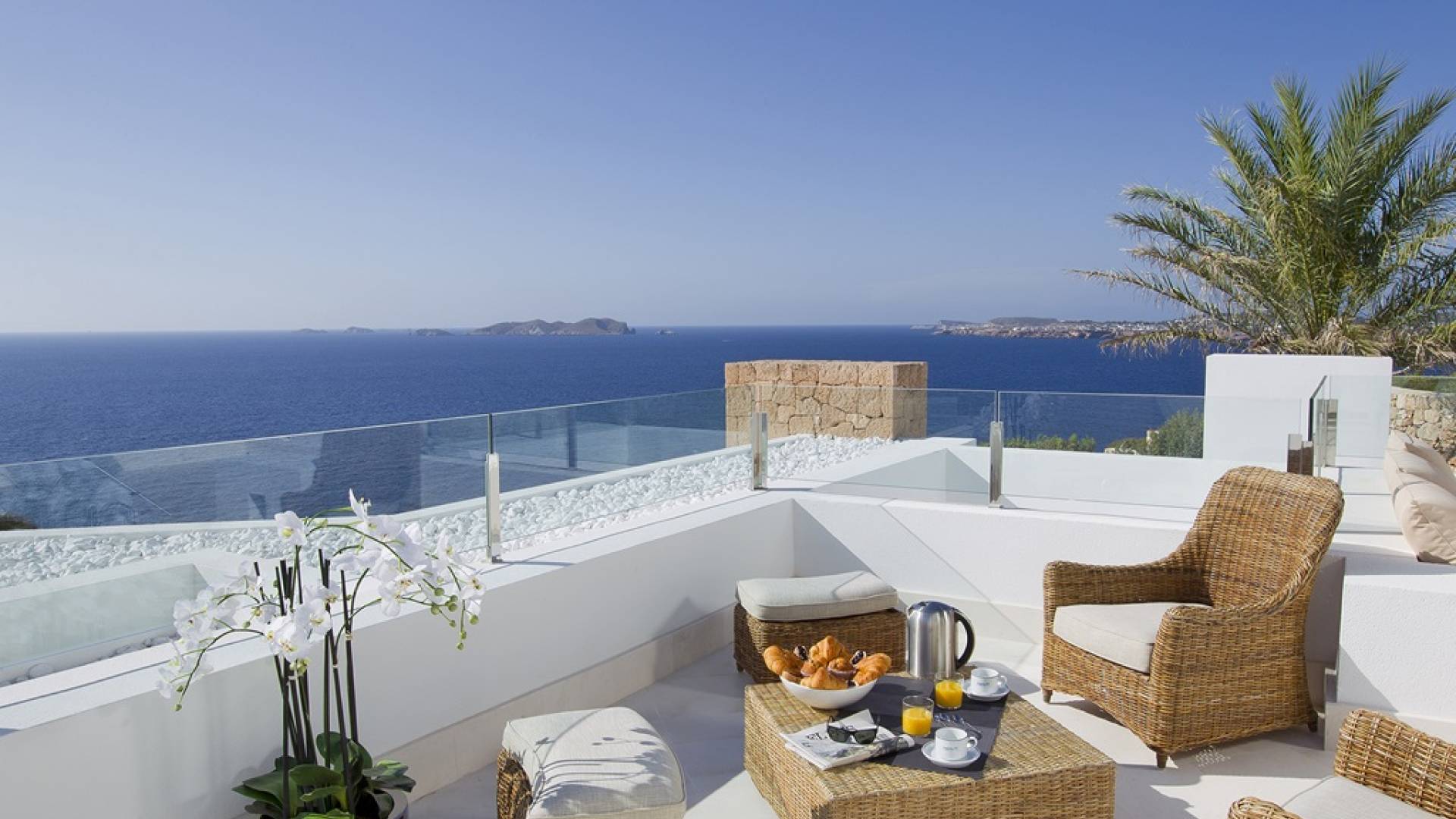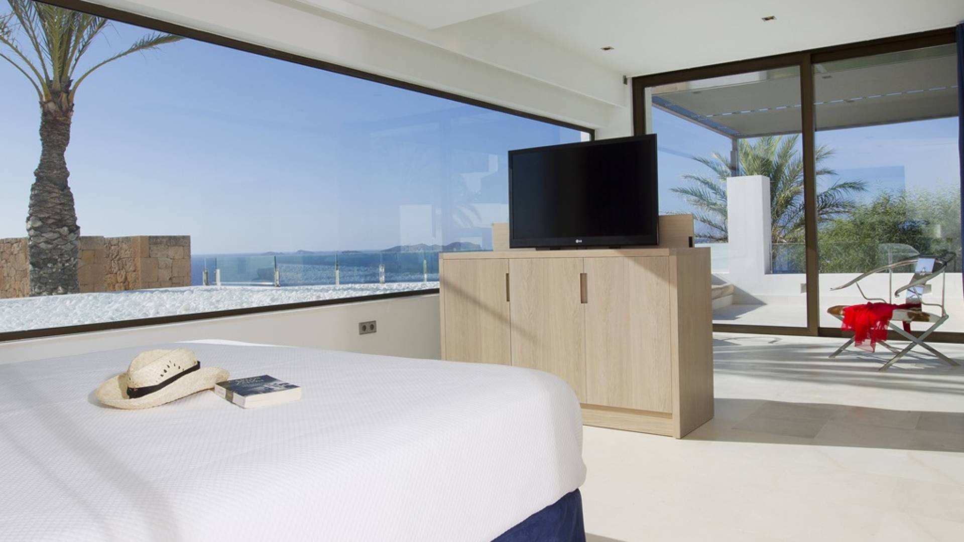 There are several fantastic terraces with a huge infinity pool looking out to the sparkling Mediterranean Sea. Villa Mares Ibiza also benefits from an outdoor dining area, chill out area, 2 indoor parking areas, an alarm system, secure boundaries and a video intercom system.