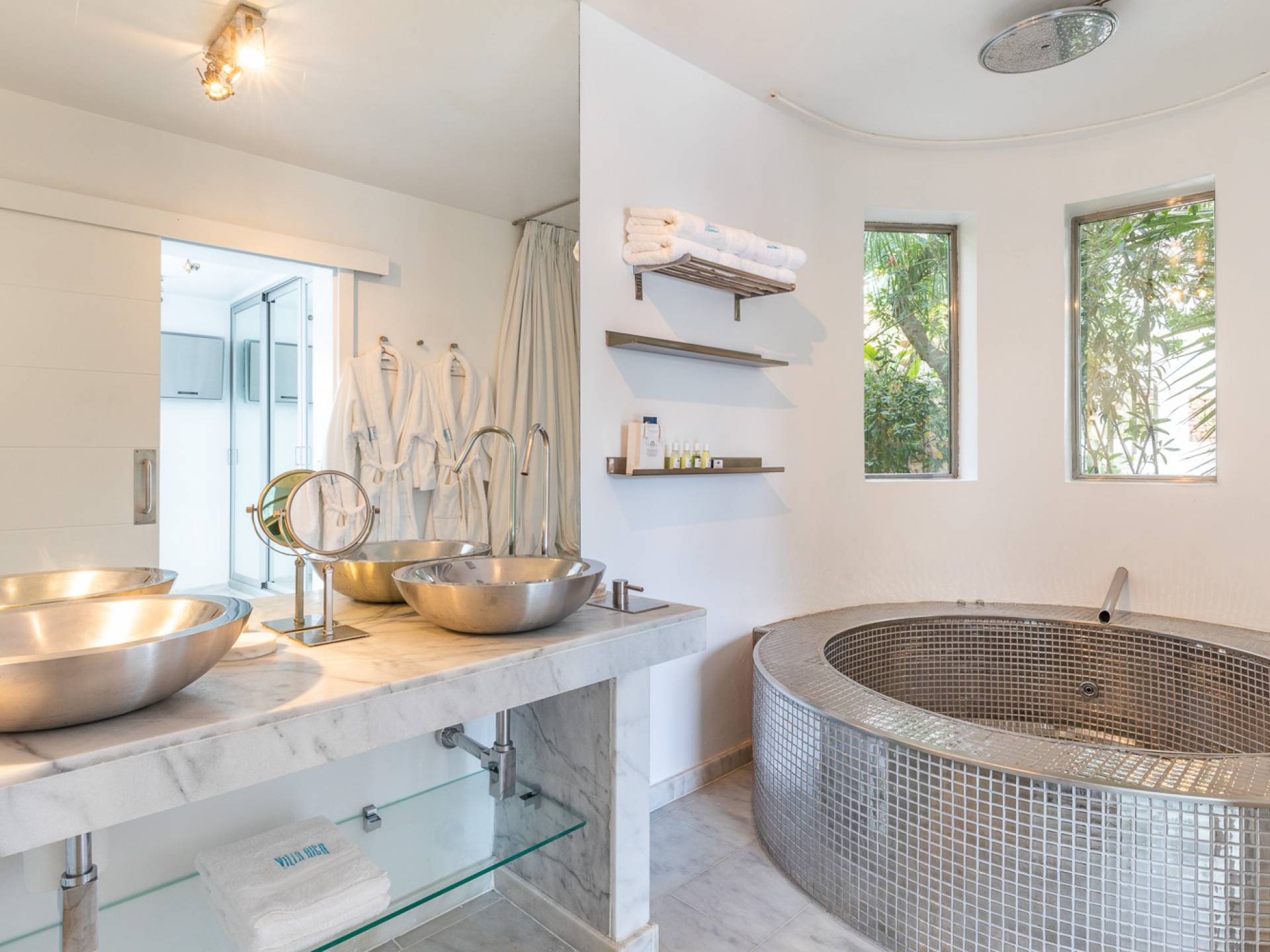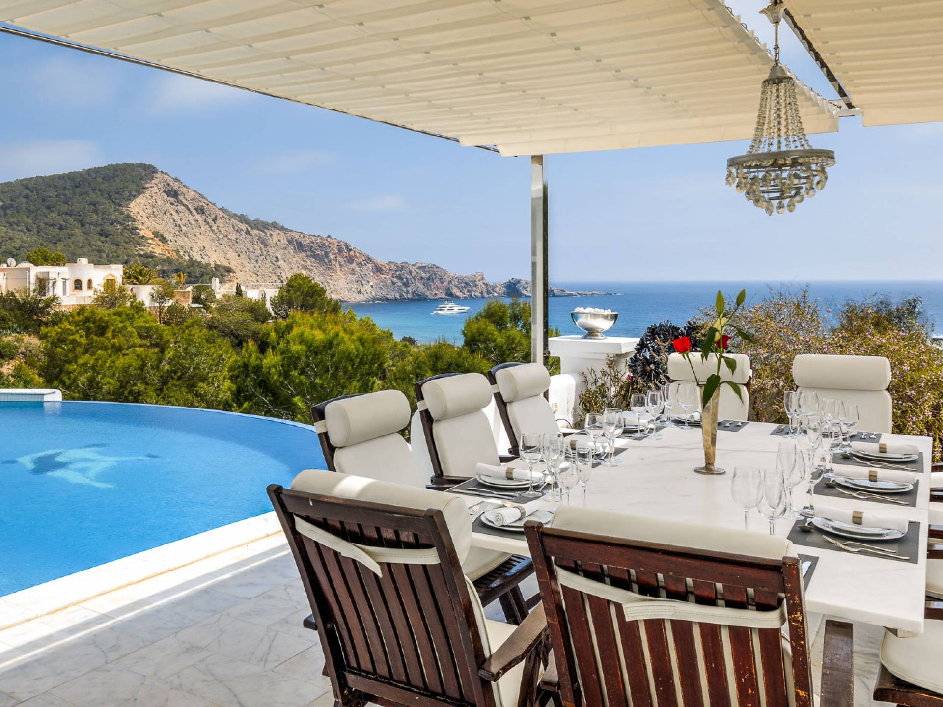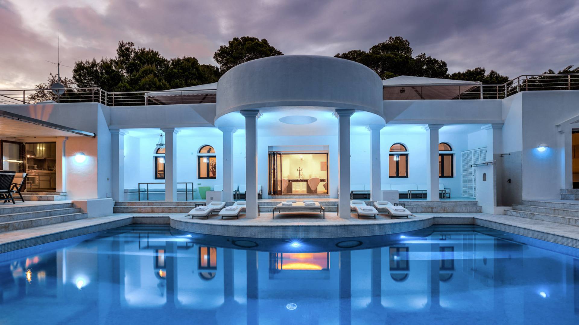 Villa Rica Ibiza is a luxury villa rental above the beach overlooking the bay of Cala Jondal Ibiza, the coolest and most exclusive bay on the Island, with its variety of famous beach bars and fabulous restaurants. The famous Blue Marlin and Tropicana Beach bars are just in front of the villa. The amenities in Villa Rica provide a touch of Hollywood glamour right here on this spectacular Spanish island. With two Butlers and a personal Chef, Villa Rica can offer the services of a luxury hotel, with the privacy of a first-class villa.
