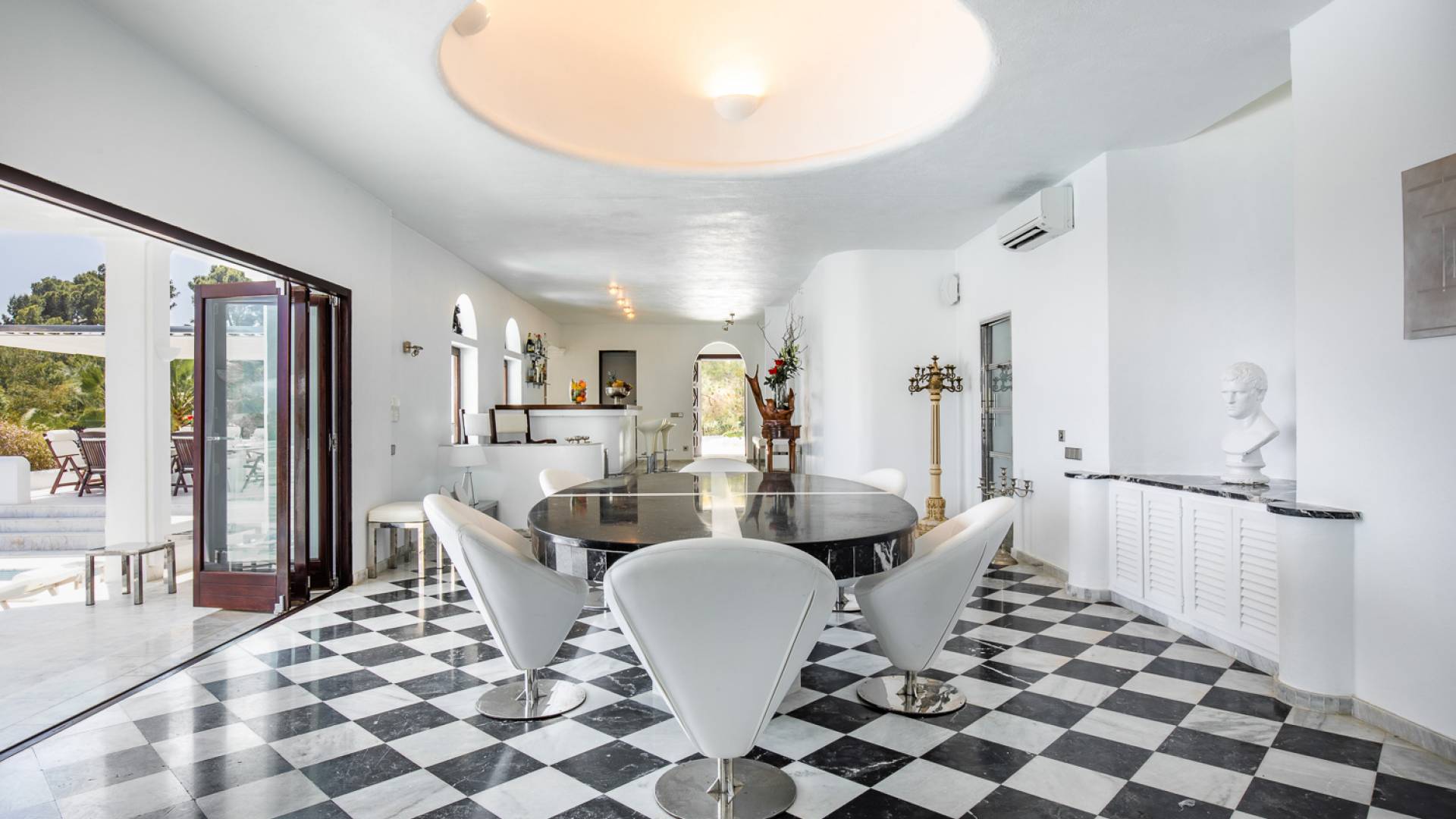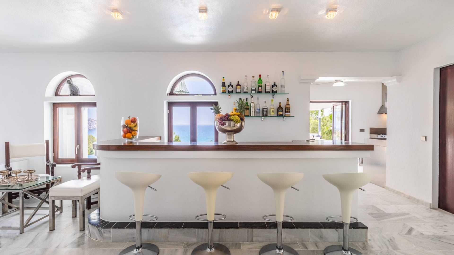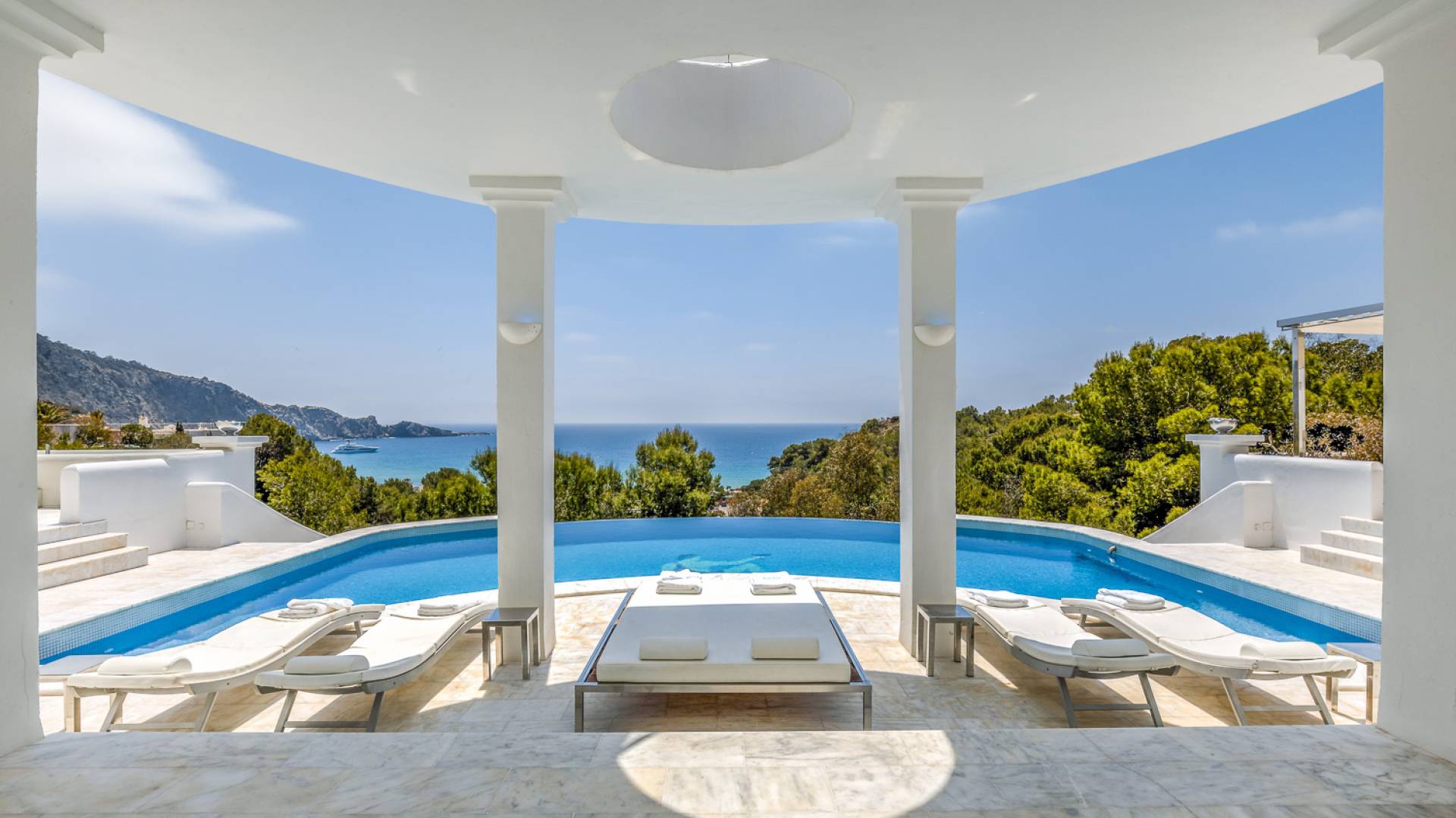 Villa Rica Ibiza is a luxury villa rental above the beach overlooking the bay of Cala Jondal Ibiza, the coolest and most exclusive bay on the Island, with its variety of famous beach bars and fabulous restaurants. The famous Blue Marlin and Tropicana Beach bars are just in front of the villa. The amenities in Villa Rica provide a touch of Hollywood glamour right here on this spectacular Spanish island. With two Butlers and a personal Chef, Villa Rica can offer the services of a luxury hotel, with the privacy of a first-class villa.
