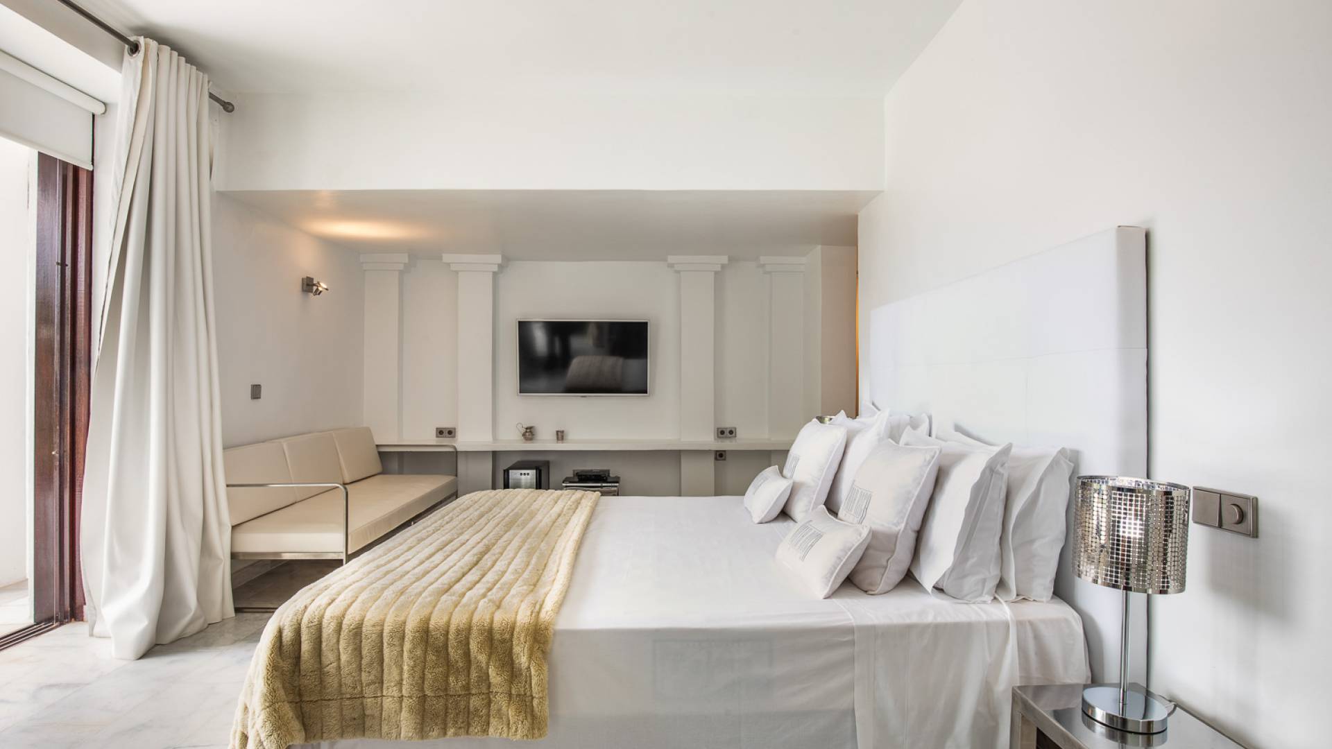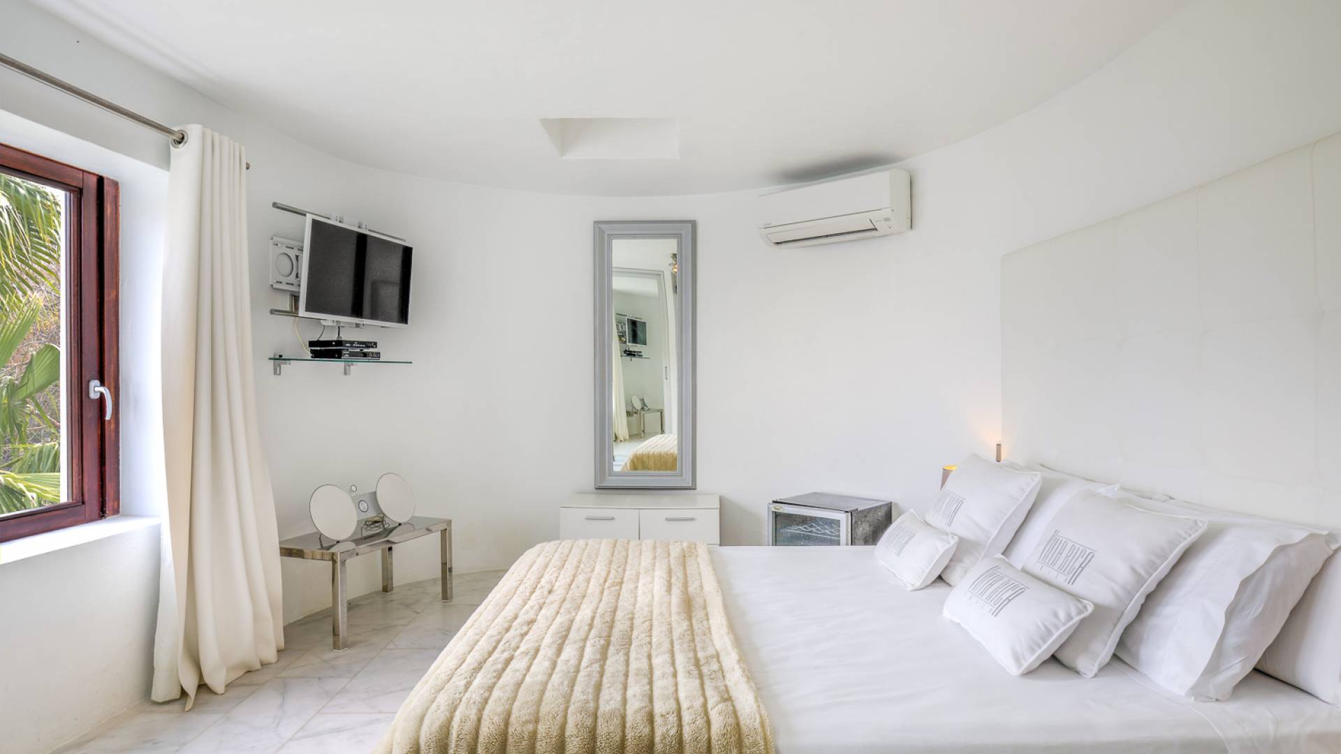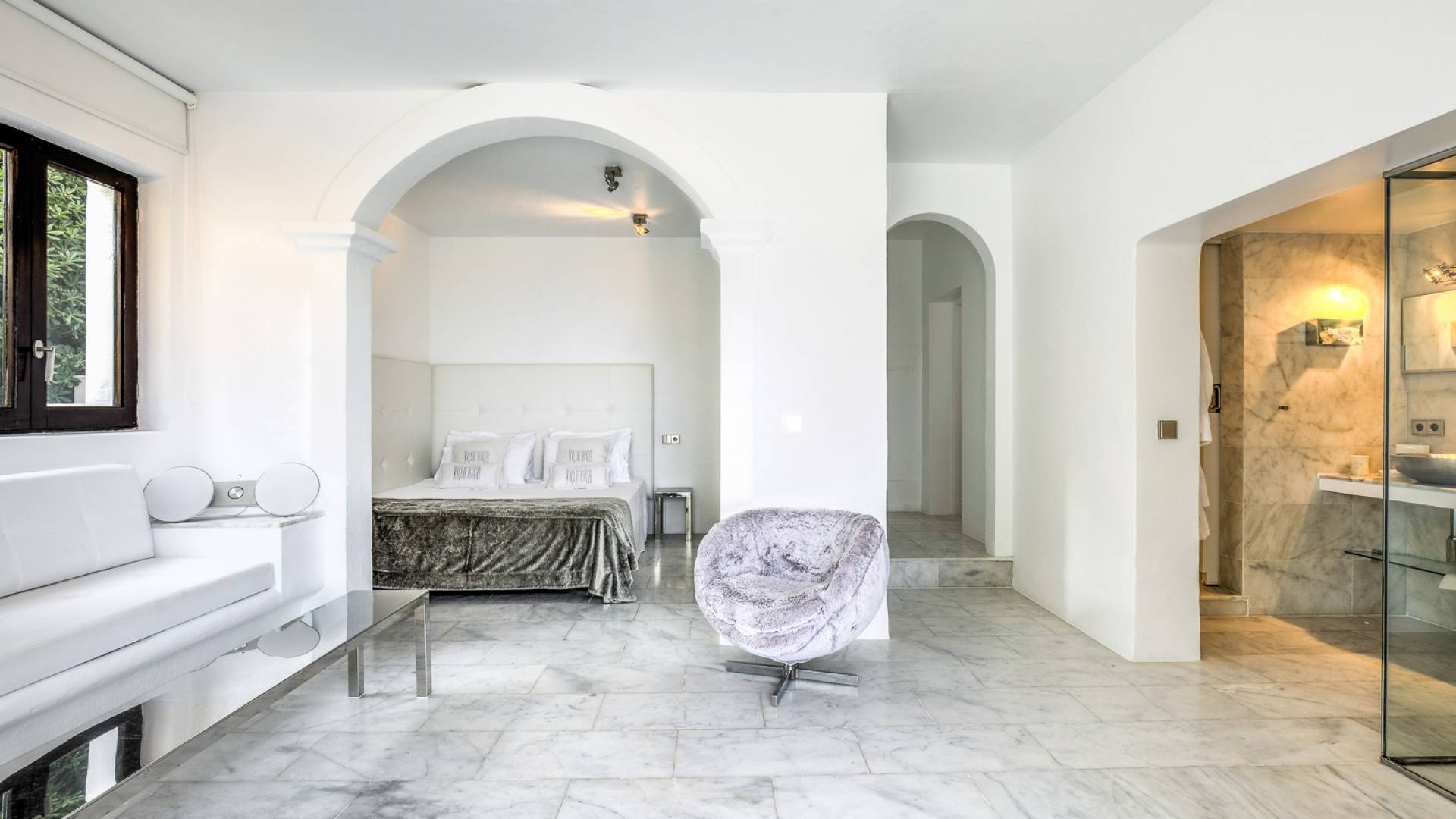 Villa Rica Ibiza has five double bedrooms with bathrooms en-suite. All the rooms come with a satellite plasma TV, DVD, iPod connection/sound system, air conditioning, and mini-fridges to make your stay that little bit extra special. Four of the bedrooms boast ocean views and the remaining room has a peaceful outlook onto the garden. Villa Rica can accommodate up to 10 guests and smoking is permitted.