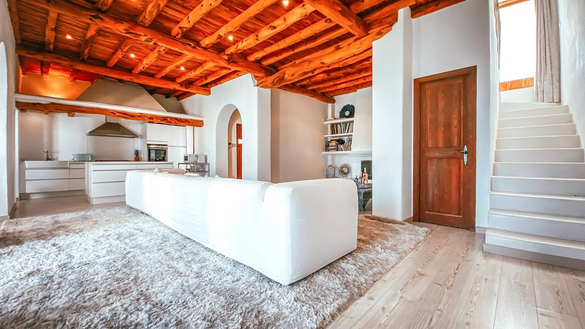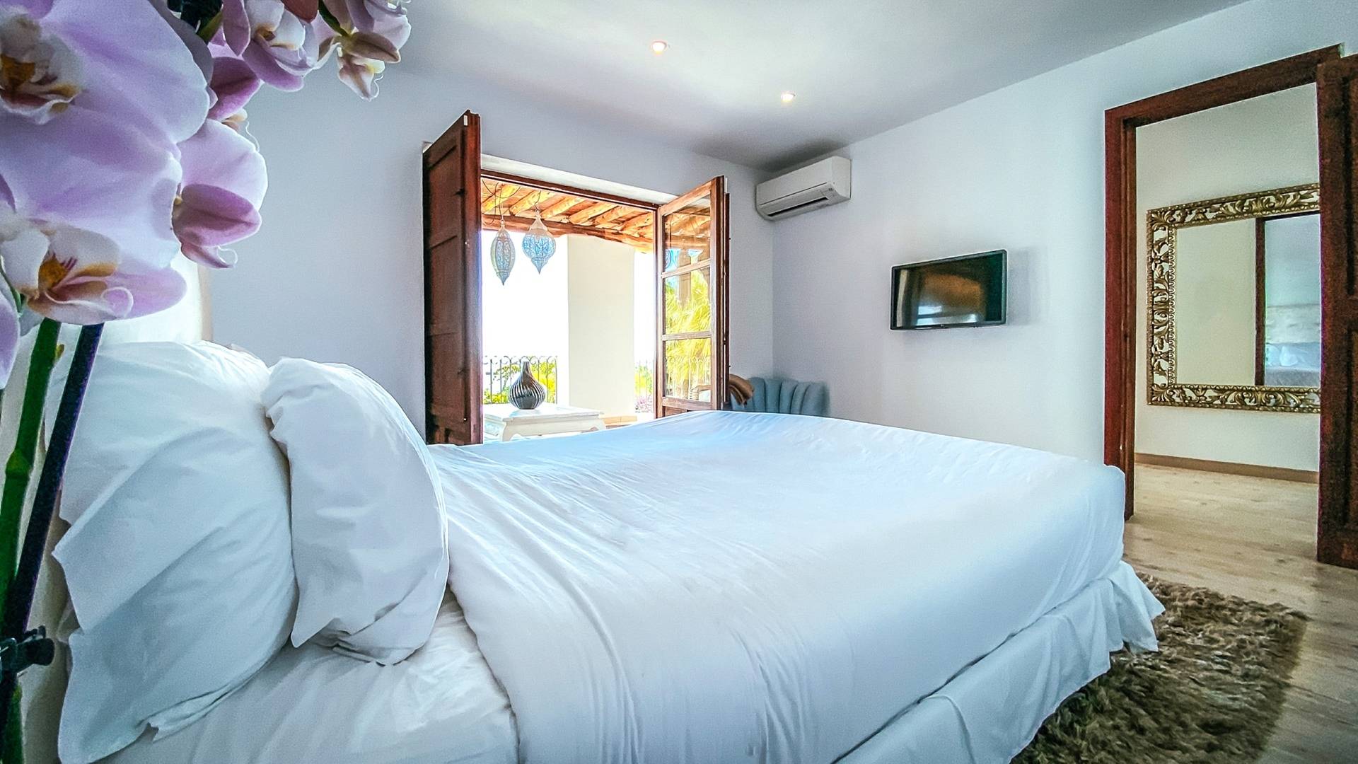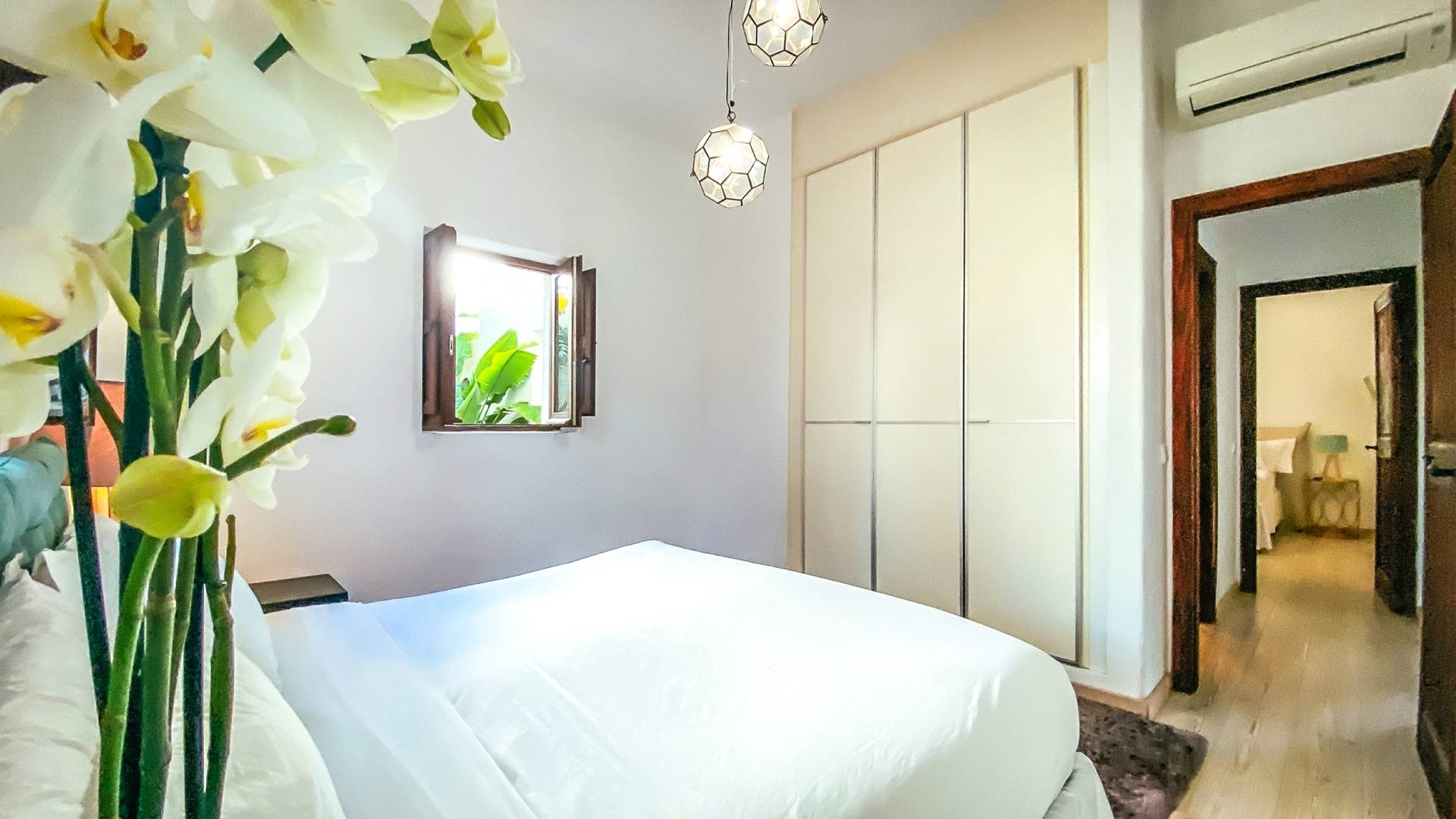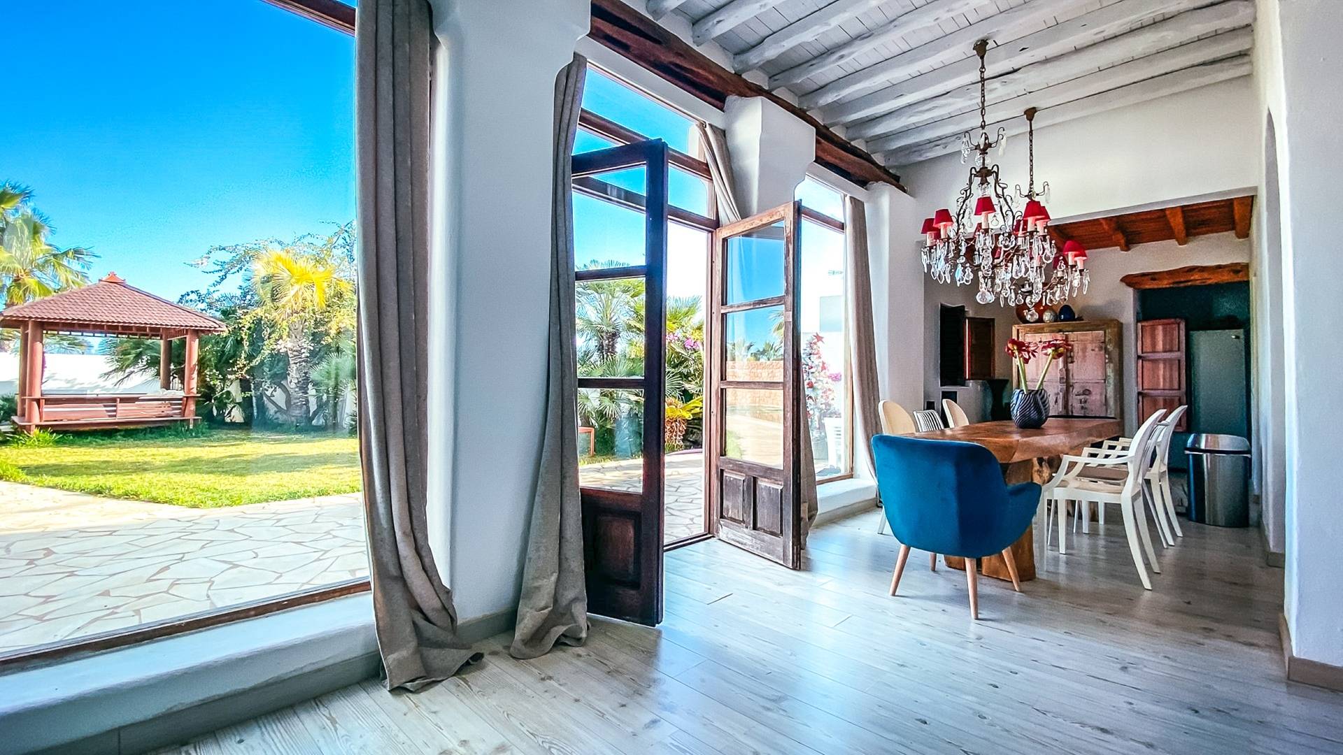 Villa Sanchez boasts a unique architectural combination of traditional and modern elements, the use of natural woods, precious fabrics, and many tasteful furnishings in a spacious and traditional finca-style property. Even in the spacious outdoor area of Villa Sanchez, the imaginative character of the house continues. The large pool promises a refreshing dip on hot summer days, the numerous sun loungers, and the large Balinese sun bed allows total relaxation and a full recharge of your batteries in the warm summer sun.