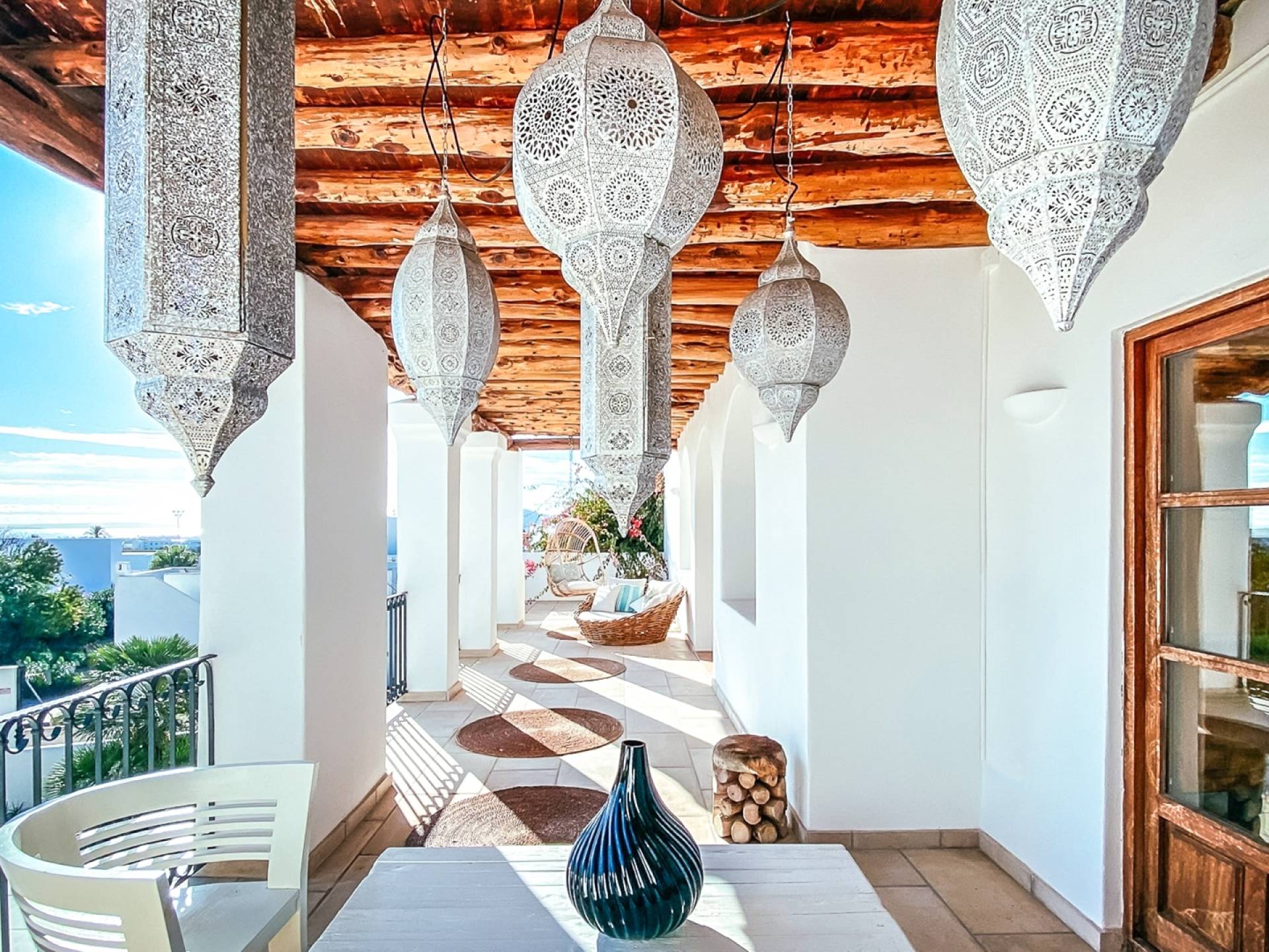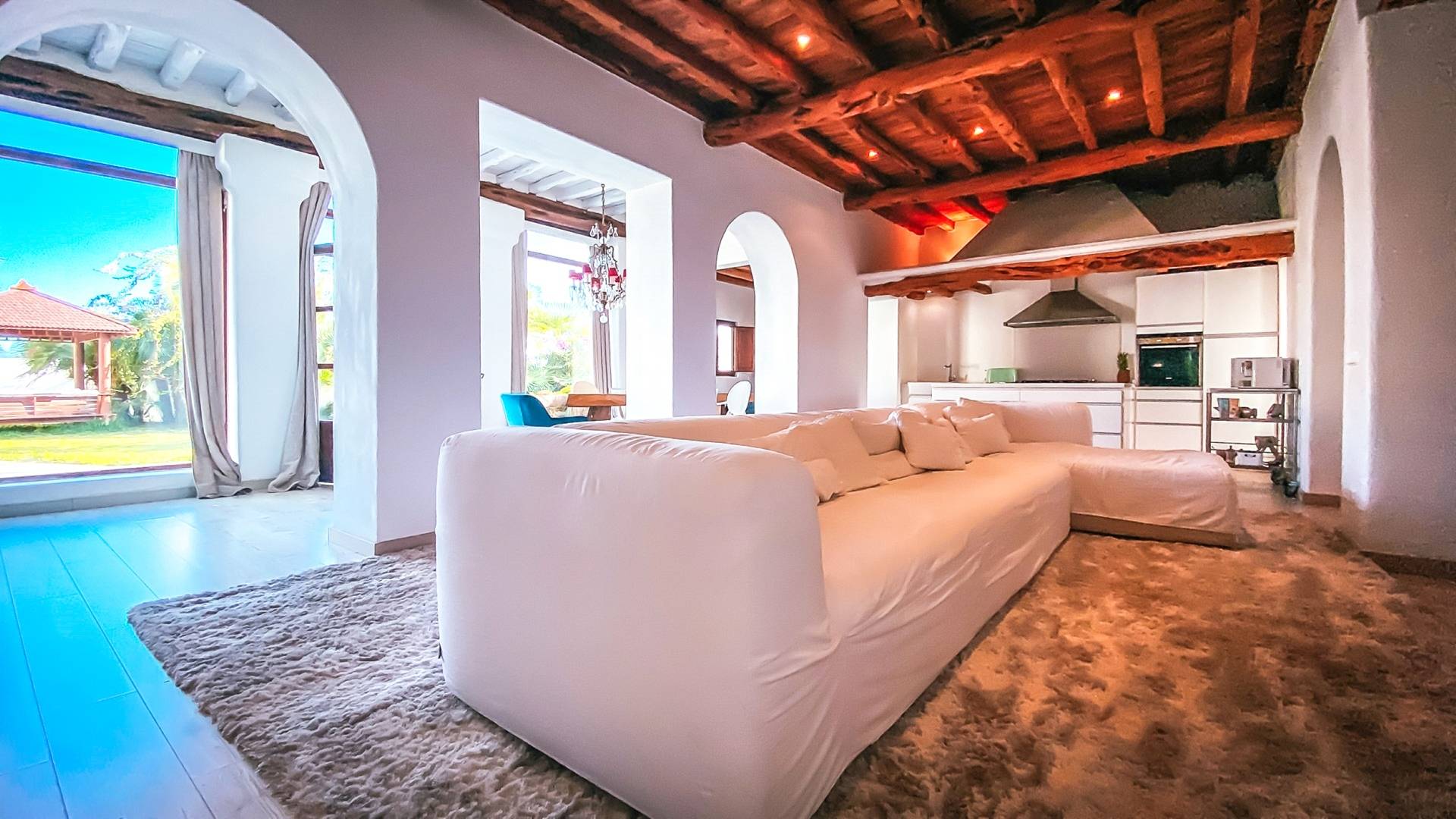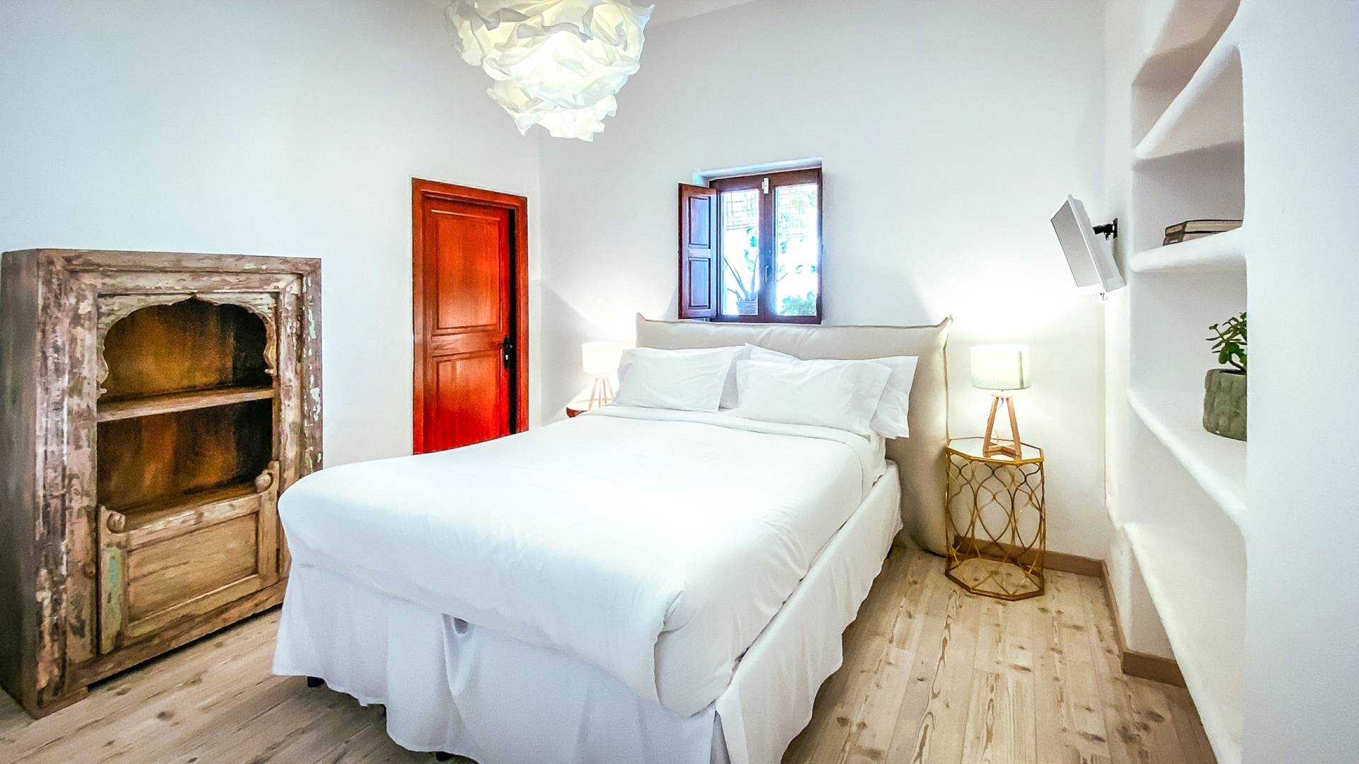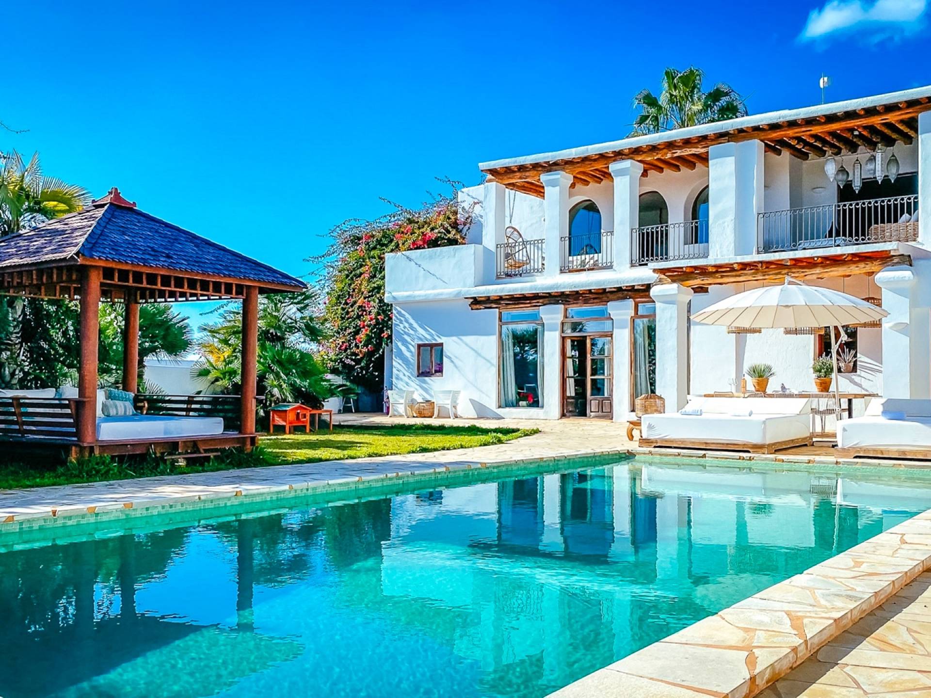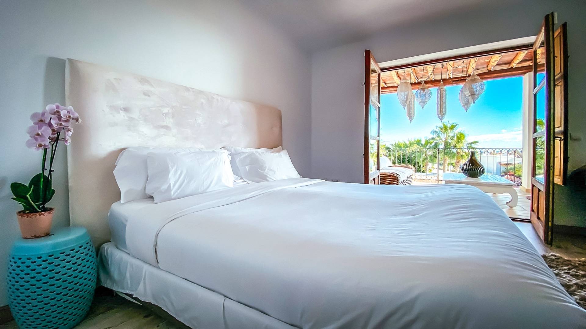 Villa Sanchez boasts a unique architectural combination of traditional and modern elements, the use of natural woods, precious fabrics, and many tasteful furnishings in a spacious and traditional finca-style property. Even in the spacious outdoor area of Villa Sanchez, the imaginative character of the house continues. The large pool promises a refreshing dip on hot summer days, the numerous sun loungers, and the large Balinese sun bed allows total relaxation and a full recharge of your batteries in the warm summer sun.