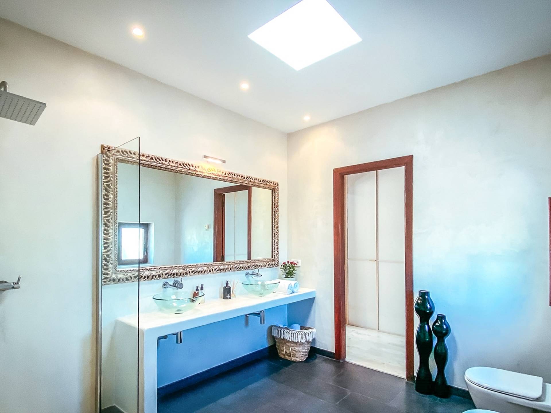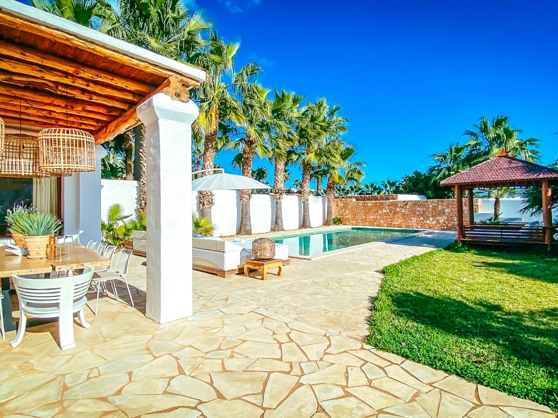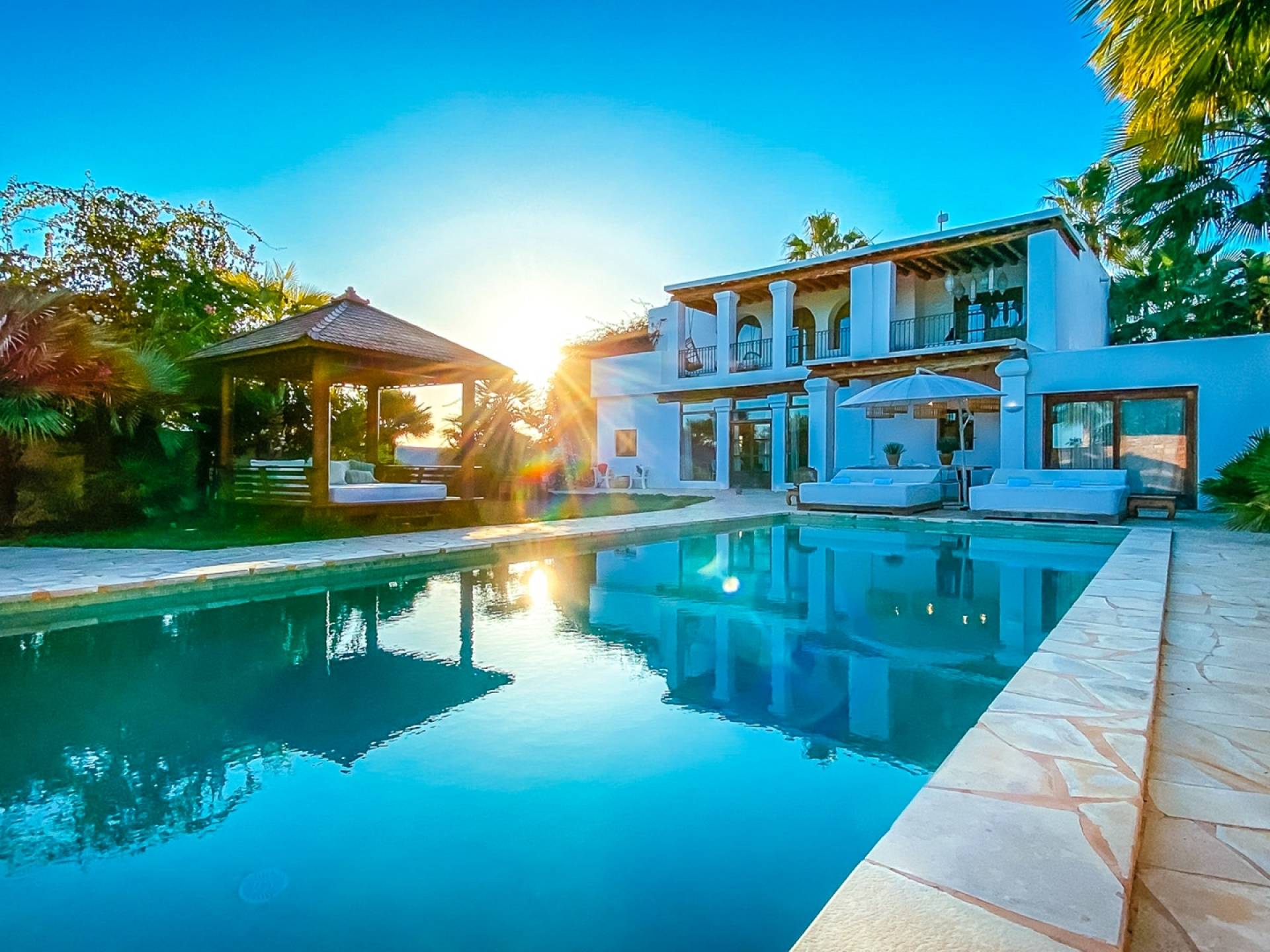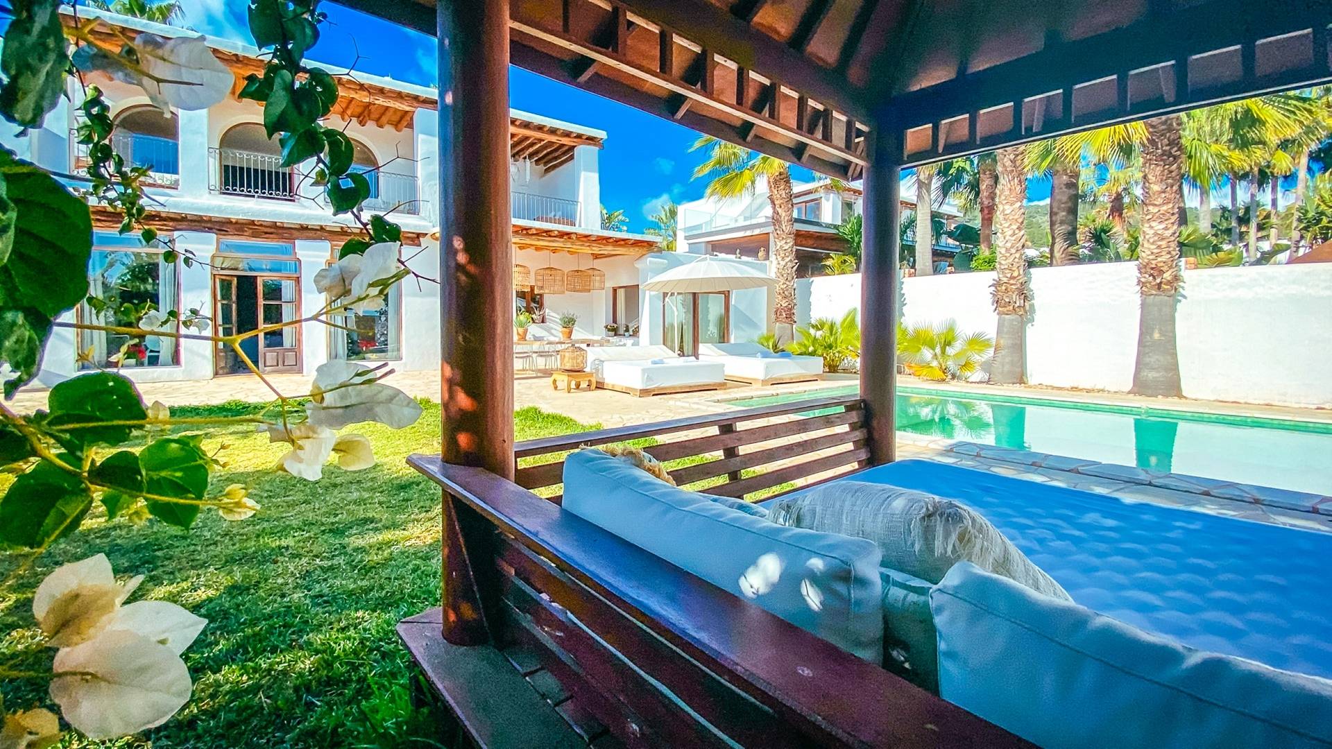 Villa Sanchez boasts a unique architectural combination of traditional and modern elements, the use of natural woods, precious fabrics, and many tasteful furnishings in a spacious and traditional finca-style property. Even in the spacious outdoor area of Villa Sanchez, the imaginative character of the house continues. The large pool promises a refreshing dip on hot summer days, the numerous sun loungers, and the large Balinese sun bed allows total relaxation and a full recharge of your batteries in the warm summer sun.