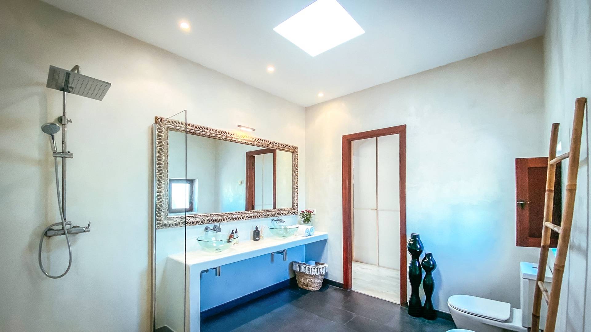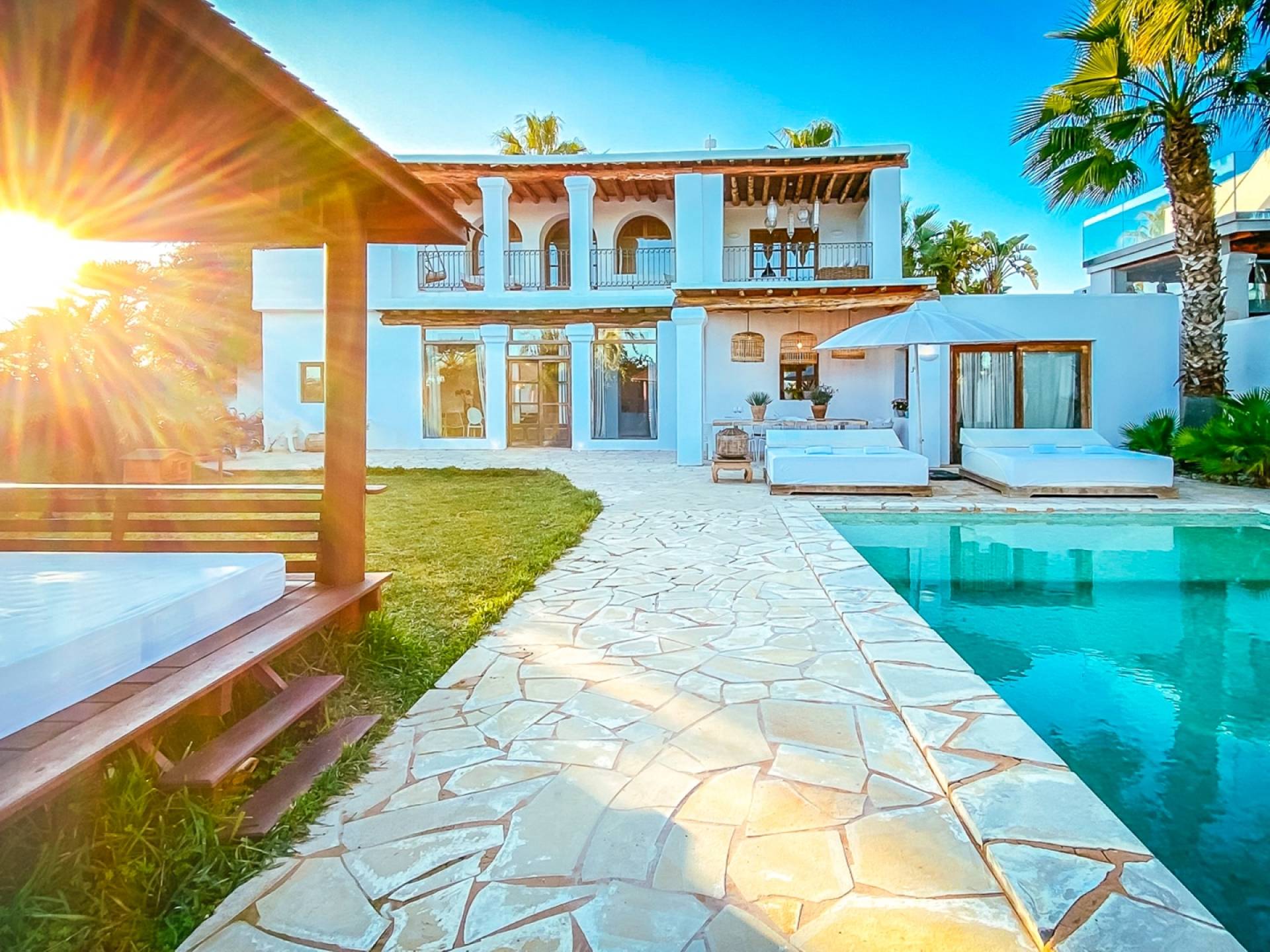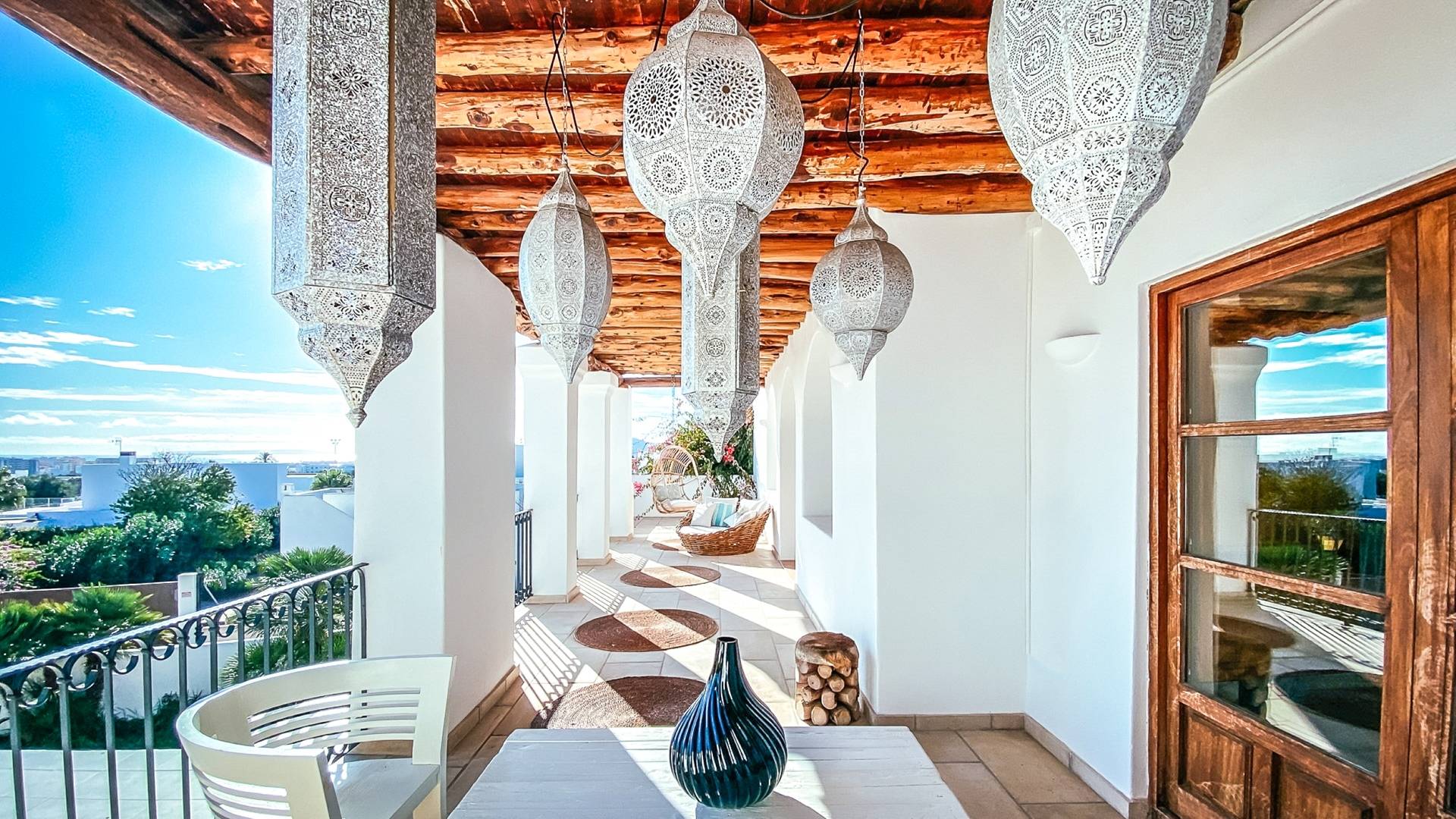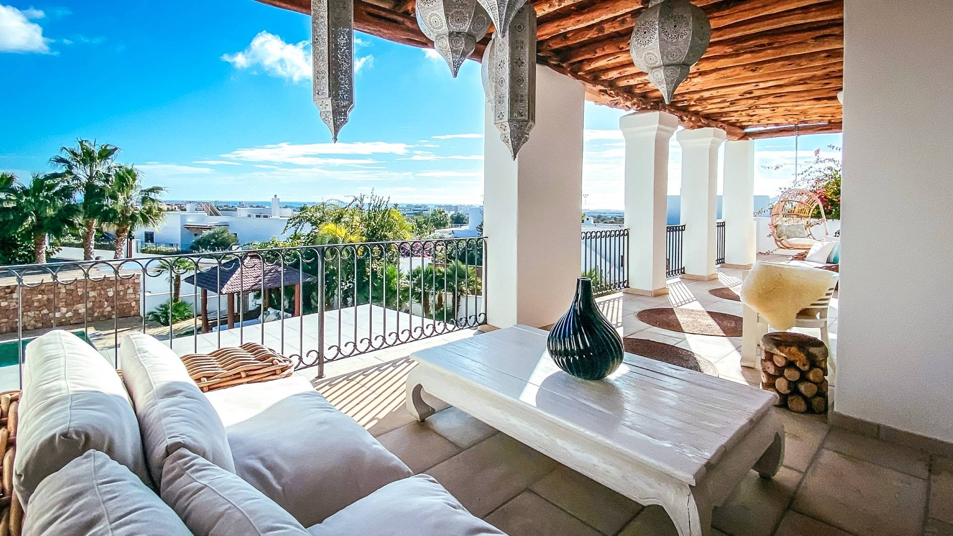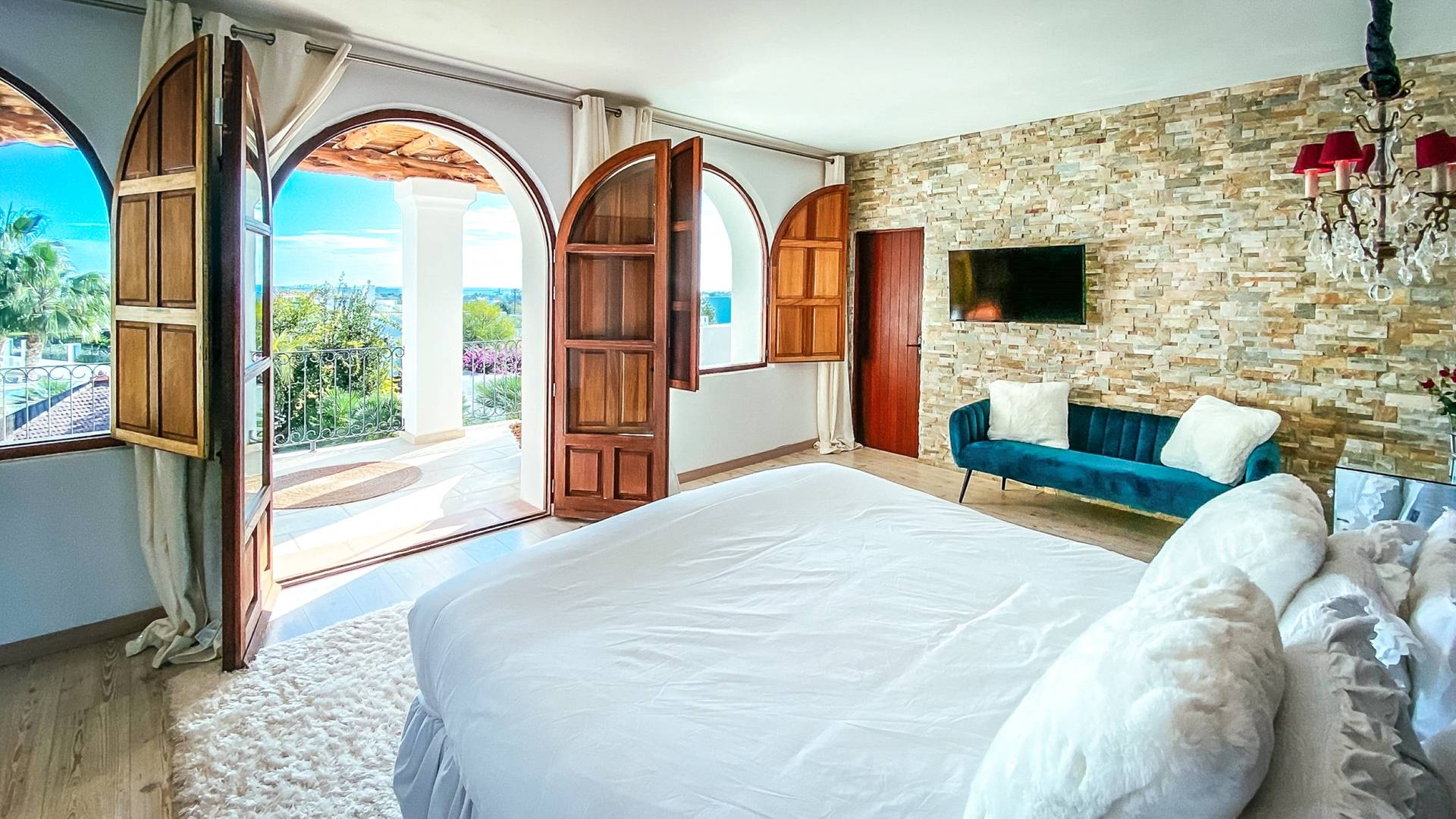 Villa Sanchez boasts a unique architectural combination of traditional and modern elements, the use of natural woods, precious fabrics, and many tasteful furnishings in a spacious and traditional finca-style property. Even in the spacious outdoor area of Villa Sanchez, the imaginative character of the house continues. The large pool promises a refreshing dip on hot summer days, the numerous sun loungers, and the large Balinese sun bed allows total relaxation and a full recharge of your batteries in the warm summer sun.