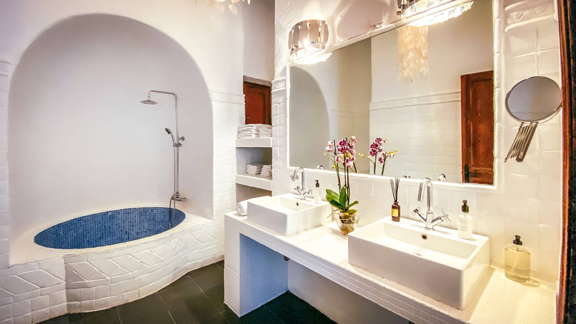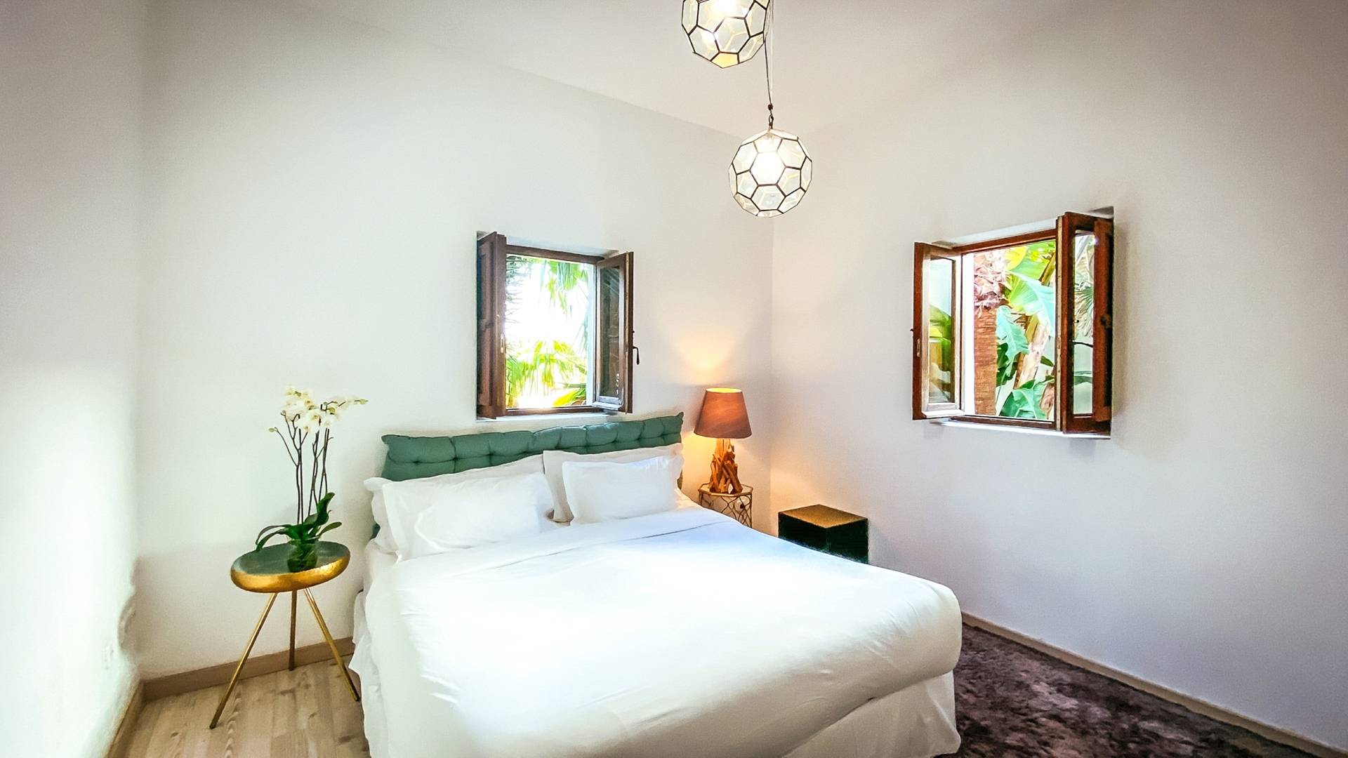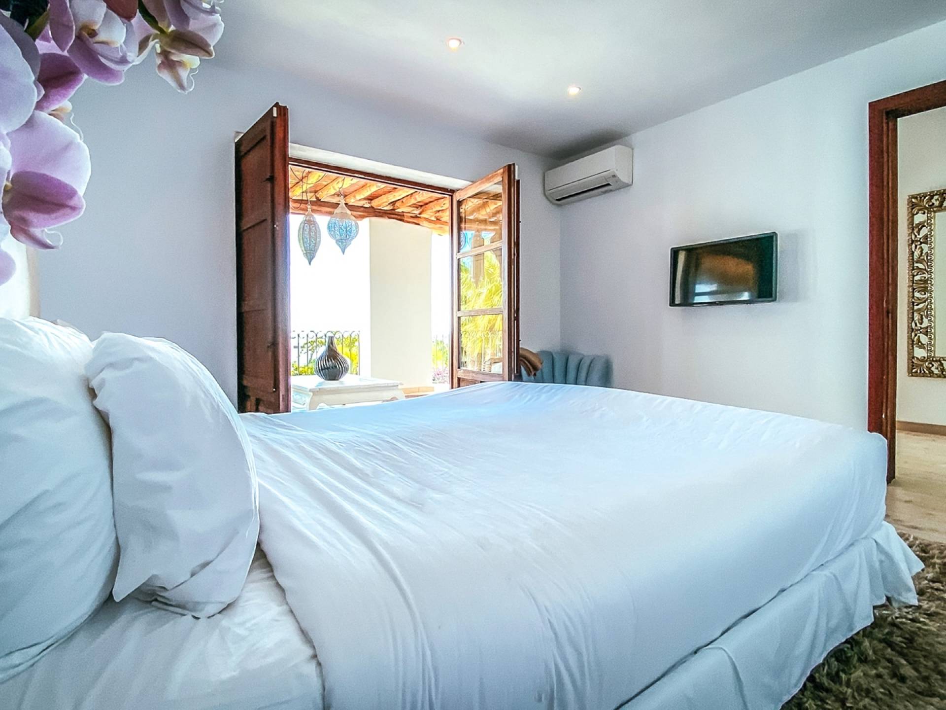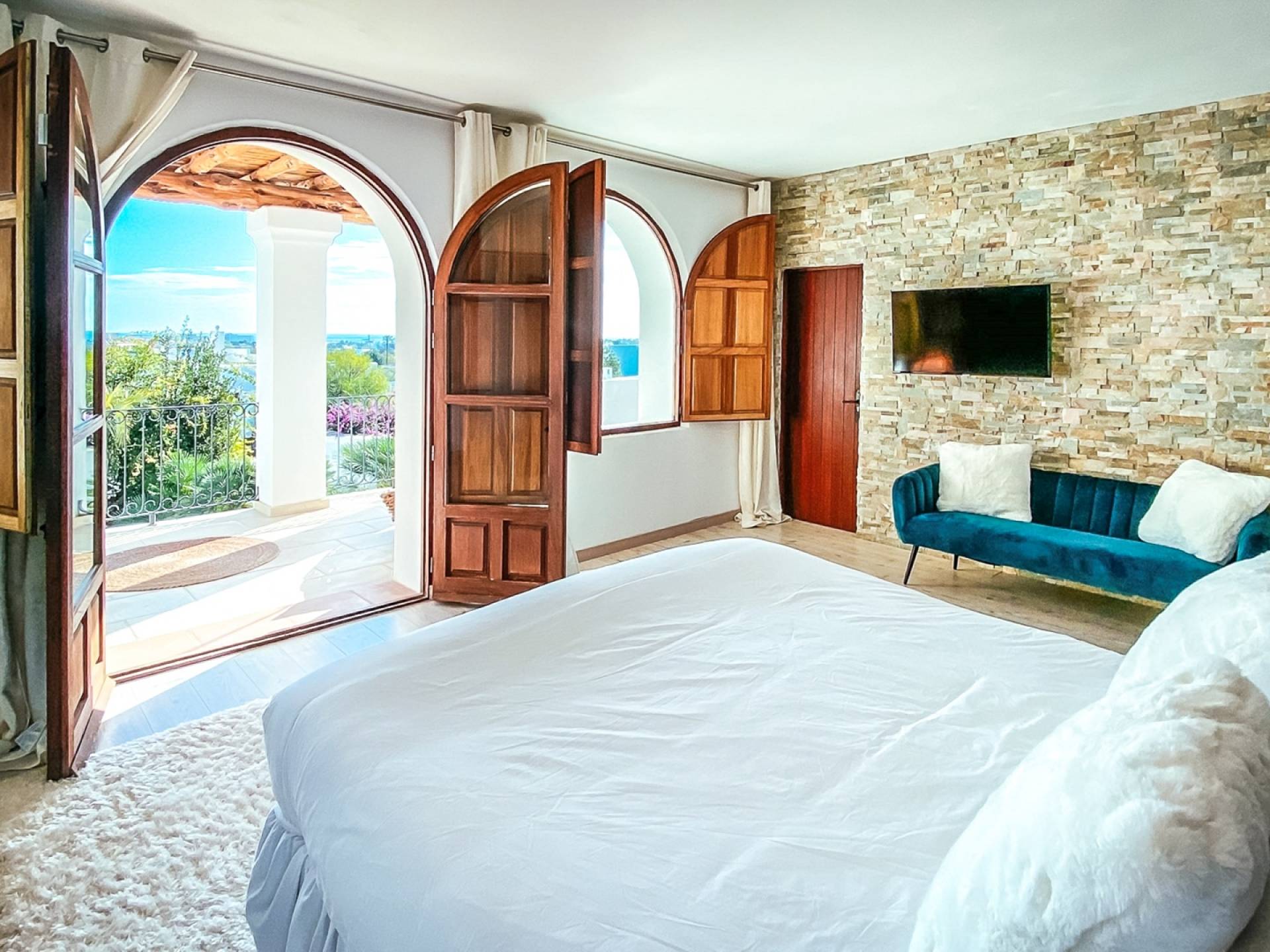 Villa Sanchez boasts a unique architectural combination of traditional and modern elements, the use of natural woods, precious fabrics, and many tasteful furnishings in a spacious and traditional finca-style property. Even in the spacious outdoor area of Villa Sanchez, the imaginative character of the house continues. The large pool promises a refreshing dip on hot summer days, the numerous sun loungers, and the large Balinese sun bed allows total relaxation and a full recharge of your batteries in the warm summer sun.