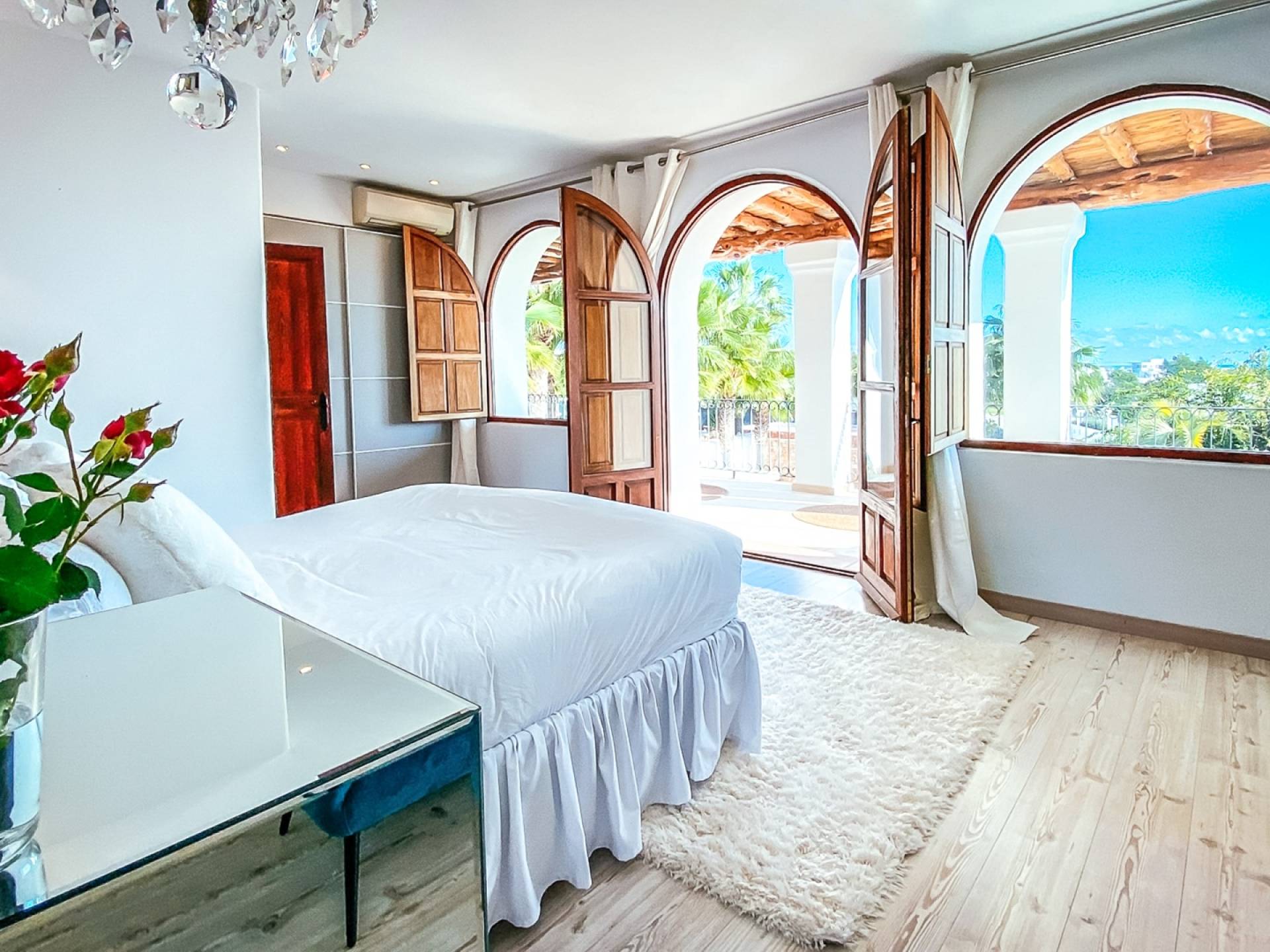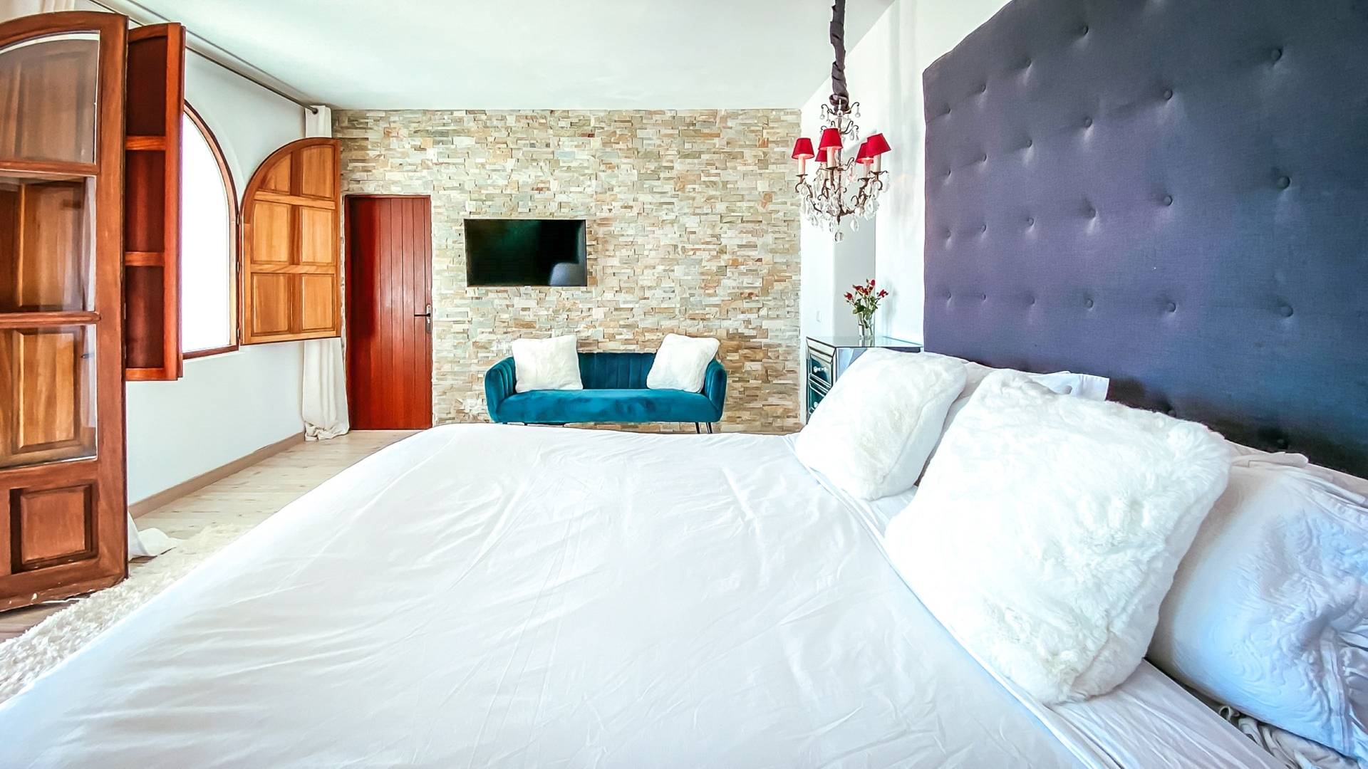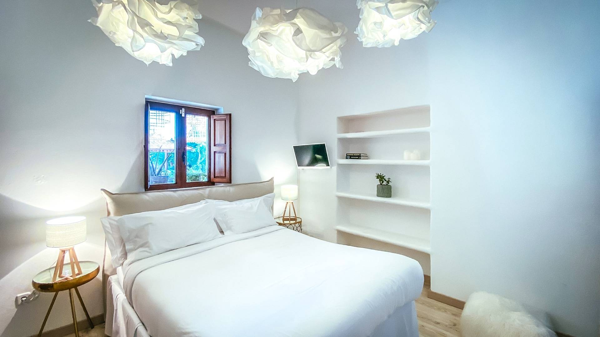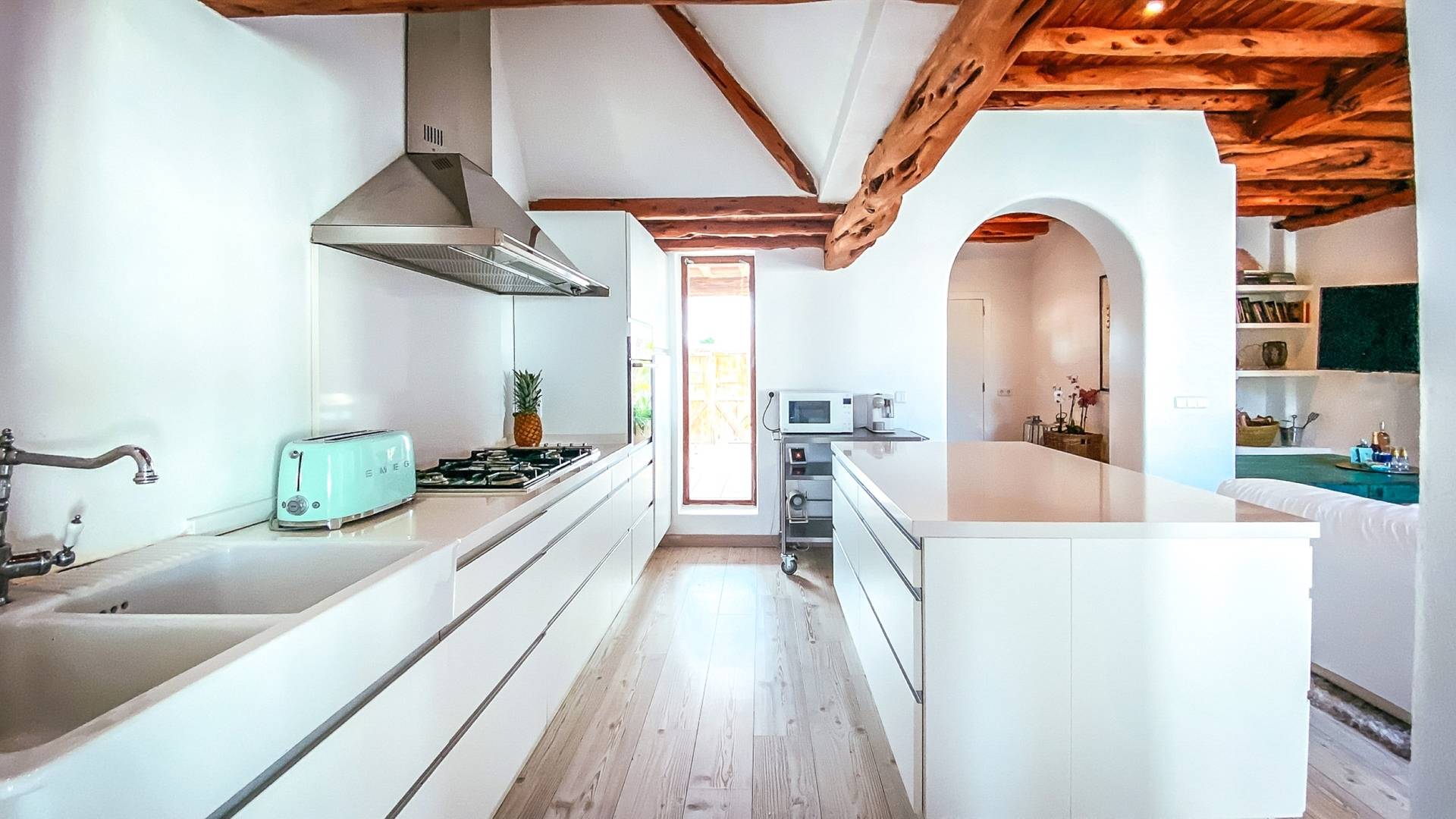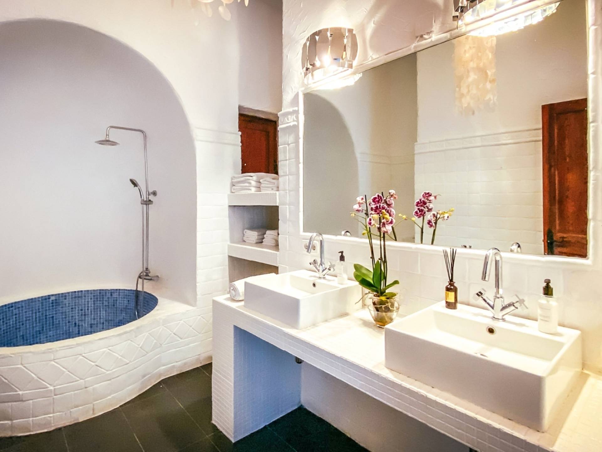 Villa Sanchez boasts a unique architectural combination of traditional and modern elements, the use of natural woods, precious fabrics, and many tasteful furnishings in a spacious and traditional finca-style property. Even in the spacious outdoor area of Villa Sanchez, the imaginative character of the house continues. The large pool promises a refreshing dip on hot summer days, the numerous sun loungers, and the large Balinese sun bed allows total relaxation and a full recharge of your batteries in the warm summer sun.