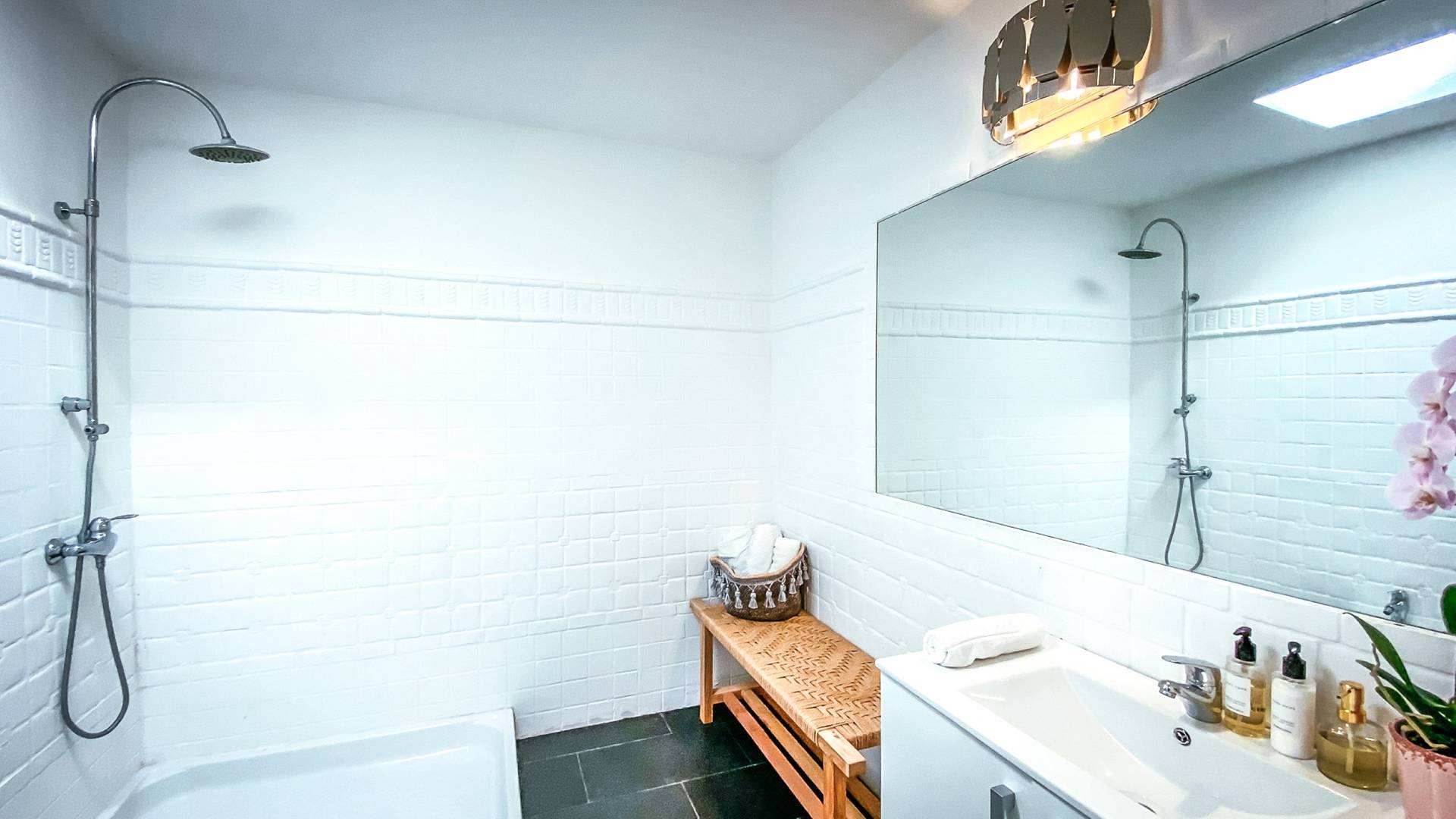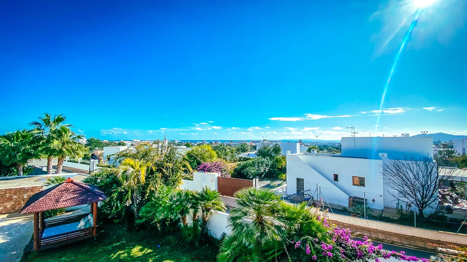 The central location of the villa is just perfect: the beaches of Playa D’en Bossa, Ses Salinas or Es Cavallet are less than 7 minutes away. Of course, Ibiza Town, the island’s clubs, and many other popular Ibiza venues are only ten minutes away. The spacious open-plan living and dining areas with a fully equipped kitchen are geared toward socializing with friends and family. There is an enormous sumptuous couch, perfect for summer evening chats or a delicious aperitif with friends, and the huge floor-to-ceiling windows invite the outside in, with wonderful views of the gardens.