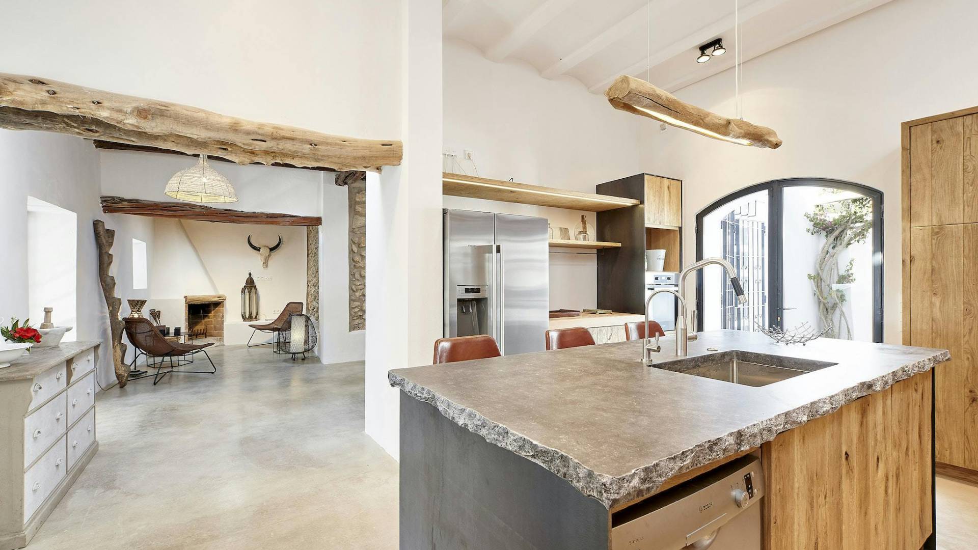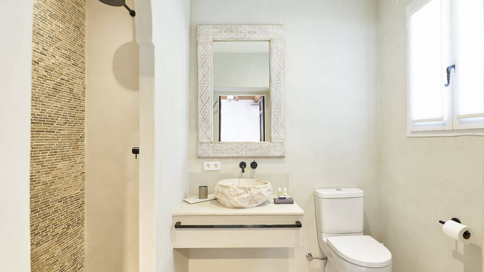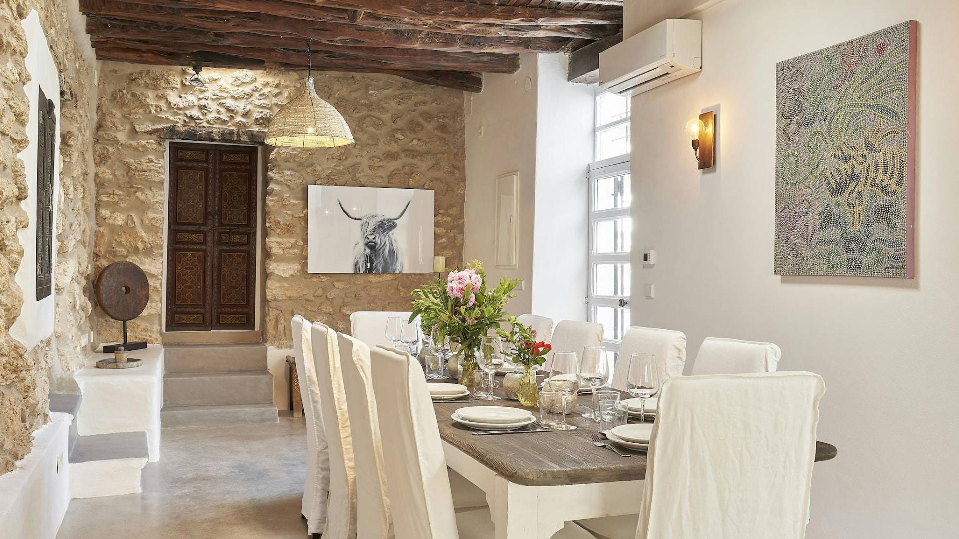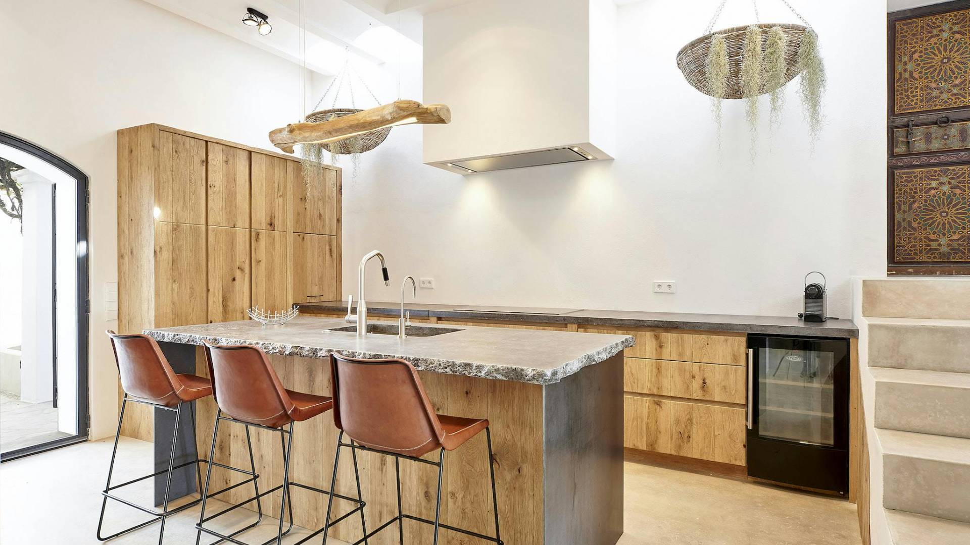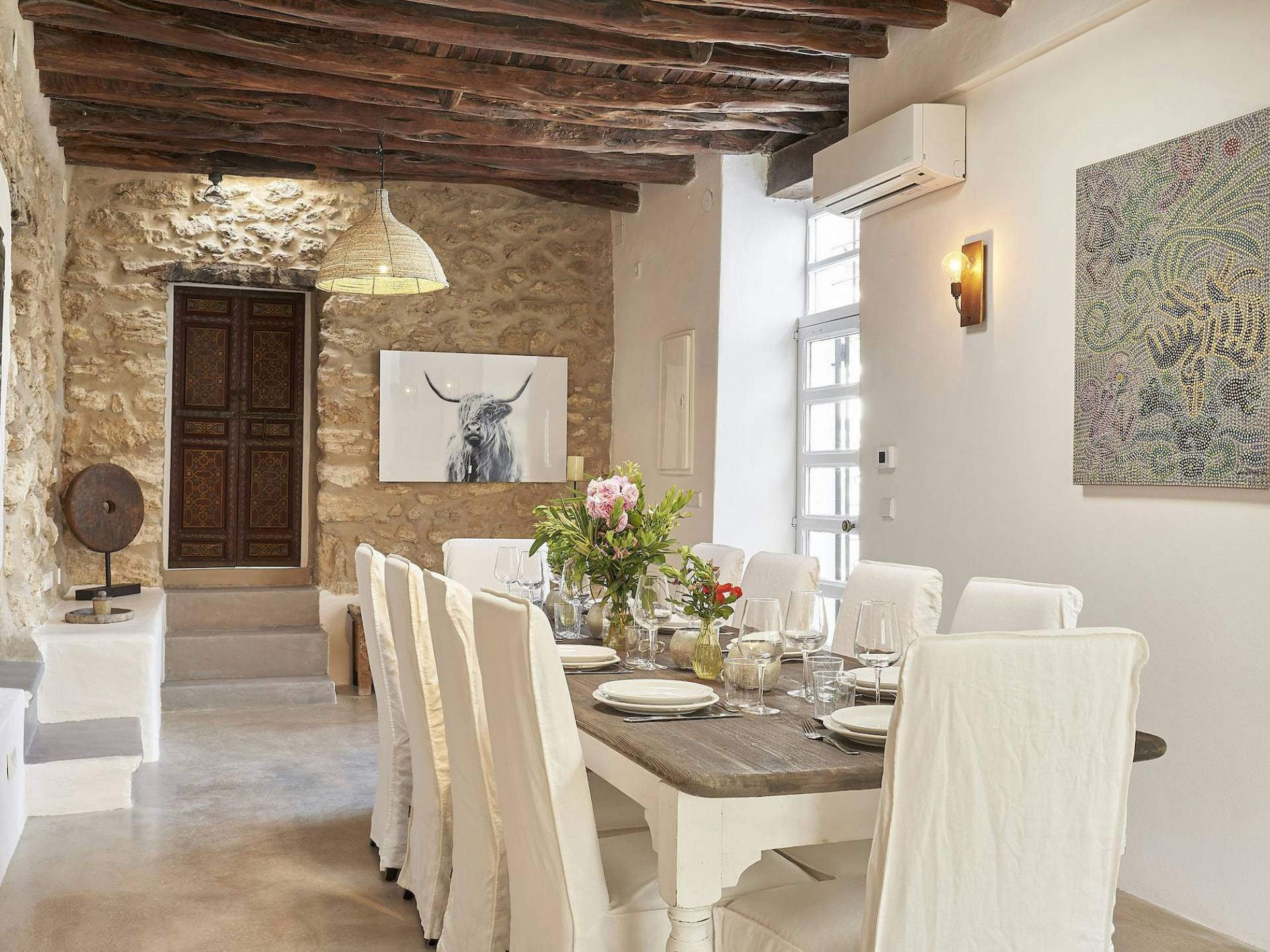 Located just a few minutes from San Juan, in a very private setting, this 300-year-old authentic Finca has been restored so that the stone walls and the original wooden Sabina ceilings create an eclectic mix with both modern and traditional furniture and other modern features, such as air conditioning, satellite TV and WiFi. The living areas are open-plan by design and include a wonderful bright dining area, snug area, modern fully equipped kitchen, and lounge area which leads onto a covered outdoor lounge area with comfortable sofas.