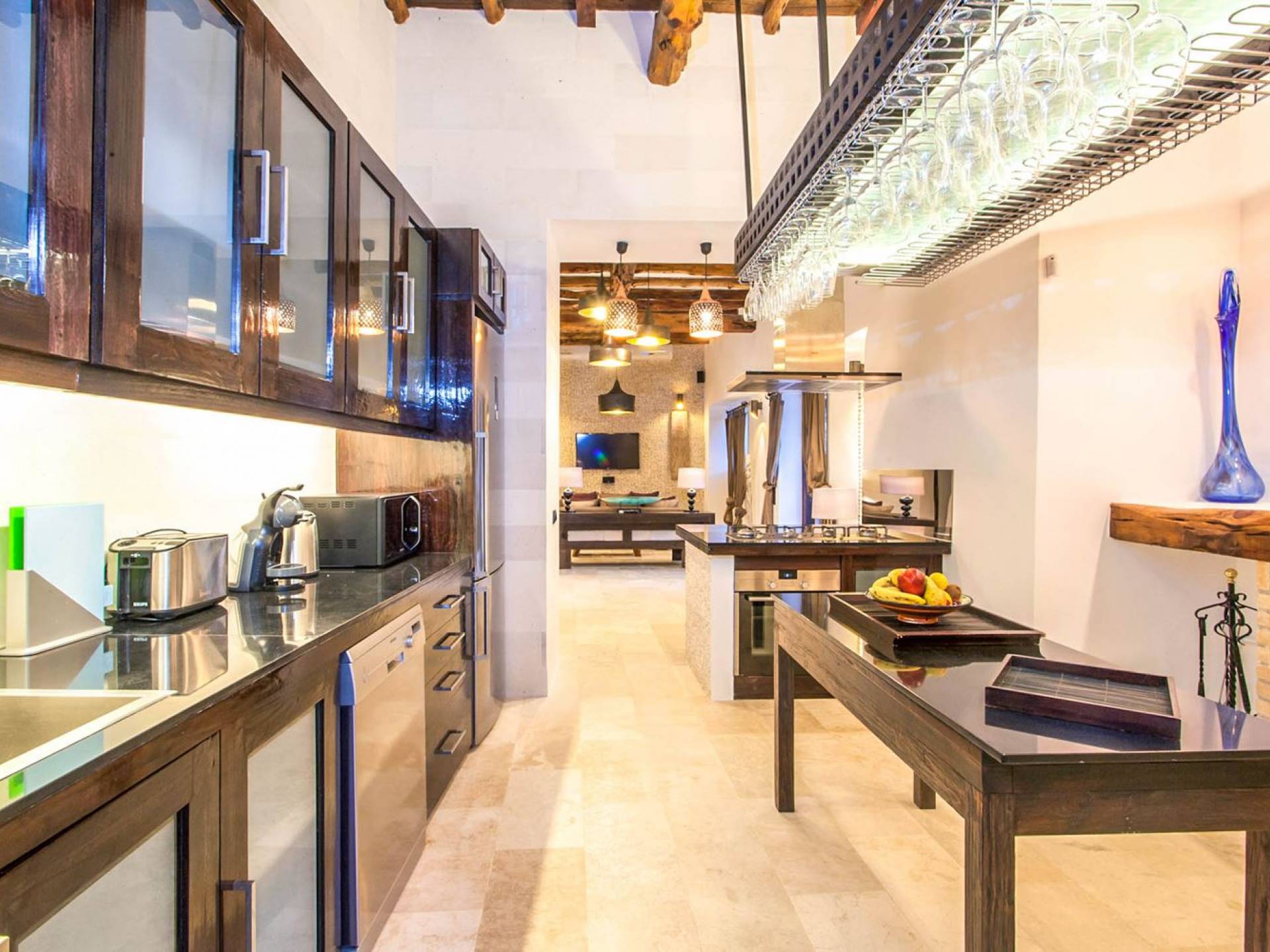 The house has been furnished to a very high standard and mixes the traditional Finca style with all modern comforts and finishes, including, air conditioning, central heating, cable TV and WiFi. The living areas are open plan, with a cosy lounge area boasting comfortable sofas and a large wall-mounted TV; the fully equipped modern kitchen hosts a whole array of high-end appliances and a wonderful fireplace.
