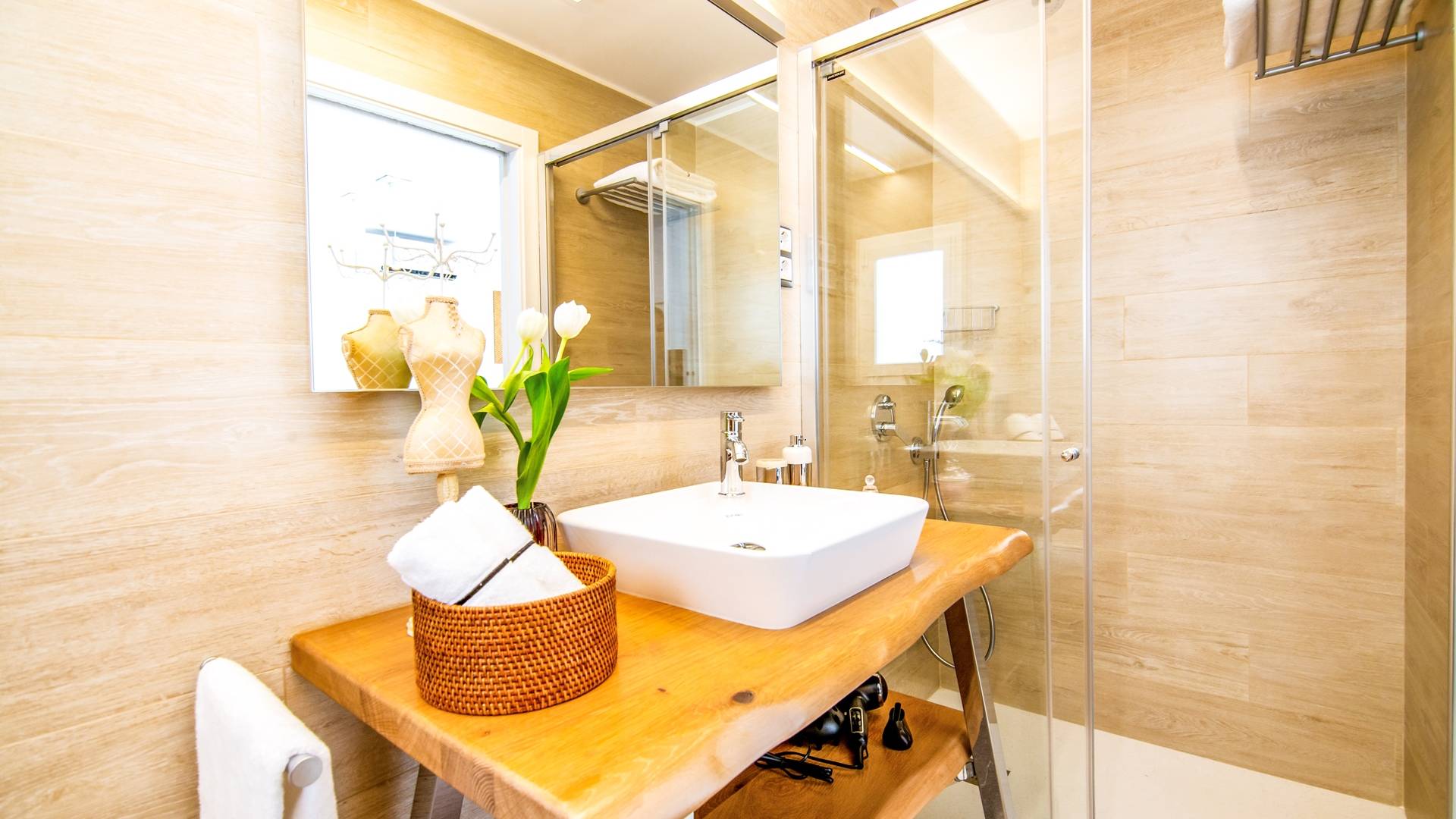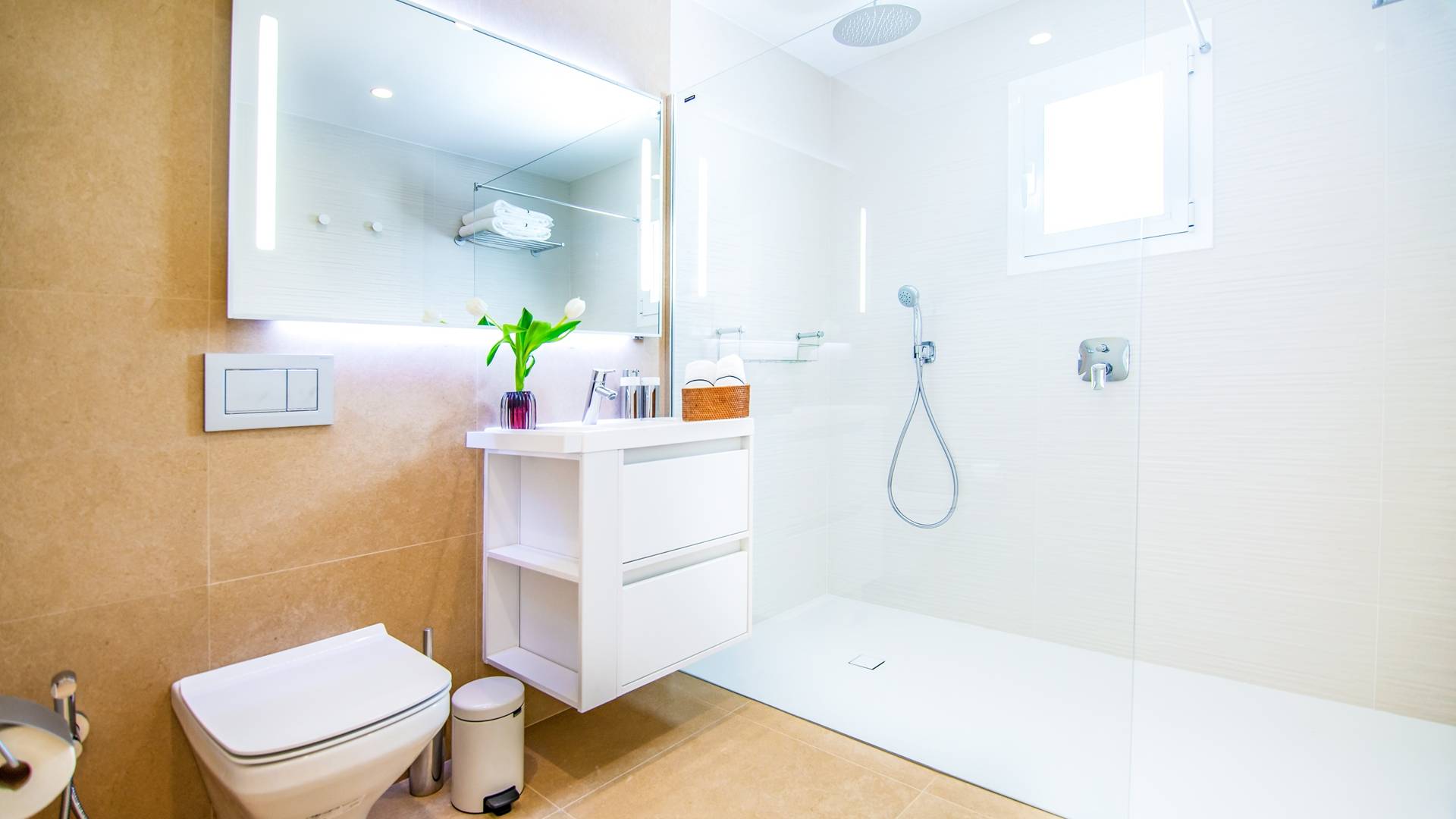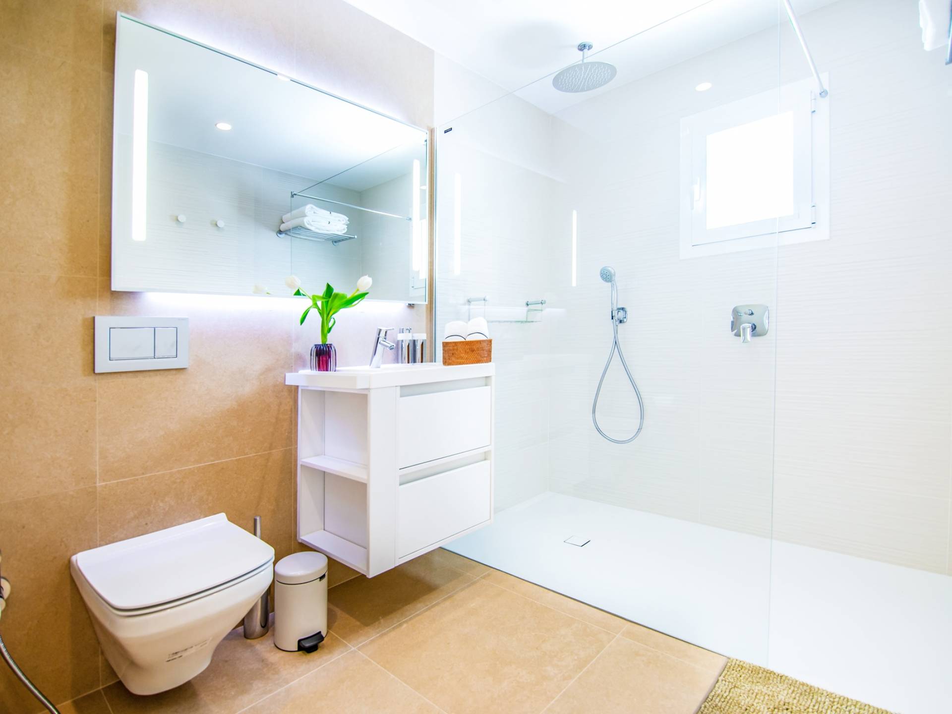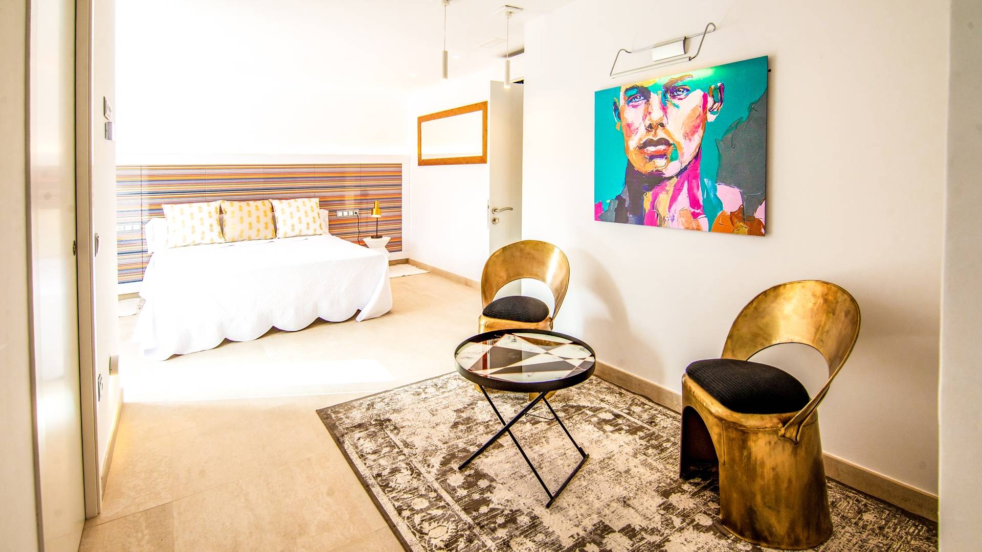 At the entrance, we find the stairs and the elevator that give access to all the floors of the house including the roof terrace. It is divided into the ground floor and the first floor, it has 6 double bedrooms, each with its own bathroom, built-in wardrobe and personalized decoration, a spacious living room with a dining area. If it happens that your trip is for business, it can serve as a meeting room or if you prefer outdoors, there is also a large table on the porch terrace.