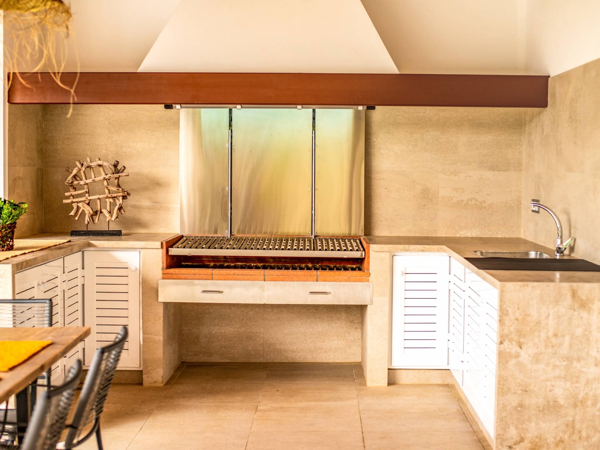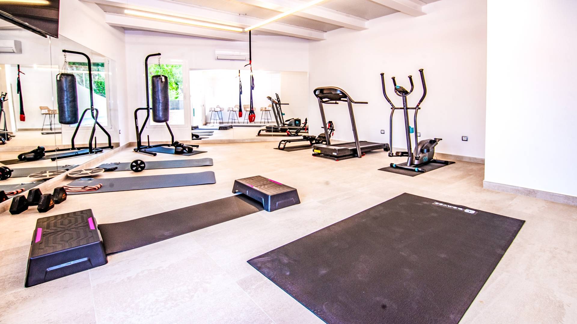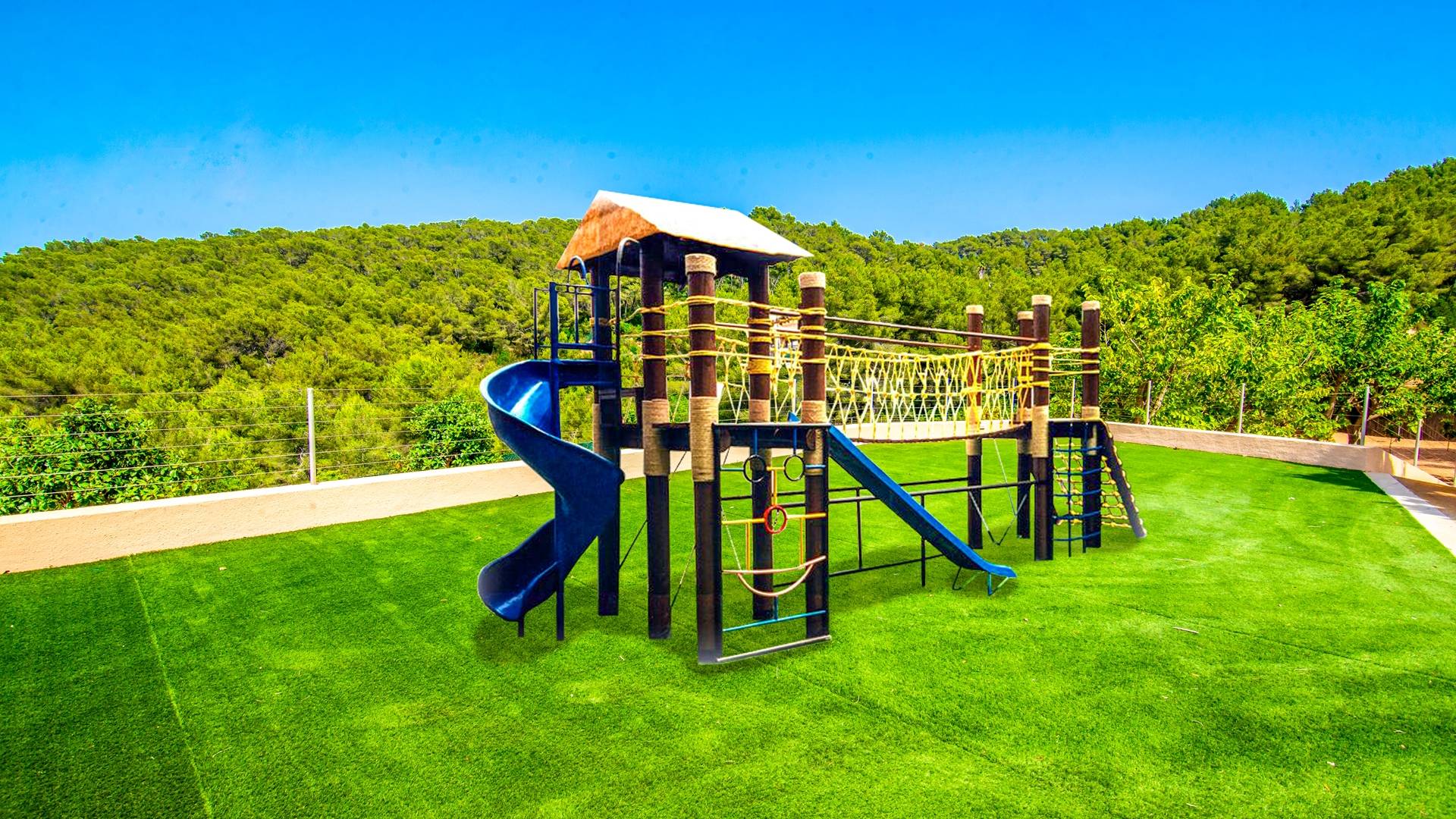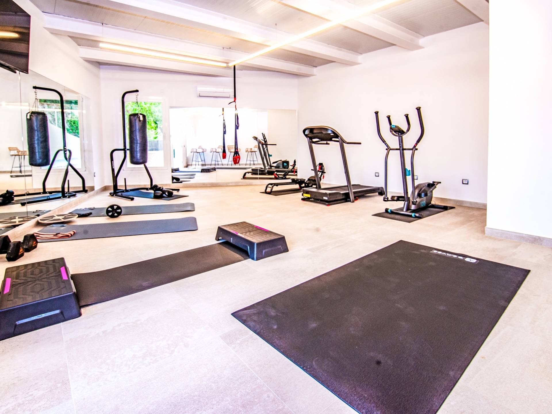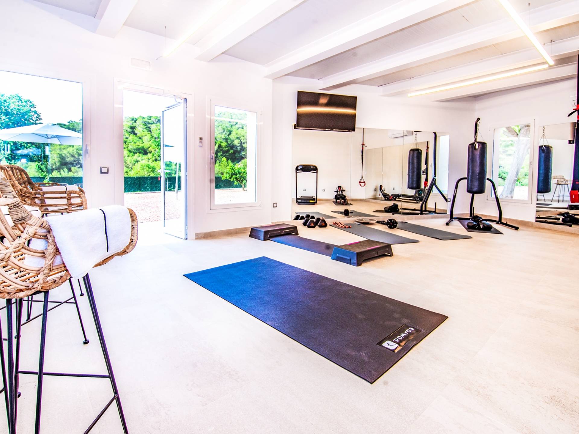 The kitchen is fully equipped, next to it there is a utility room, and another 2 outside with a bathroom included. Outside we find beautiful green areas and a covered terrace next to the pool, Balinese beds, gym, playground, tennis court, parking for several cars. Events with max capacity can be organized. 60 people counting that there is a soundproof disco inside and several lawn areas and terraces outside