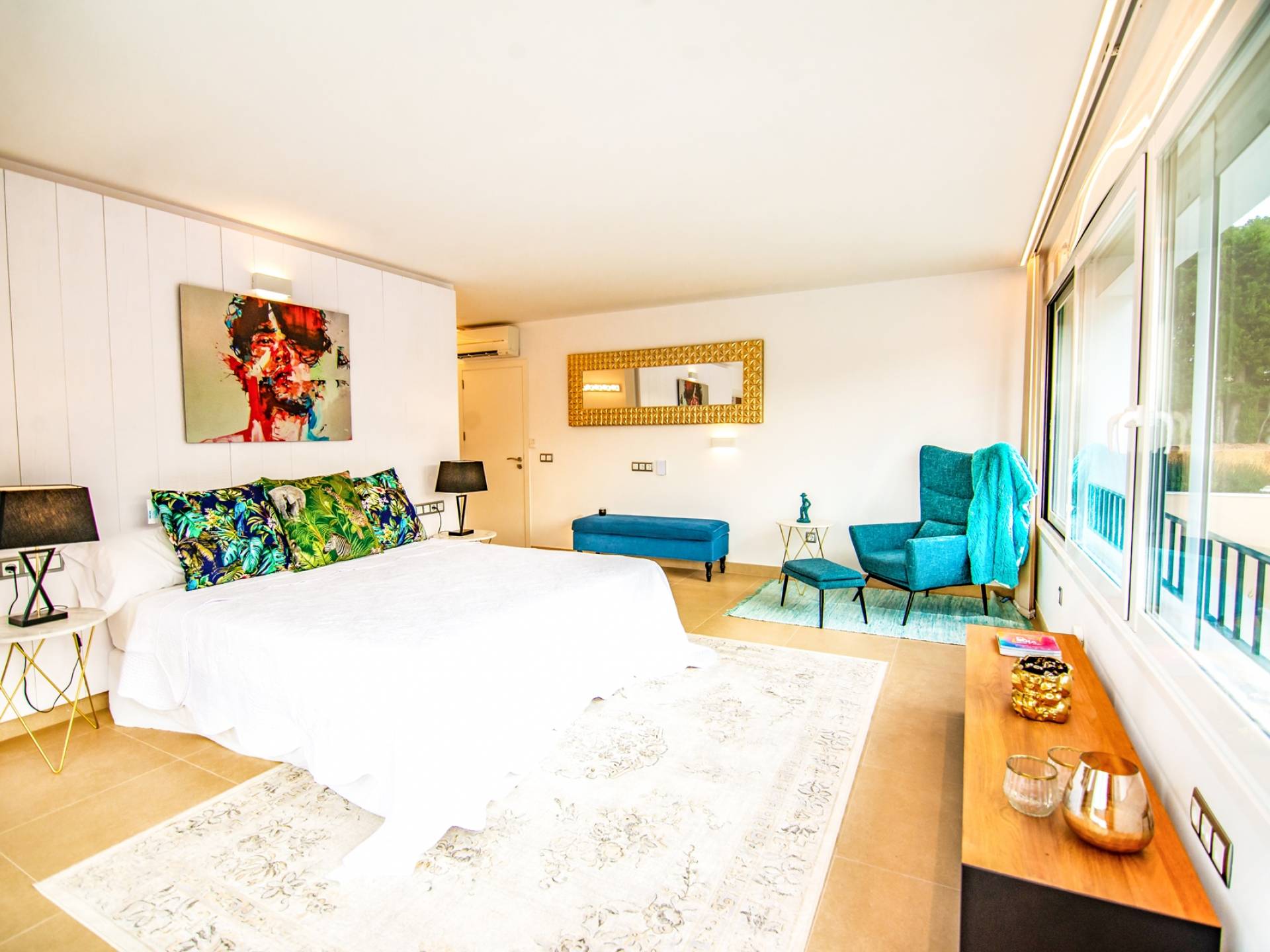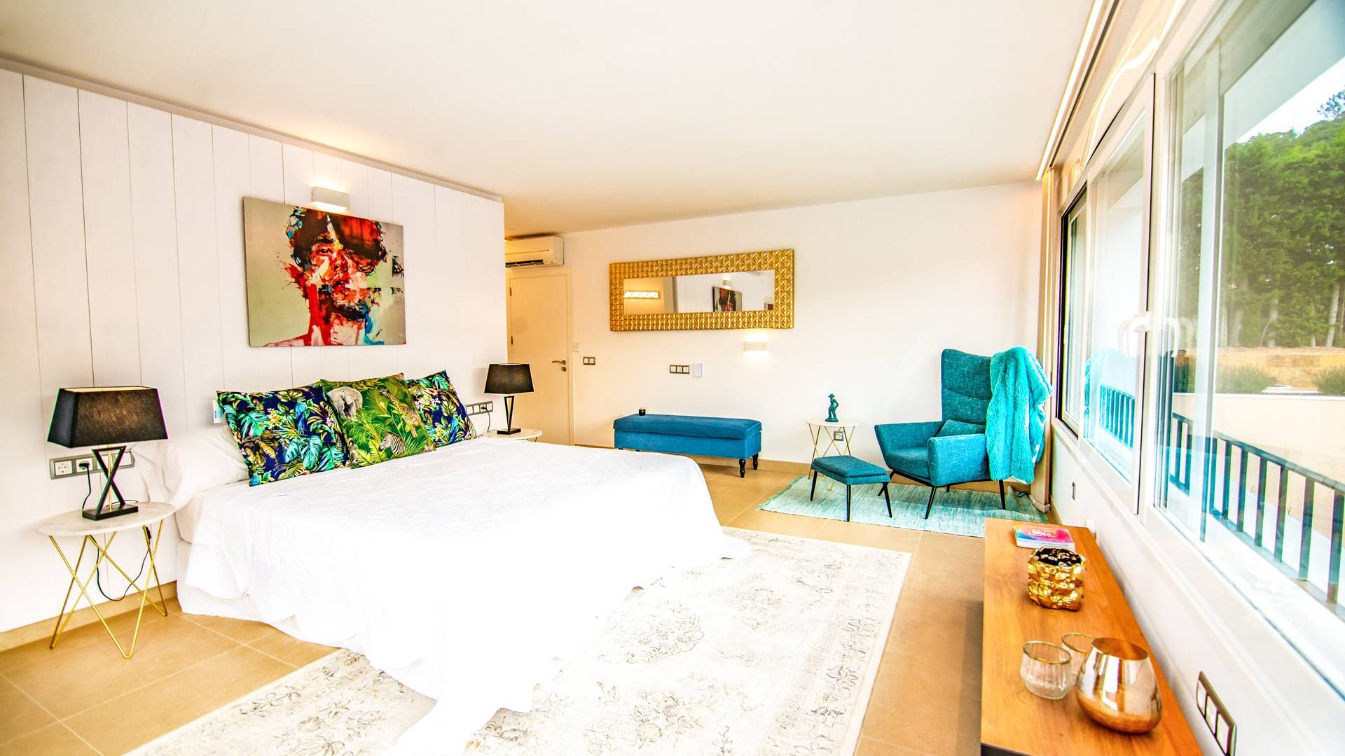 Santa Eulària des Riu is a coastal town on the southeast of Ibiza and the third largest town on the island that includes also the only river on Ibiza. The town is 15 km northeast of Ibiza town and 22 km from the airport, next to a wide bay with the promontory of Punta Arabí at the east end. Port Esportiu is a new harbor and mariner which is lined with restaurants, shops and bars. The town includes safe sandy beaches ideal for family fun. At the western end of the bay, you will find the verdant hill of ‘Puig d’ en Fita’ which dominates the landscape and offers beautiful hiking trails.