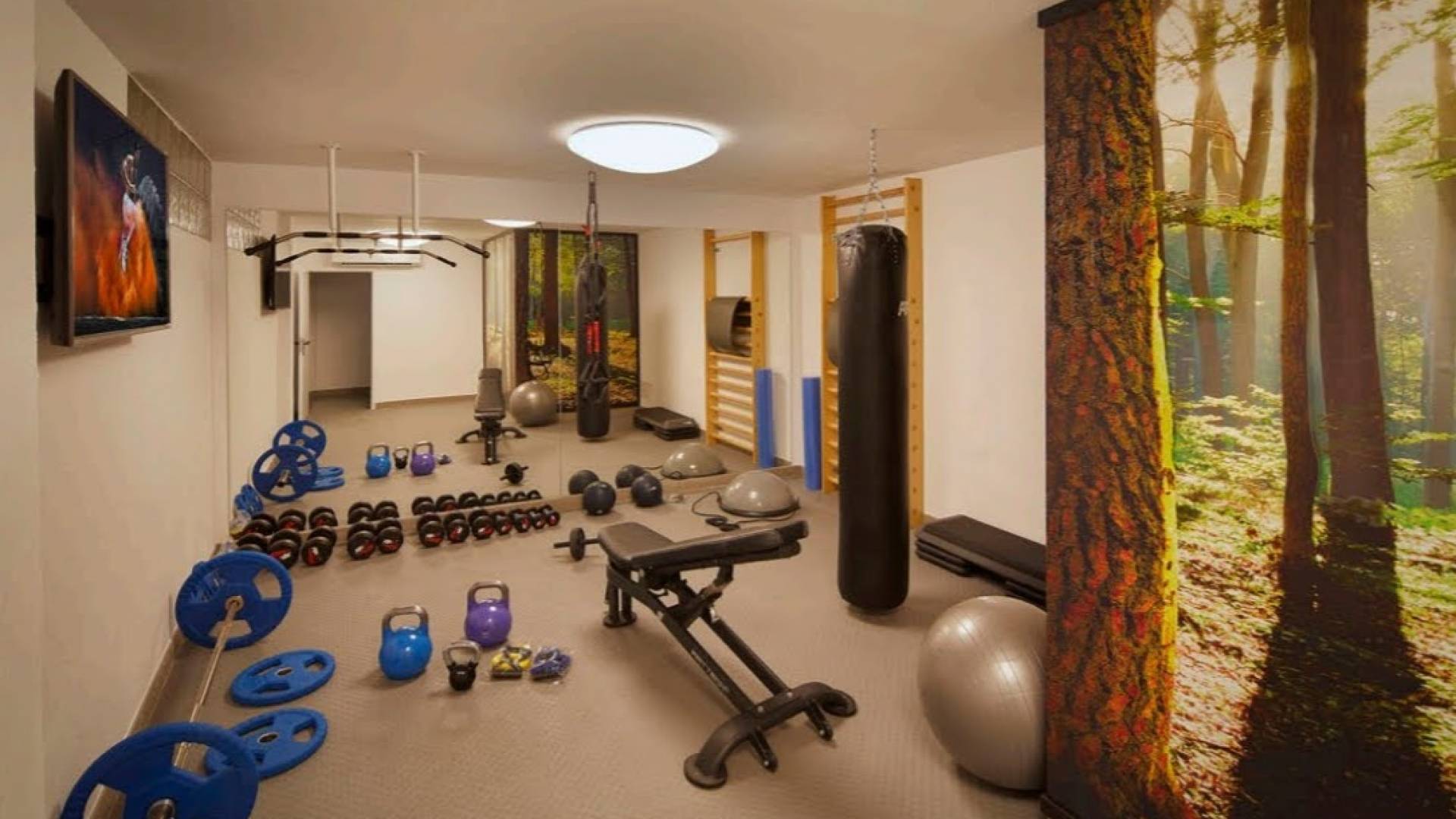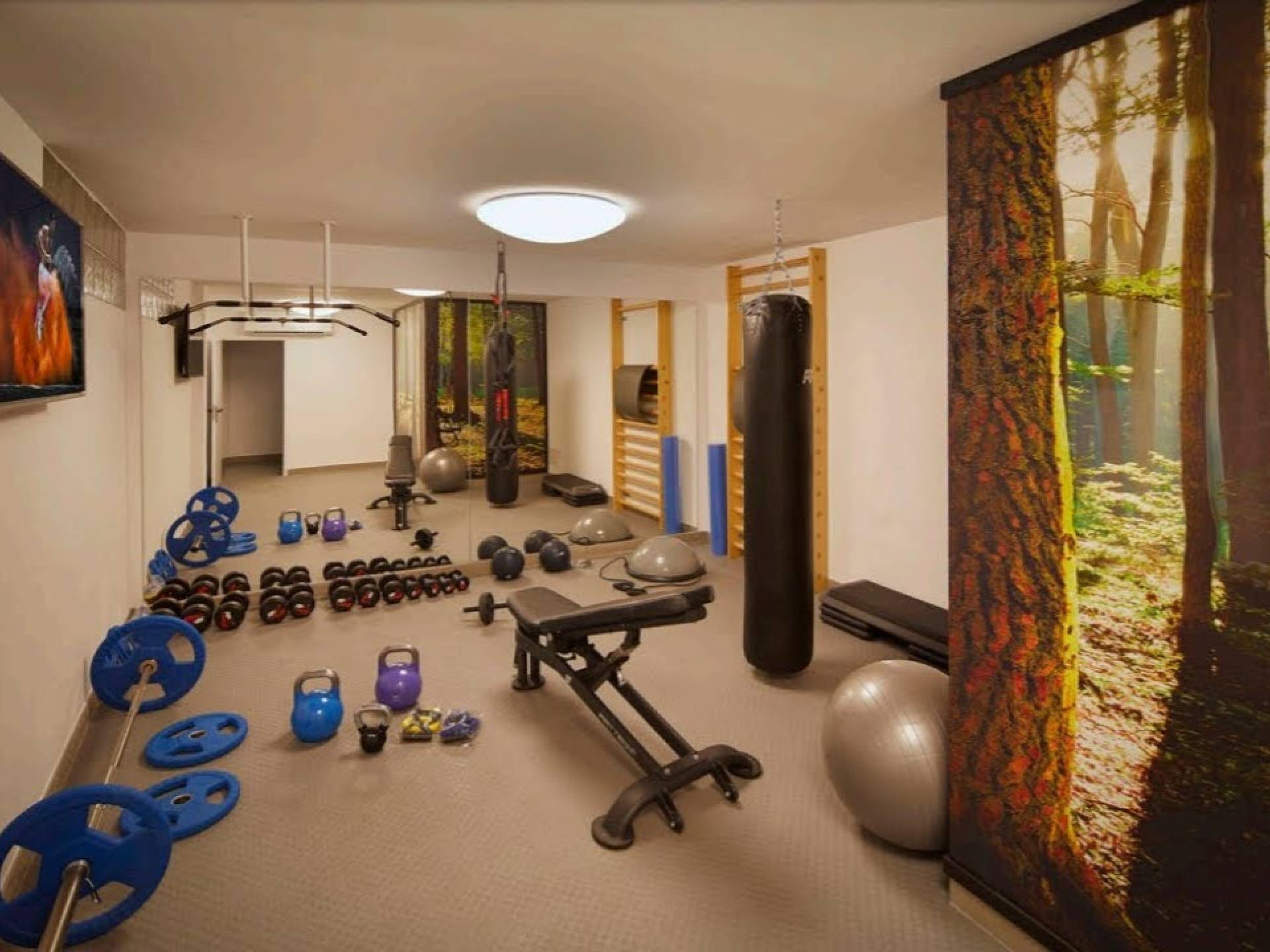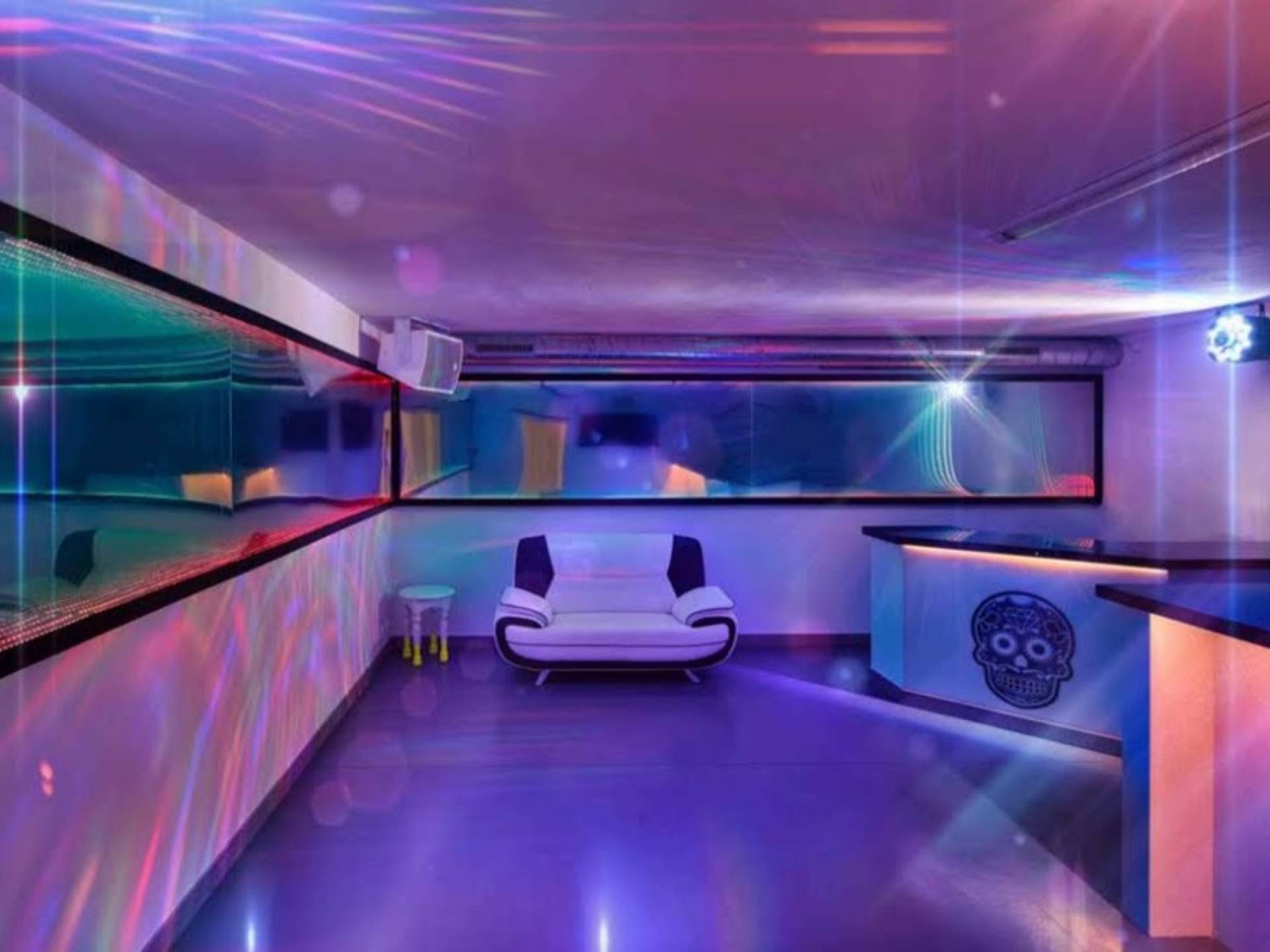 A laundry space is also accessible from the kitchen and is fully equipped with all required amenities, including a washbasin, washing machine, dryer, and storage. You may reach a designated space for drying clothing and disposing of trash in the provided bins from here. From here, you can also reach the subterranean parking. This spectacular mansion, however, does not end there. Those who need to keep up with their regular workout routines won't have to leave the villa because there is a fully equipped gym on the lower level. Bench presses, dumbbells, pull-up bars, punching bag, and weights are all available. This location would surely appeal to fitness enthusiasts. Have you ever wished to go clubbing in the privacy of your own home? Is Sinatra capable of fulfilling this desire? Guests will tingle with delight as they party among friends, thanks to a combination of cutting-edge technology, terrific music, and stunning lighting. Prepare to throw a private party at your villa to surprise your visitors.