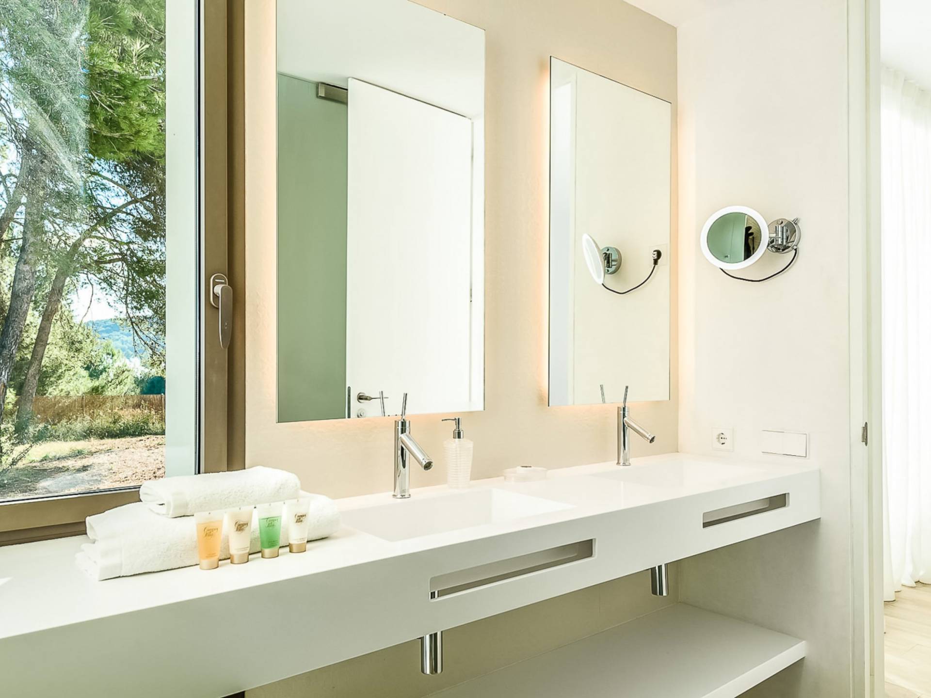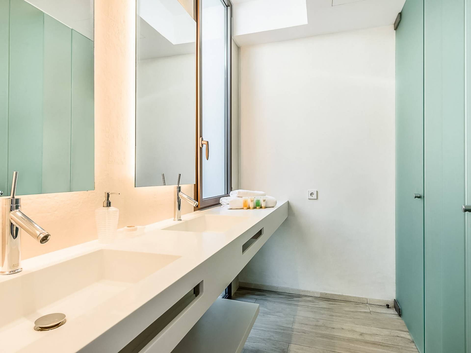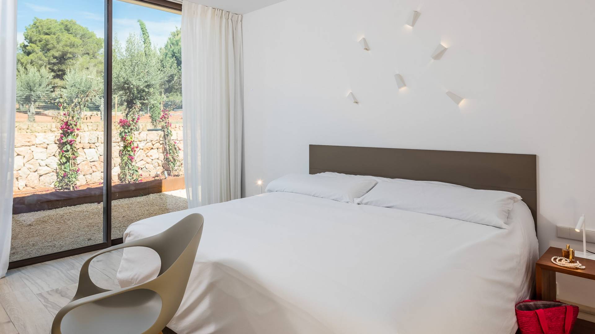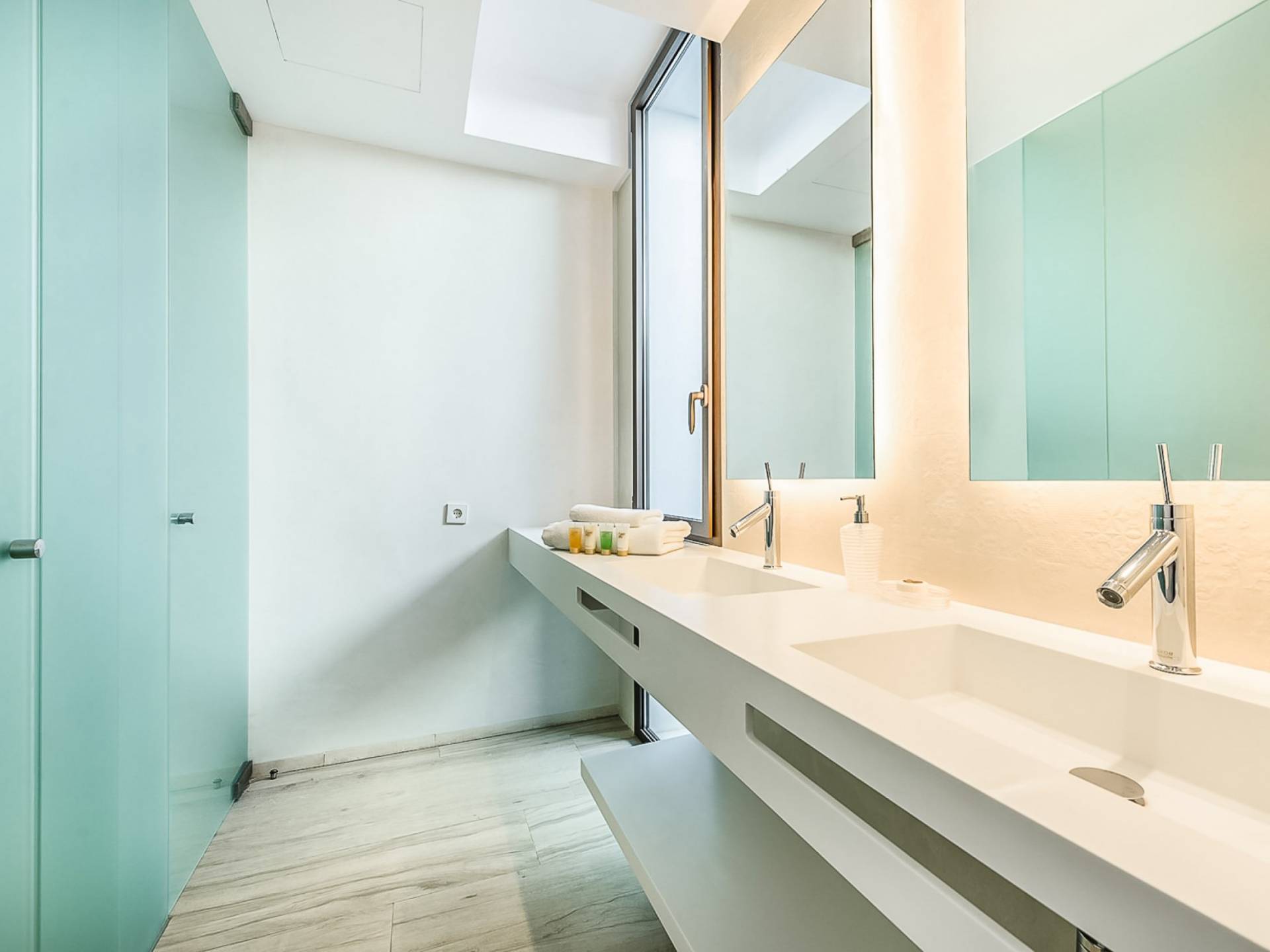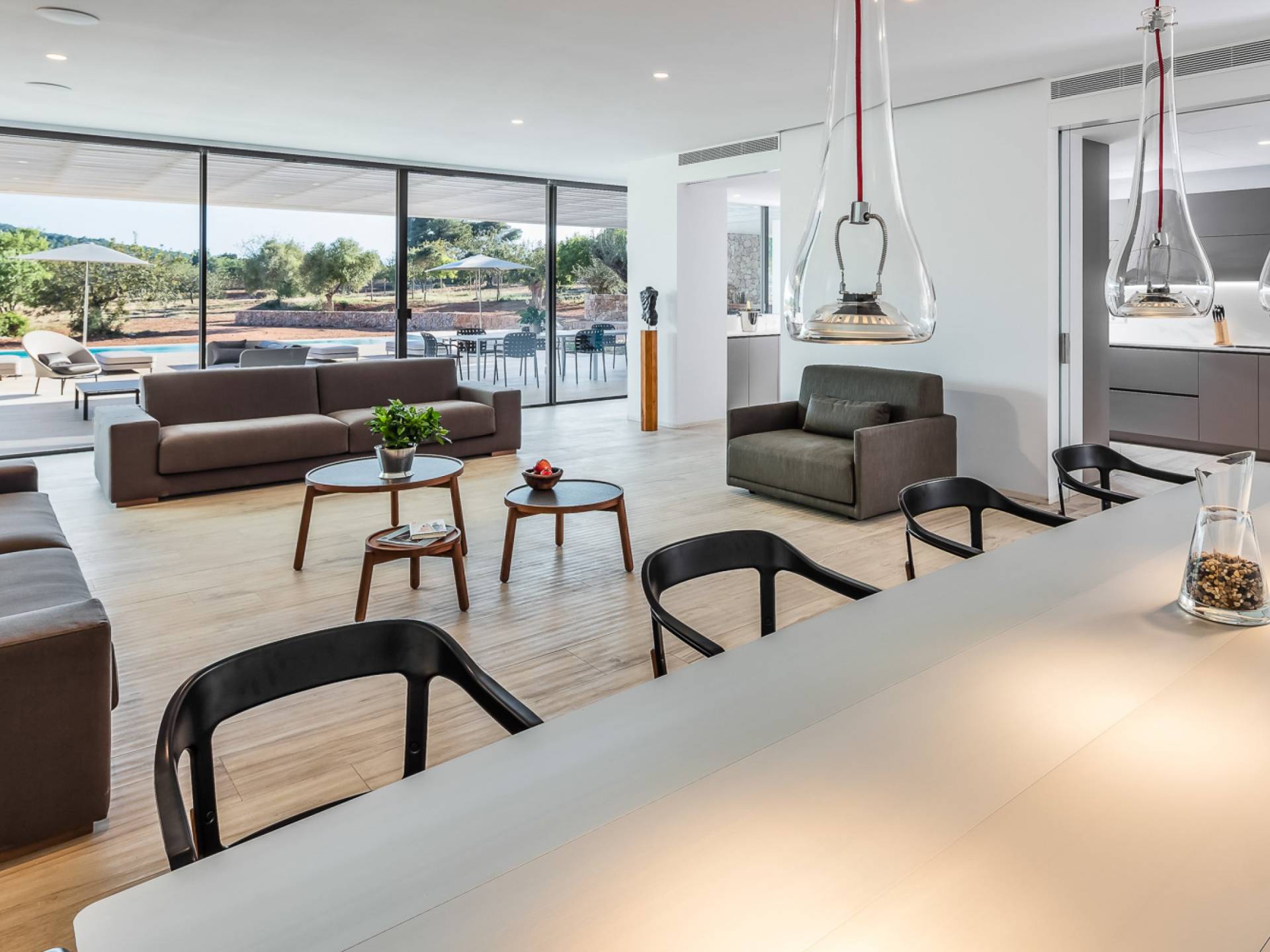 Villa Eclipse Ibiza is a modern villa located in the centre of the island with large outdoor entertaining areas. This immaculate property is completely new and oozes modern architecture and style. It has been finished to a very high standard and offers 5 star comfort. The villa has 480 m2, and 20,000 m2 of land surrounds it.