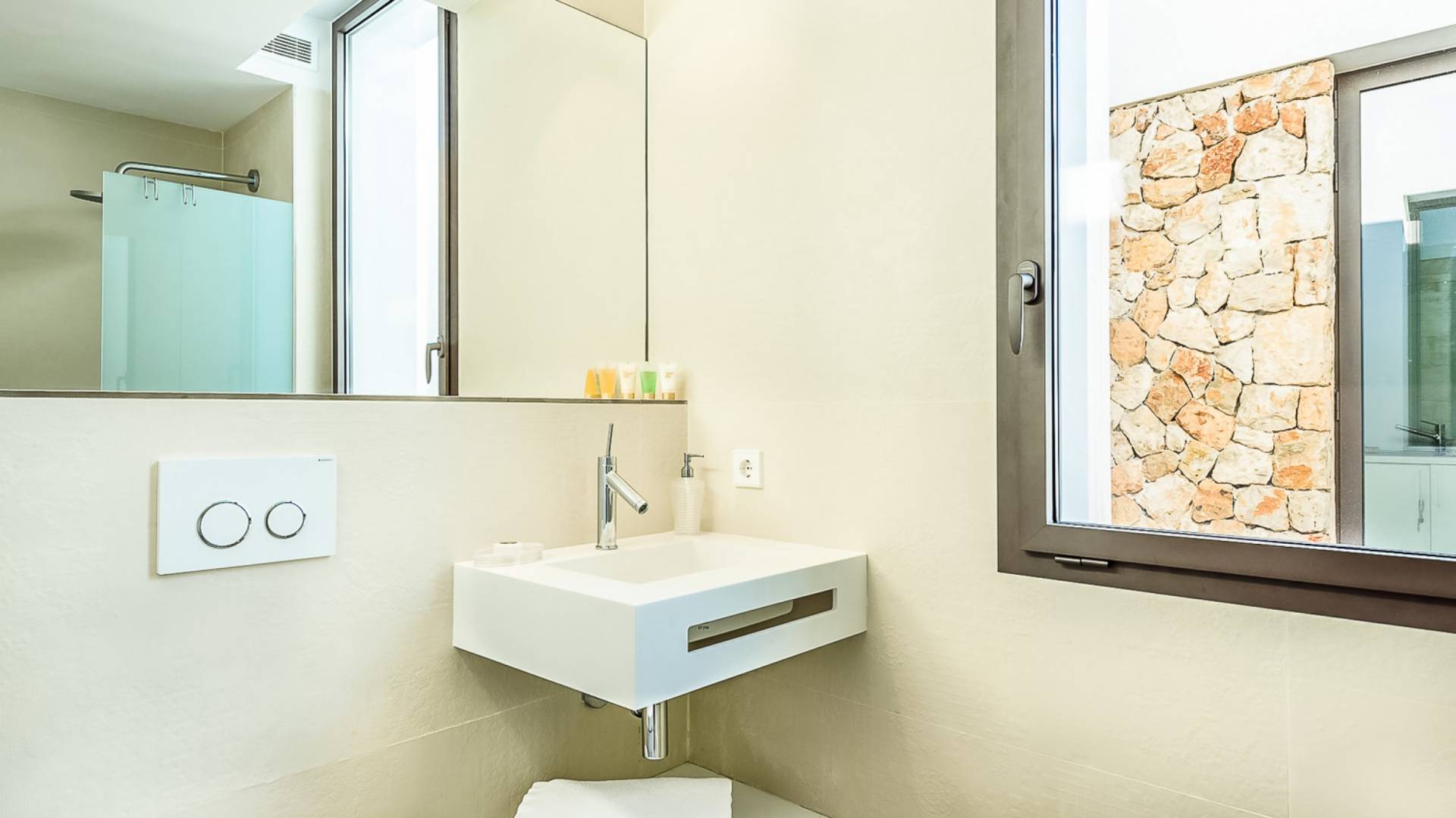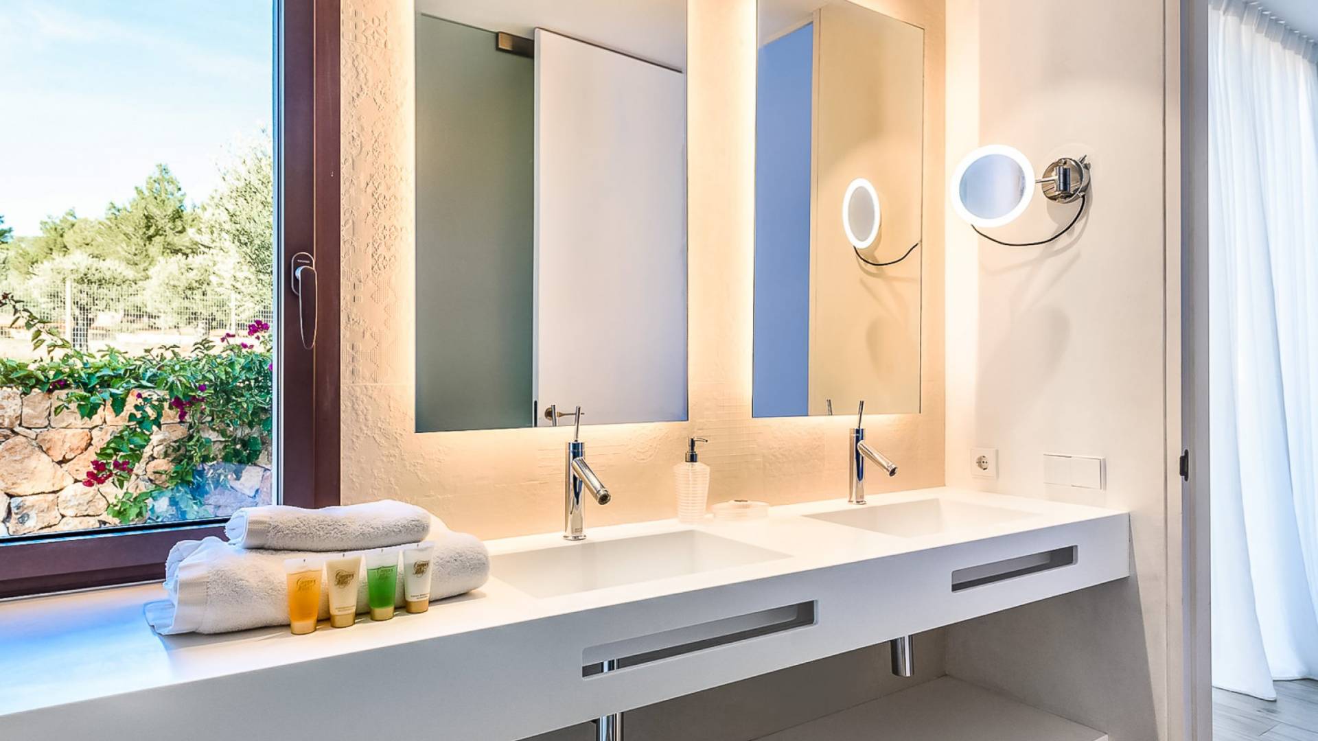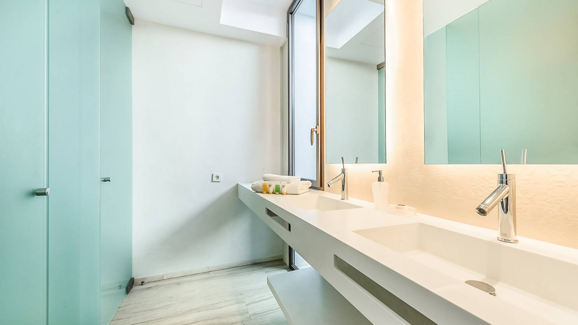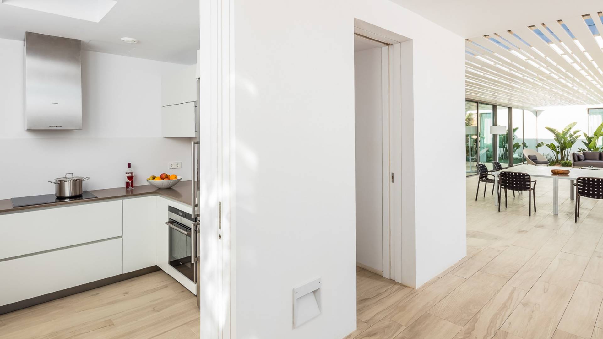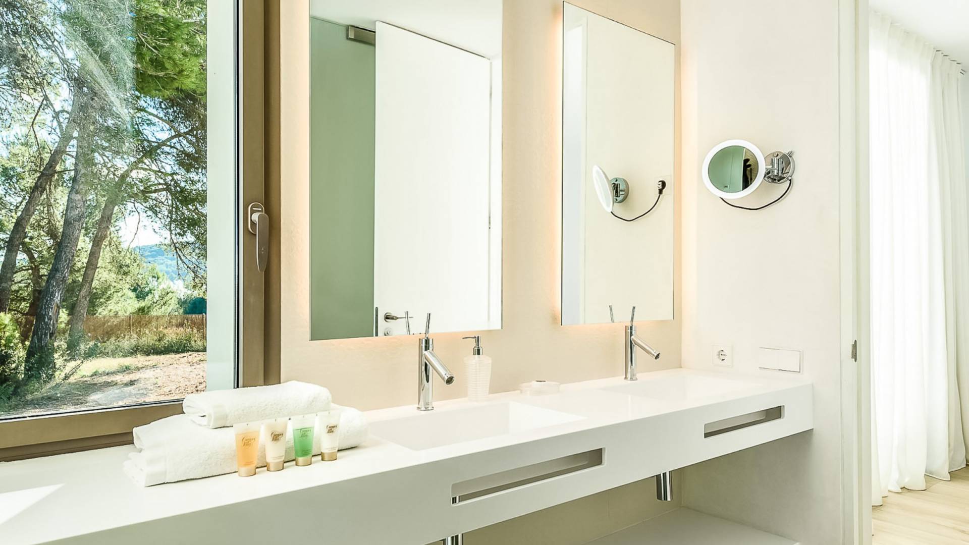 Villa Eclipse Ibiza is a modern villa located in the centre of the island with large outdoor entertaining areas. This immaculate property is completely new and oozes modern architecture and style. It has been finished to a very high standard and offers 5 star comfort. The villa has 480 m2, and 20,000 m2 of land surrounds it.