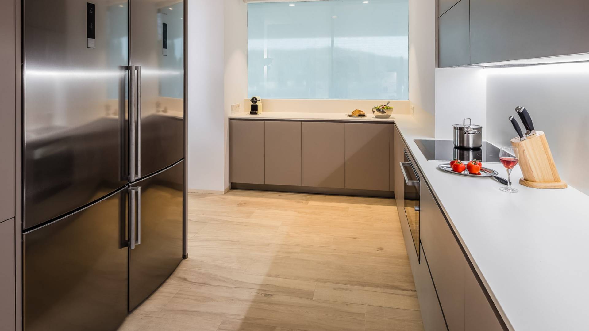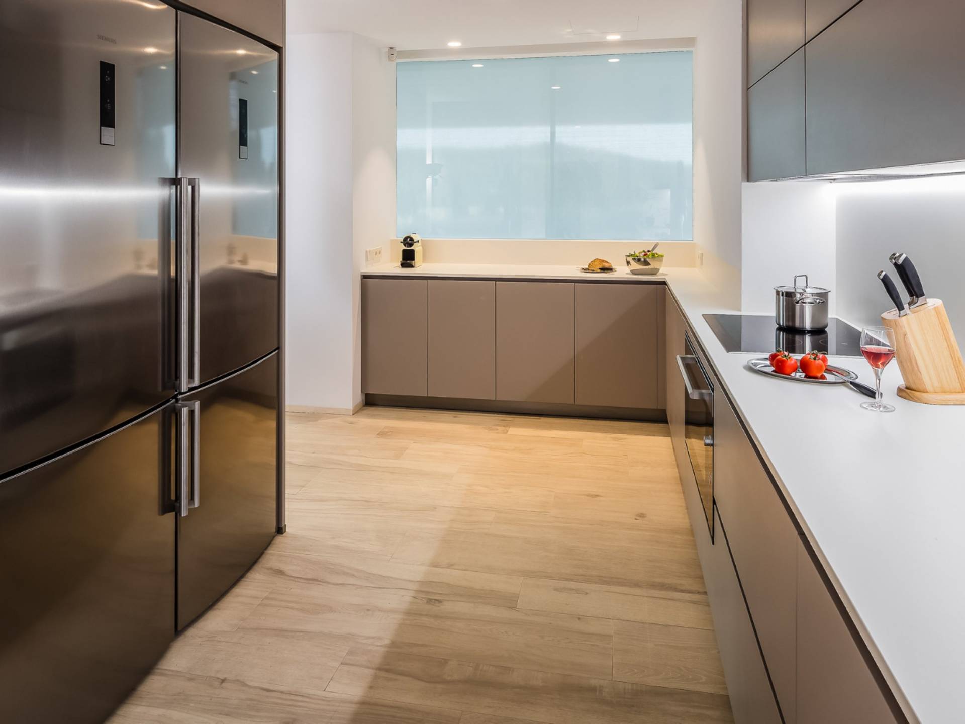 The lounge and dining areas easily accommodate 14 guests; the lounge features an LCD TV with satellite and is beautifully furnished. The villa has 2 kitchens (1 inside and 1 outside). The indoor kitchen is fully equipped with a fridge, freezer, dishwasher, oven, microwave and all other necessary household items and kitchenware. Also there is a guest toilet, laundry room with washer and tumble dryer and an indoor and outdoor drying area. WiFi and air conditioning (hot and cold) is available in all rooms throughout the house.