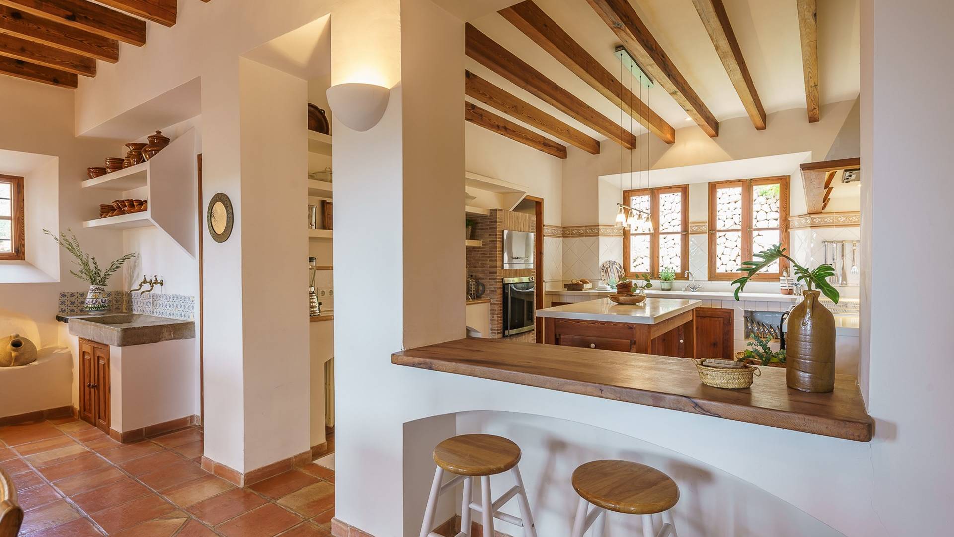 This same care and attention to detail is also apparent in the exterior of the property; a private pool sits next to a well-tended lawn and a very private garden stocked with palm, olive, fruit and cypress trees, bougainvilleas and climbers creating a quaint and comfortable outdoor area. To the left of the entrance hall is an open living / dining room and kitchen.