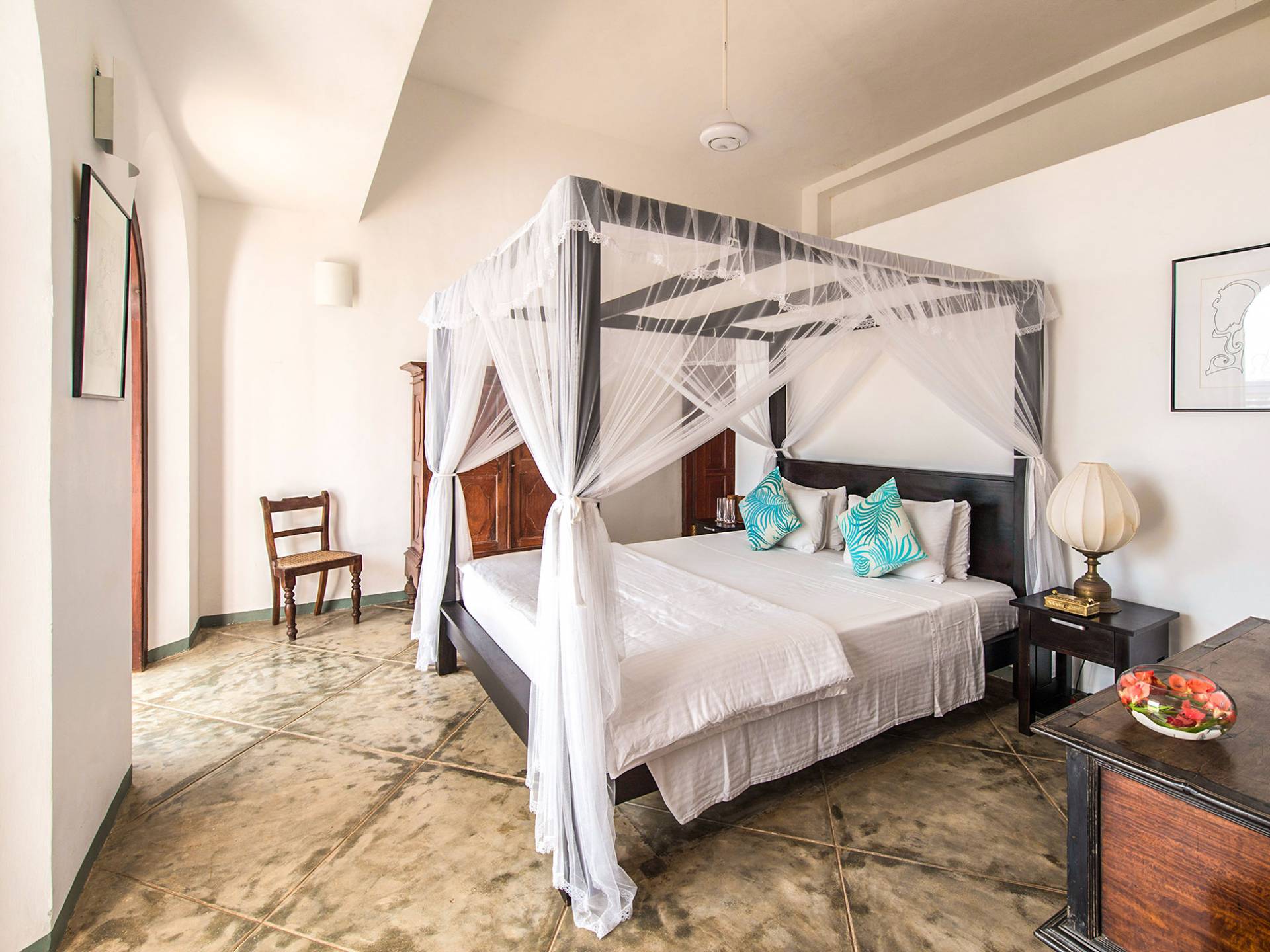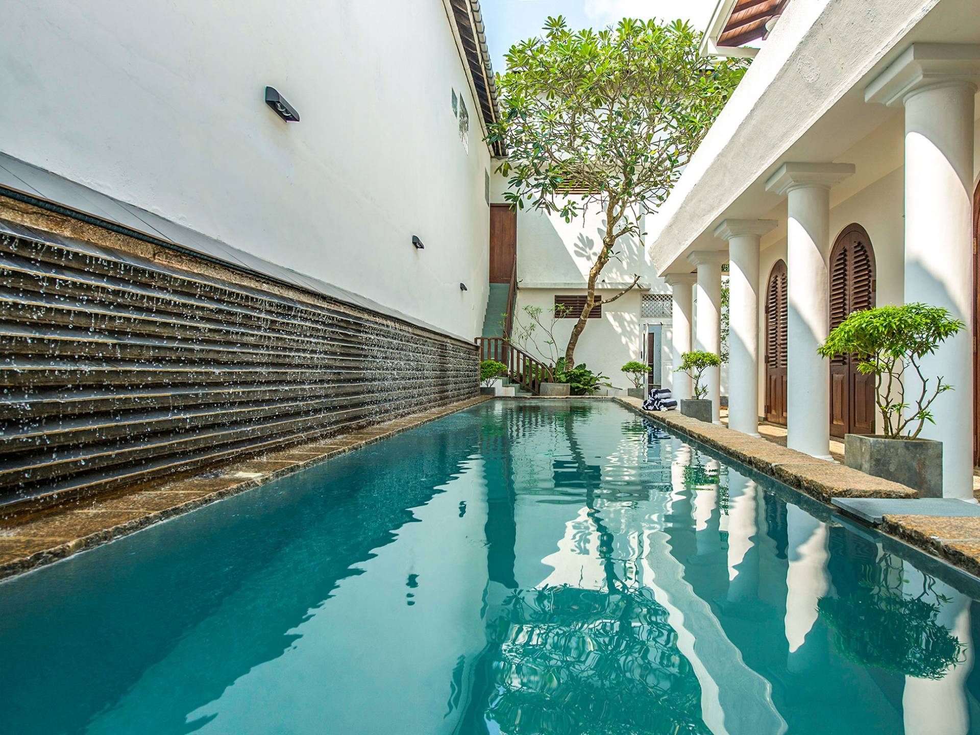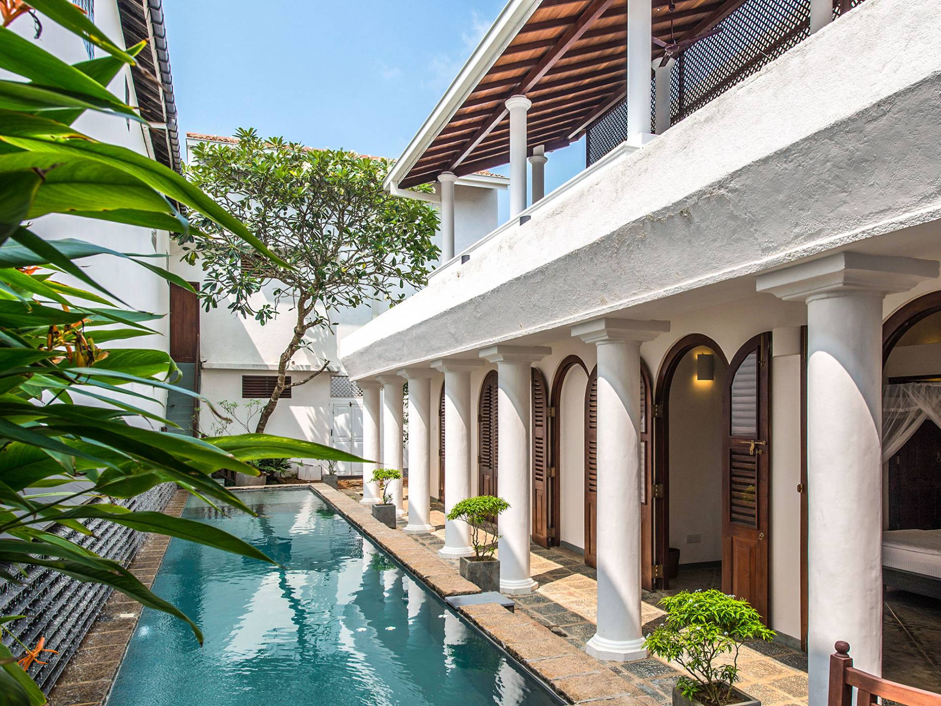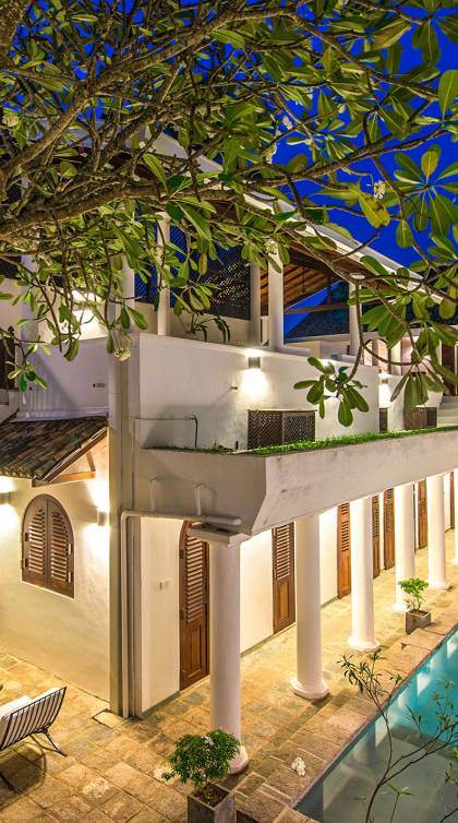 Tucked within Galle’s historic seventeenth-century fortress on the south coast of Sri Lanka, this majestic five-bedroom private luxury villa, the former residence of the Sri Lankan Ambassador to Pakistan, Iraq, and Bangladesh is bursting with colonial charm. Ambassador’s House boasts abundant living space, including a roof terrace and a huge lounge, as well as an elongated swimming pool and a lush, palm-shaded courtyard. An experienced staff team, including a private chef, welcomes guests with traditional Sri Lankan hospitality and tends to satisfy every need to ensure that families and friends can relax and cherish their time soaking up the nostalgia of these elegant surroundings.
