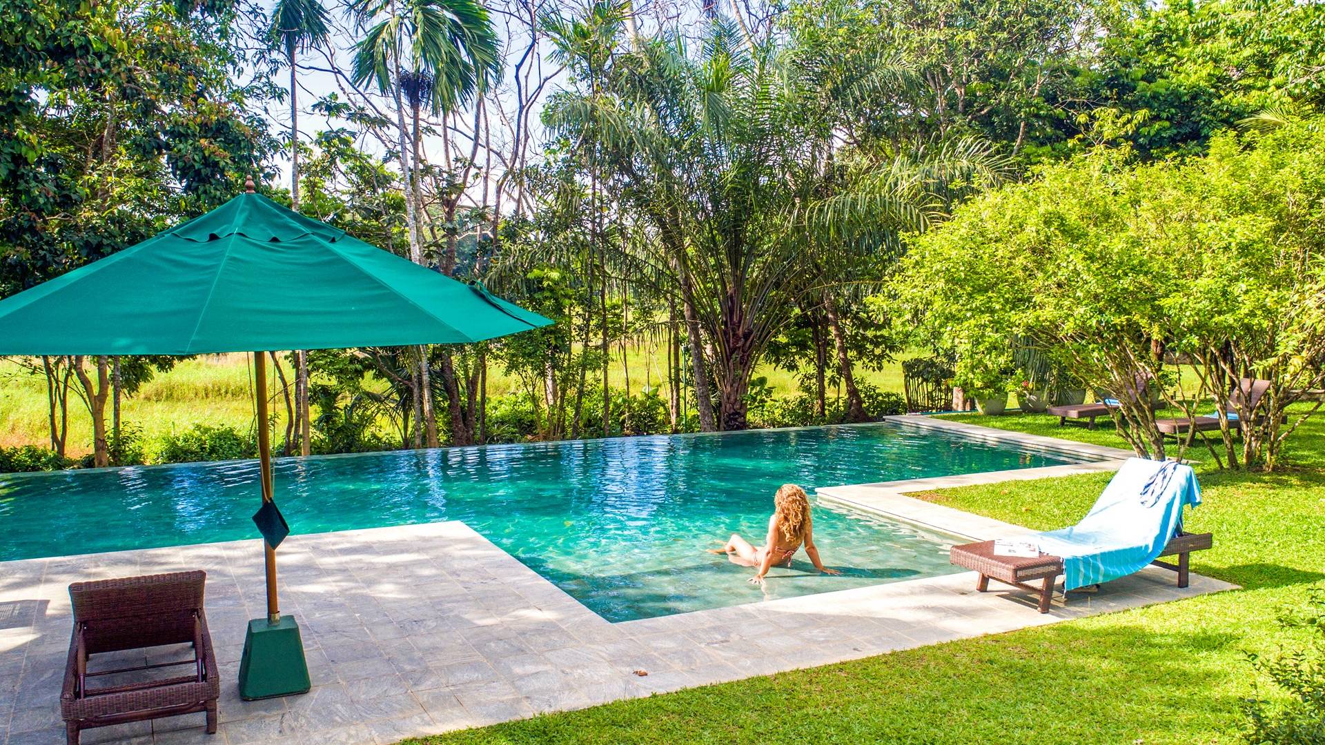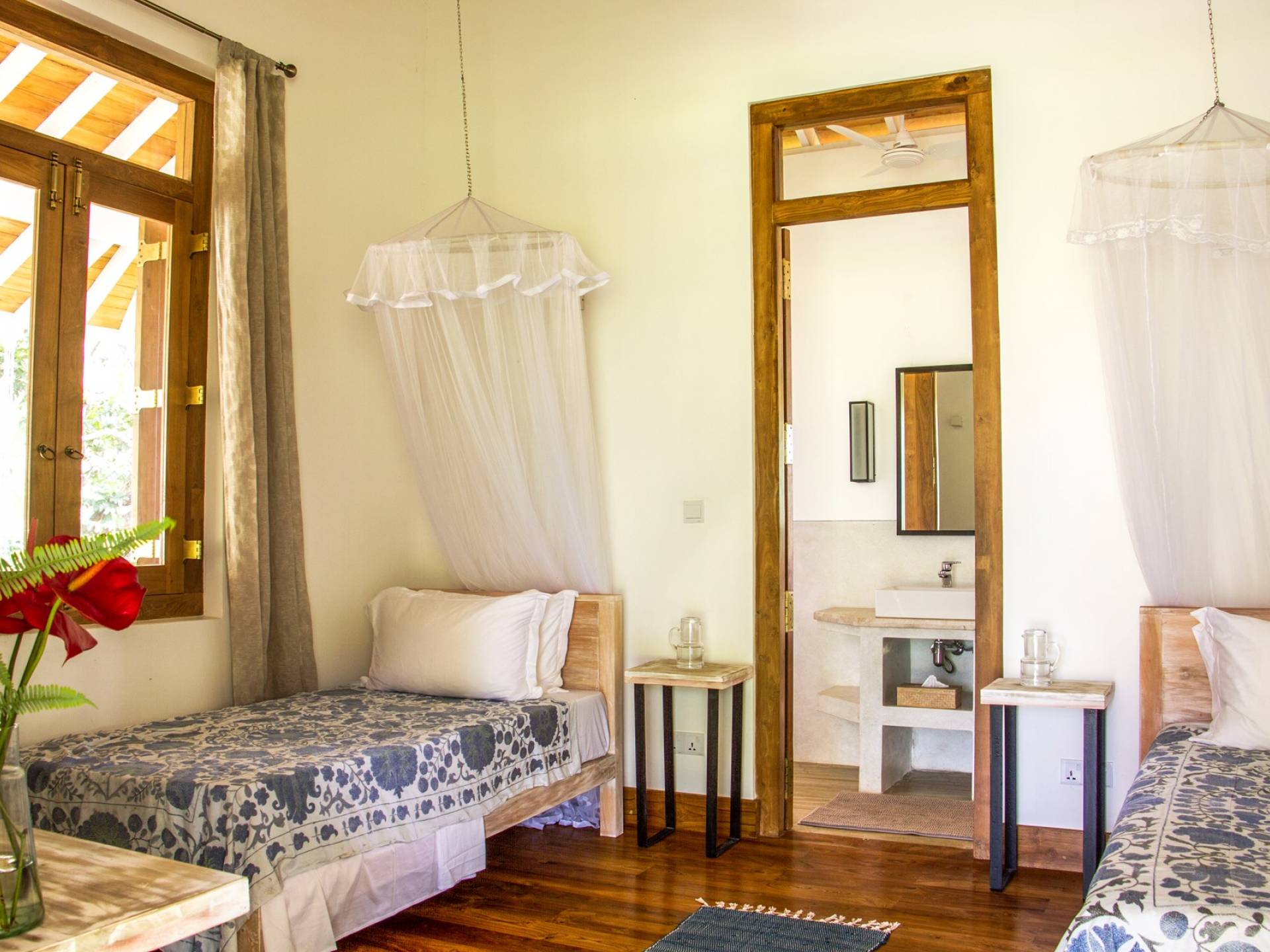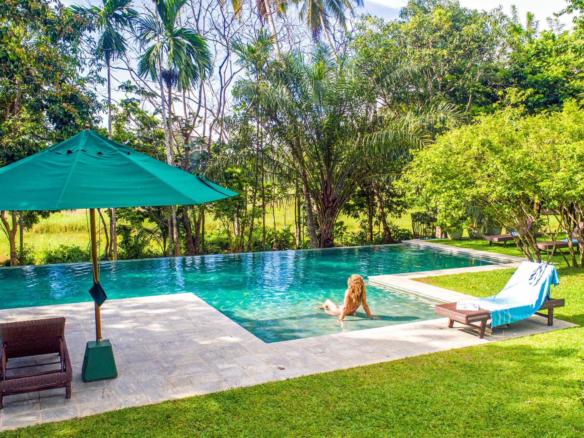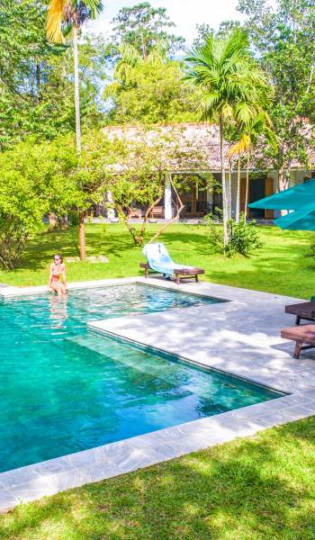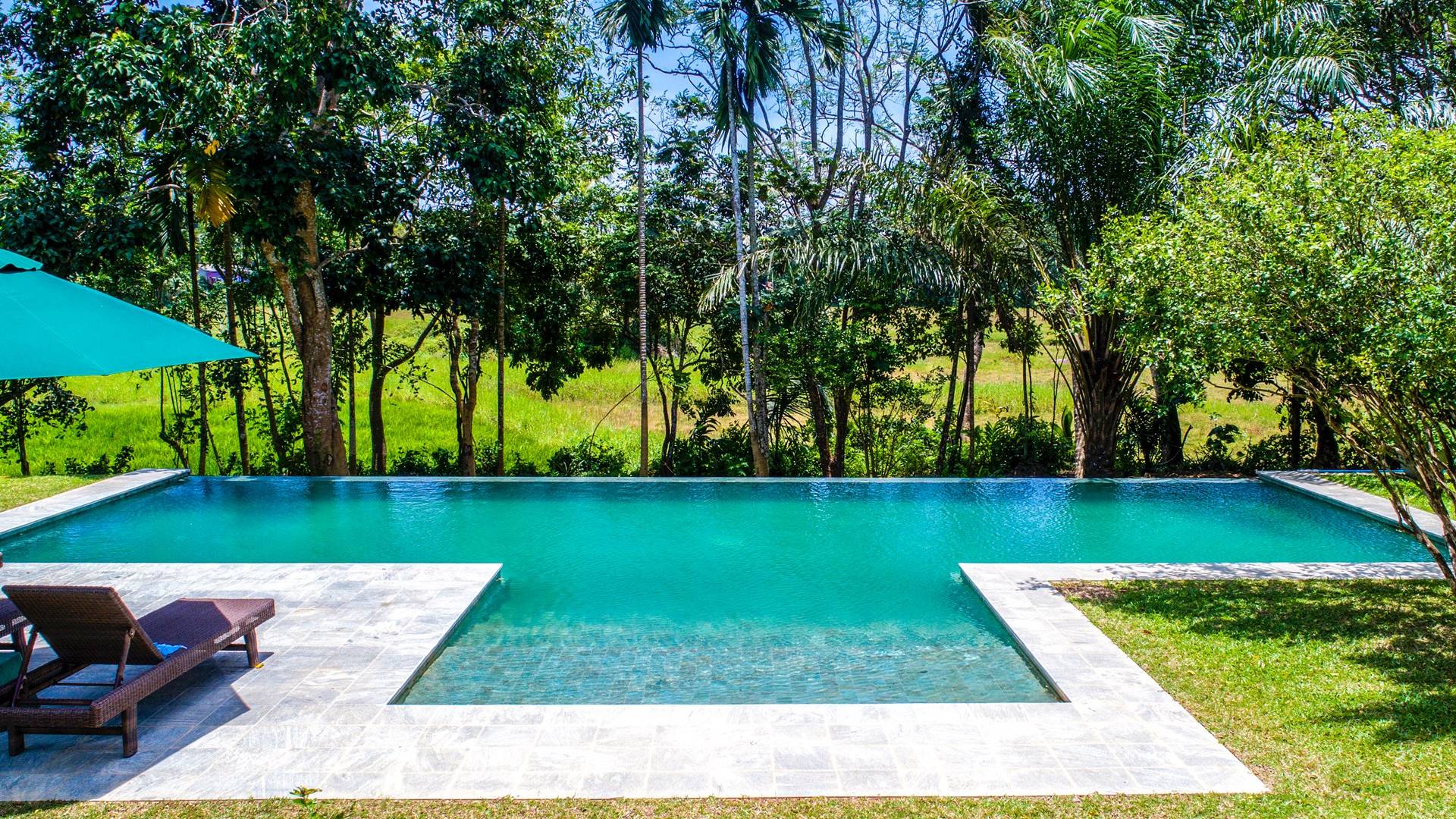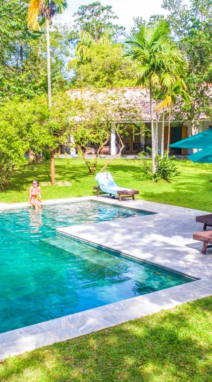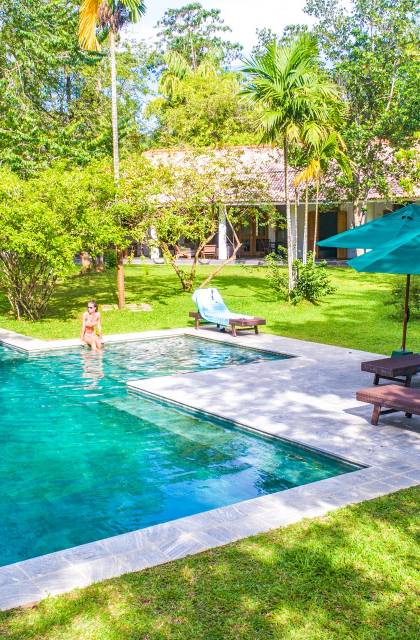 In front of the house is a great T-shaped infinity-edged swimming pool which is eco-friendly and chlorine-free, balanced instead by a copper and mineral mix. There are six moveable sunbeds and a phenomenal pool view. Just beyond the pool are a very neat vegetable patch and herb garden so that the fantastic chef can use fresh ingredients straight from the land. The Boundary House is a tropical sanctuary of its own, but it is also in a prime location for lovely local beaches, great bars, and restaurants, bespoke bike rides, the UNESCO World Heritage site, Galle Fort, and a hive of other activities.
