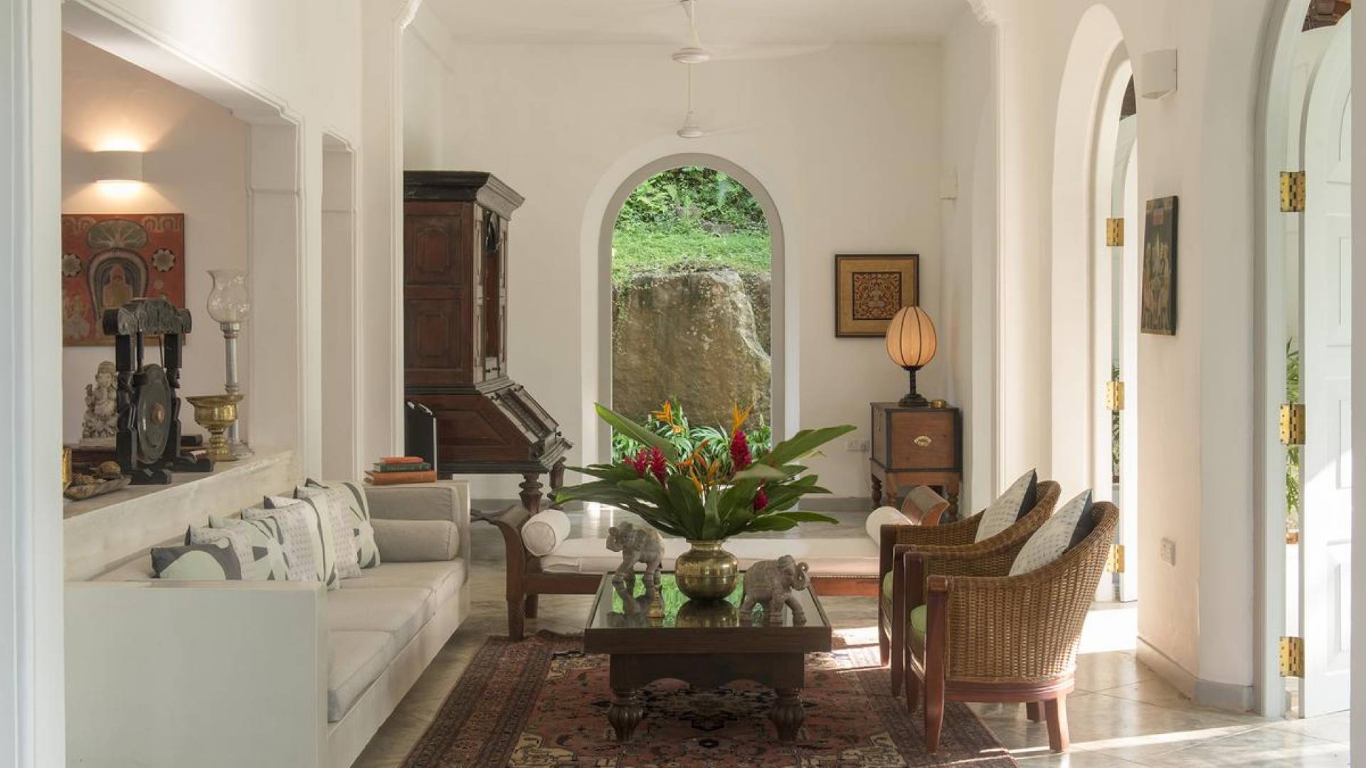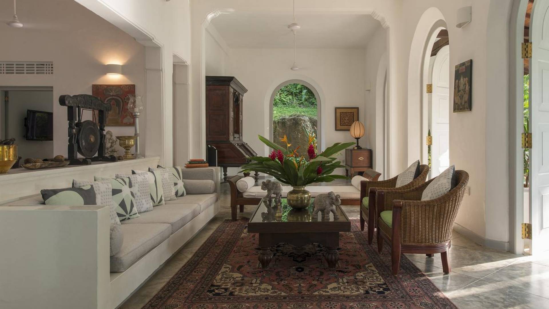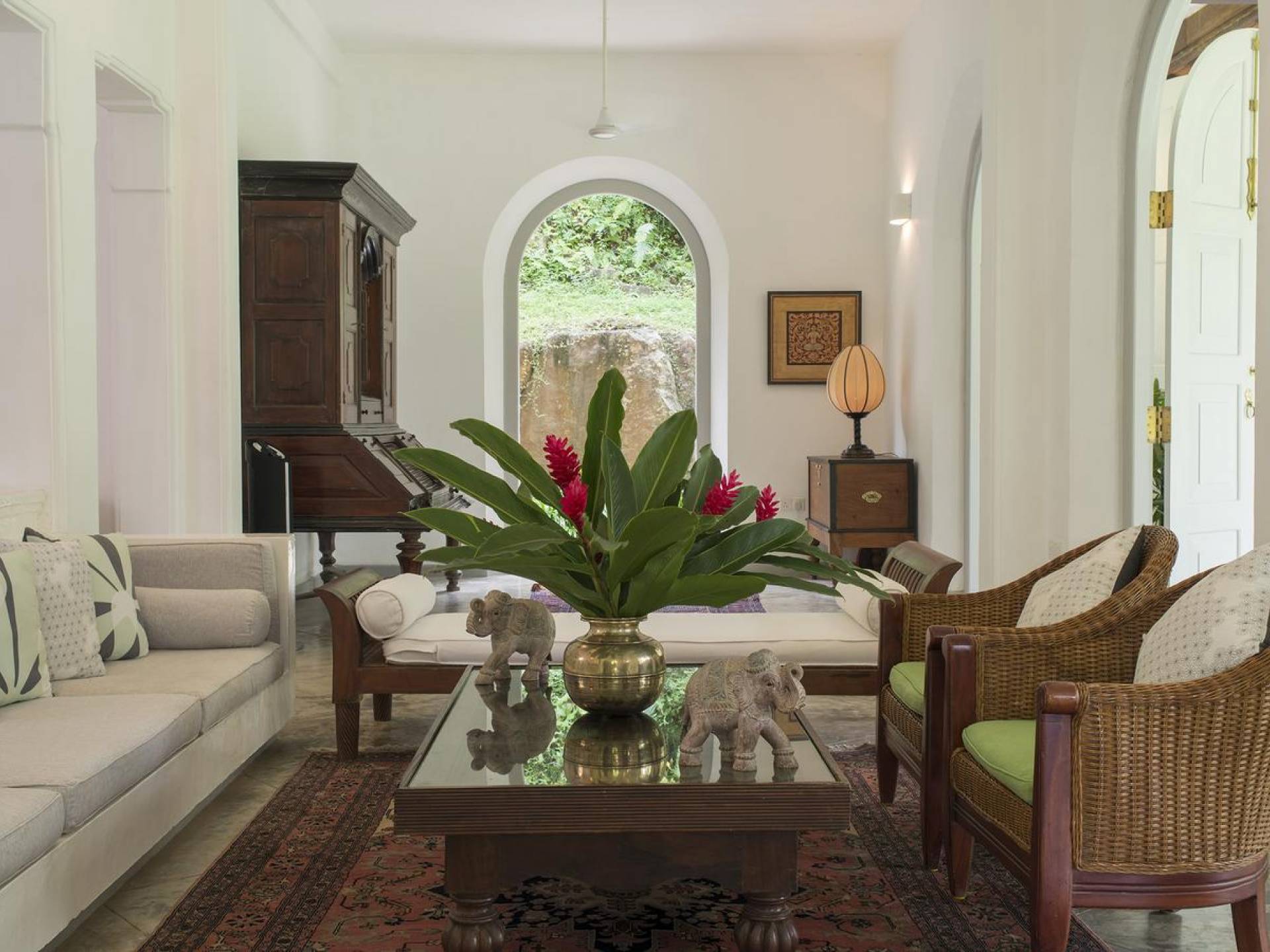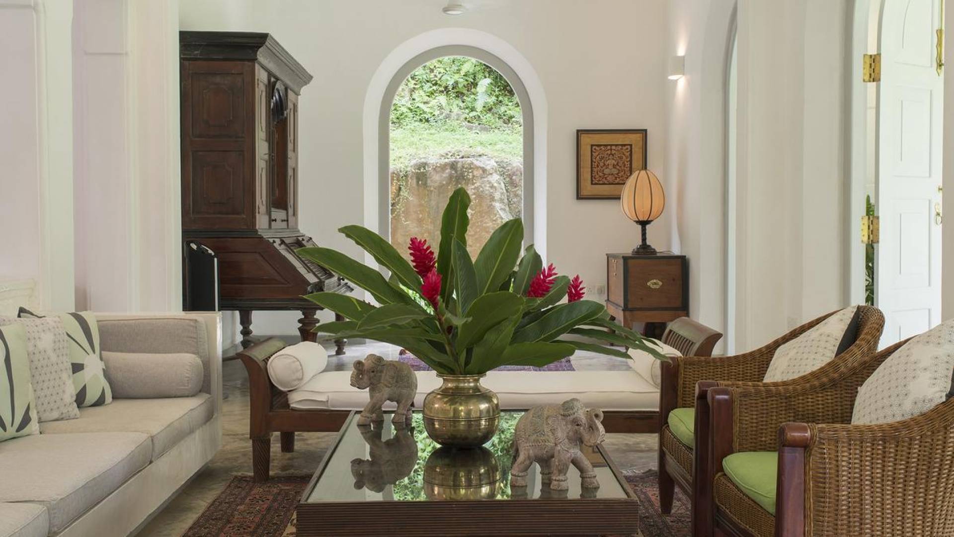 Wide verandas, cool wraparound balconies, arched doorways, and lofty beamed ceilings characterize this serene Dutch-colonial-style villa that is perfect for groups and families looking to connect and unwind. Villa Pooja Kanda’s tranquility is further enhanced by a garden enlivened by birdsong, squirrels, and inquisitive monkeys. Fine quality furniture and fabrics, impressive decorative elements, and a palette of earthy colors offer a classy ambient to Villa Pooja Kanda’s interior spaces. The villa is fully staffed and comes with a swimming pool, uniquely designed interior spaces, and a fully equipped kitchen. The luxury rental also contains all modern entertainment amenities.