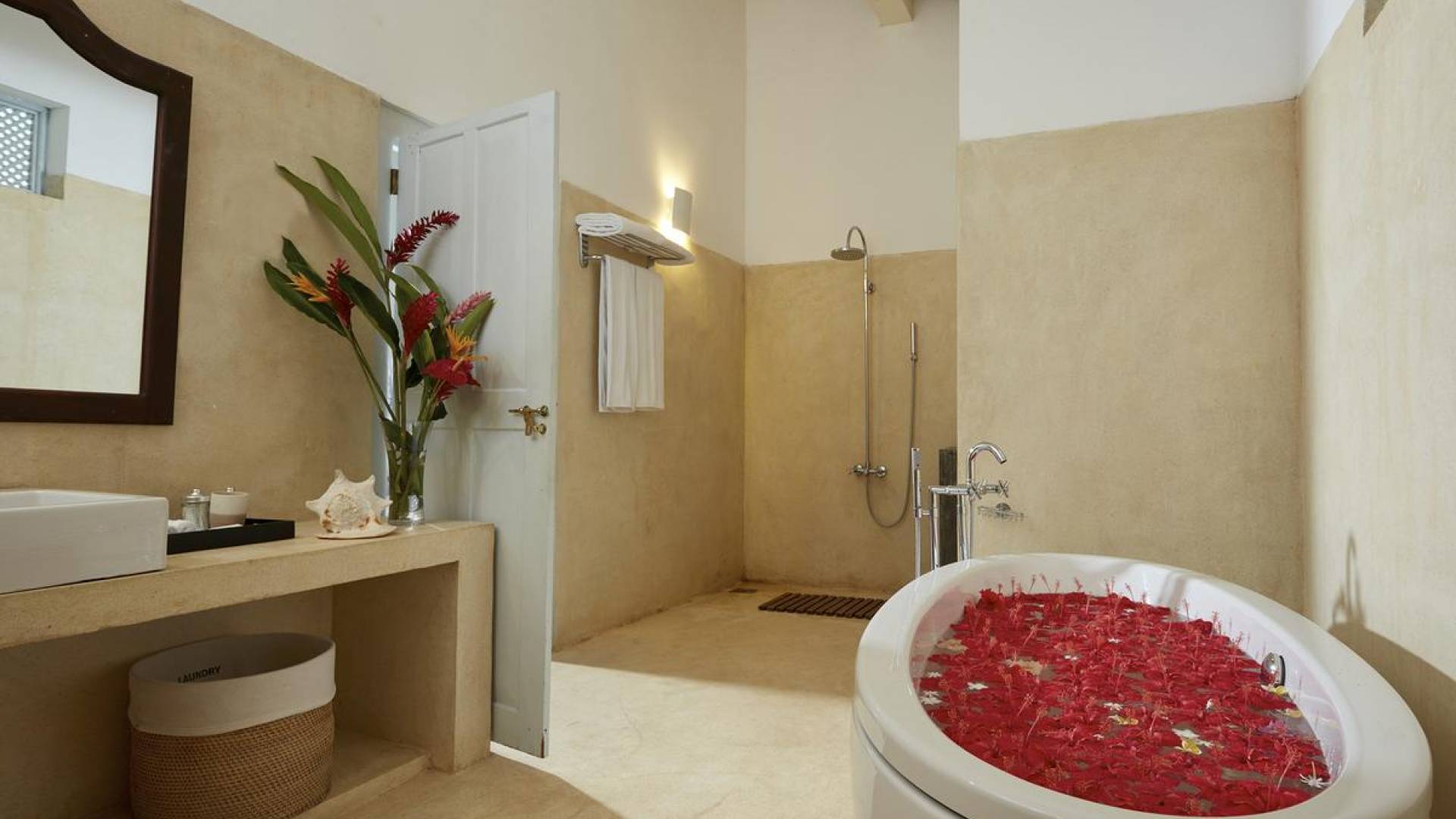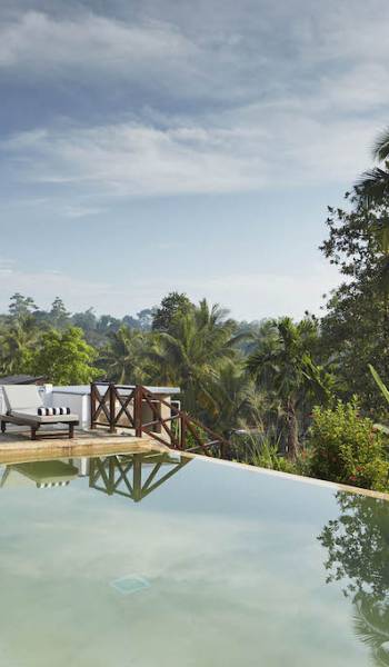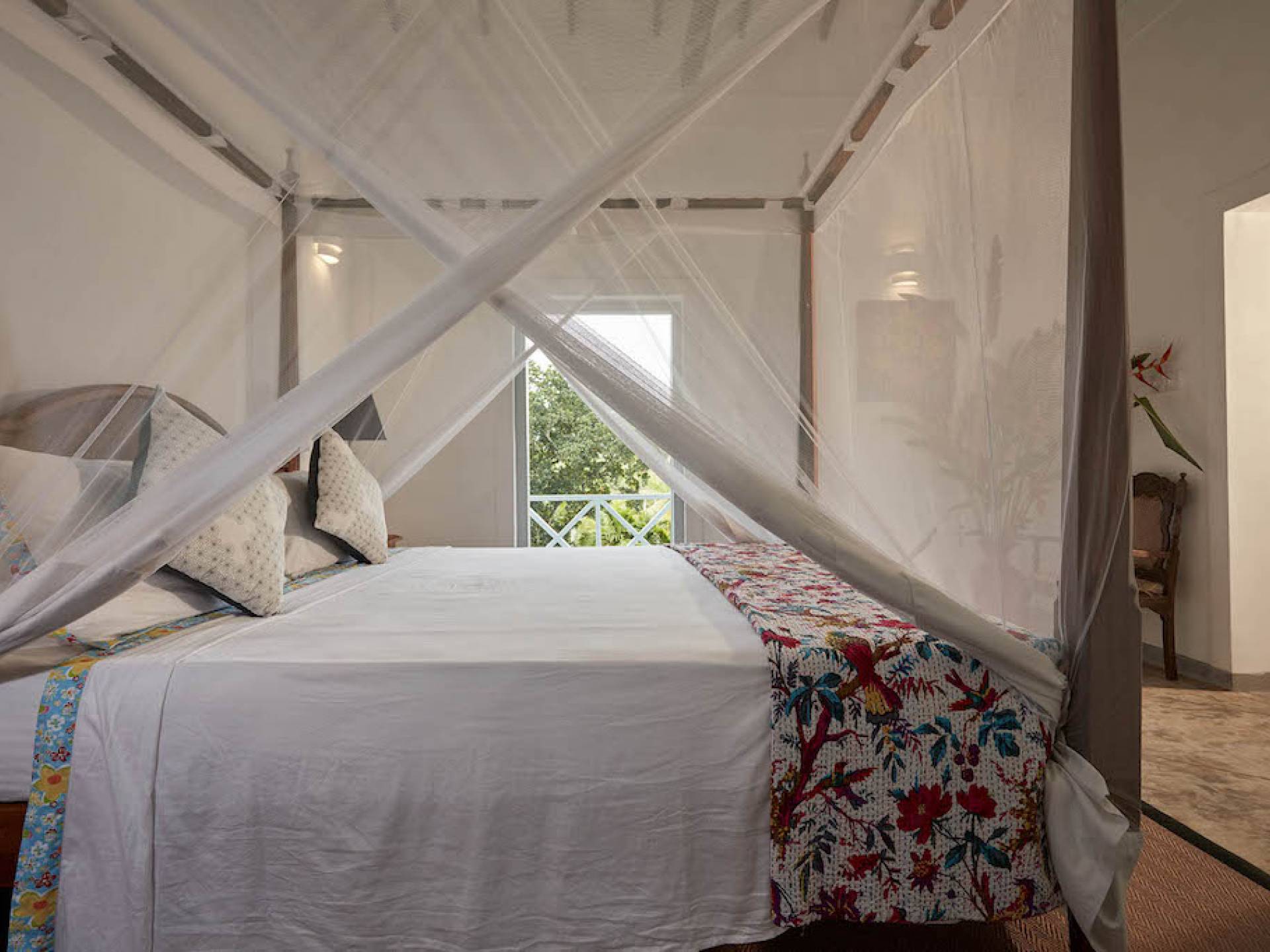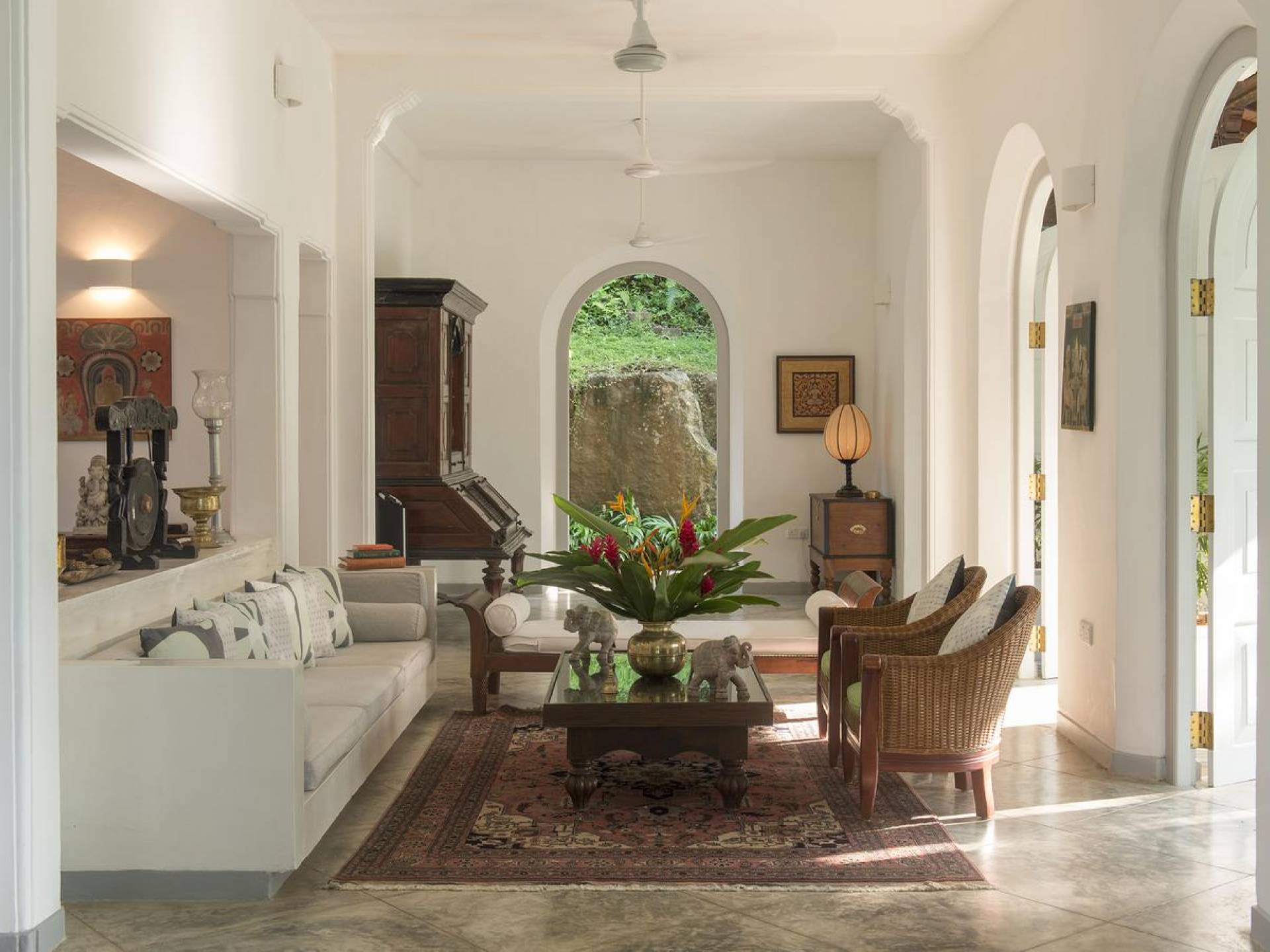 Wide verandas, cool wraparound balconies, arched doorways, and lofty beamed ceilings characterize this serene Dutch-colonial-style villa that is perfect for groups and families looking to connect and unwind. Villa Pooja Kanda’s tranquility is further enhanced by a garden enlivened by birdsong, squirrels, and inquisitive monkeys. Fine quality furniture and fabrics, impressive decorative elements, and a palette of earthy colors offer a classy ambient to Villa Pooja Kanda’s interior spaces. The villa is fully staffed and comes with a swimming pool, uniquely designed interior spaces, and a fully equipped kitchen. The luxury rental also contains all modern entertainment amenities.
