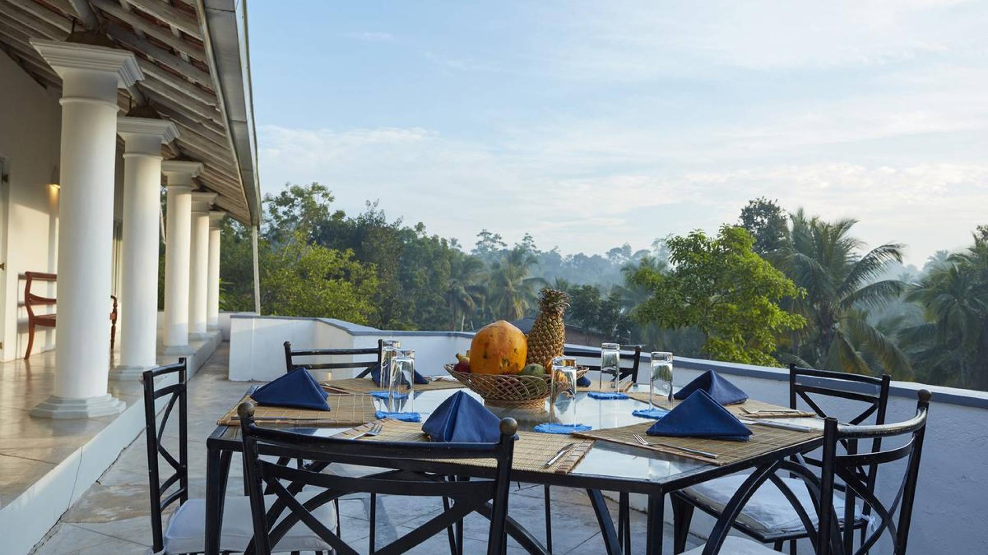 Villa Pooja Kanda sits on the top of a hill near Koggala and the south-coast market town of Habaraduwa, only ten minutes from the beach. Its superior location allows magnificent views to the tropical scenery surrounding it. Famous for accommodating the celebrated Sri Lankan author, Martin Wickramasinghe (to whom, an interesting museum has been dedicated and can be found in town), Koggala has a fine stretch of beach and is well-known for its enchanting lagoon. Here, the rich jungle spills onto a meandering expense of water traversed by fishermen leaving nothing but soft ripples in their wake.