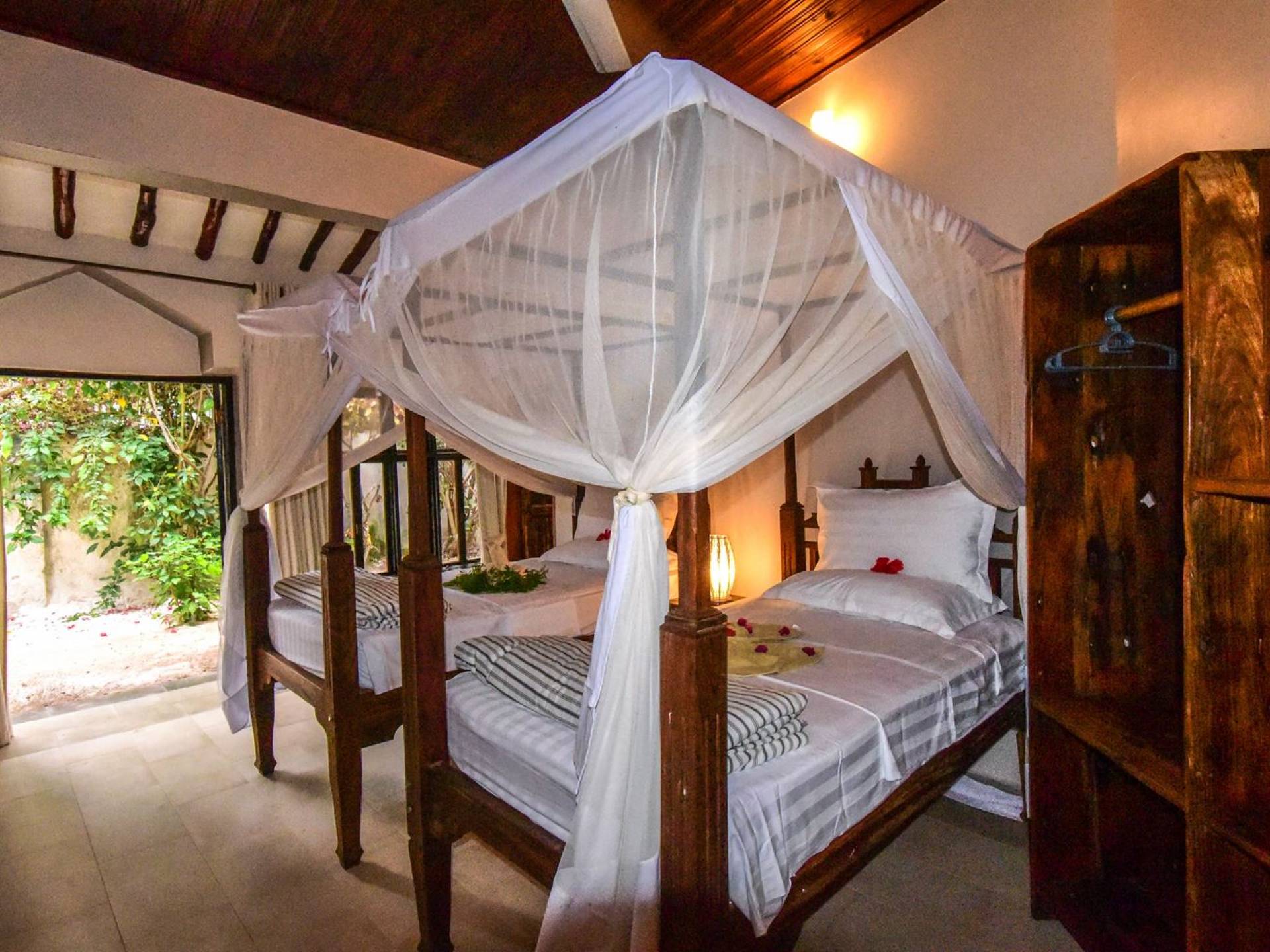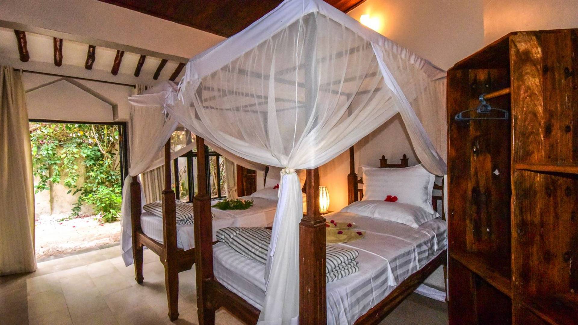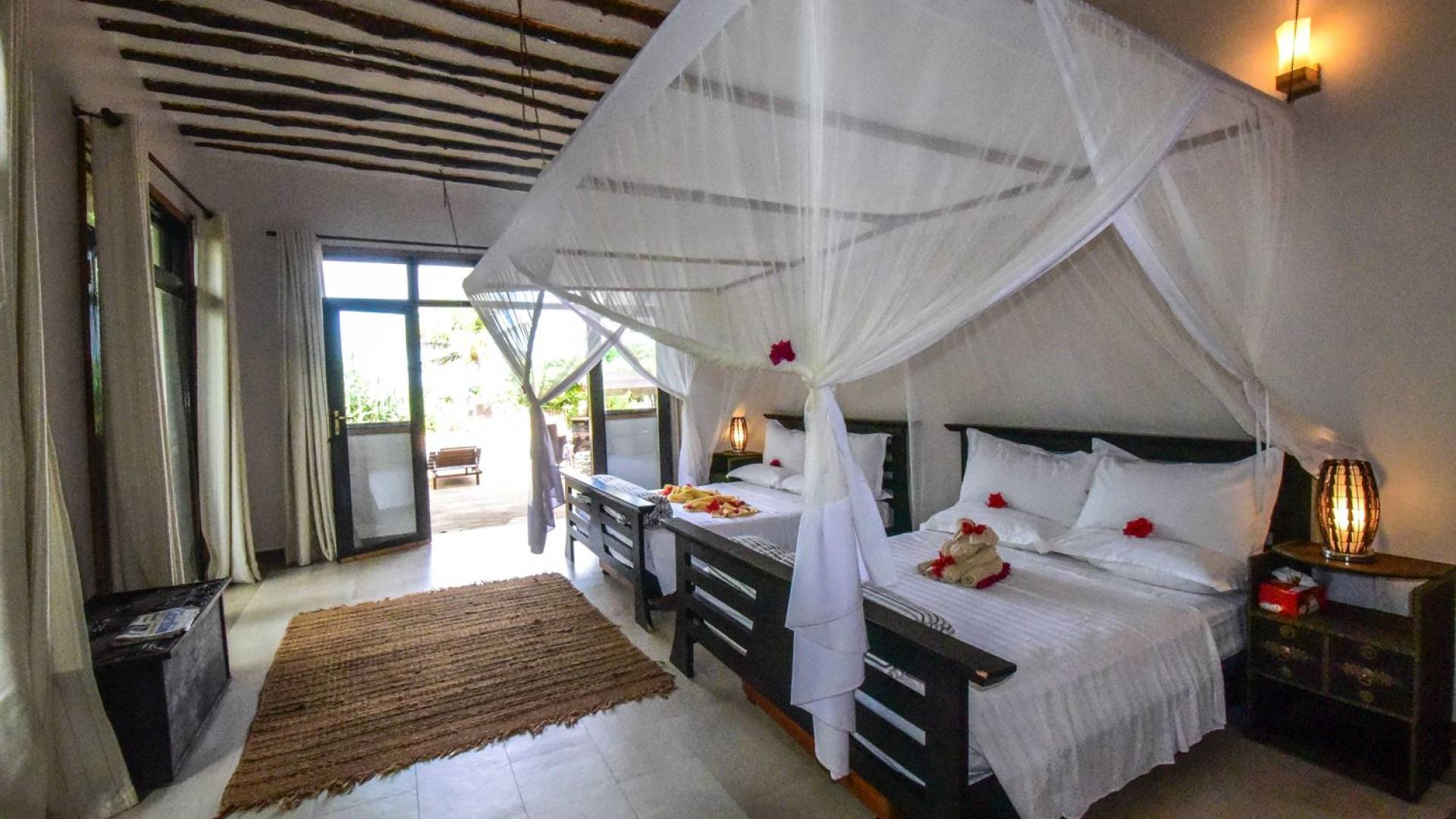 Tamani Villas Zanzibar has access to long stretches of white sandy beaches on either side of them. A long walk on the pristine beach or cycling is just bliss. Snorkeling in the shallow waters at low tide, reveals a sneak peek of the colorful world of coral and marine life that is at Mnemba marine reserve. The staff: Fundi Bilal, Babu Ali, Abbas the chef, and all the supporting staff are from the local village and are here to ensure that Zanzibar for you is all that it has ever been for us…with a touch of luxury in a place where time, thankfully, slows down