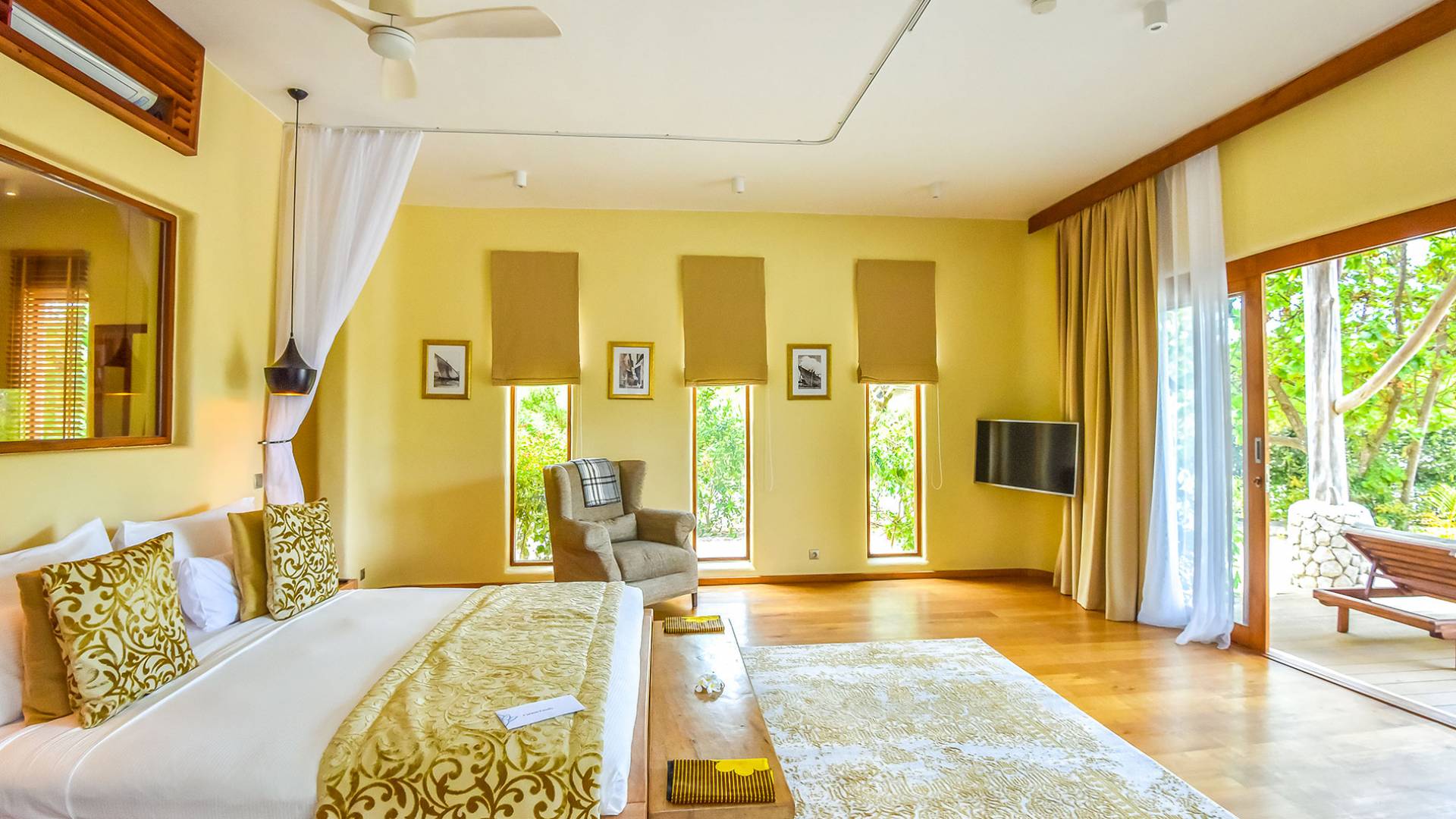 The Team is at your service and dedication to support your peaceful holidays, with services including butler service, daily housekeeping, and turndown, room service, laundry service, childminding, concierge, and organization of tours and activities. The Deluxe rooms are individual rooms located within the Presidential Luxury Villa. Guests staying in these rooms have access to the lavish rooms while sharing common villa amenities such as villa entrance, lounge, and kitchen, as well as resort amenities including Restaurant, spa, and main pool.
