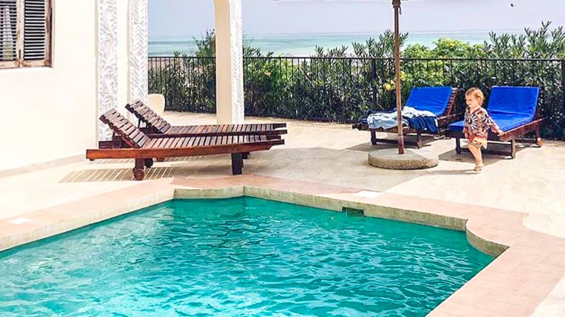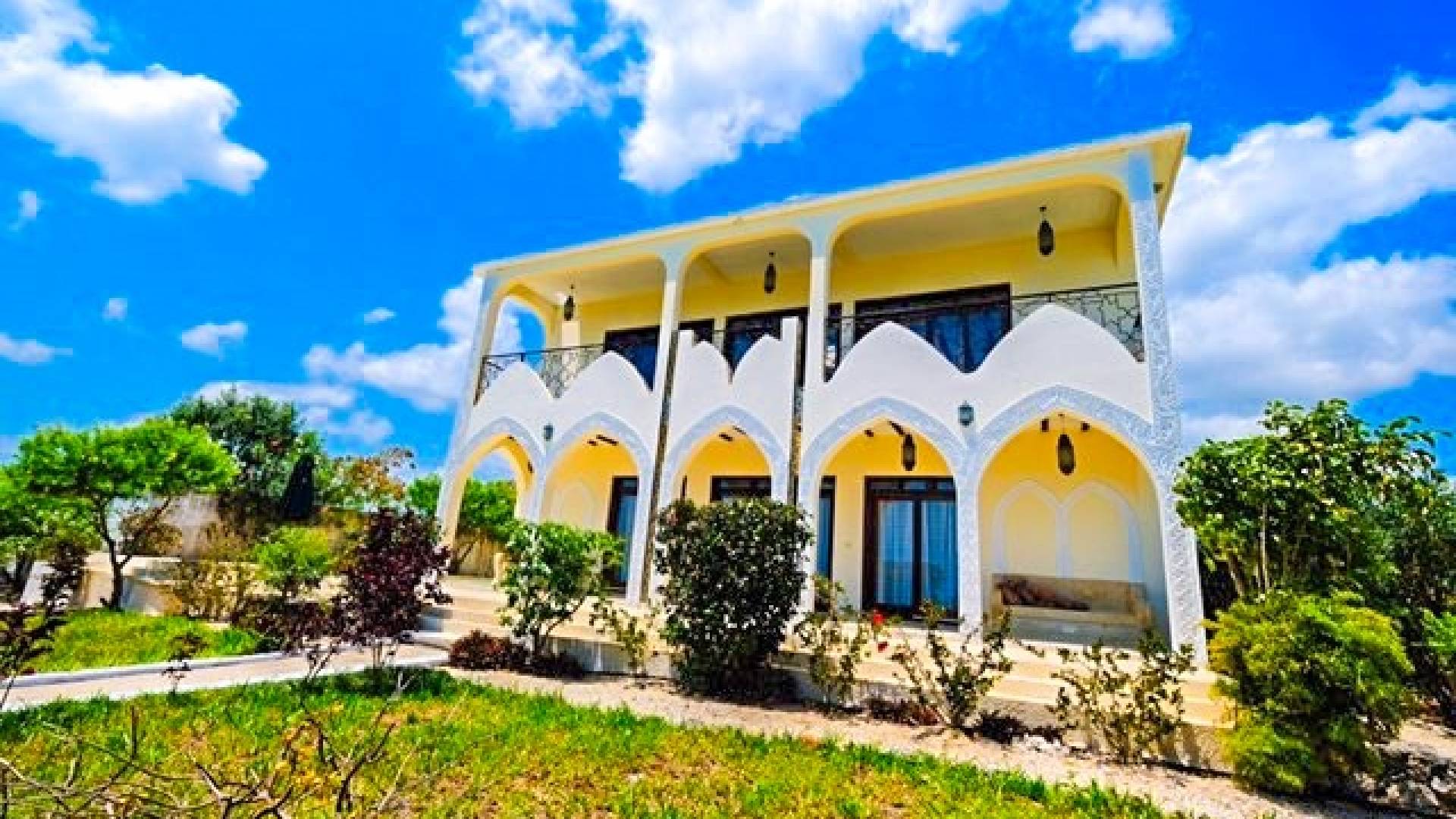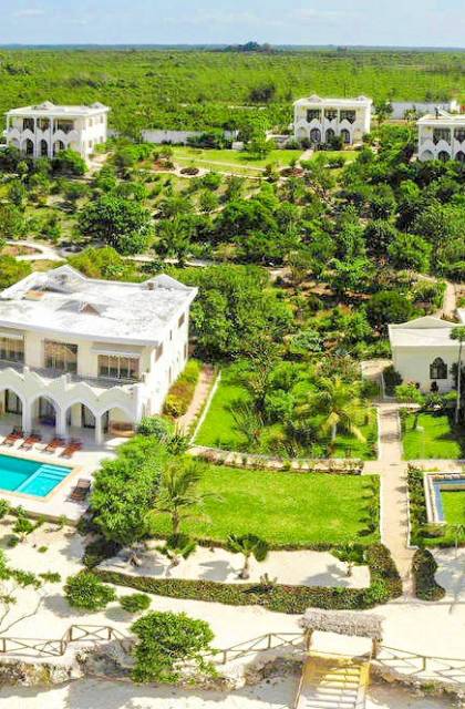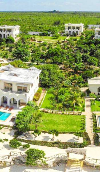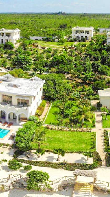 For For those looking for privacy, peace, and quietude, Villa Serenity is the best choice. Not only is each villa mere steps away from the soft white sands of Paje beach and warm inviting waters of the Indian Ocean. Not only the villa mere steps away from the soft white sands of Paje beach and warm inviting turquoise waters of the Indian Ocean, but it also includes a very private swimming pool. Marbled terraces overlooking the ocean provide spectacular sunrise and sunset views and a breathtaking glimpse of the immense, star-studded night sky. High ceilings, spacious interiors featuring furniture designed by local artisans, and a bubbling marble fountain at the center of the villa, combine to create dramatic interiors.