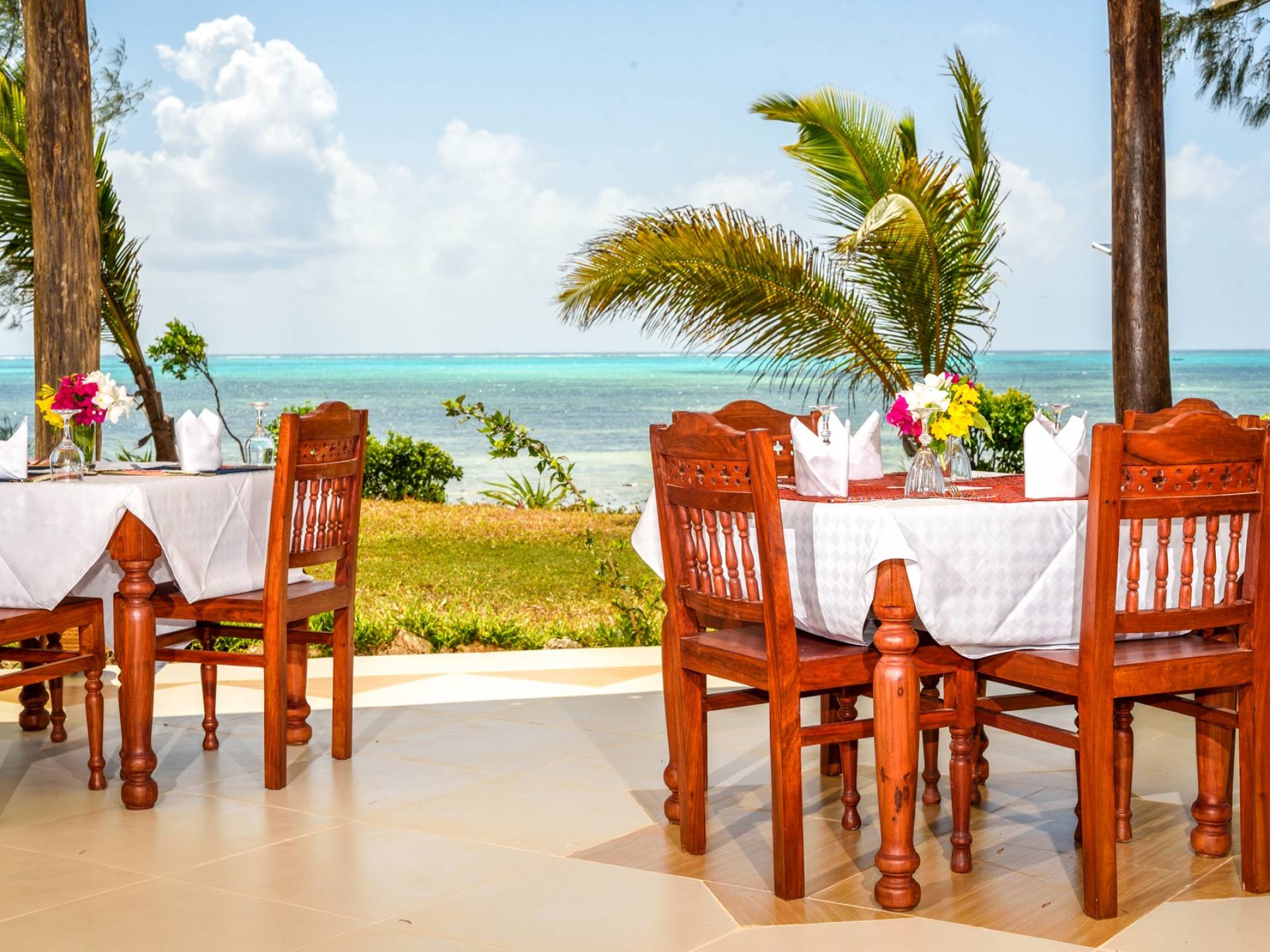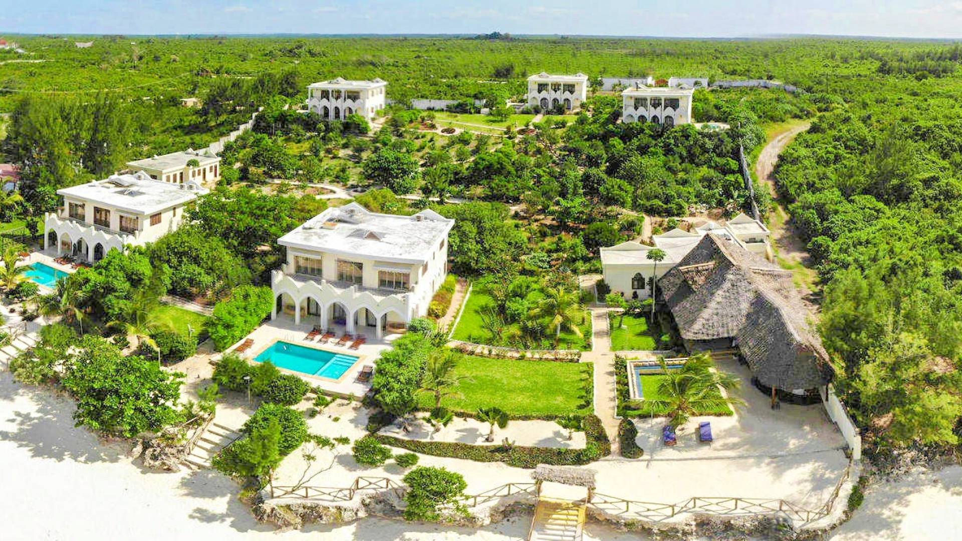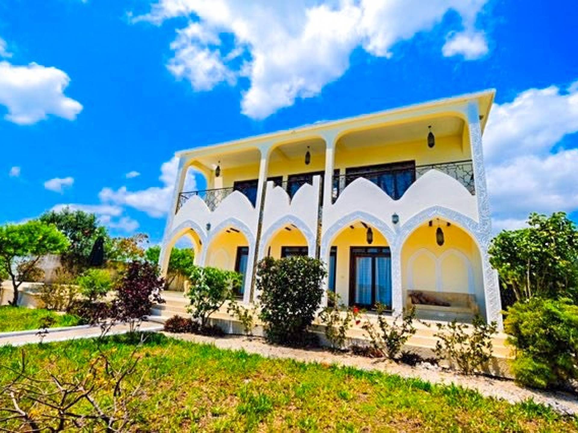 For For those looking for privacy, peace, and quietude, Villa Serenity is the best choice. Not only is each villa mere steps away from the soft white sands of Paje beach and warm inviting waters of the Indian Ocean. Not only the villa mere steps away from the soft white sands of Paje beach and warm inviting turquoise waters of the Indian Ocean, but it also includes a very private swimming pool. Marbled terraces overlooking the ocean provide spectacular sunrise and sunset views and a breathtaking glimpse of the immense, star-studded night sky. High ceilings, spacious interiors featuring furniture designed by local artisans, and a bubbling marble fountain at the center of the villa, combine to create dramatic interiors.