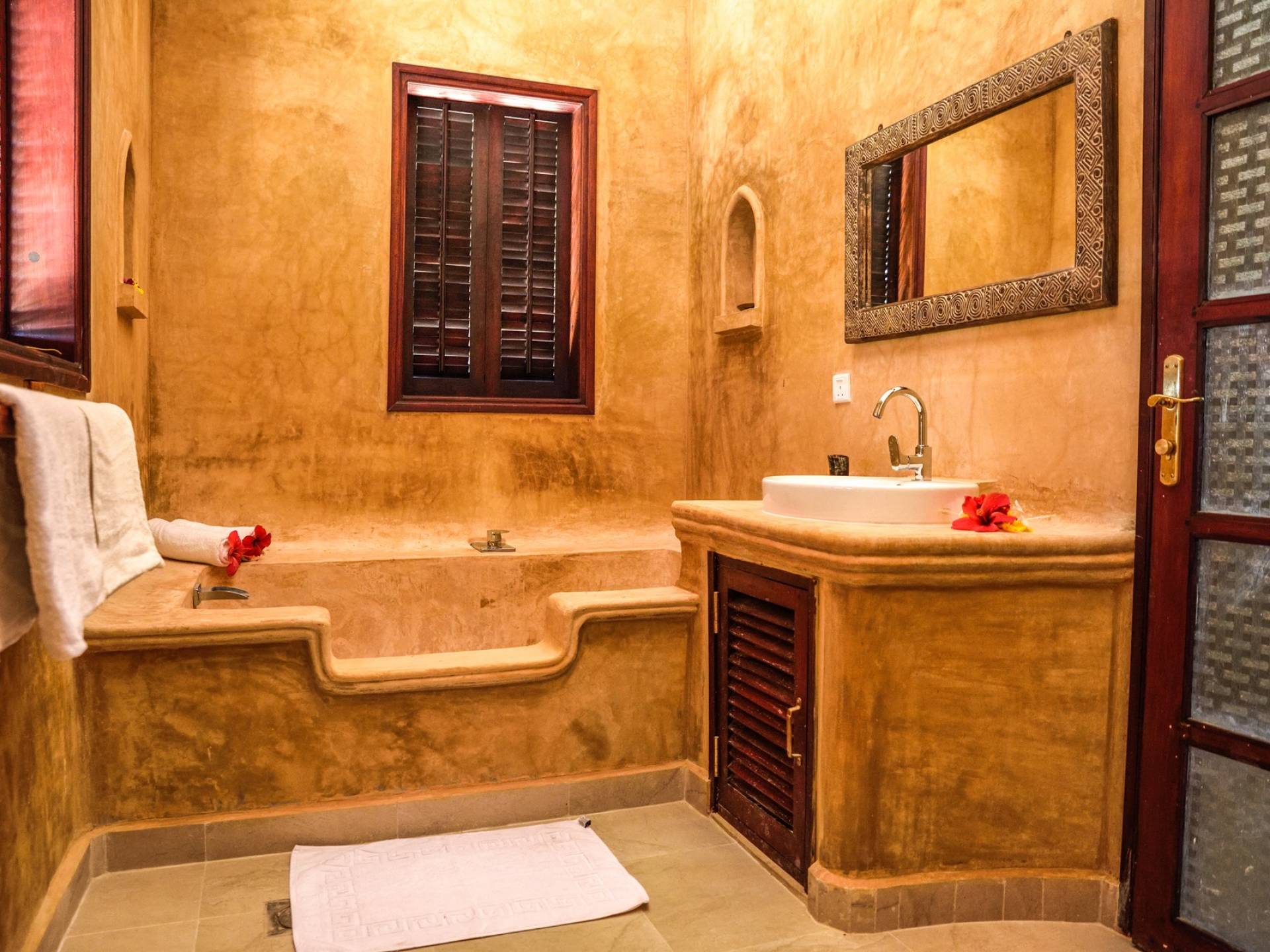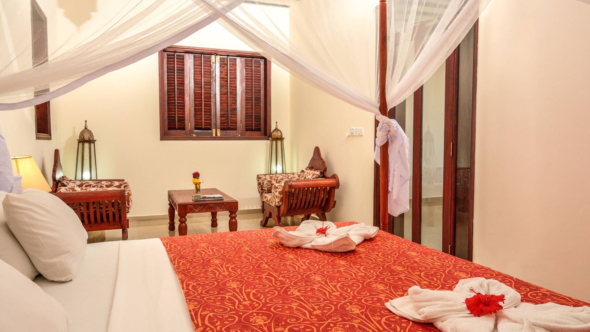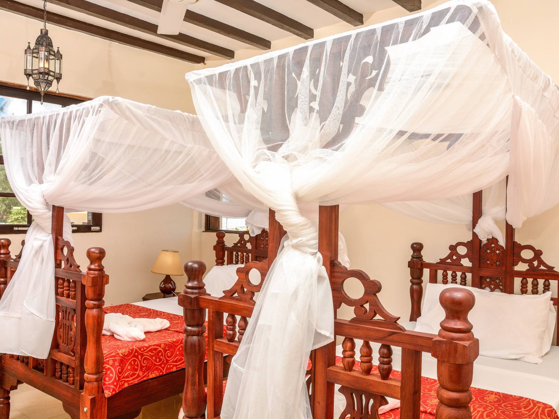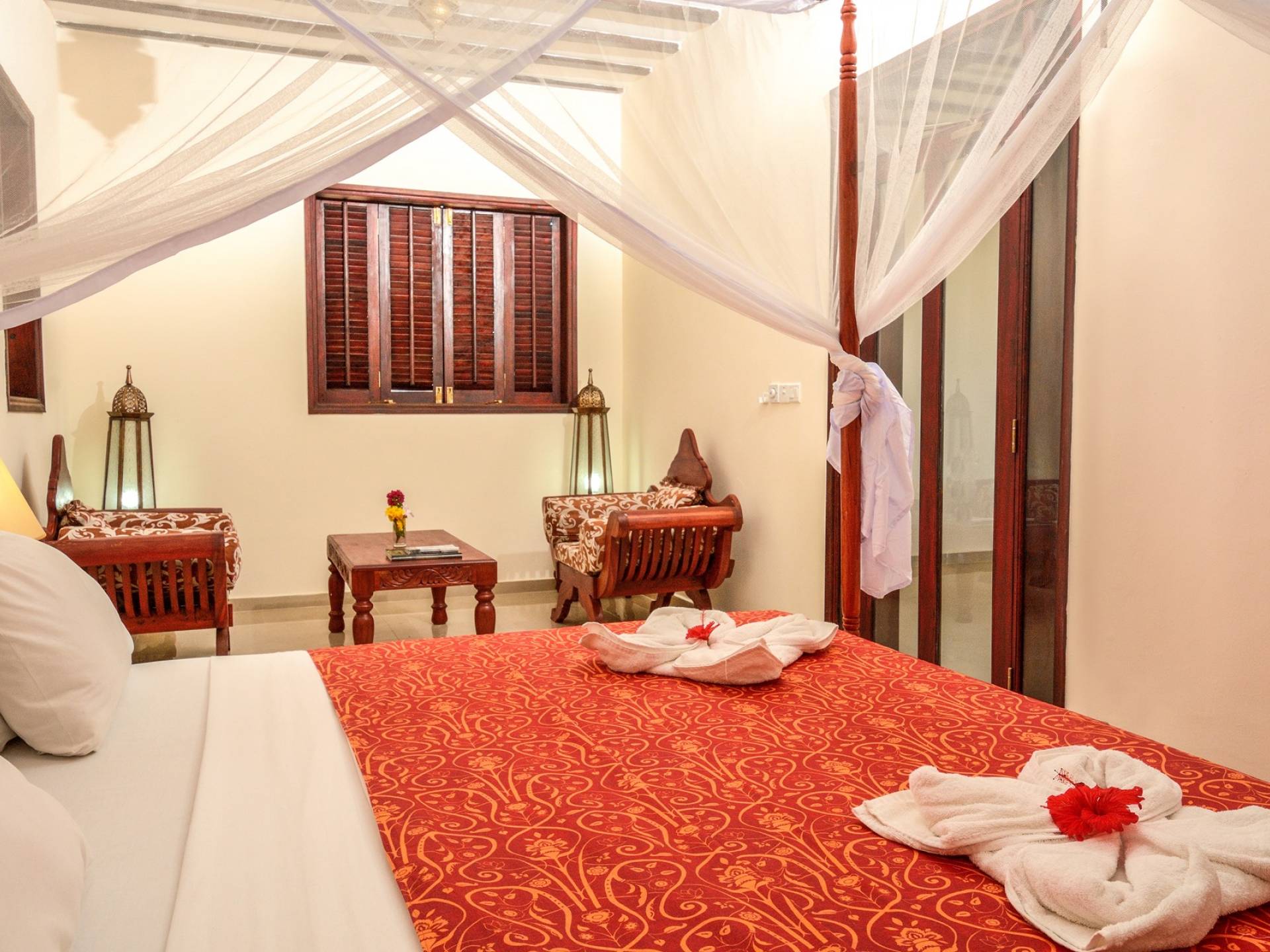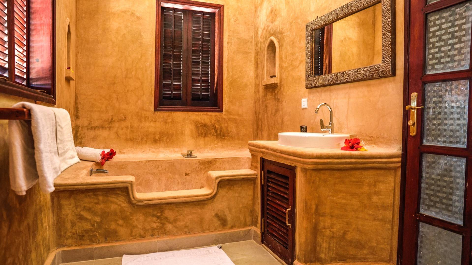 Serenity Ocean View Villa showcases an exotic blend of Moorish and Maghrebi-Andalusian-style features, from stunning cusped arches, heavy-beamed high ceilings and spectacular skylights, married with finely-crafted and traditional Zanzibari wooden doors and windows. Designed by renowned Austrian architect Rupert Weber, the villa is every bit as remarkable as its picturesque natural surroundings.