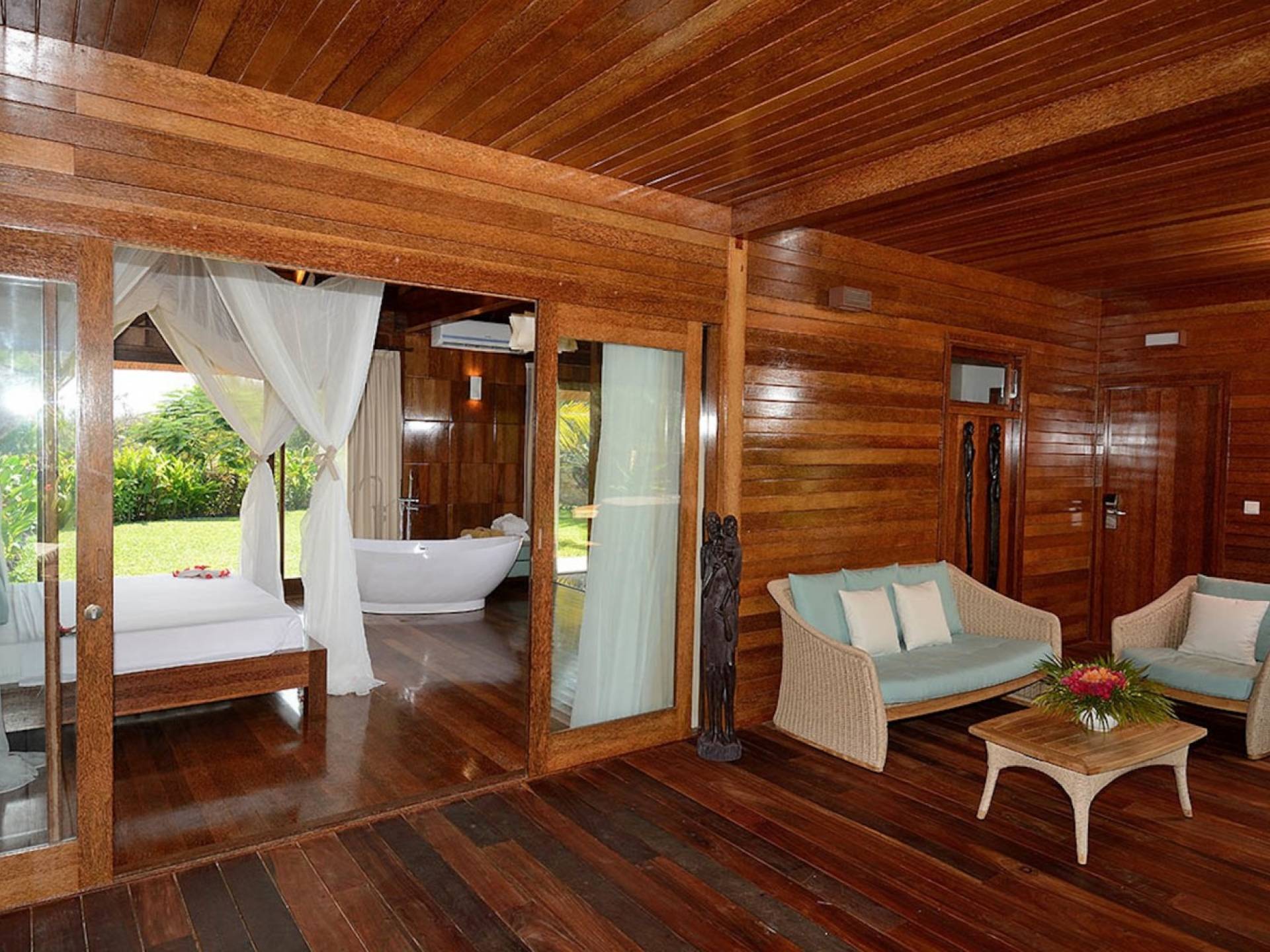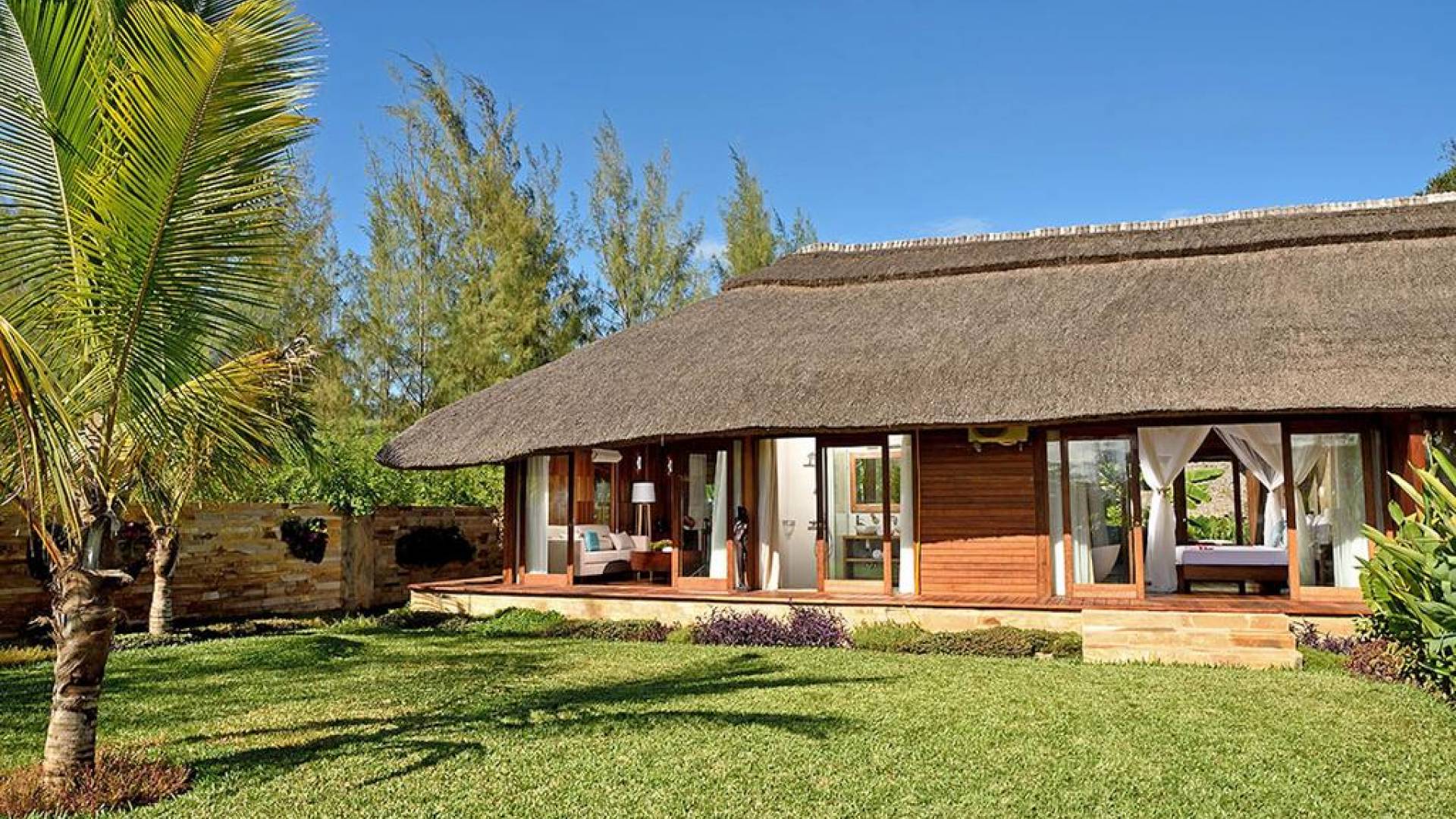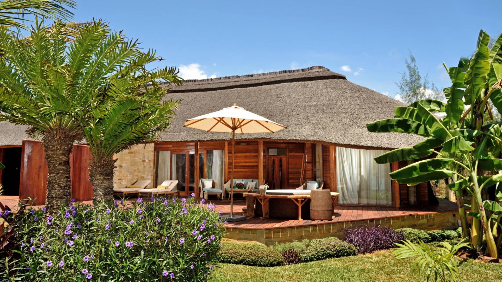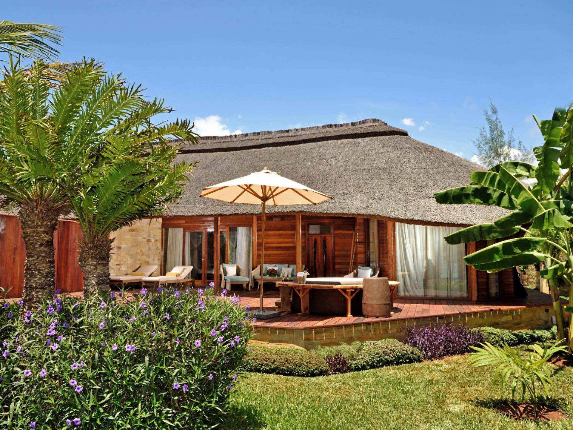 The Royal Villa with Jacuzzi is a luxurious hideaway within Tulia Unique Beach Resort. Villa overlook gardens and the palm tree grove, giving maximum privacy. It is equipped with private Jacuzzi and comfortable outside sofa. Large french doors make you feel part of the tropical garden. The Royal villa combines African wood and stone in order and creates a modern African style with a traditional open thatch roof.