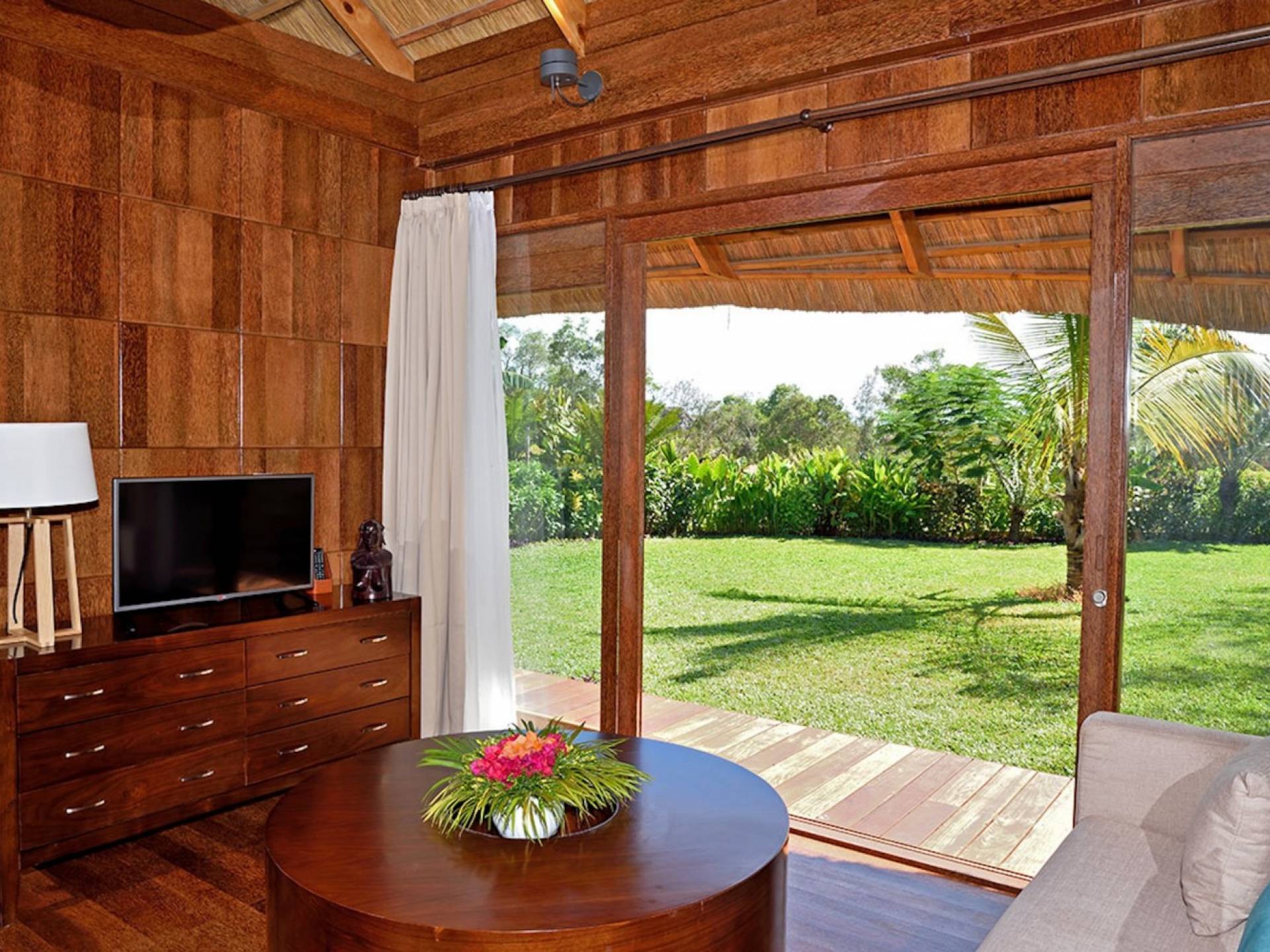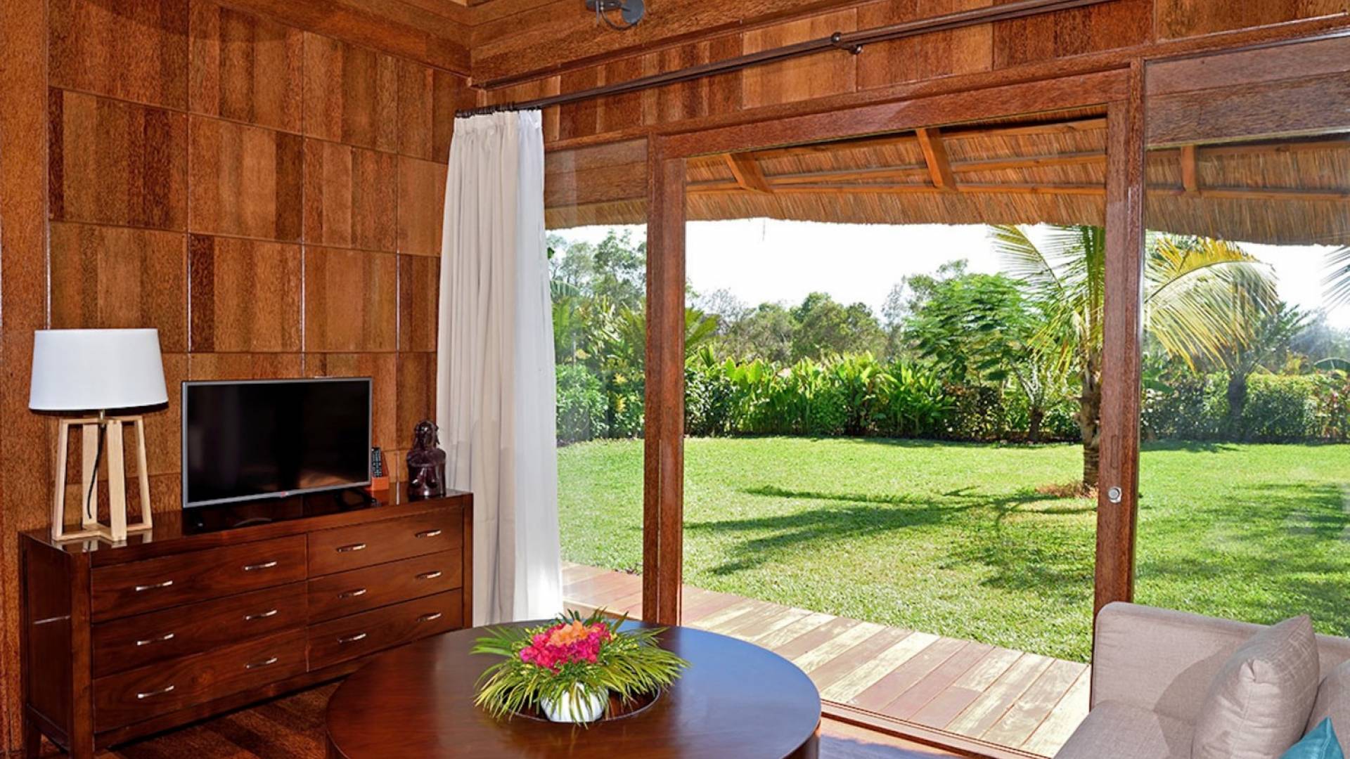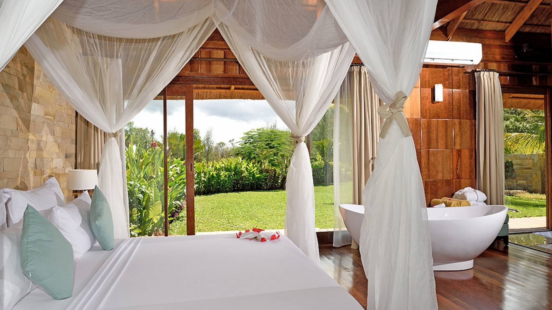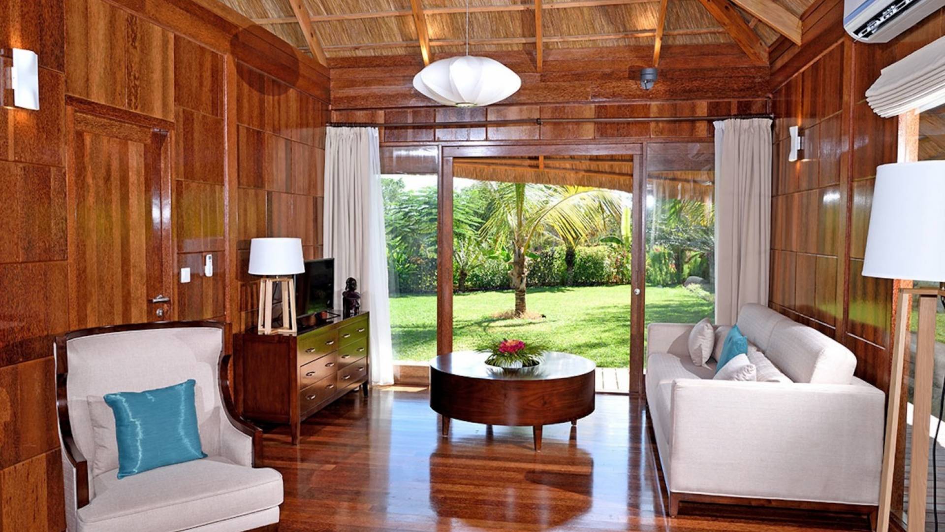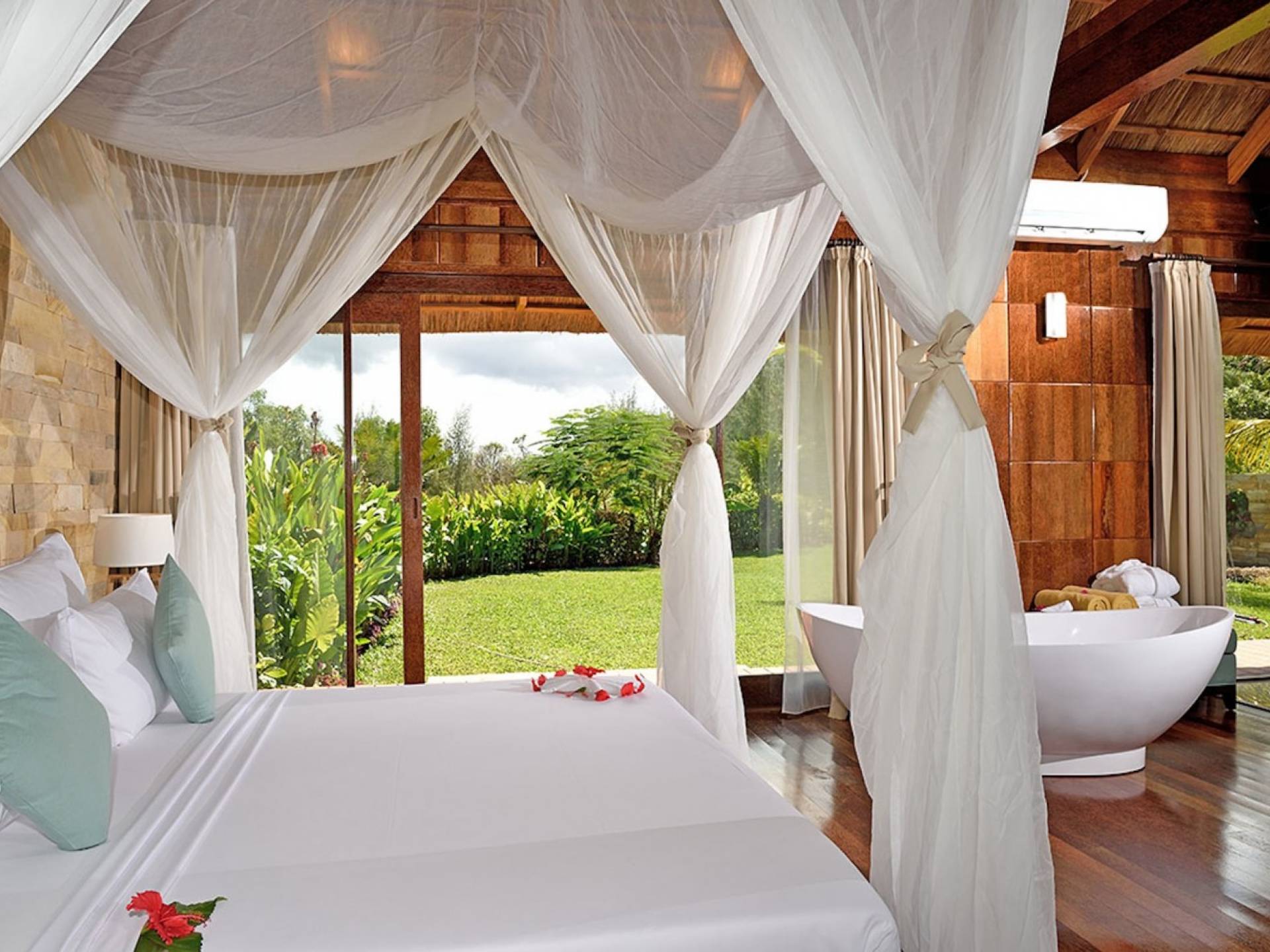 The Royal Villa with Jacuzzi is a luxurious hideaway within Tulia Unique Beach Resort. Villa overlook gardens and the palm tree grove, giving maximum privacy. It is equipped with private Jacuzzi and comfortable outside sofa. Large french doors make you feel part of the tropical garden. The Royal villa combines African wood and stone in order and creates a modern African style with a traditional open thatch roof.