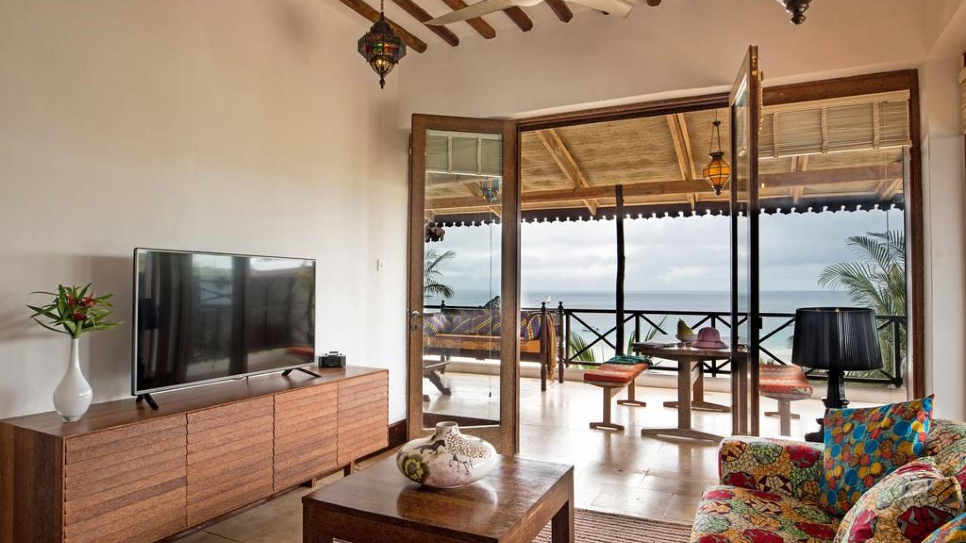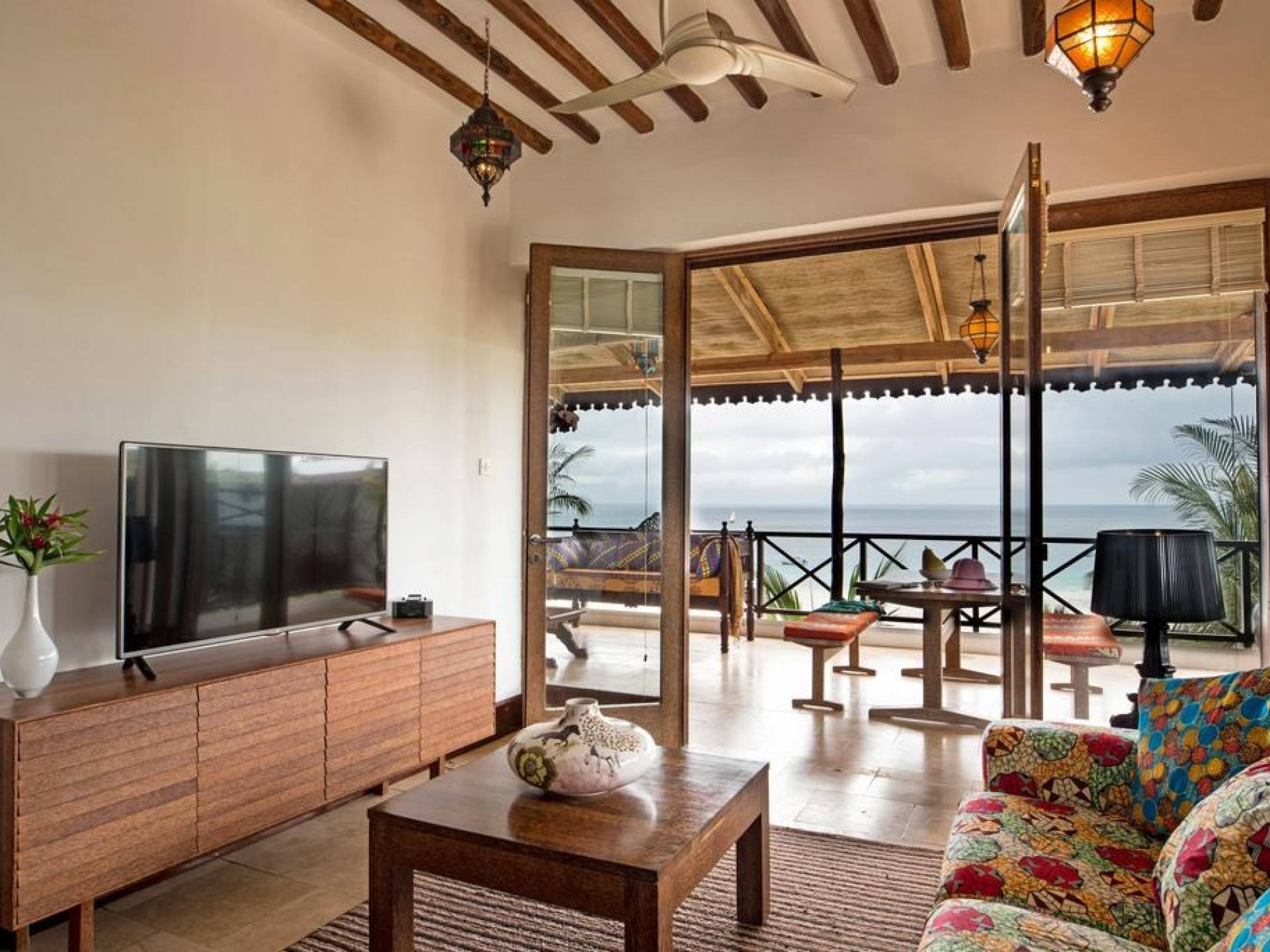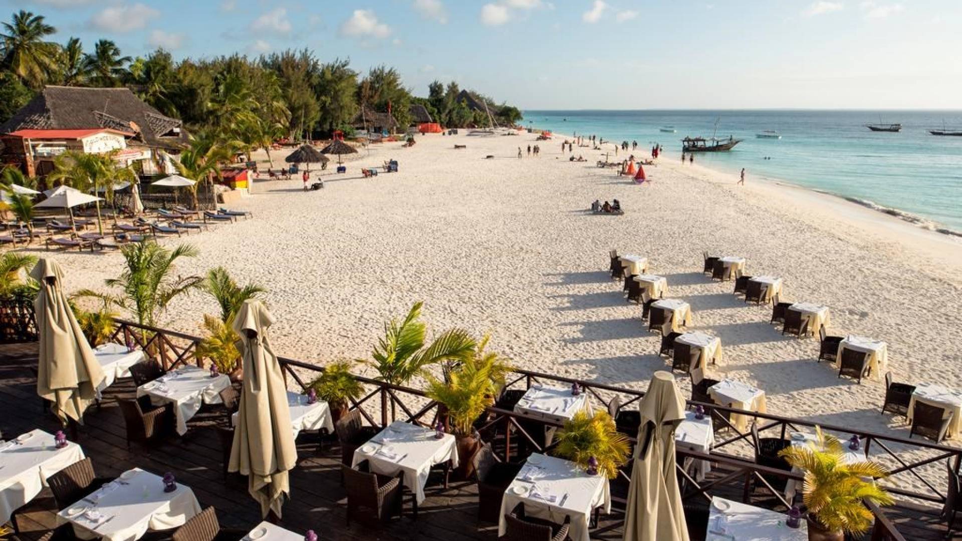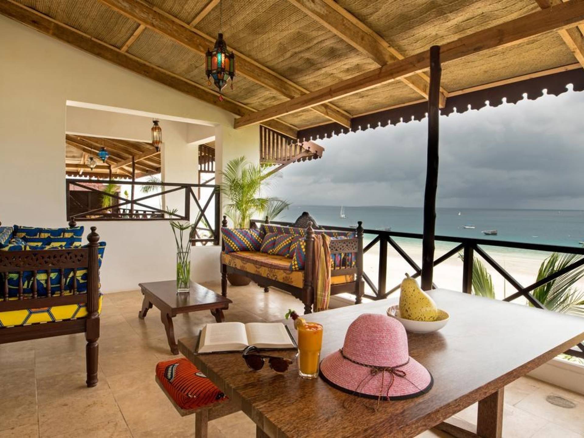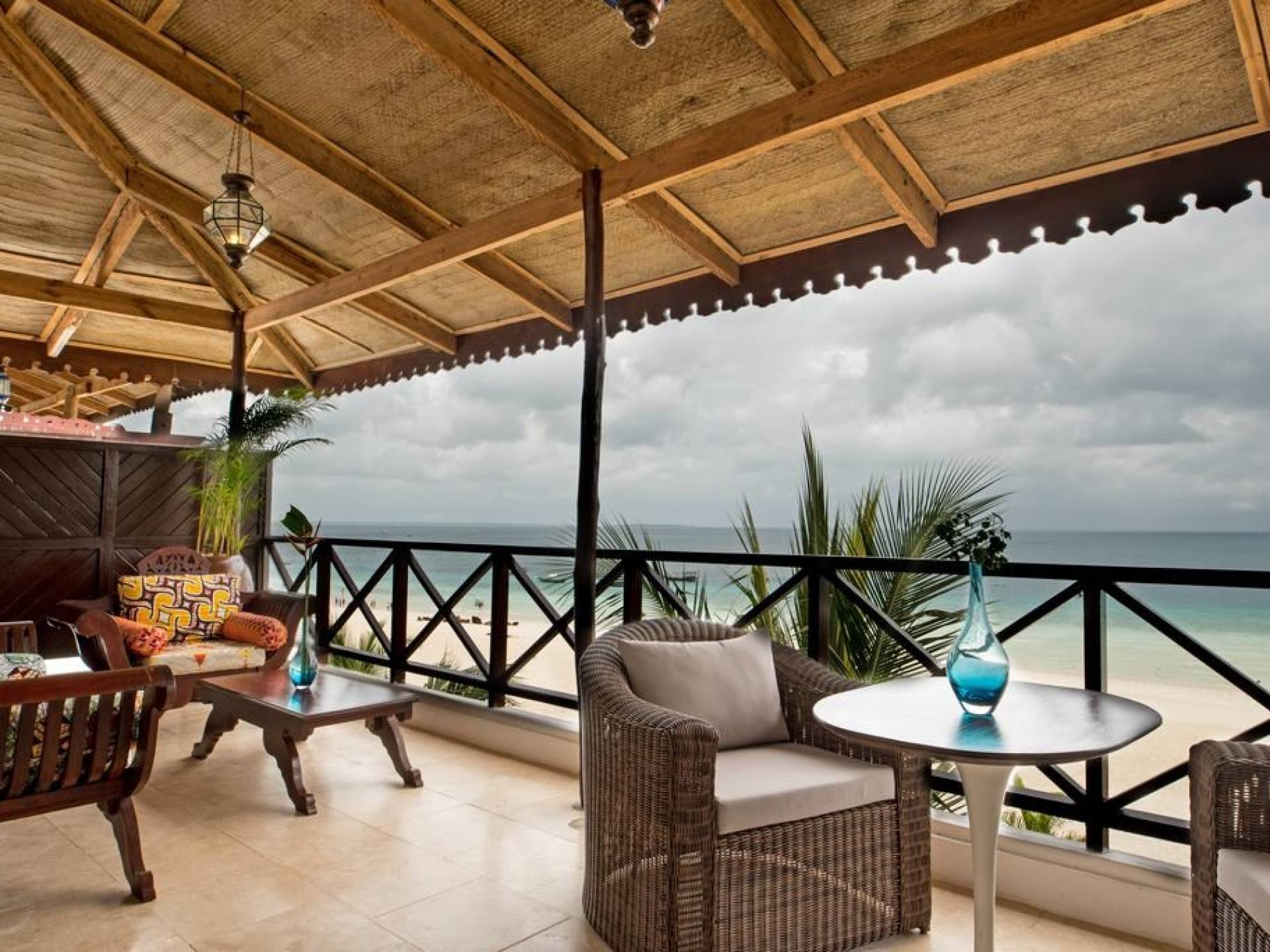 There are 5 room designs: Deluxe Garden View, Deluxe Sea View, Roof-Top Suites, Ocean Front Cottages with private decks over the sea, and for the ultimate in opulence, there’s our 70 sq meter Z Suite with 2 terraces. Each bedroom has French doors, set in floor-to-ceiling glass which leads onto a balcony with views over our landscaped tropical garden and out across the crystal blue waters of the Indian Ocean to the magnificent Zanzibari sunset on the distant horizon.
