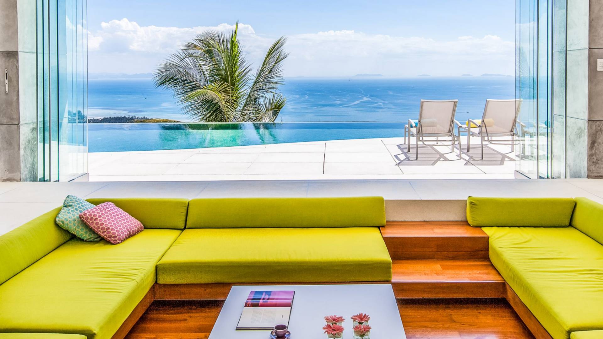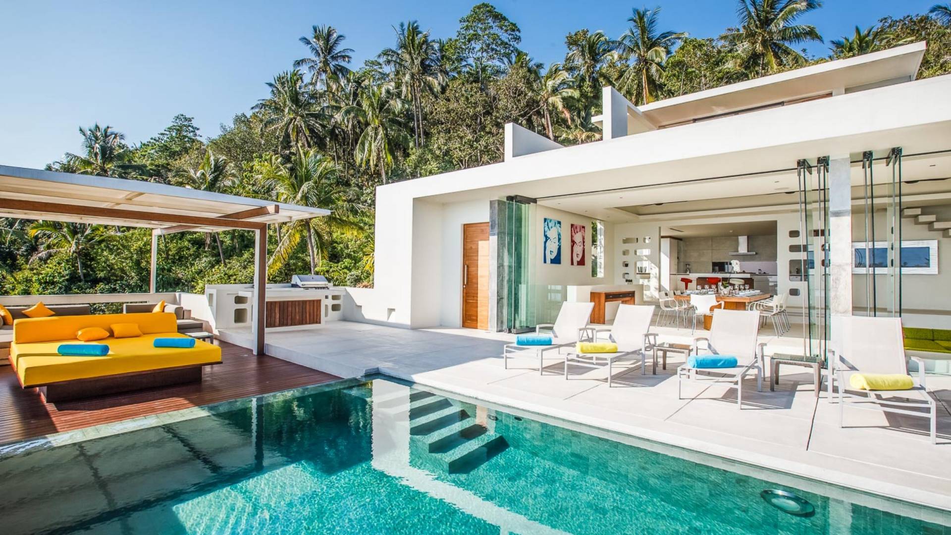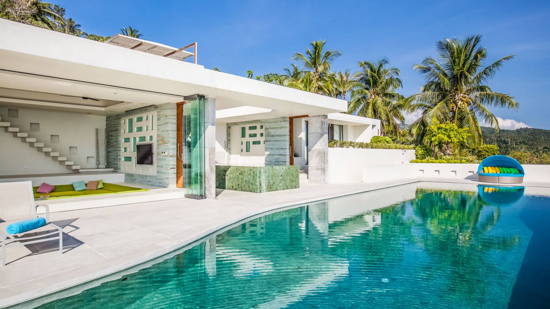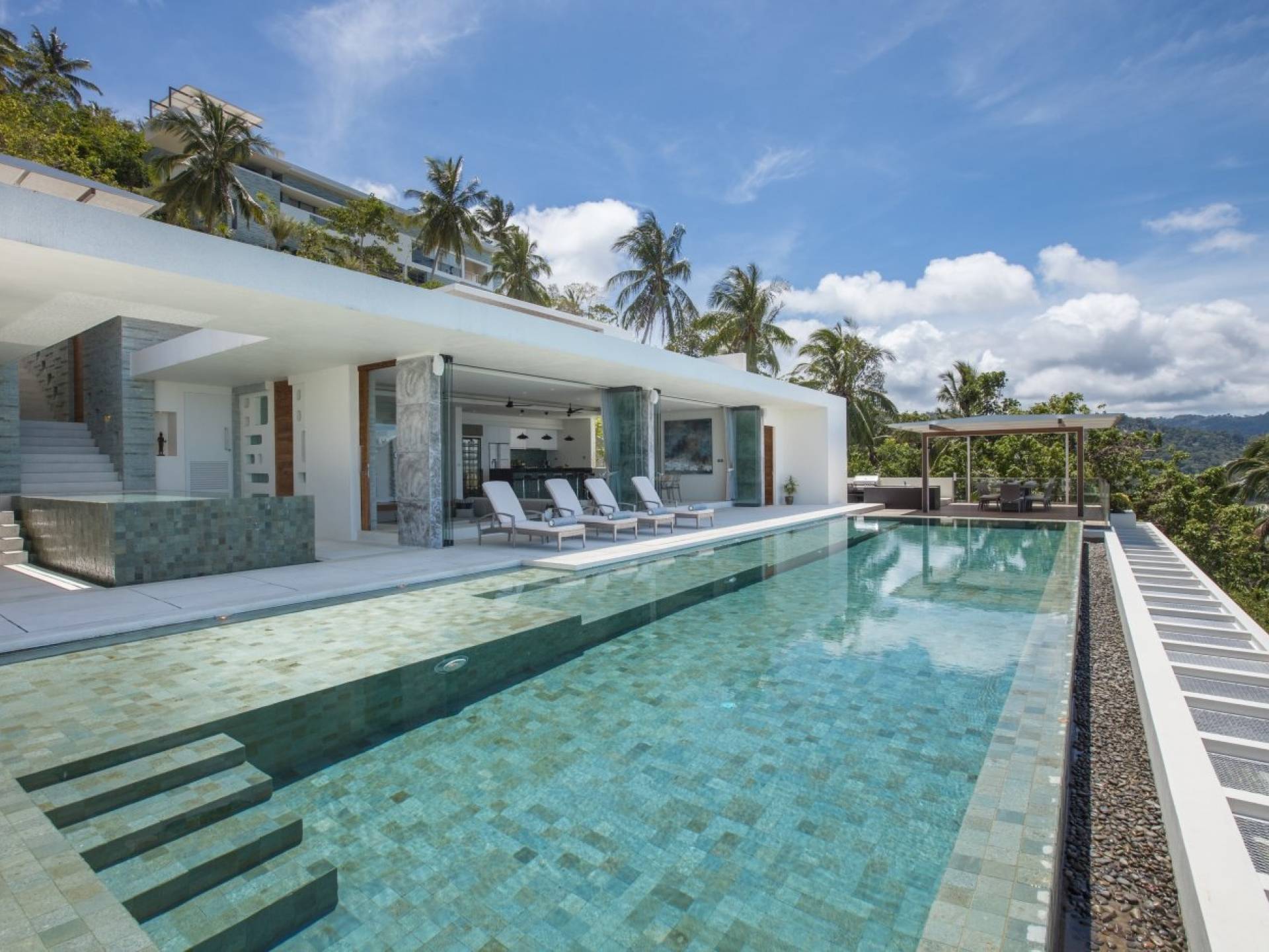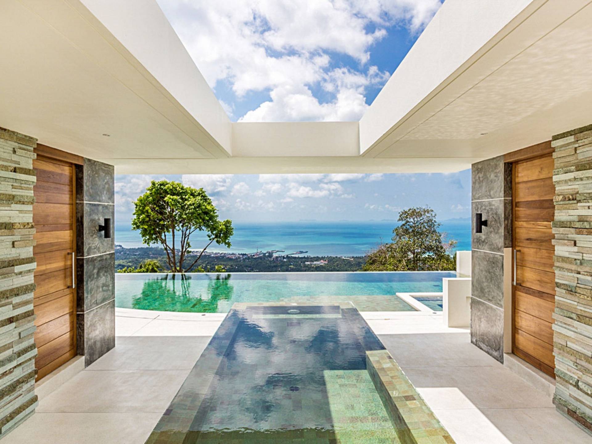 Villa Splash at Lime Samui Estate is peacefully positioned high on the hills above Koh Samui’s quaint port town of Nathon. This prestigious villa rental offers unparalleled panoramic views of the sea, Angthong Marine Park, and the Five Islands. The guests are provided with the chance to watch fishing boats and ferries as they arrive and depart from Koh Samui, as well as a variety of colorful and mesmerizing sunsets. Villa Splash at Lime Samui Estate presents a contemporary open-plan design with intelligent use of space and distinctive character that sets it apart from the typical island villa layouts.