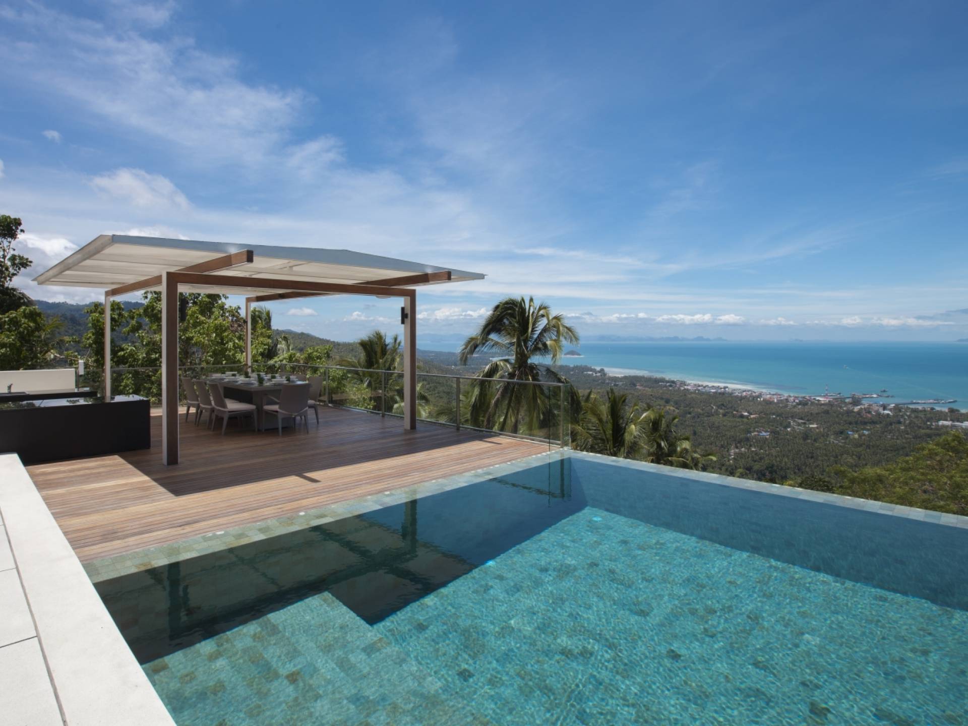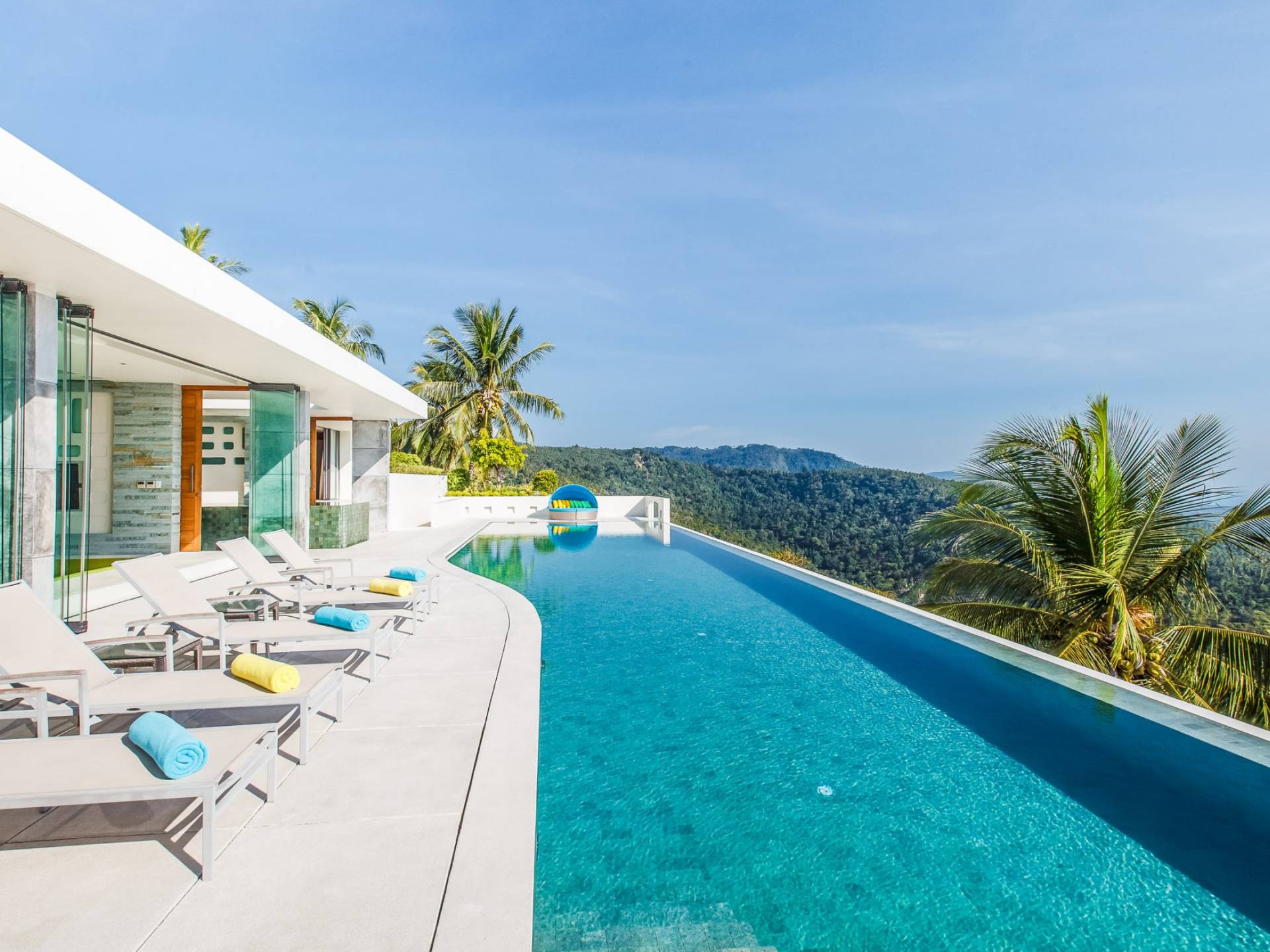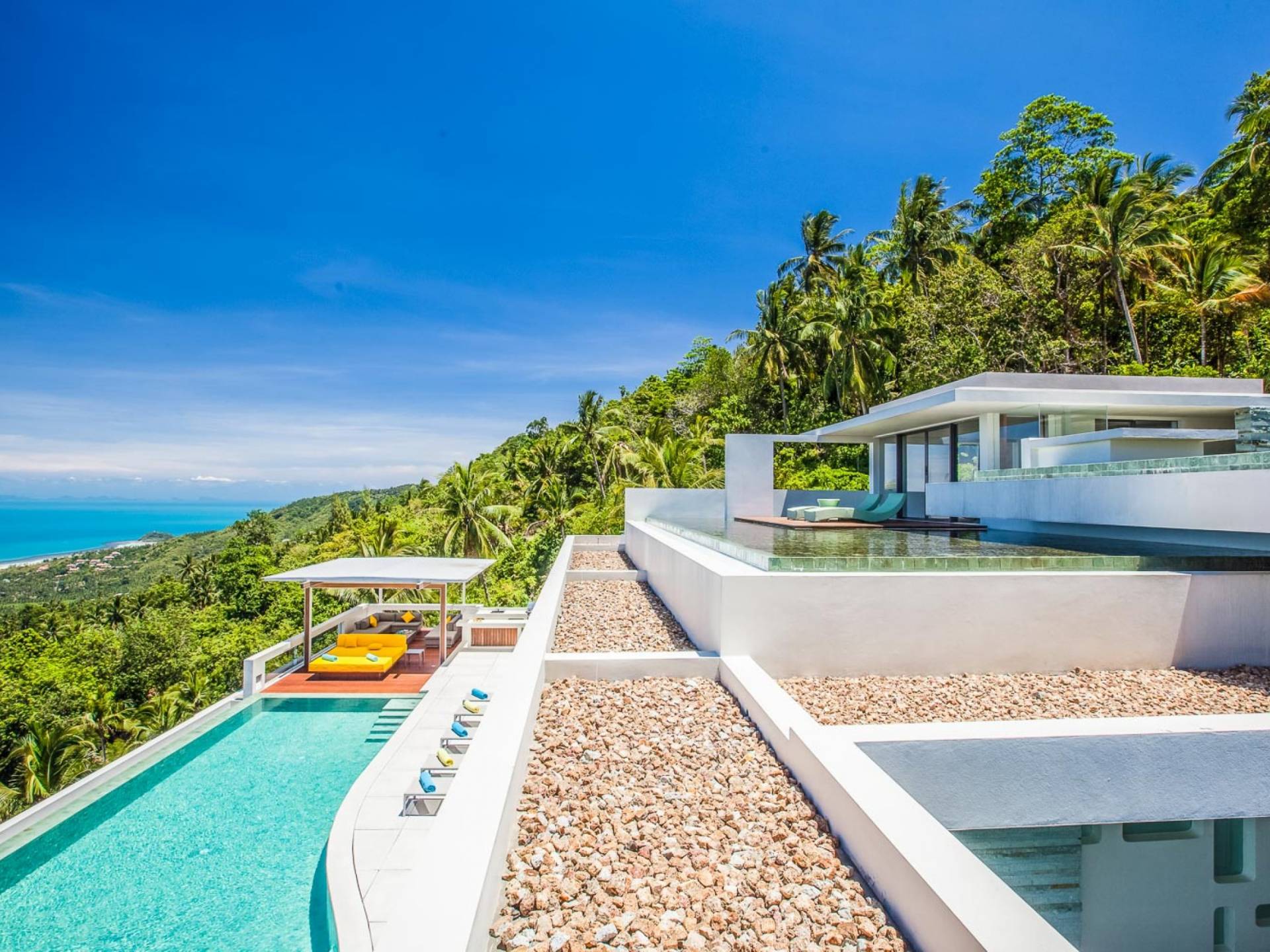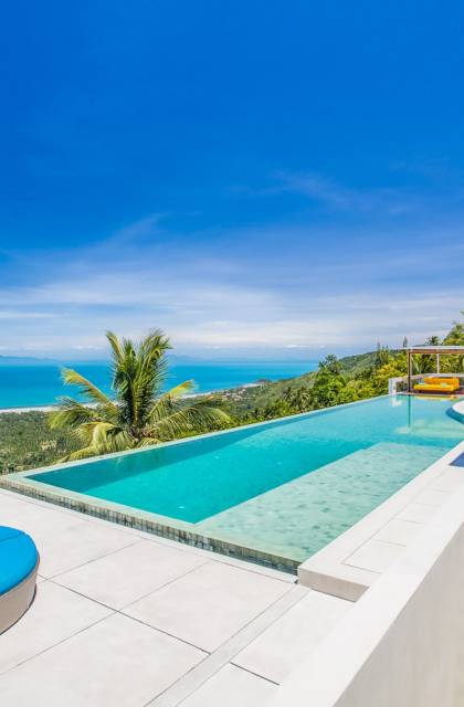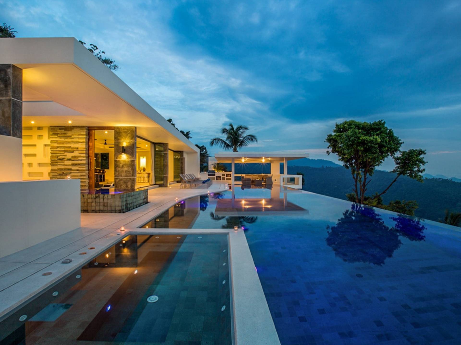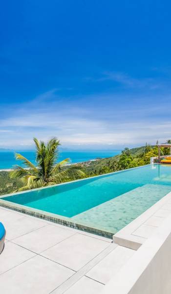 Spectacular panoramic ocean views, friendly staff, infinity pools, and one of the best locations in Koh Samui welcome you to the glamorous Lime Samui Estate. The beauty marvel, luxury villa complex looks like a palace, seductively luscious and beautiful, promises to take your breath away from the very first moment of your arrival. Built on a tropical lush green hillside above Koh Samui’s quaint port town of Nathon, this luxury Thai holiday rental offers expansive breathtaking vistas over the ocean, Angthong Marine Park, and the Five Islands.